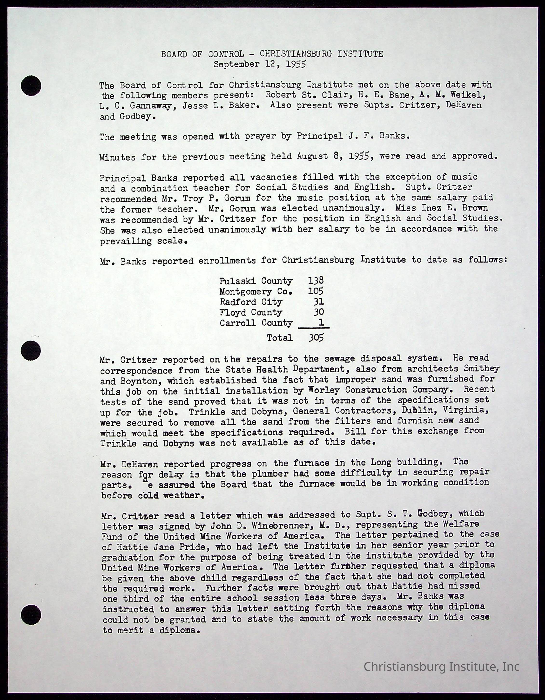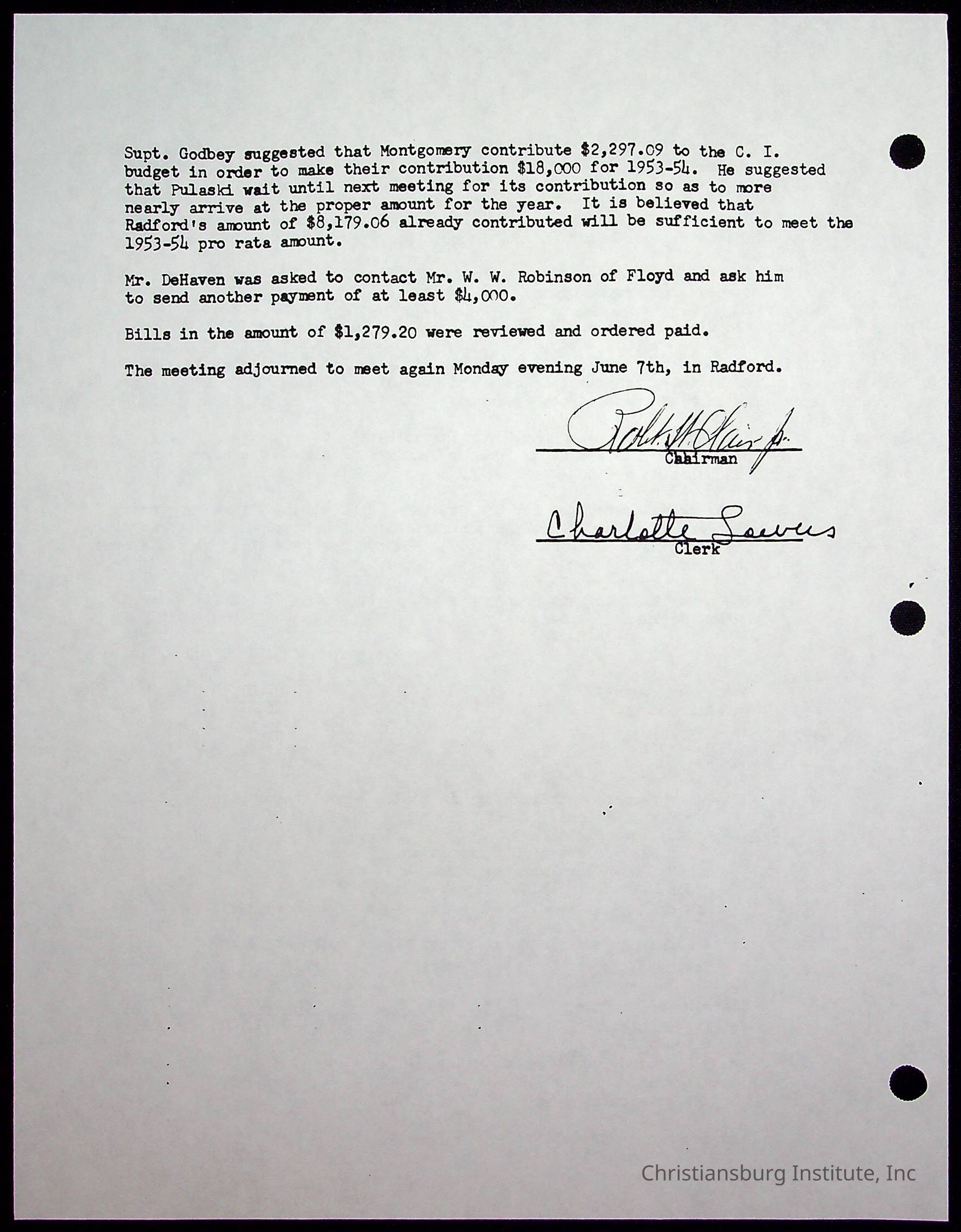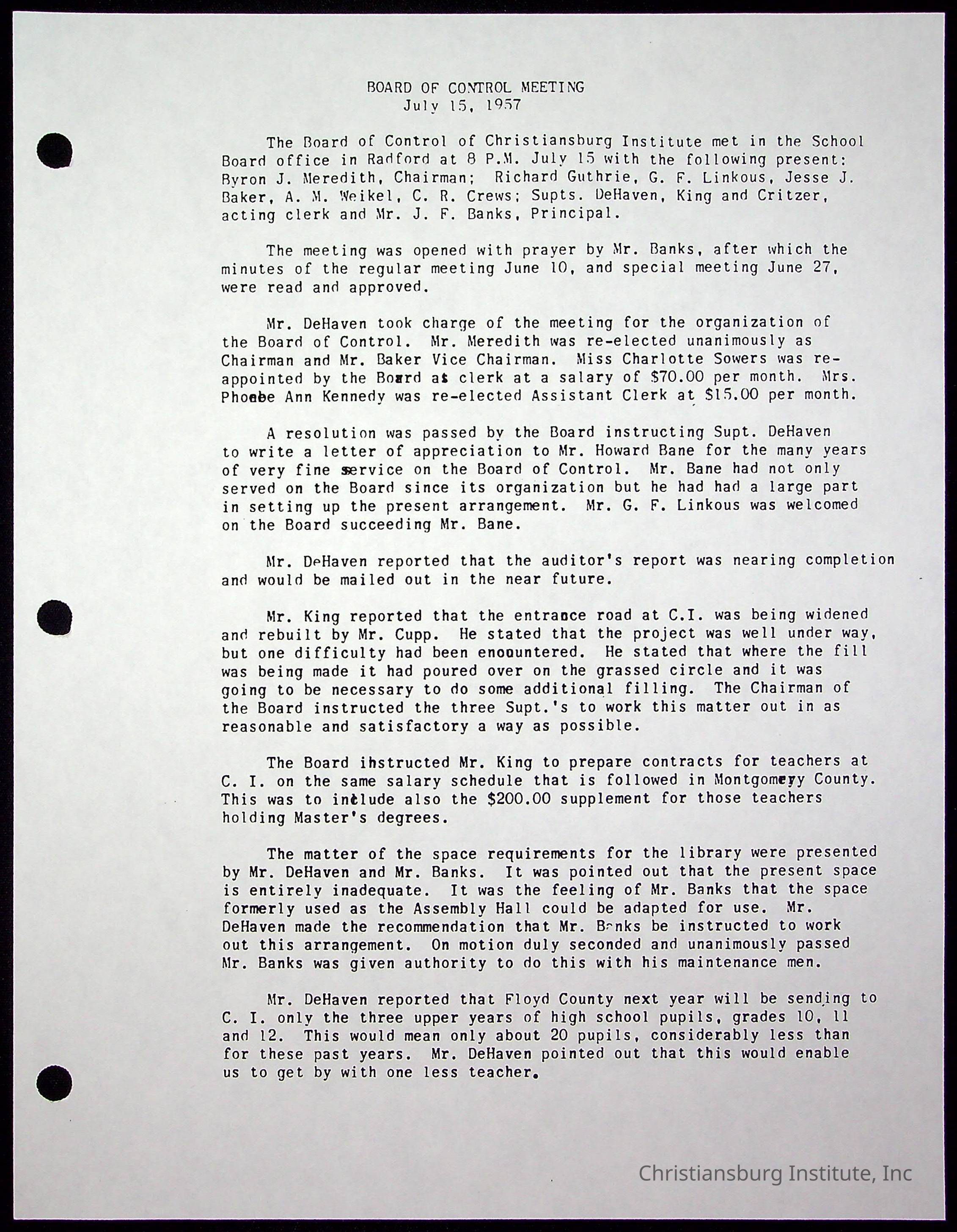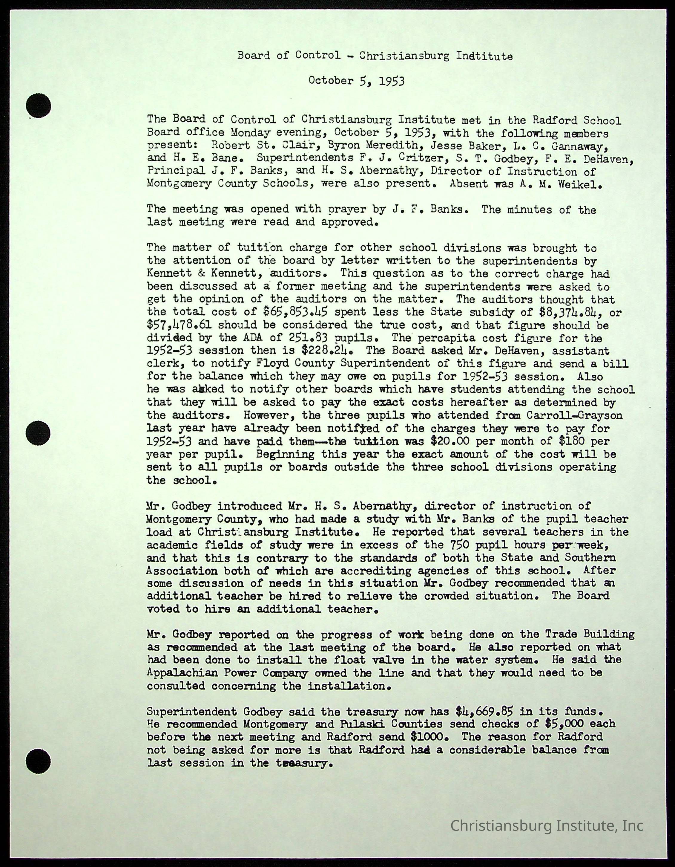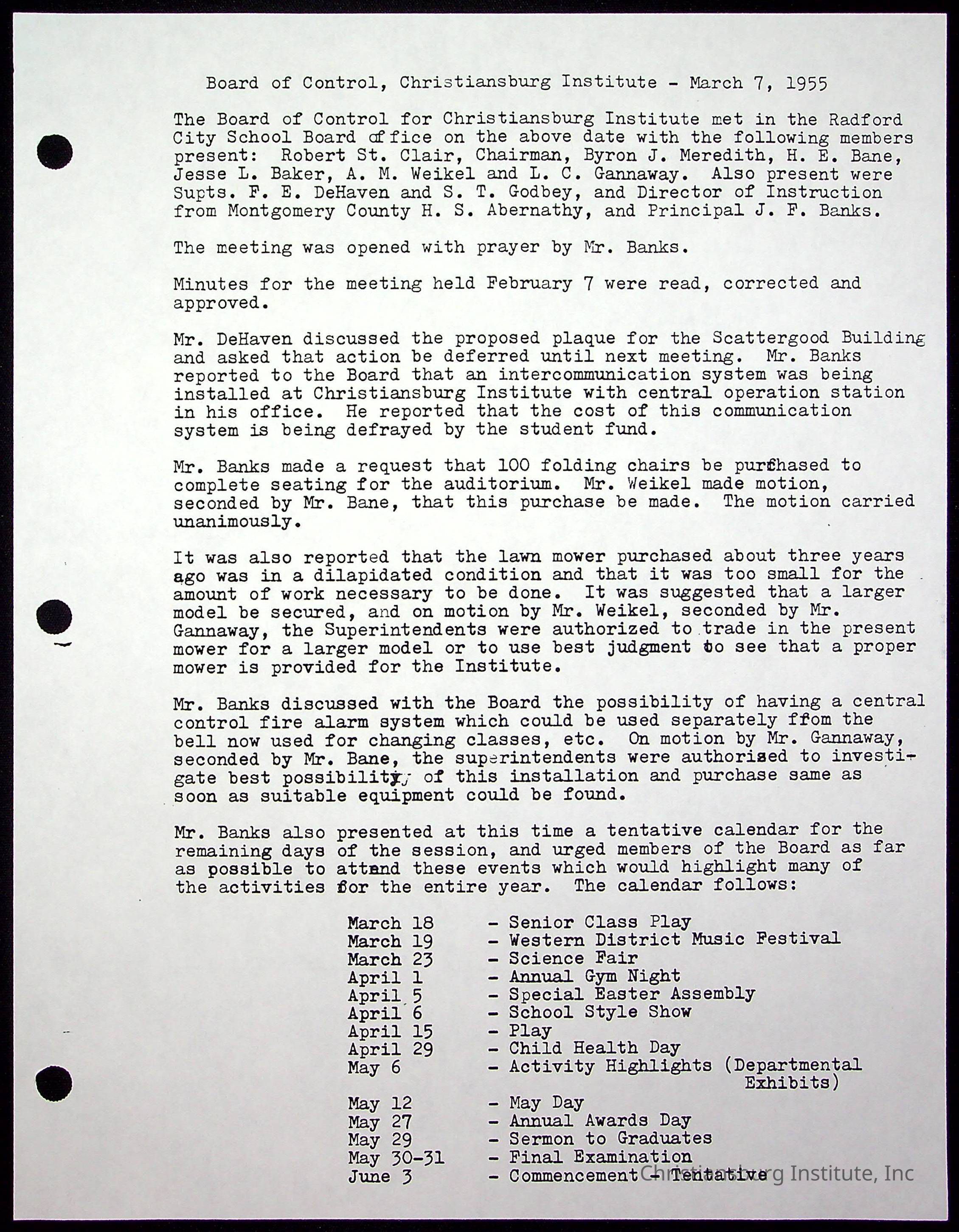 Christiansburg Industrial Institute Board Minutes, July 1947-August 1963 (photocopy)Description