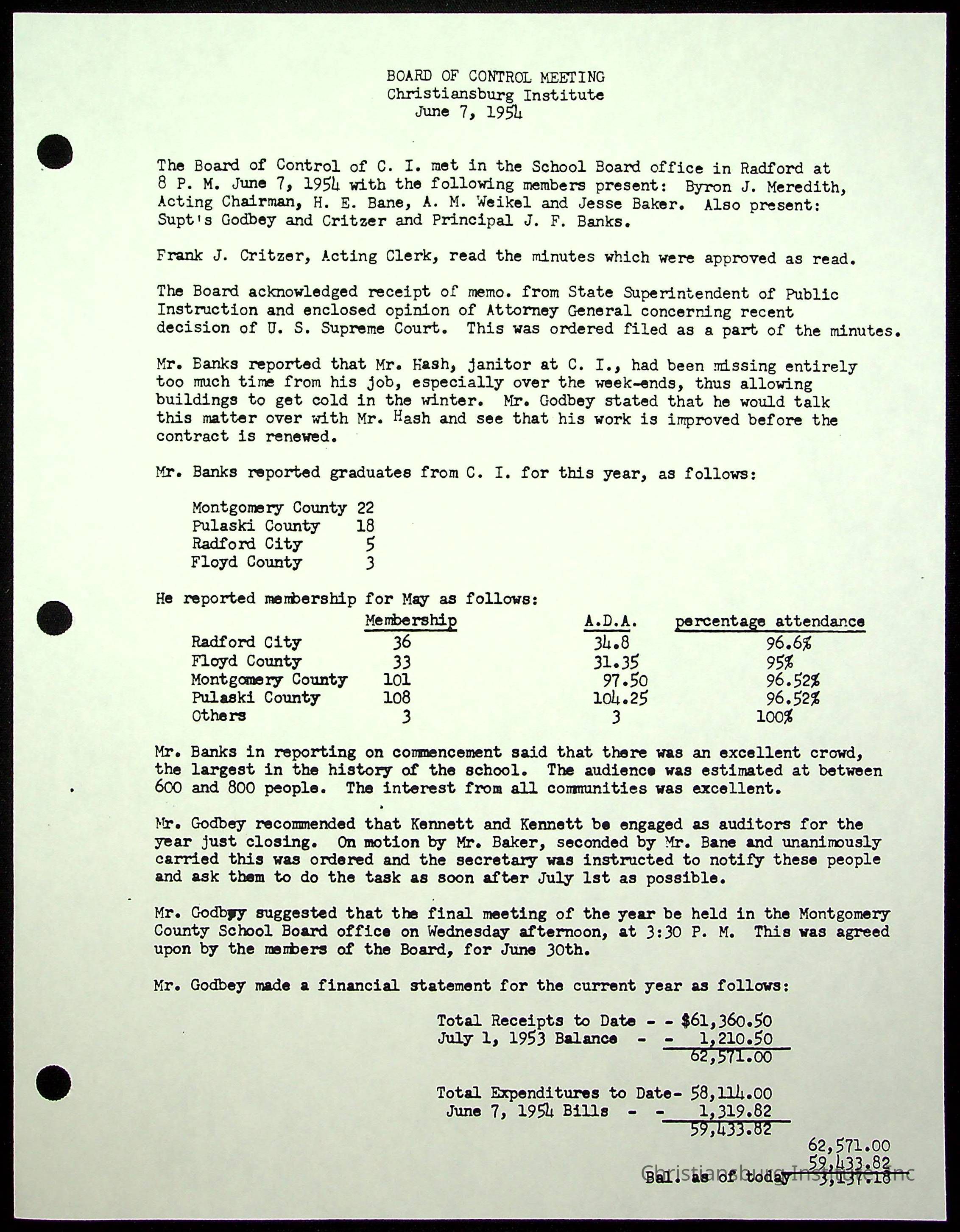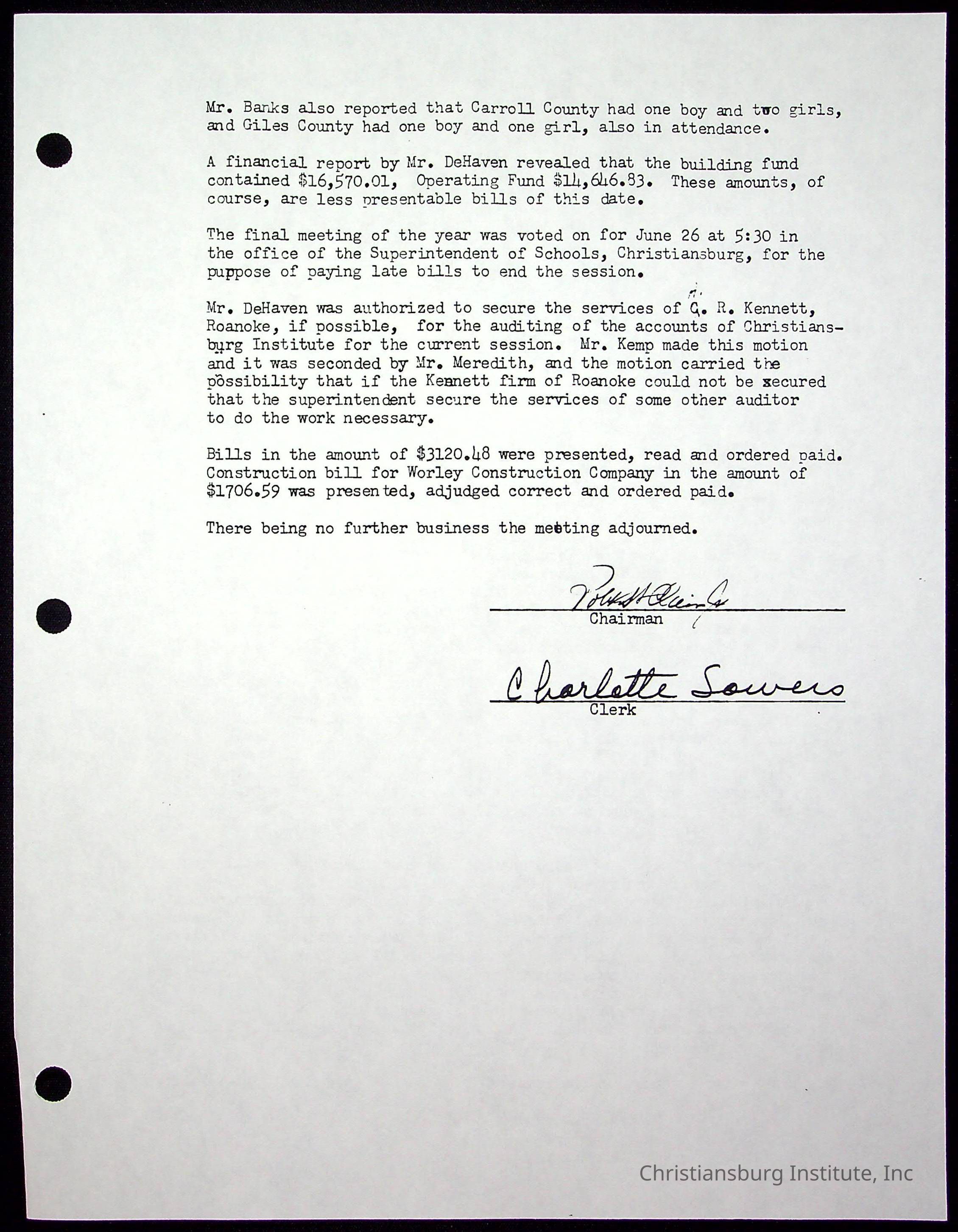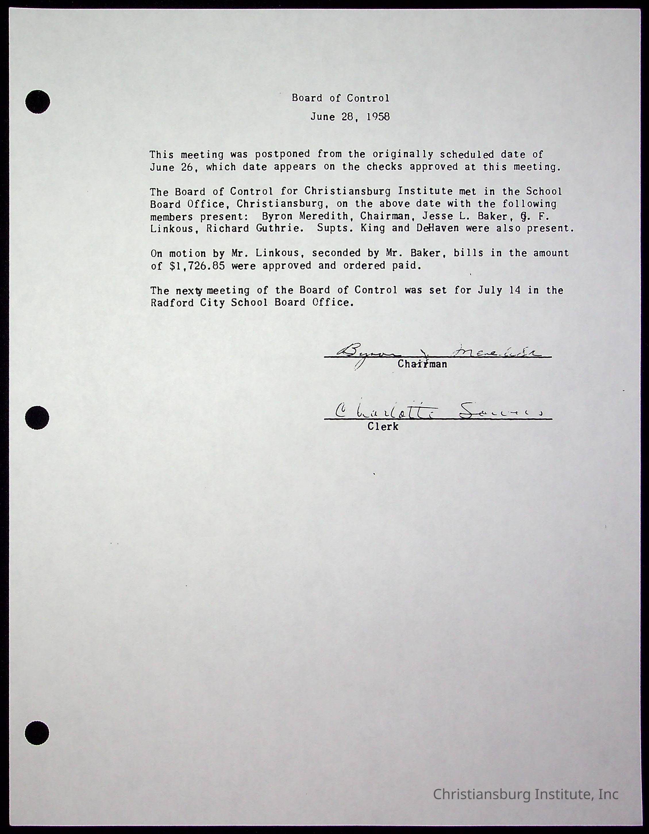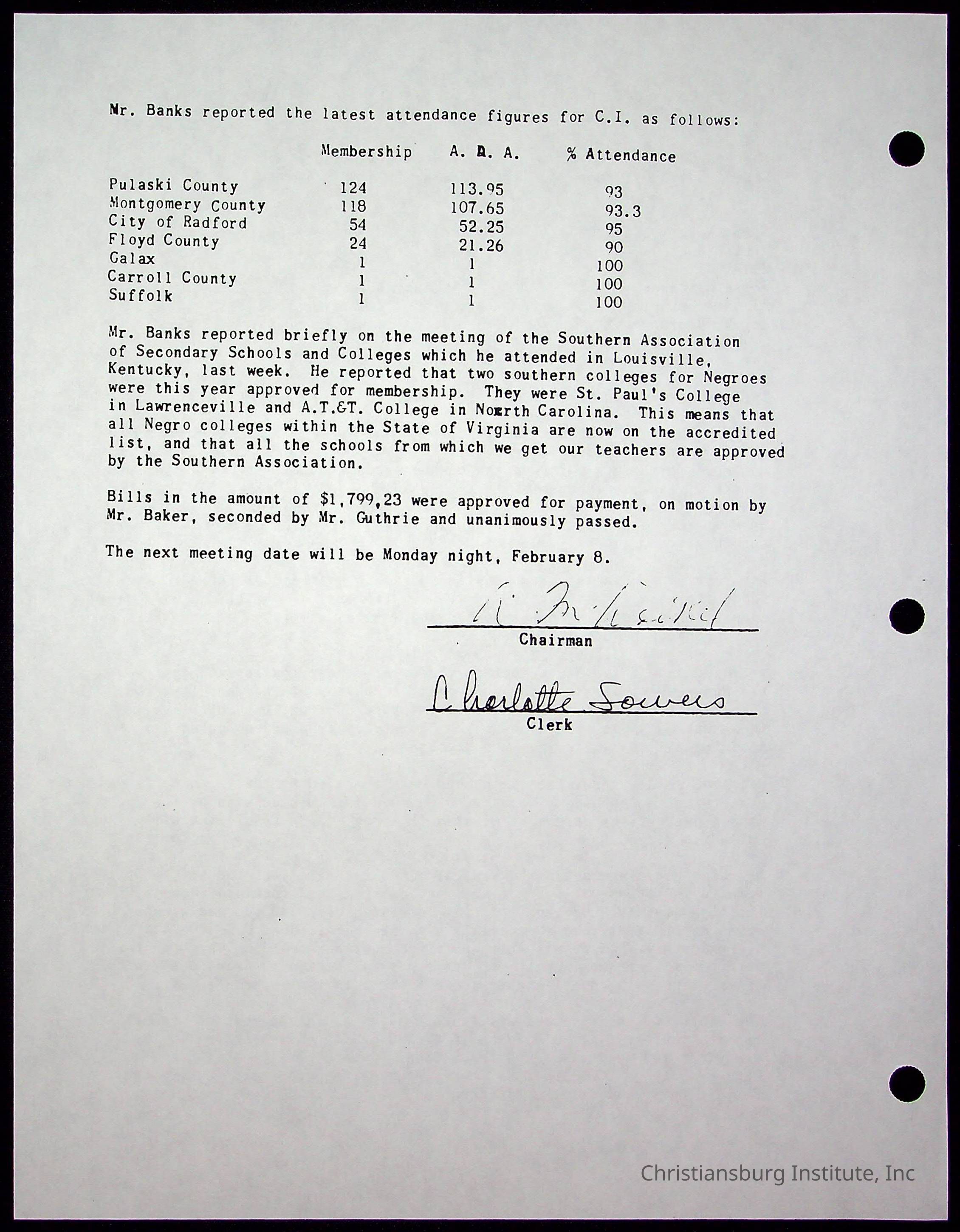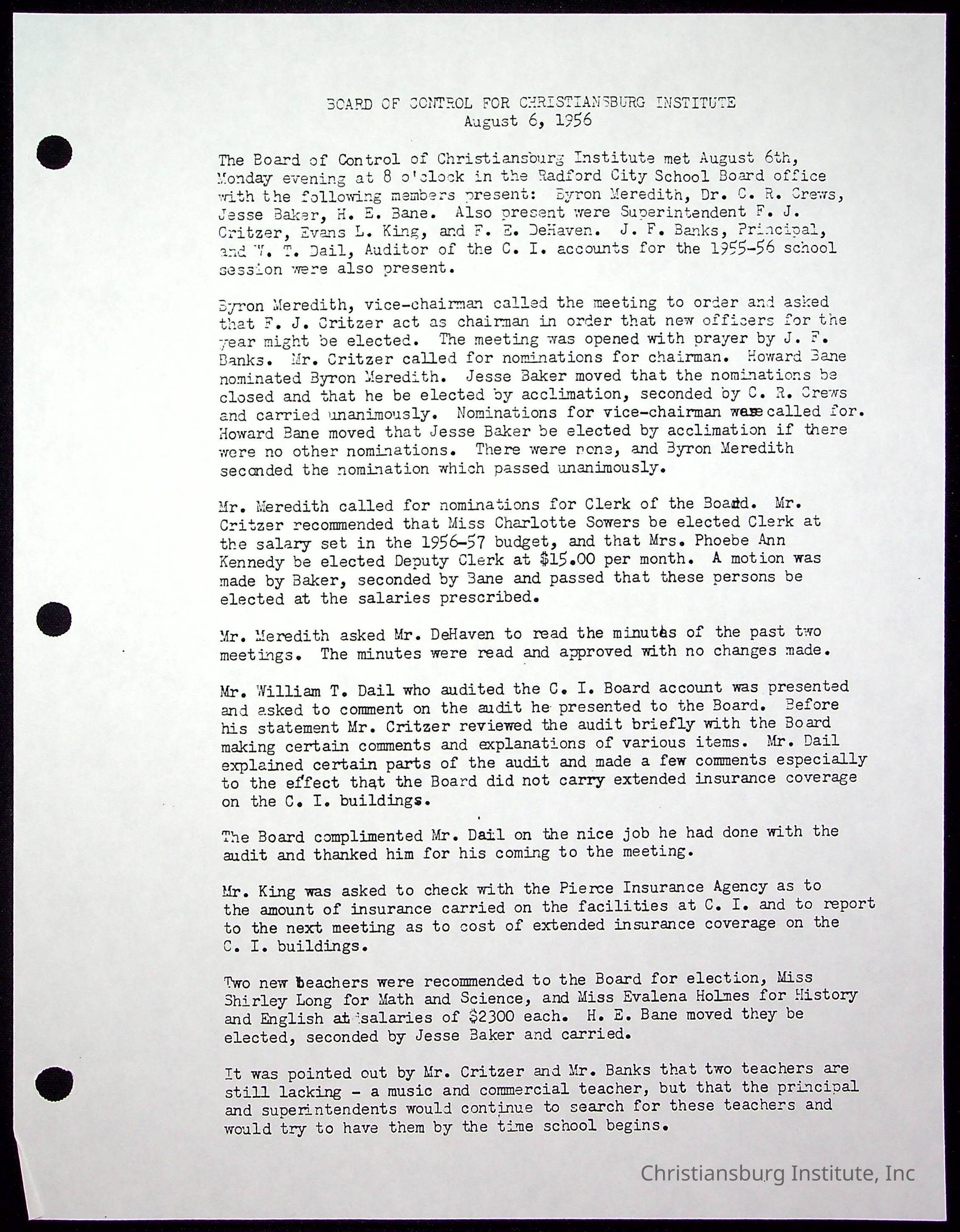 Christiansburg Industrial Institute Board Minutes, July 1947-August 1963 (photocopy)Description