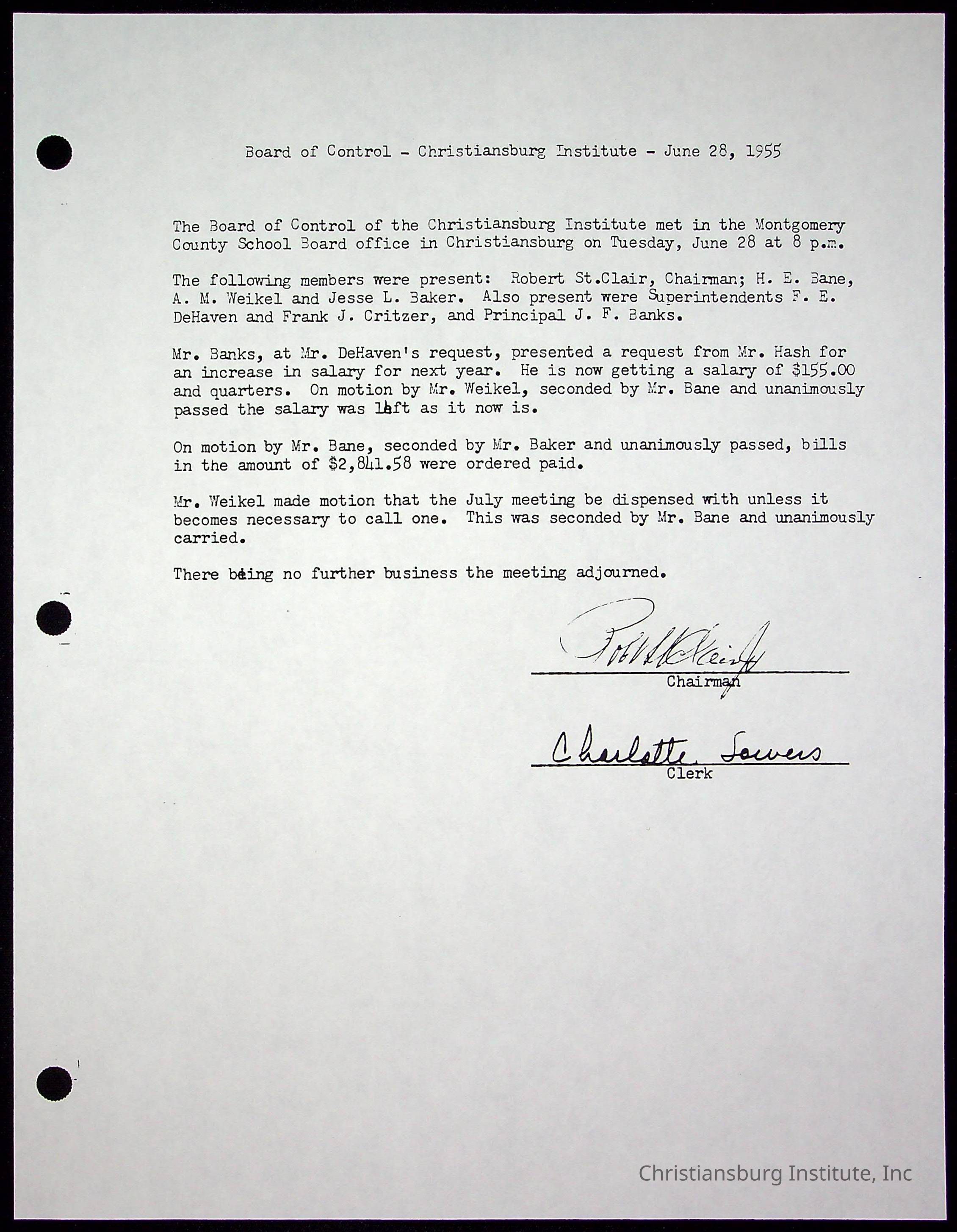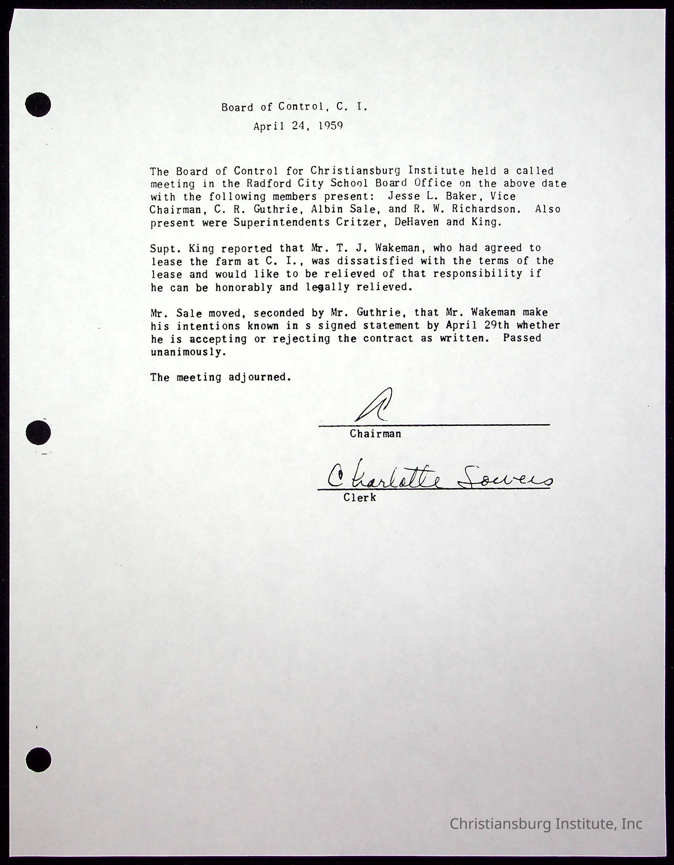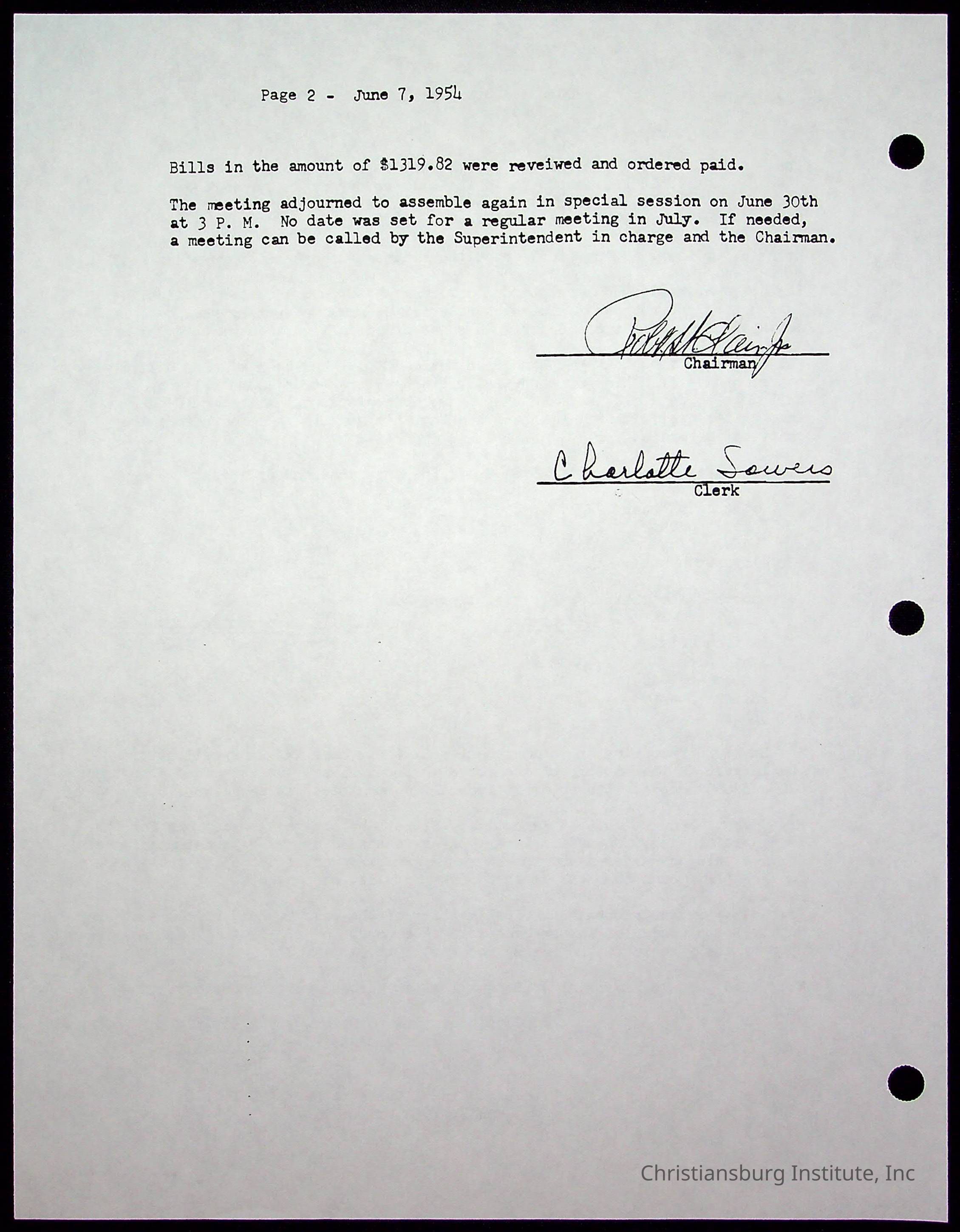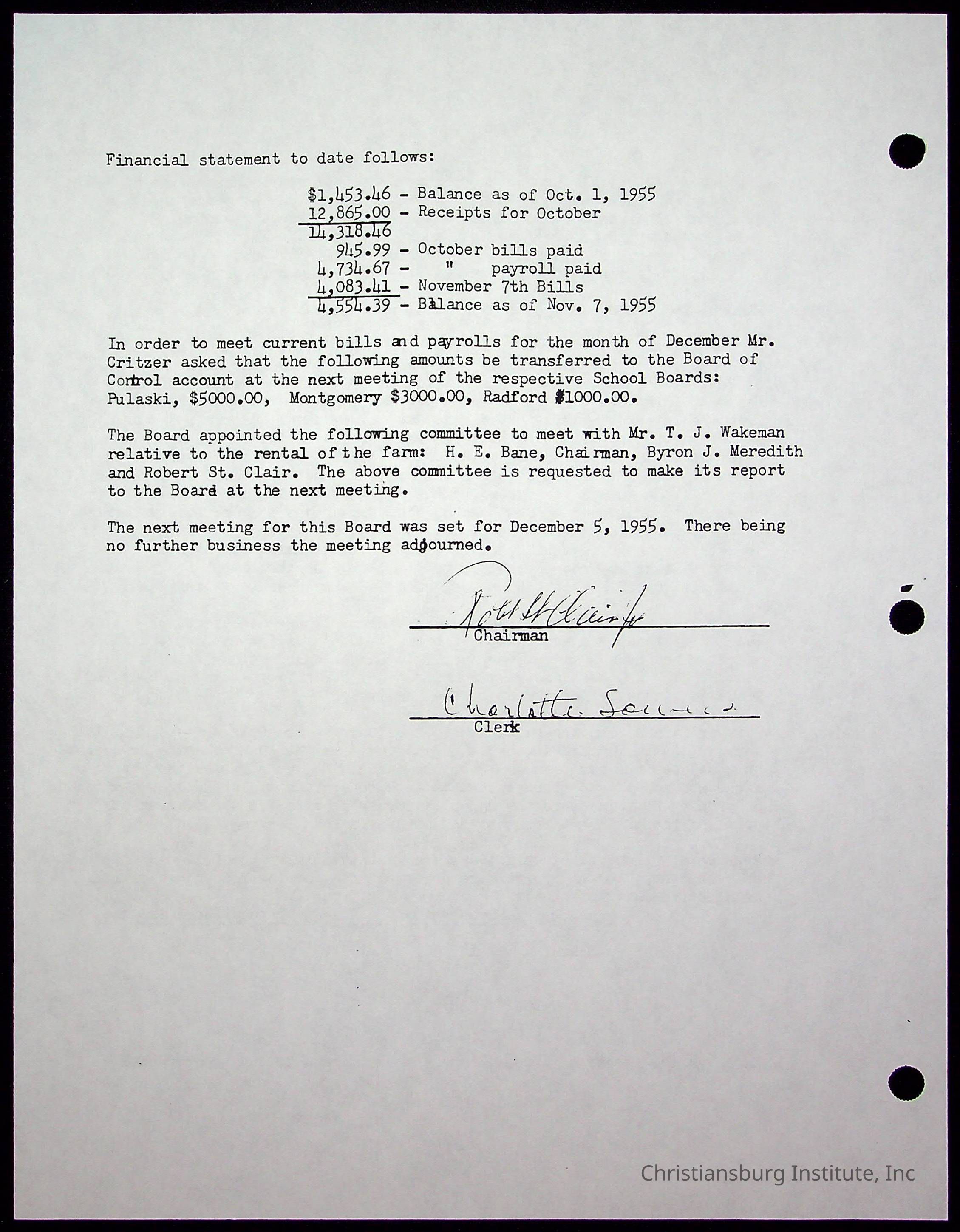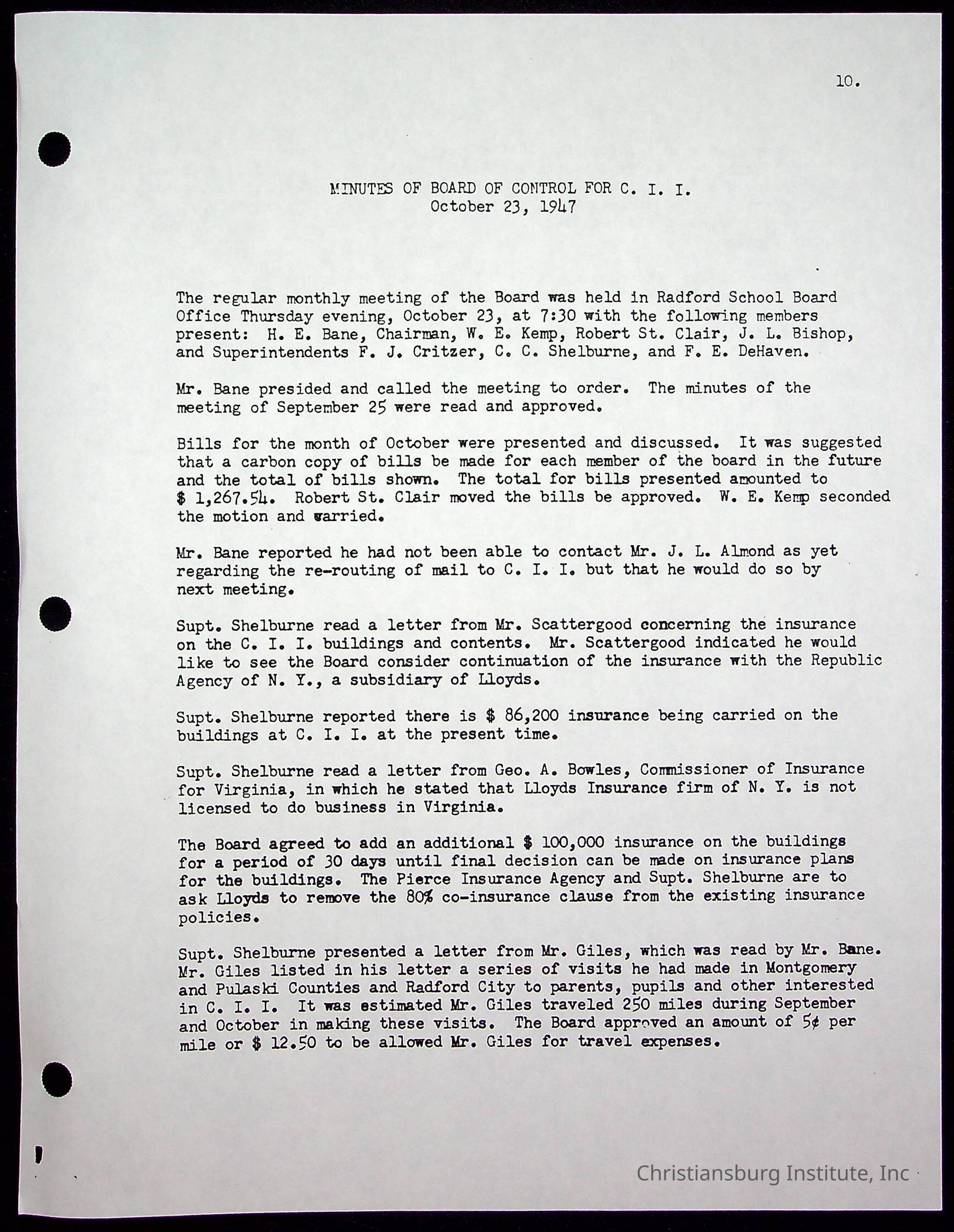 Christiansburg Industrial Institute Board Minutes, July 1947-August 1963 (photocopy)Description