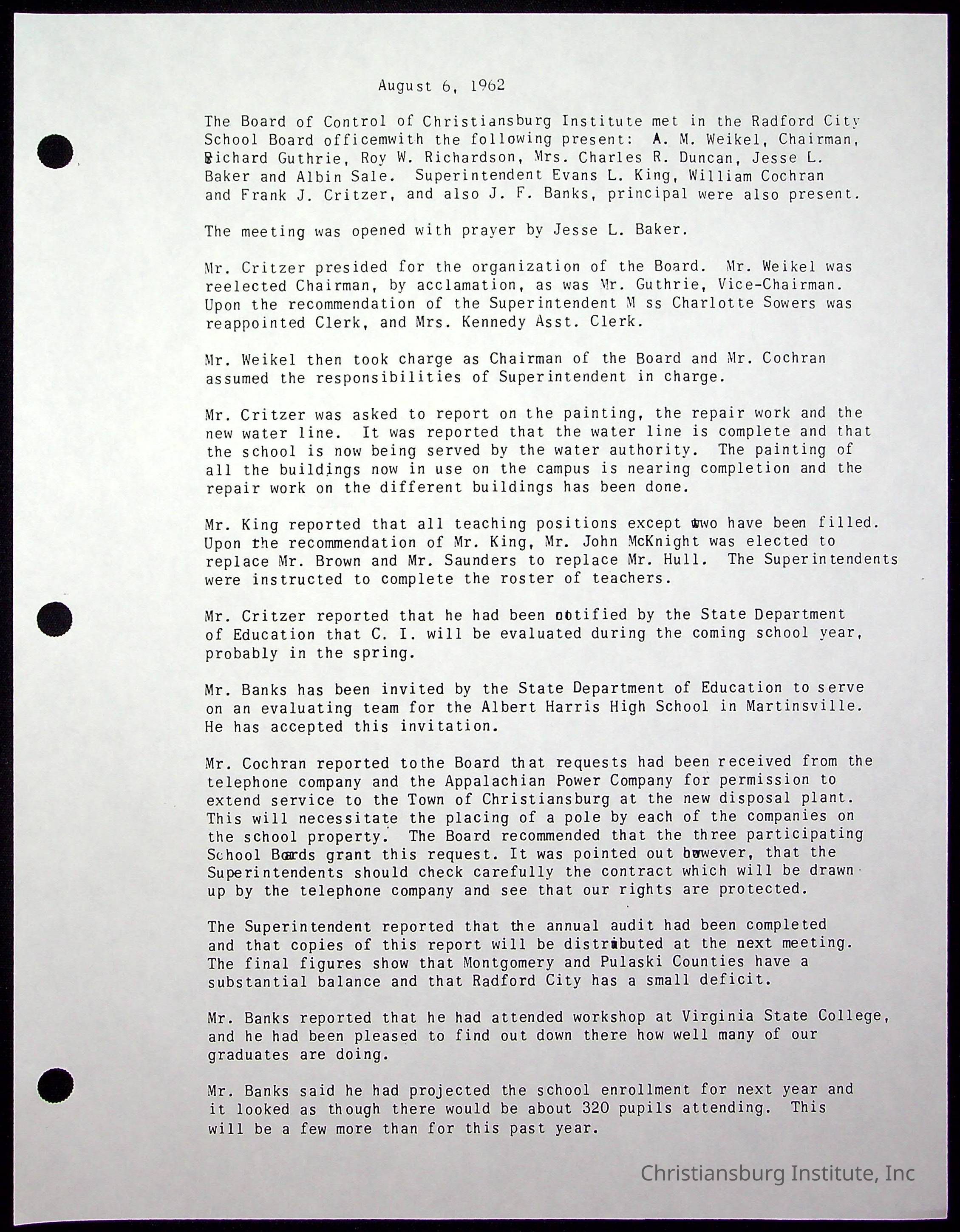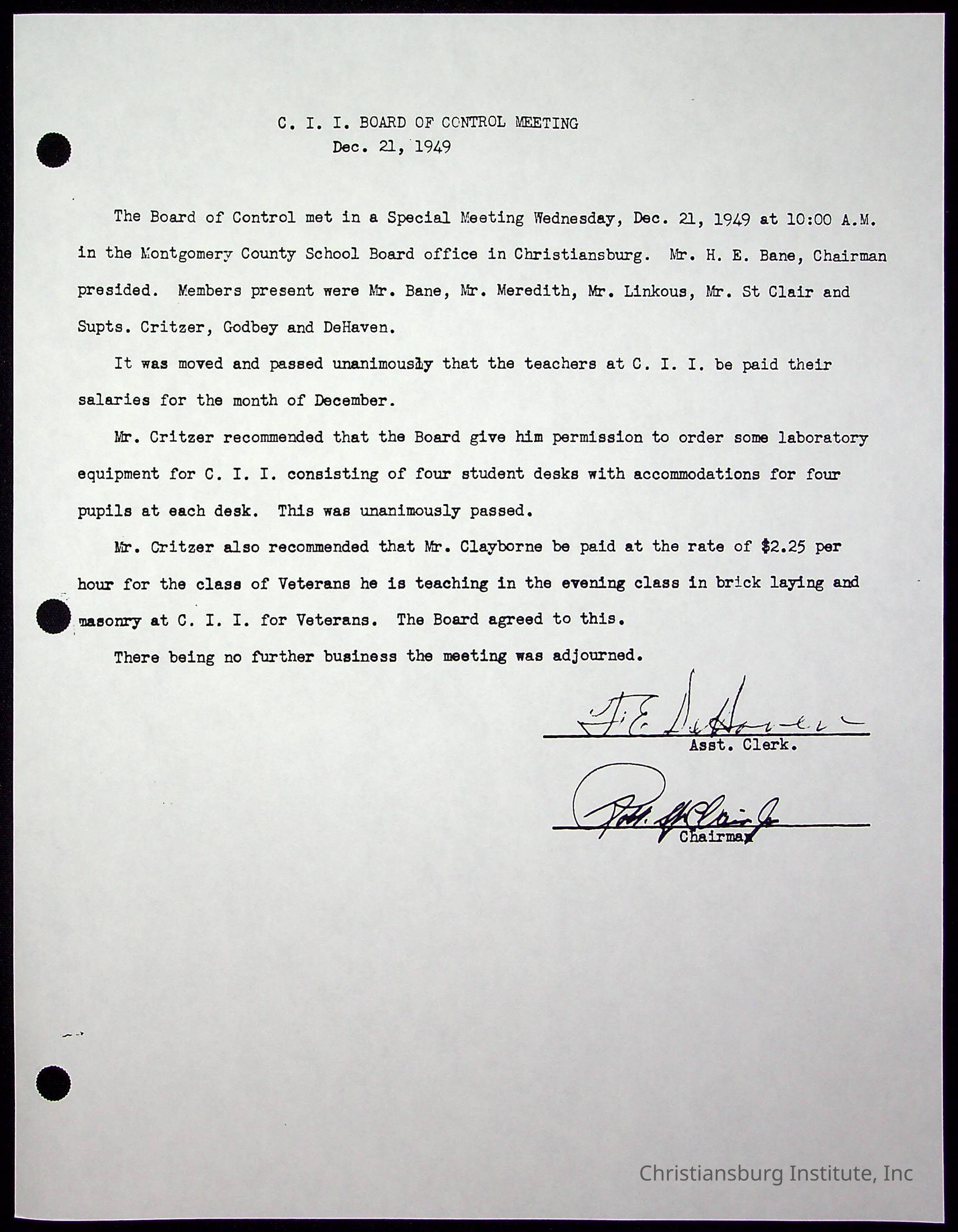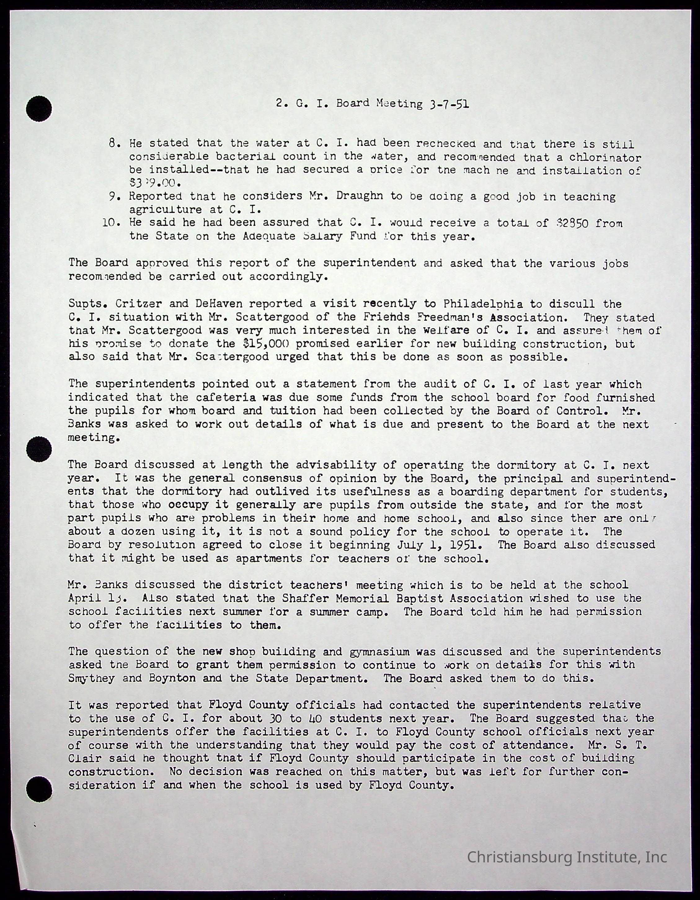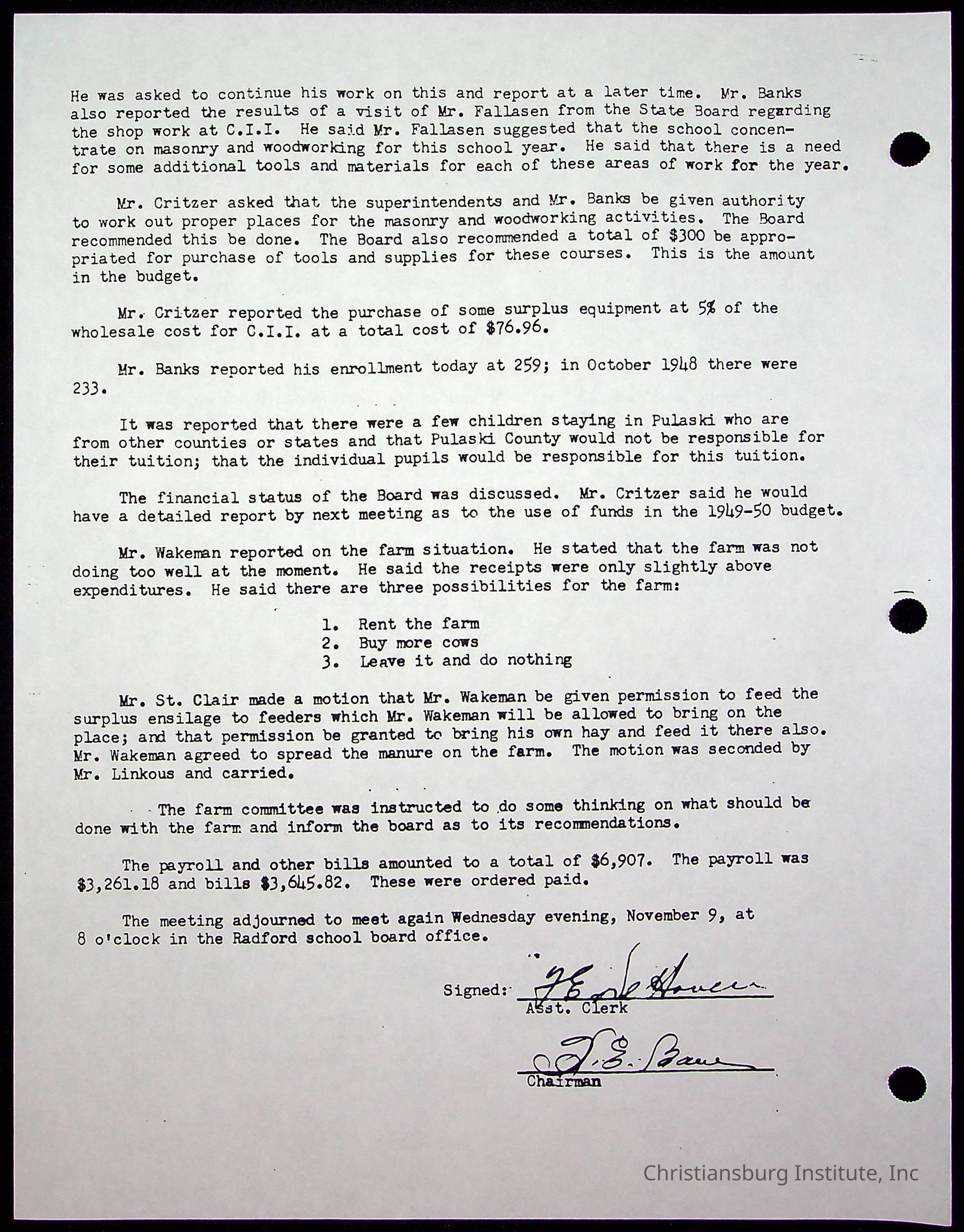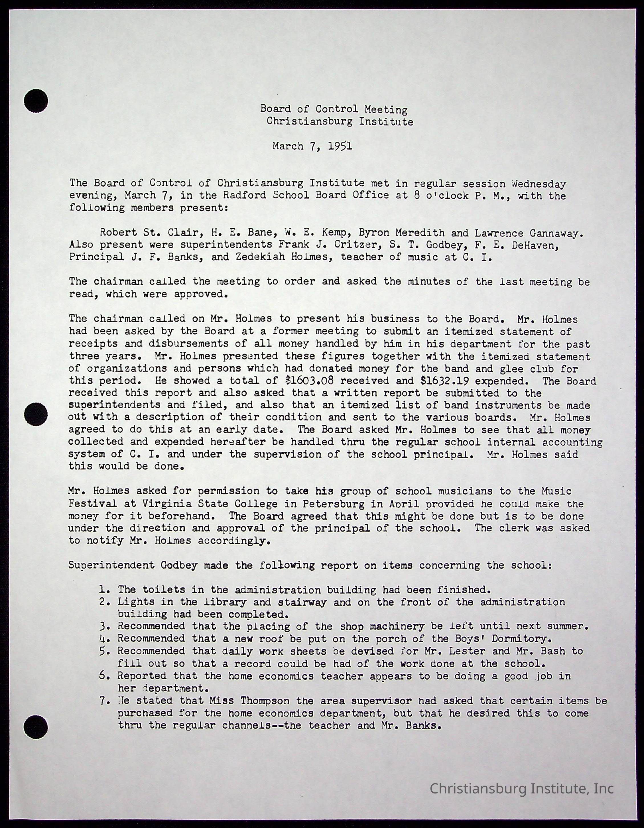 Christiansburg Industrial Institute Board Minutes, July 1947-August 1963 (photocopy)Description