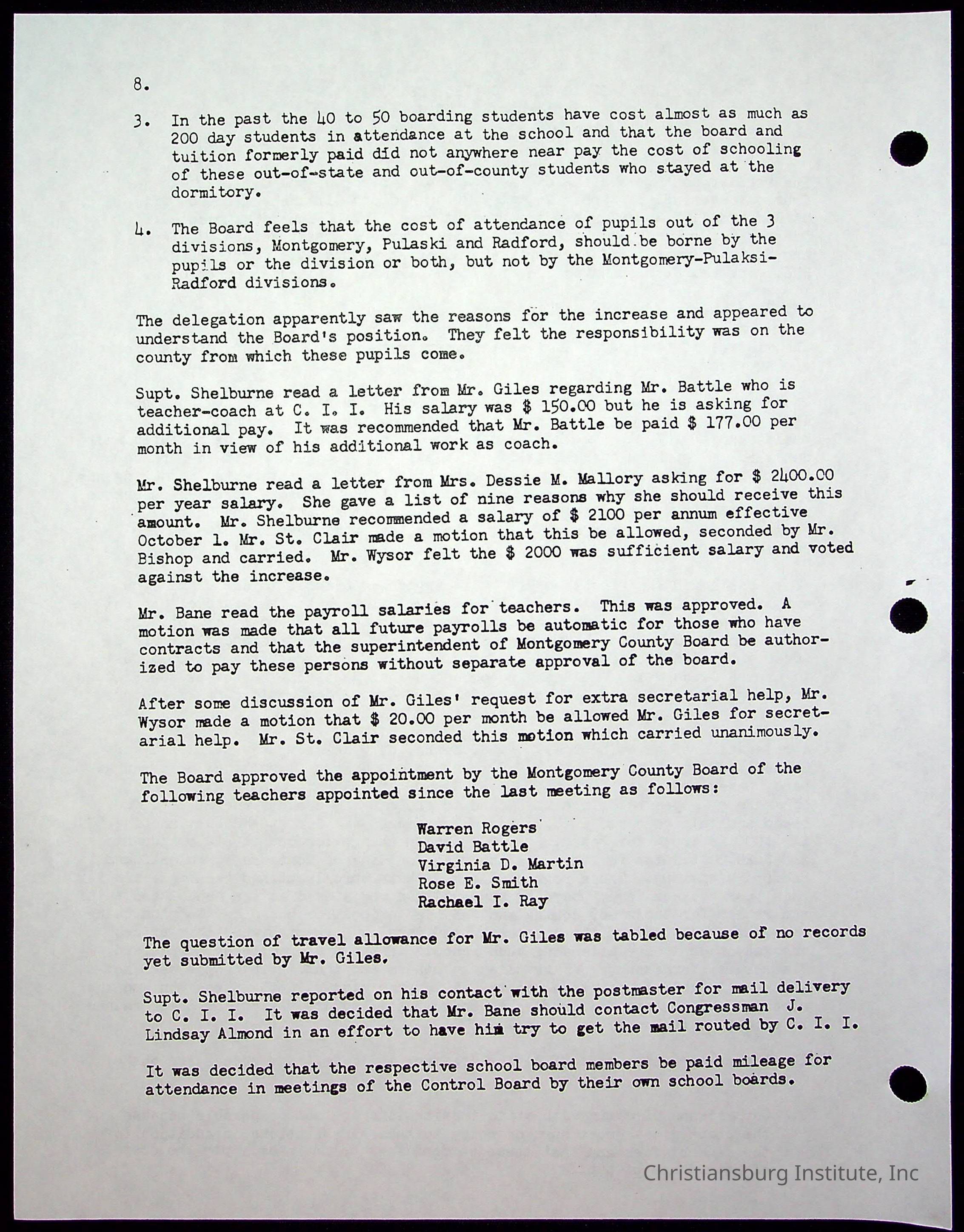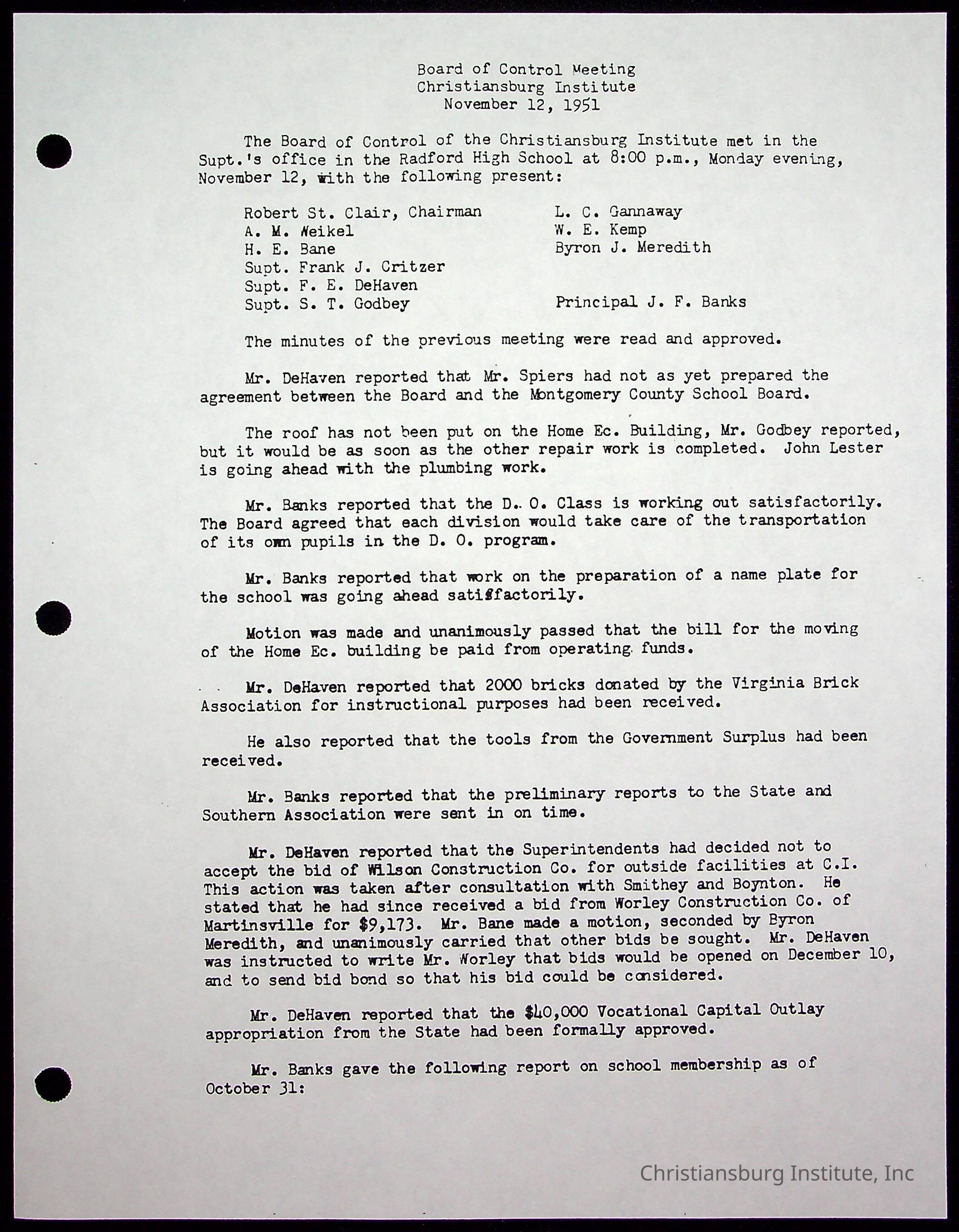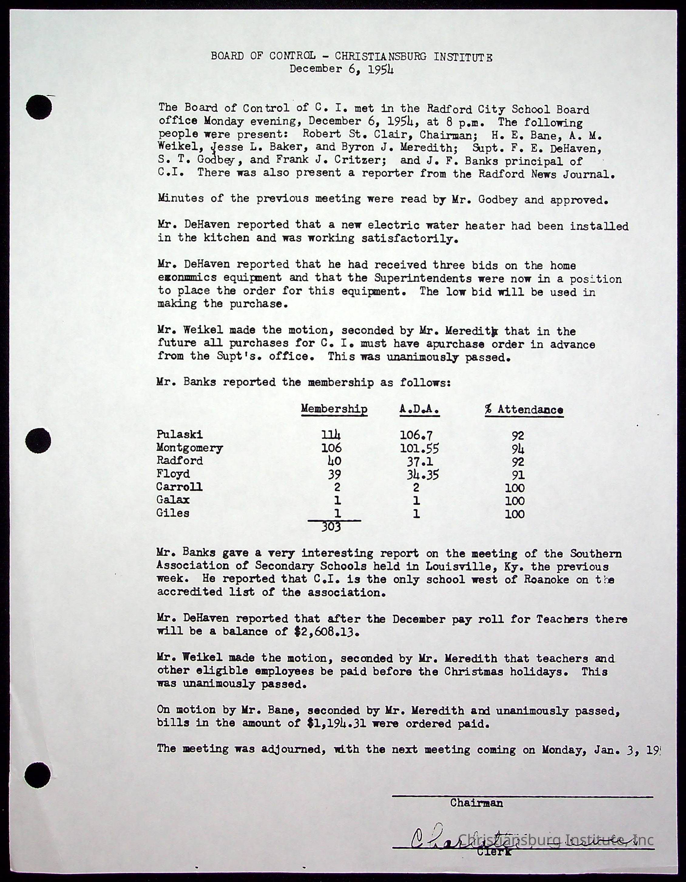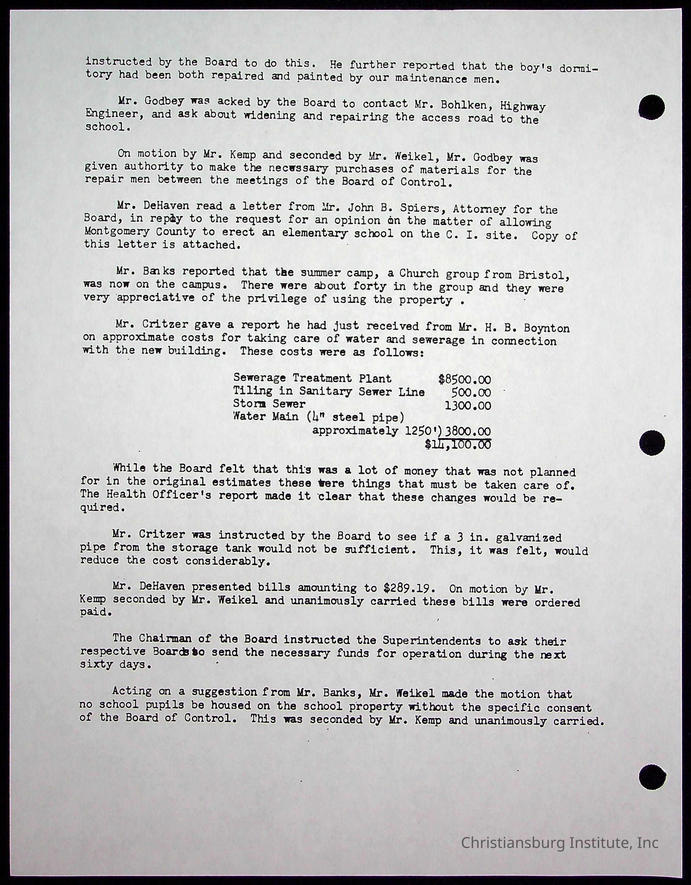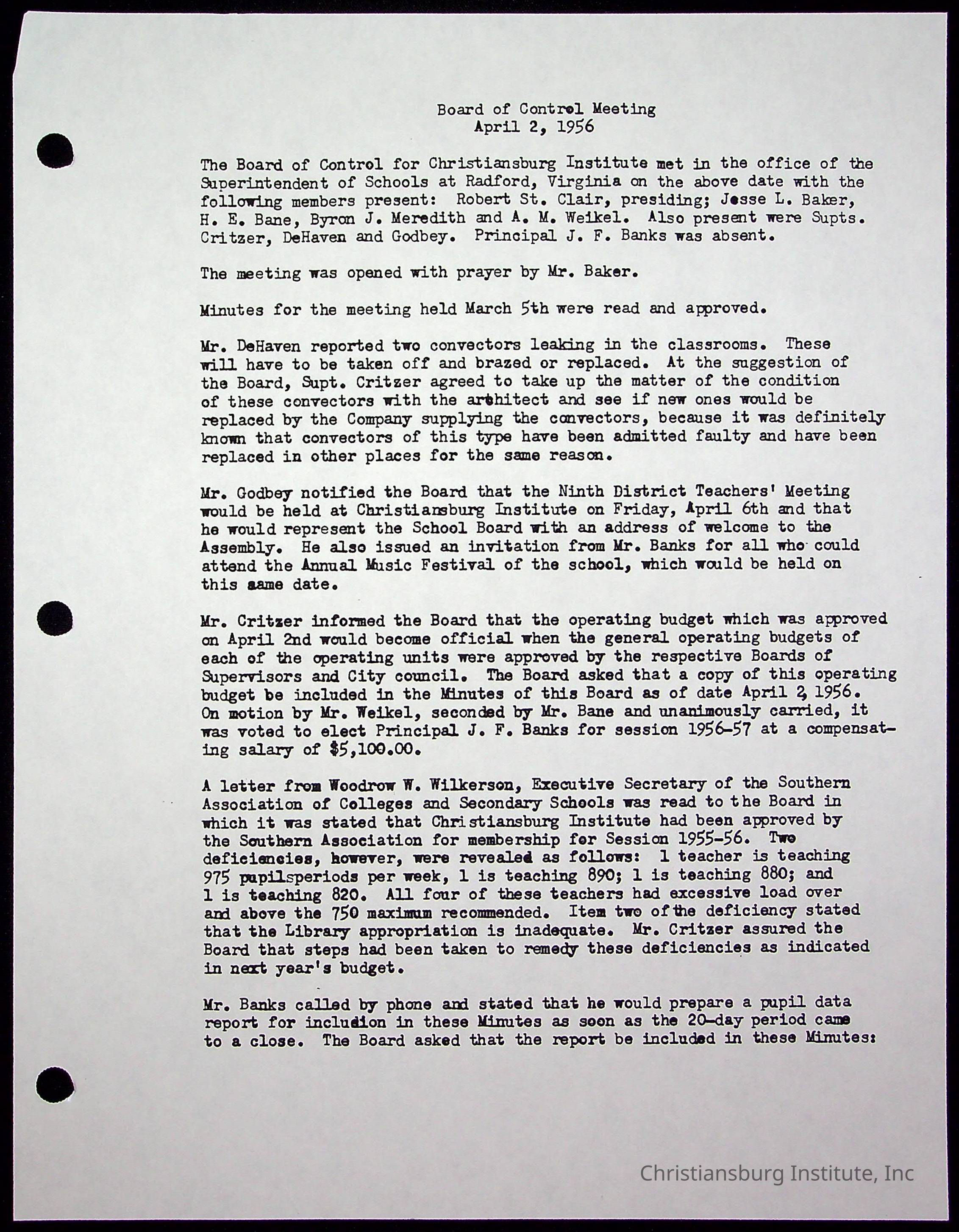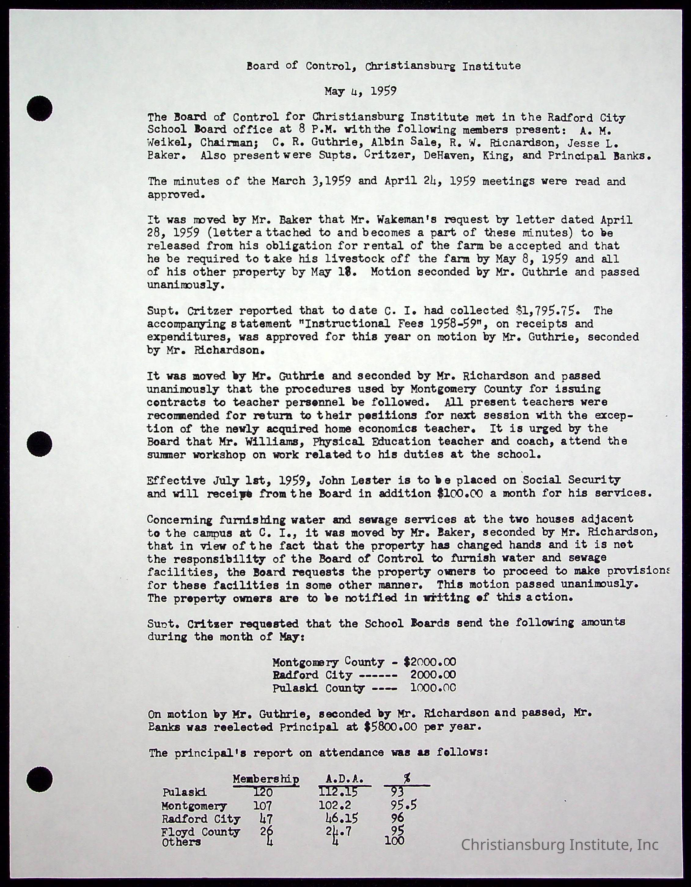 Christiansburg Industrial Institute Board Minutes, July 1947-August 1963 (photocopy)Description