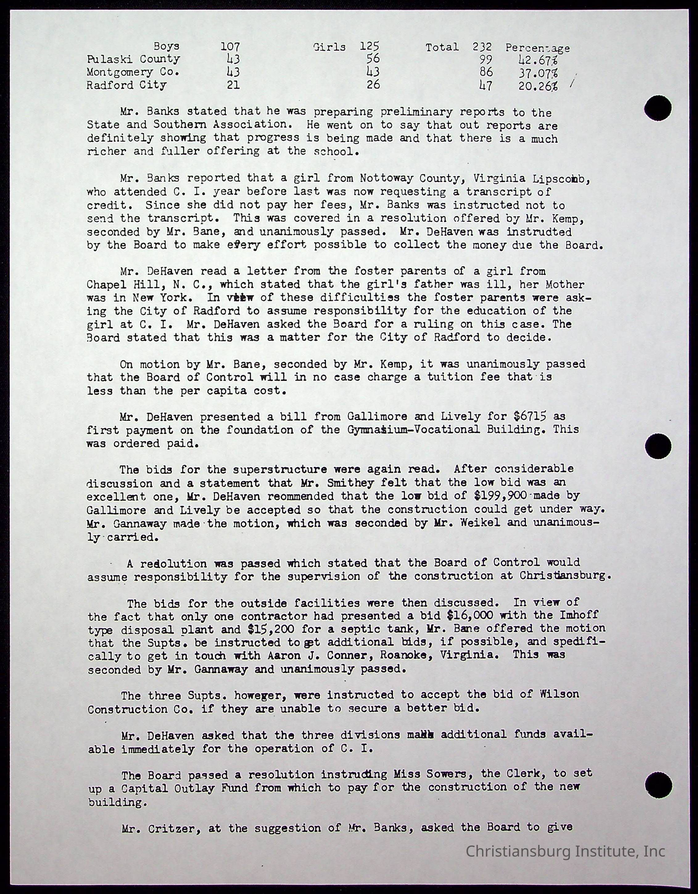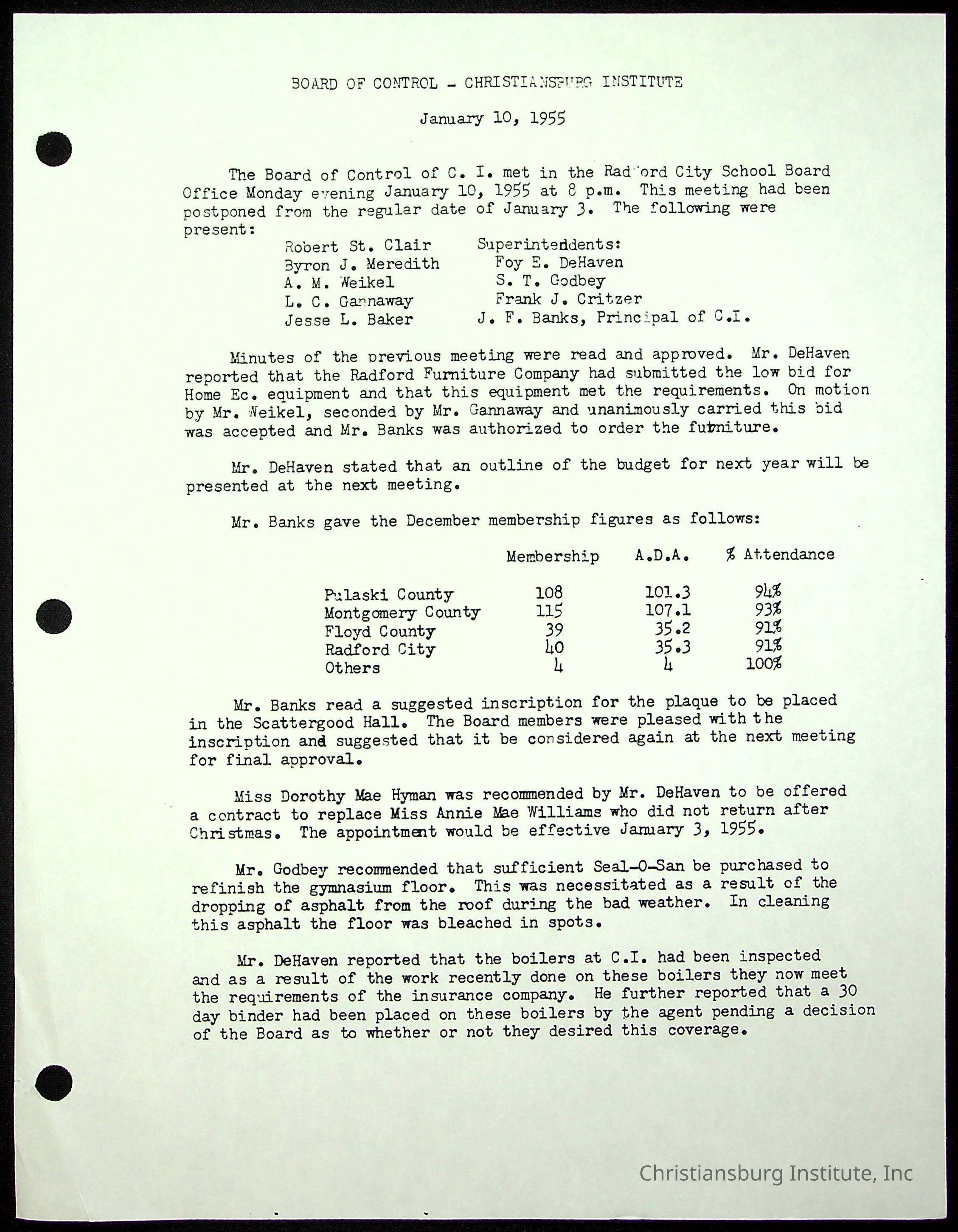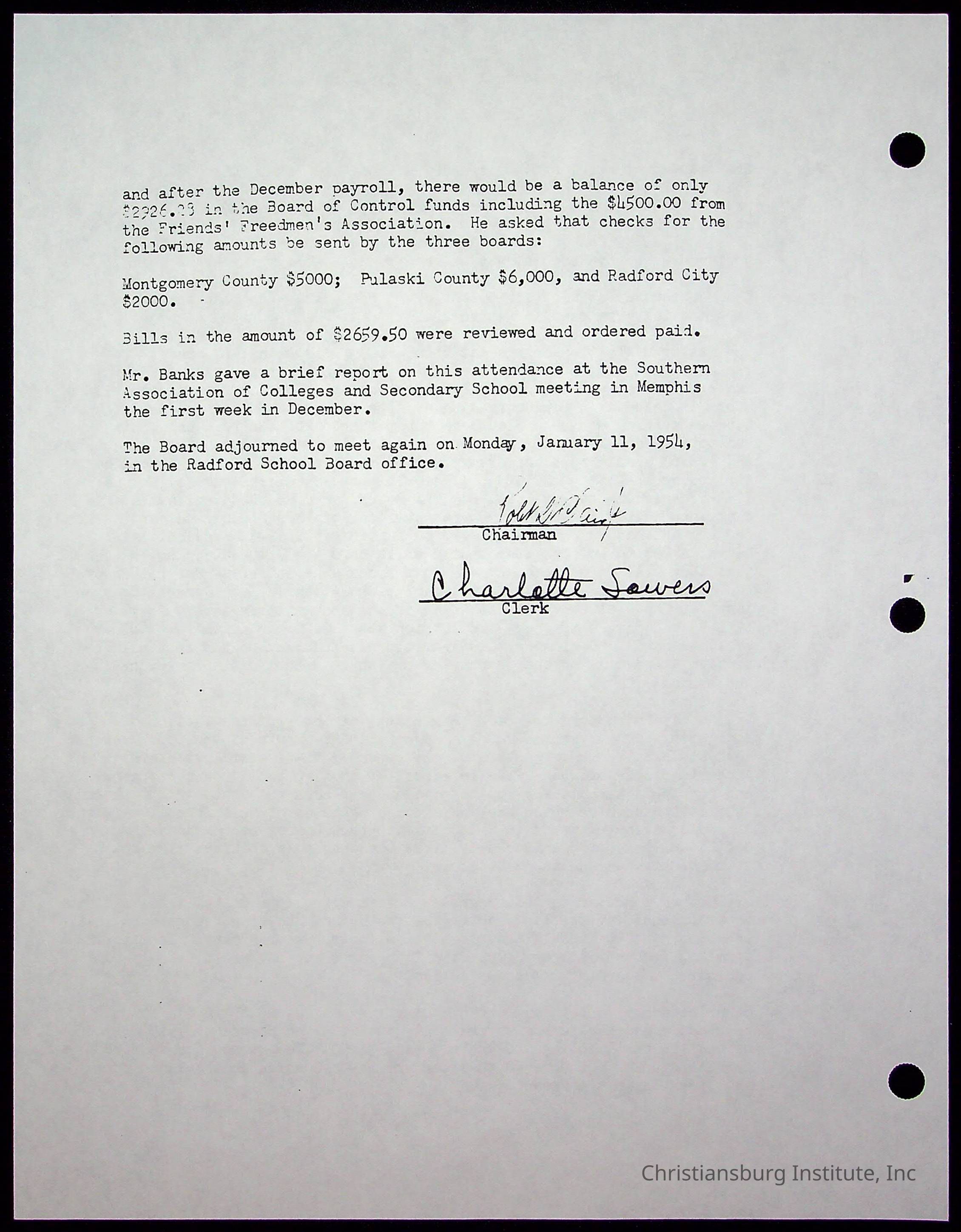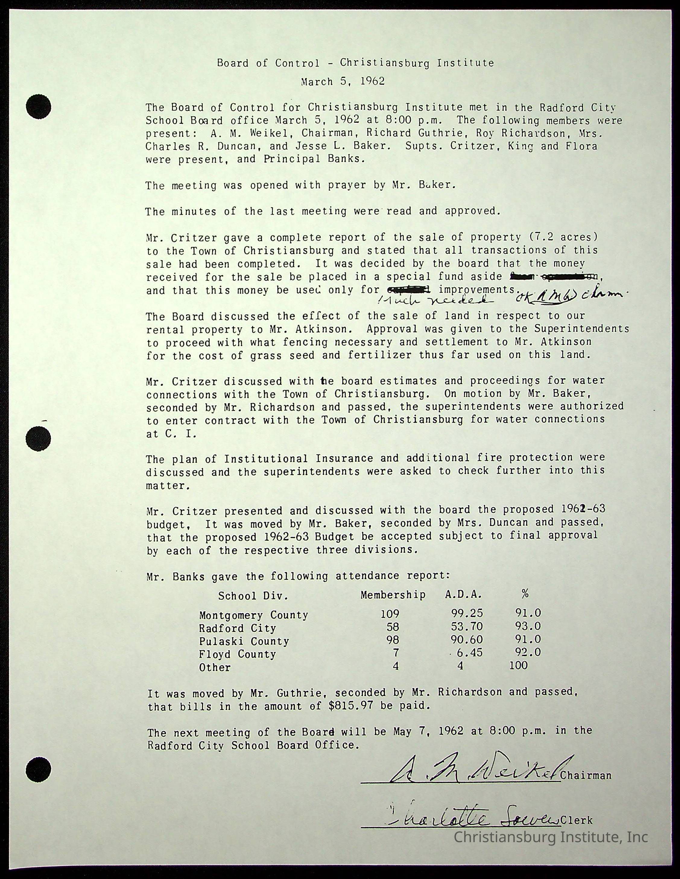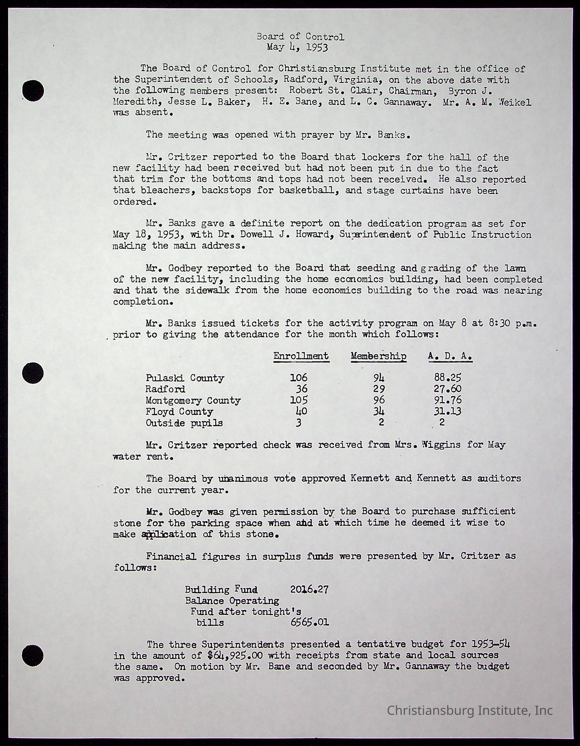 Christiansburg Industrial Institute Board Minutes, July 1947-August 1963 (photocopy)Description