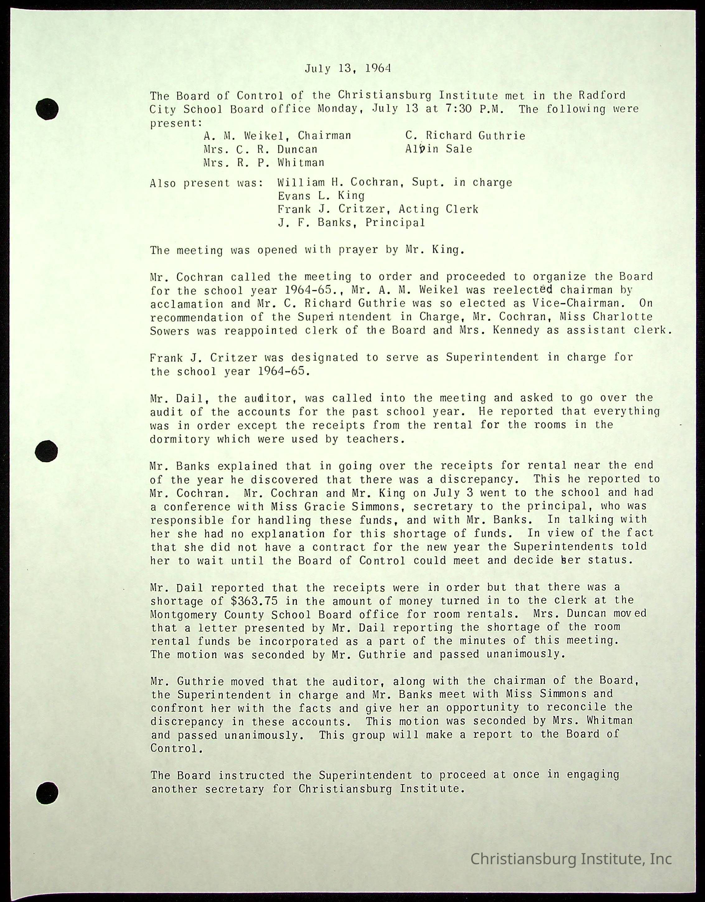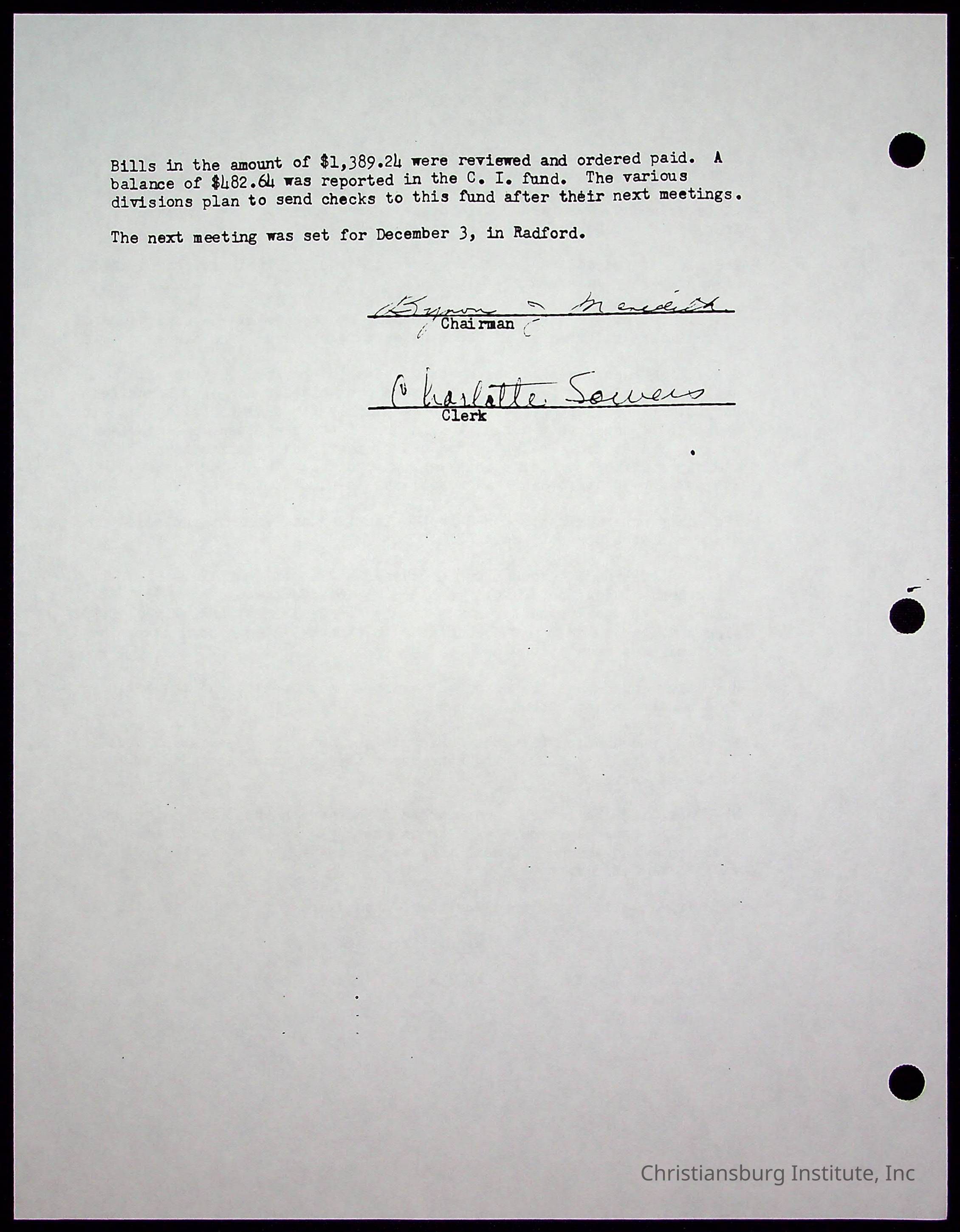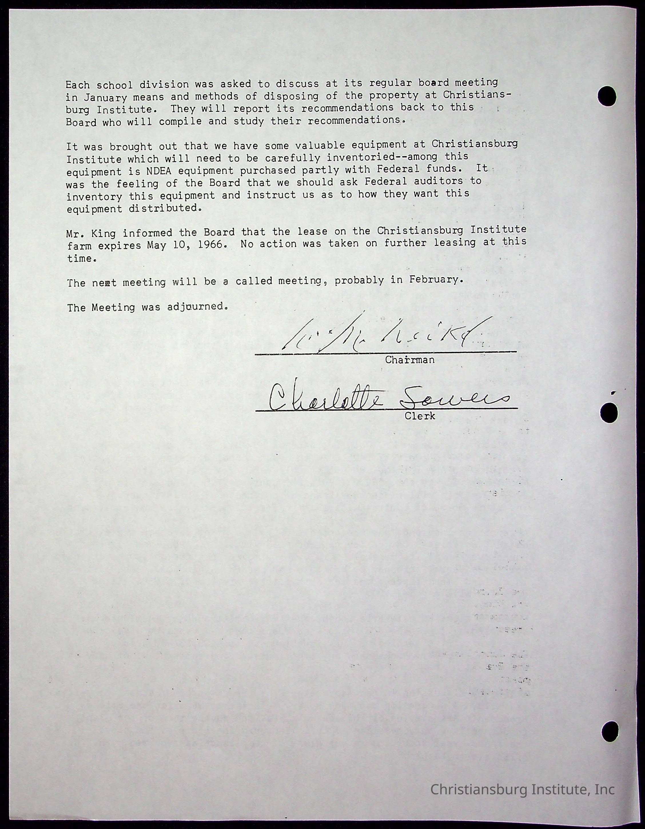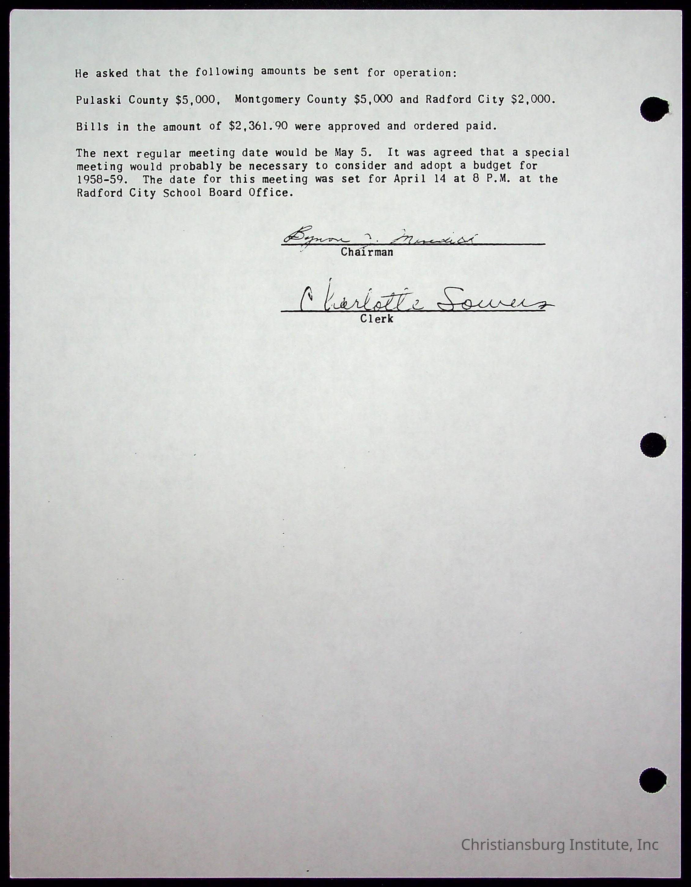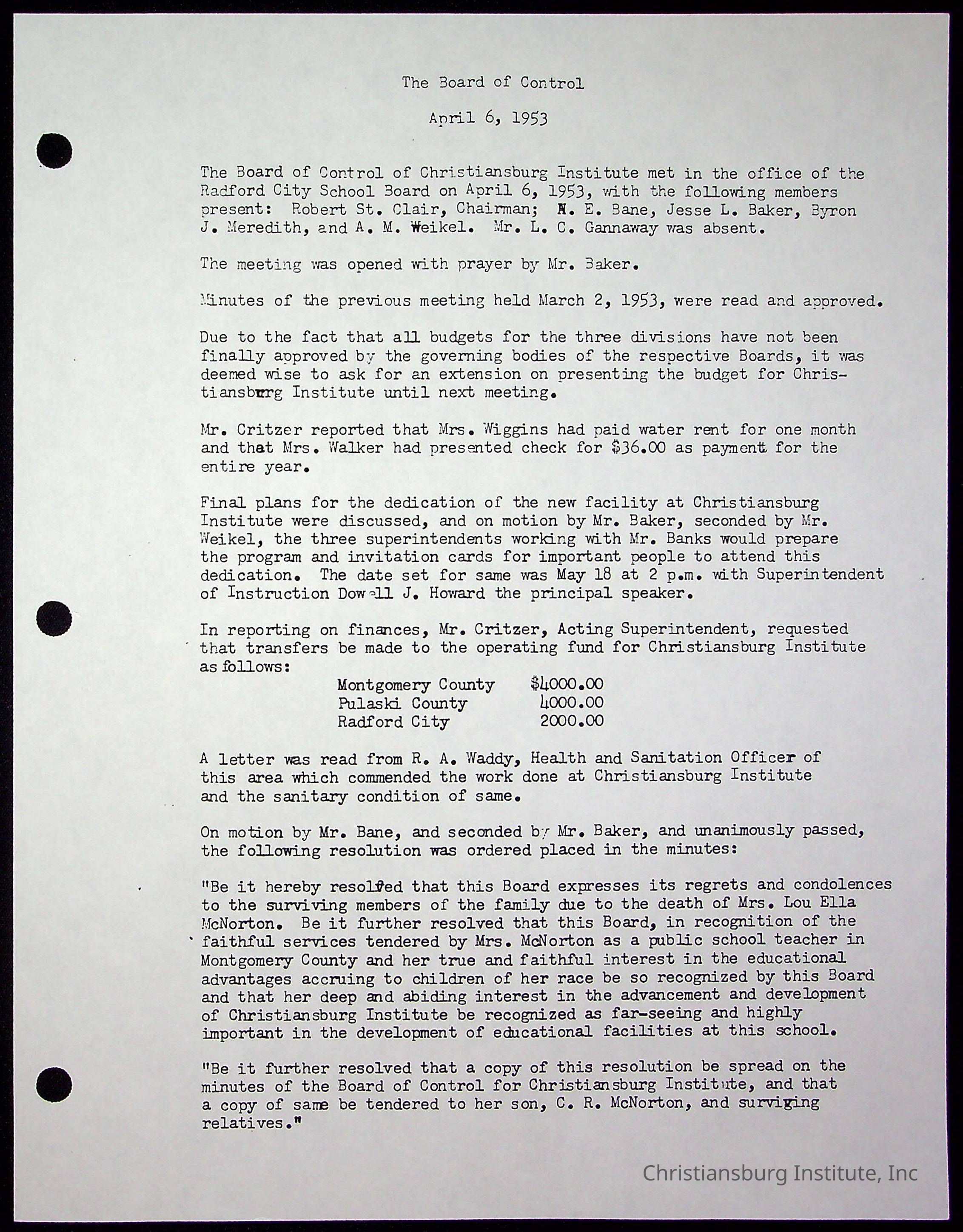 Christiansburg Industrial Institute Board Minutes, July 1947-August 1963 (photocopy)Description