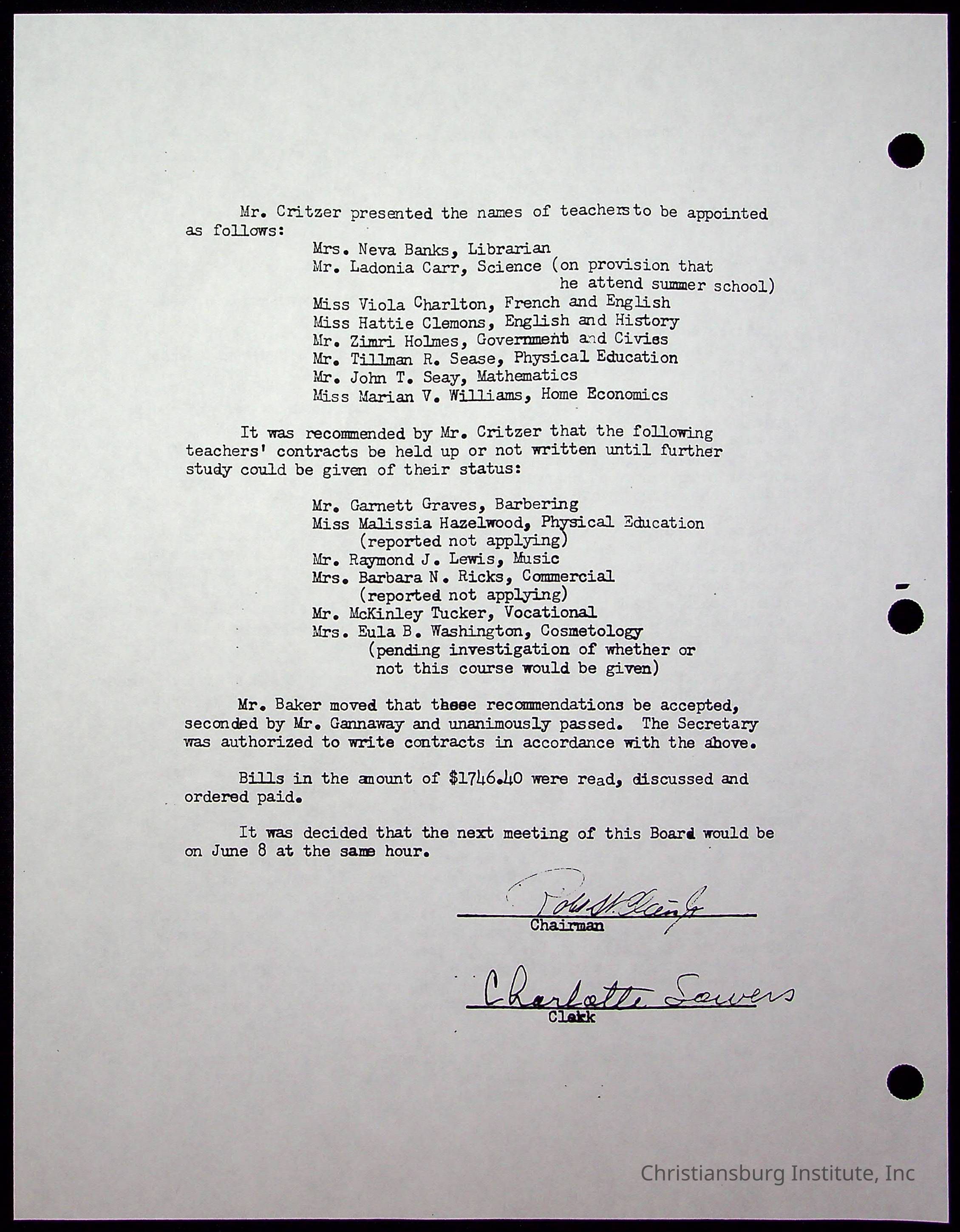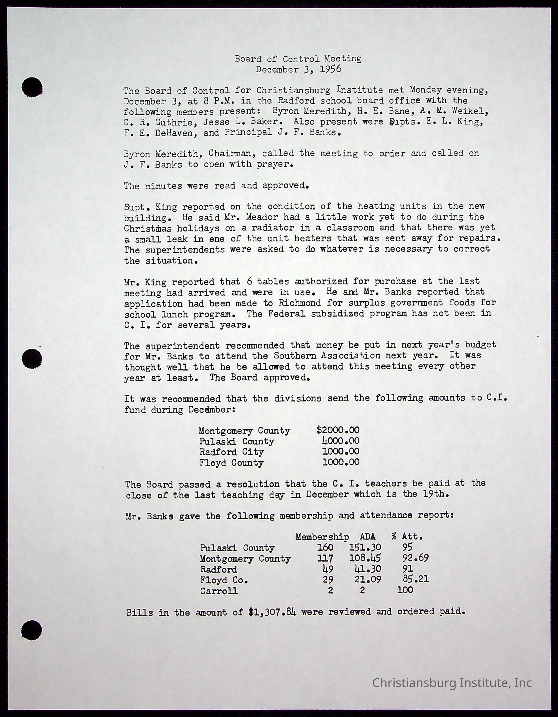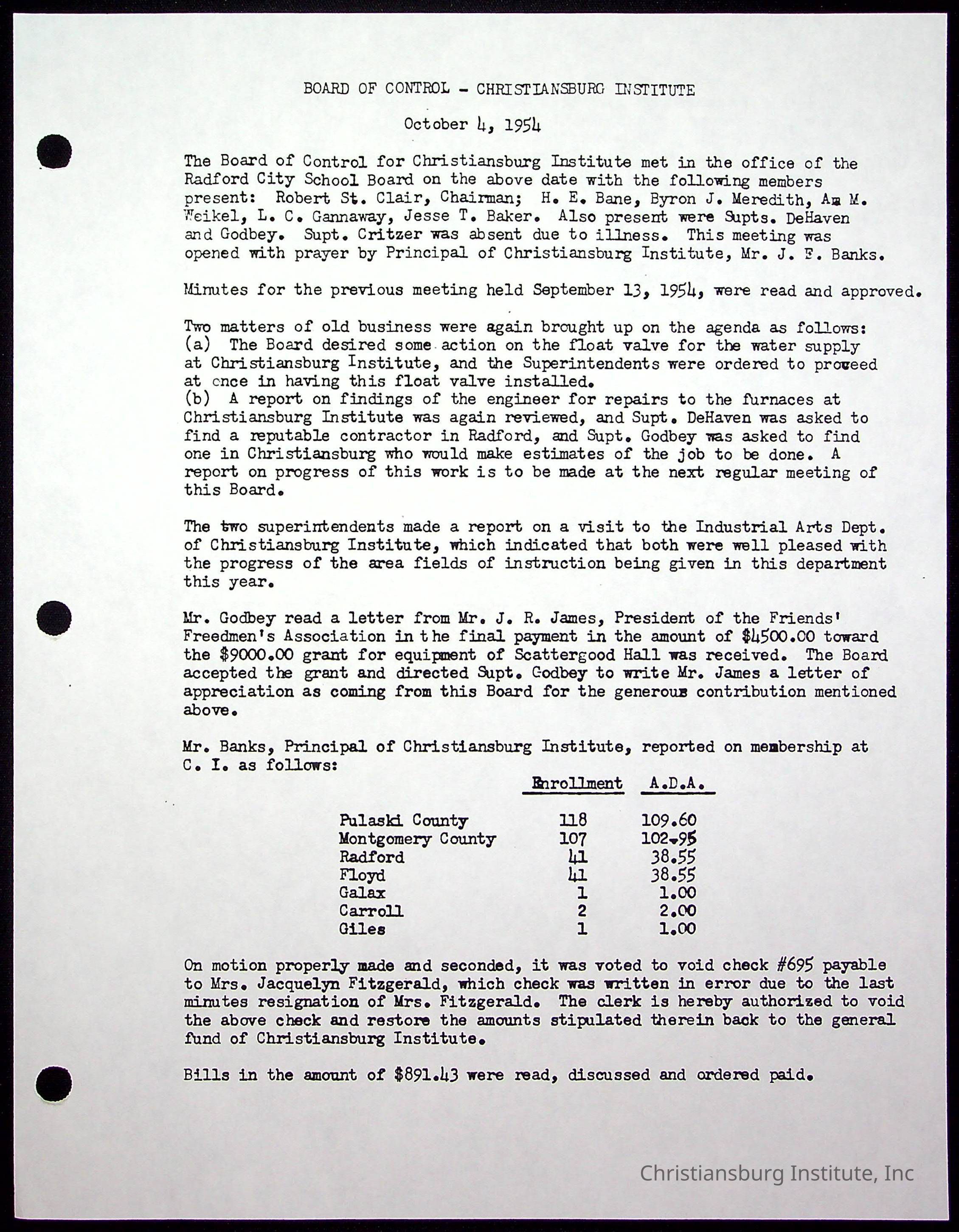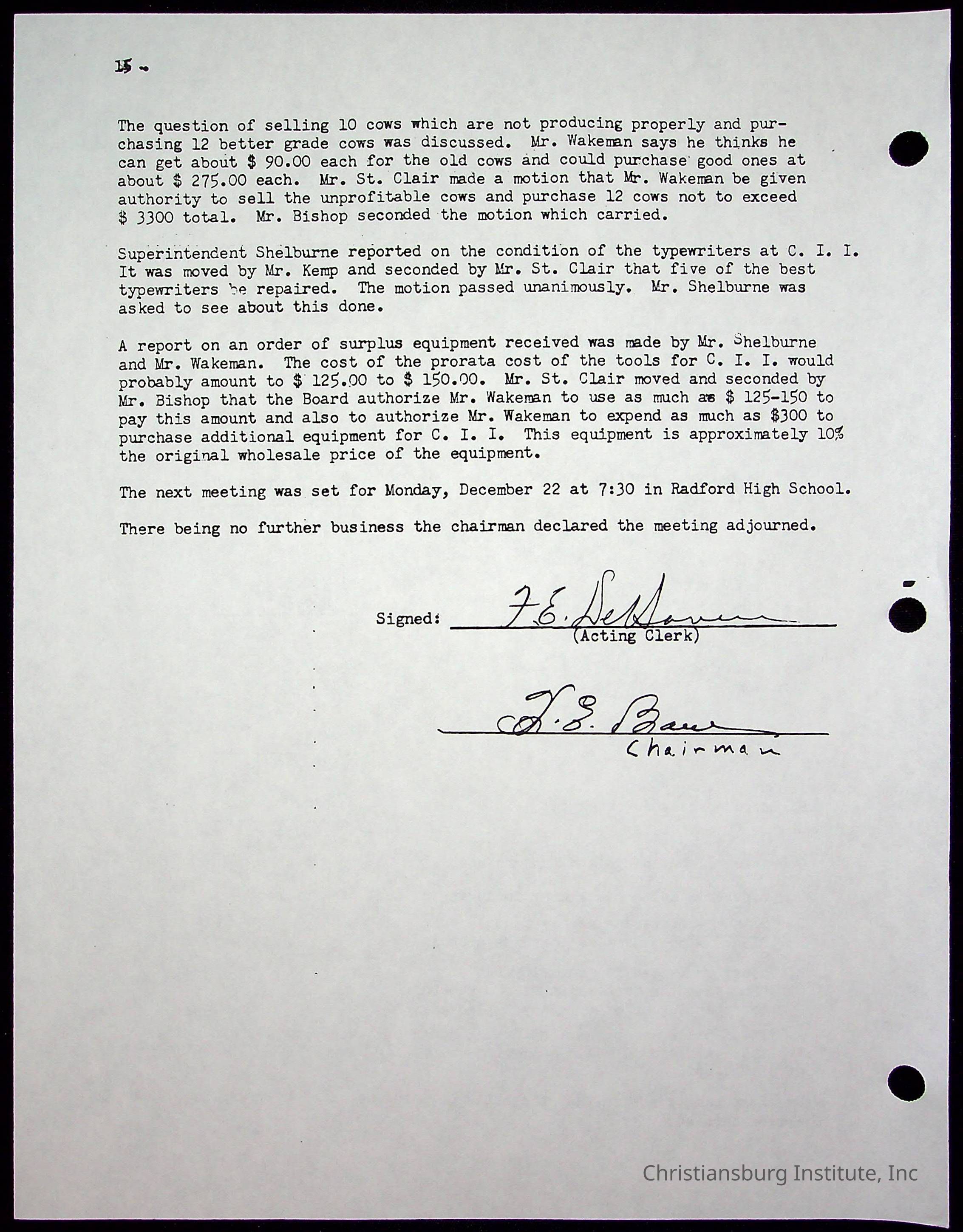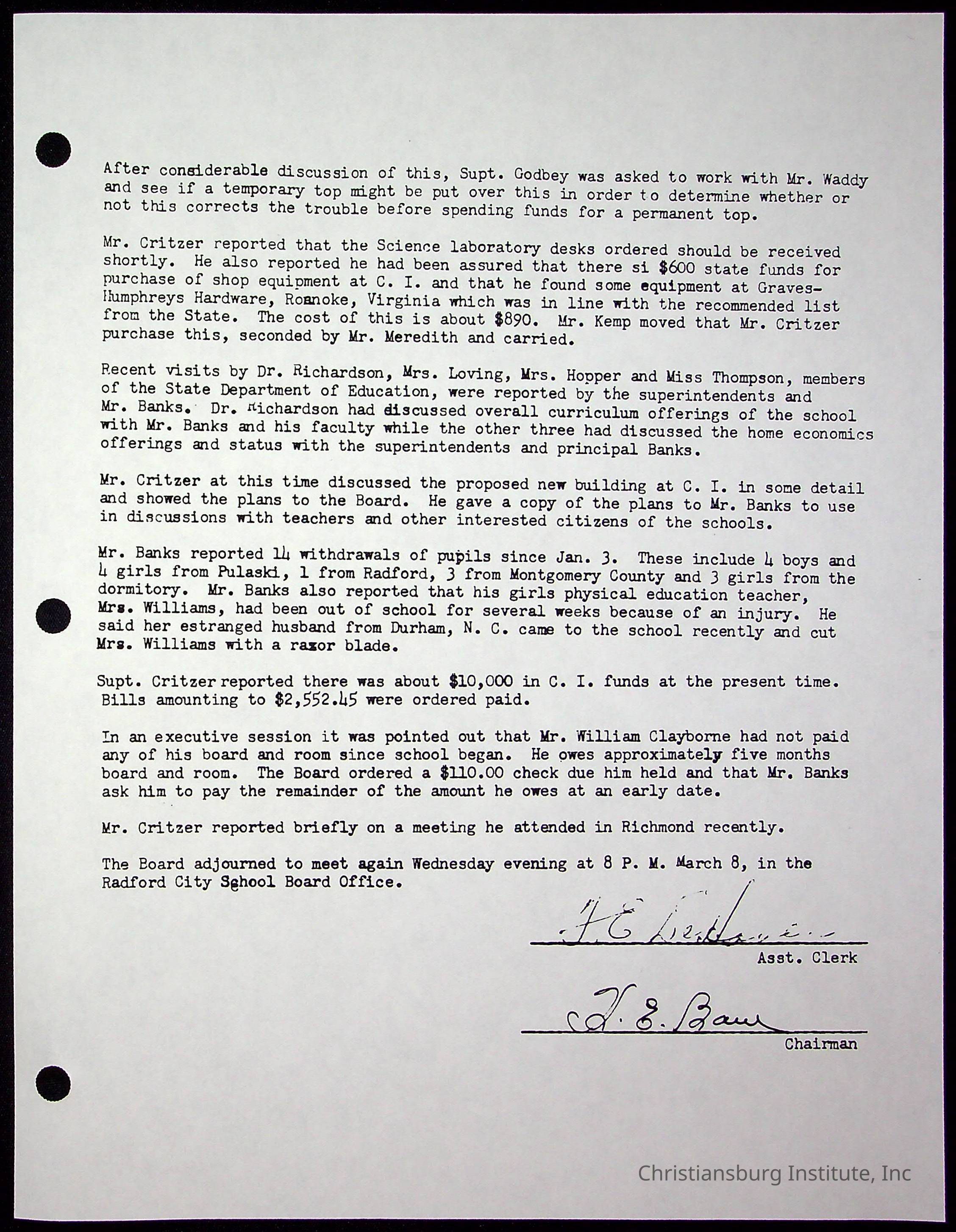 Christiansburg Industrial Institute Board Minutes, July 1947-August 1963 (photocopy)Description