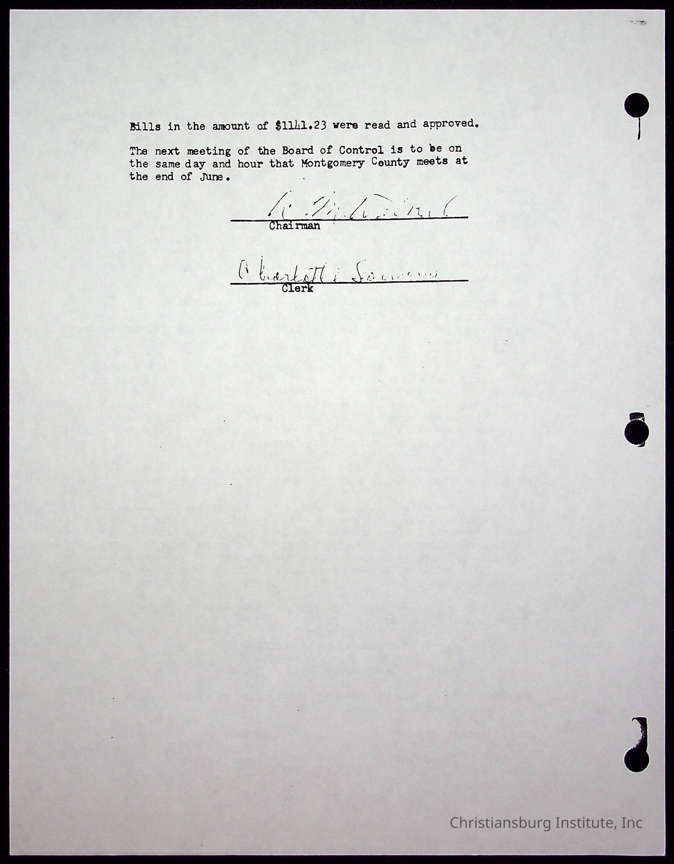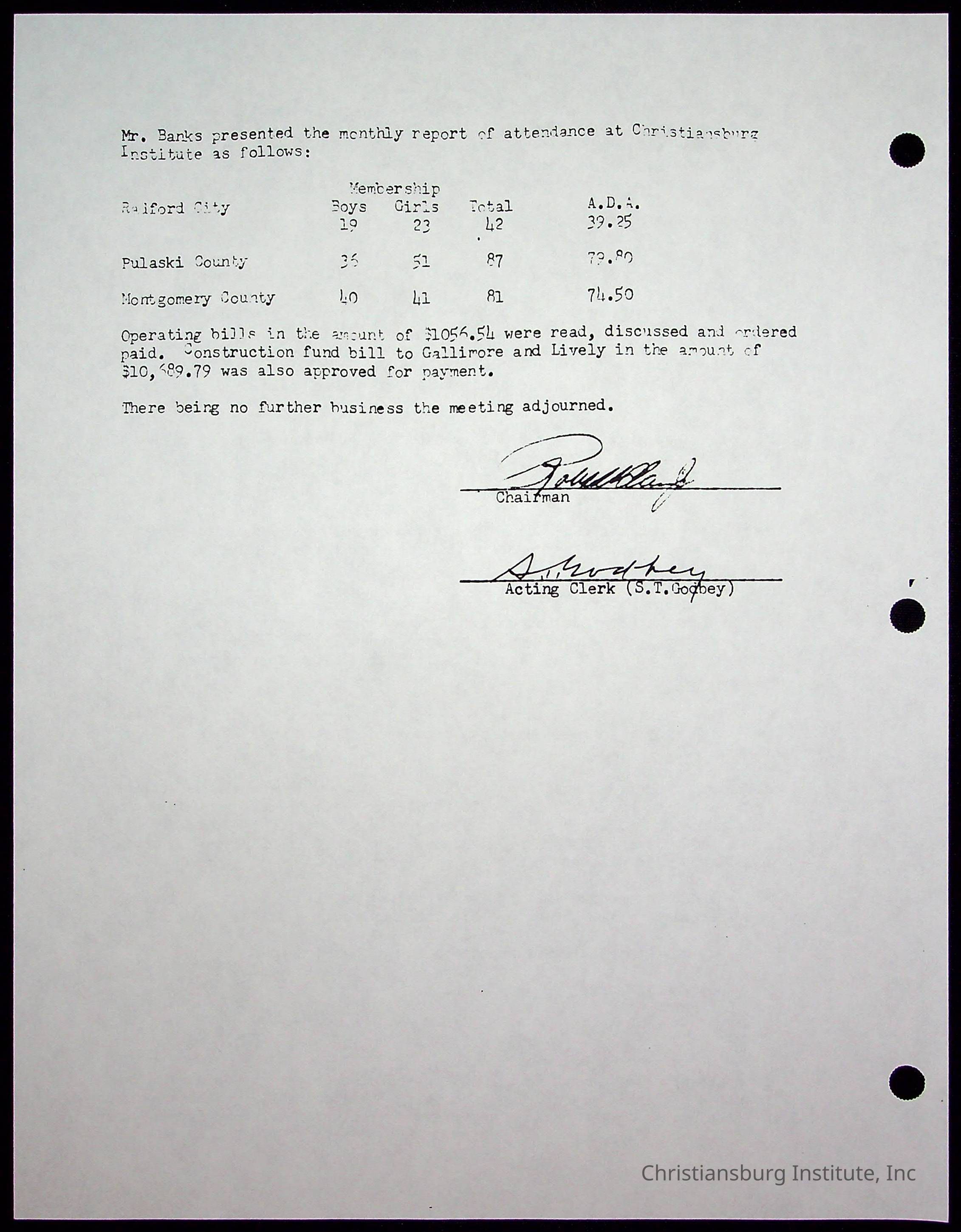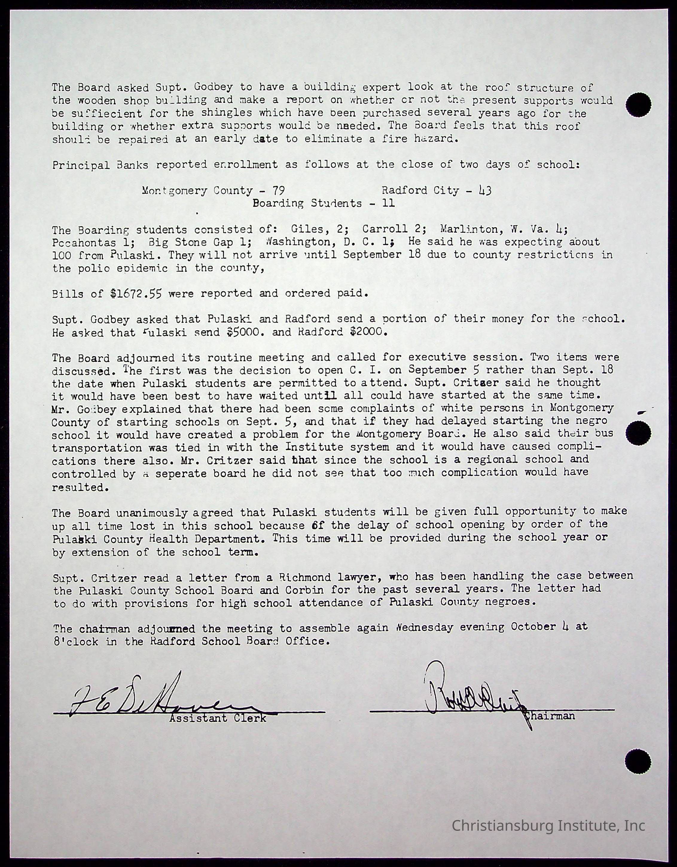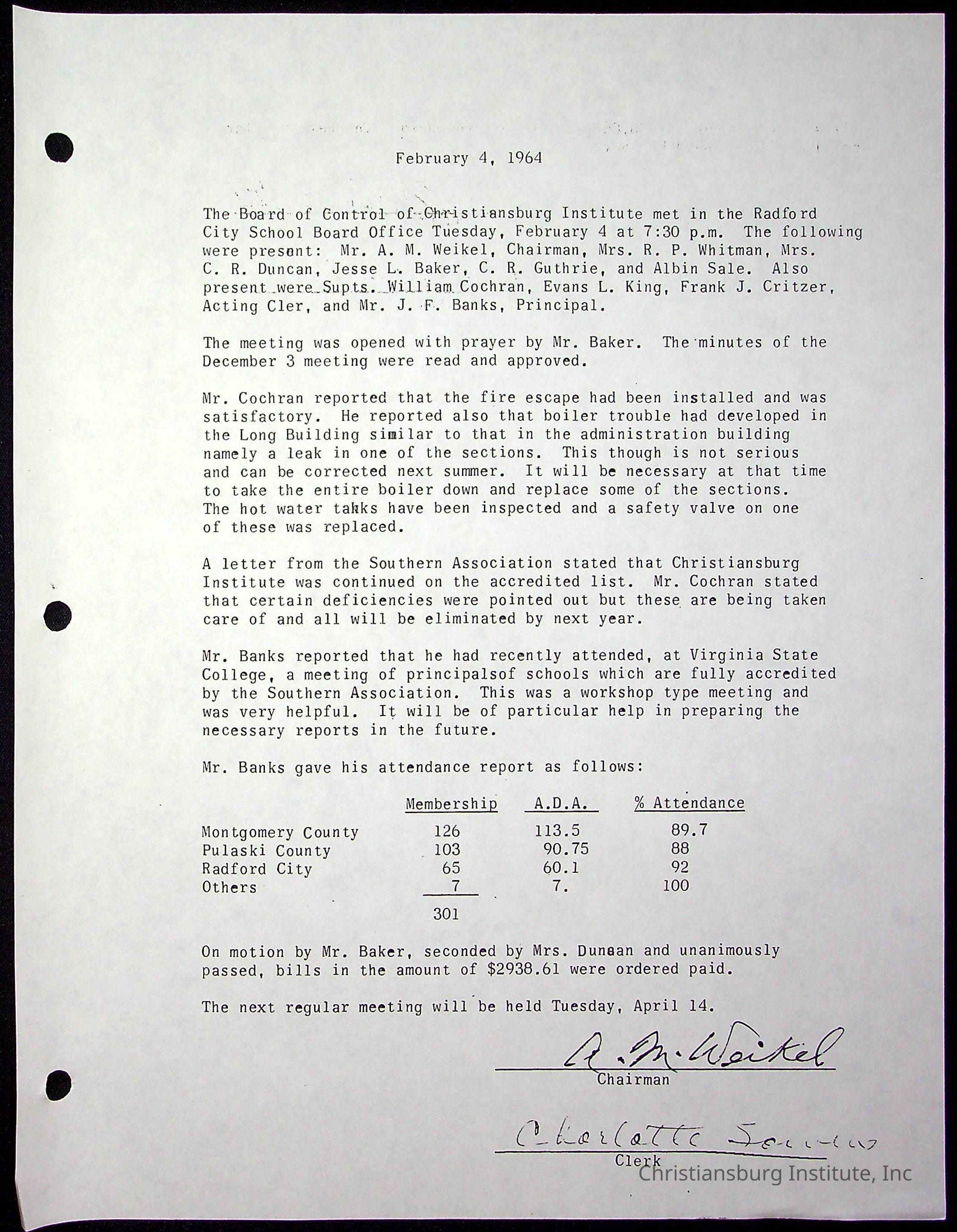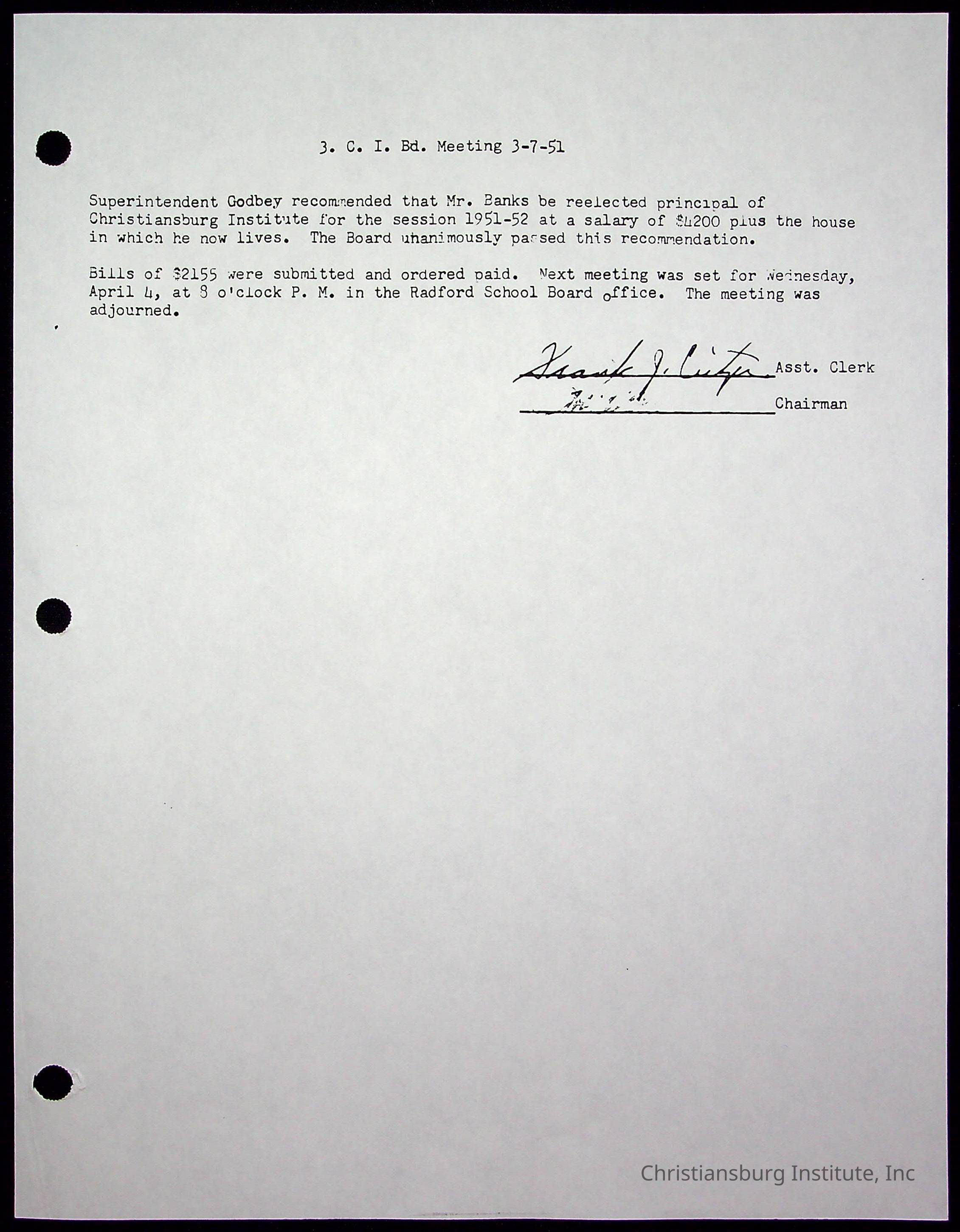 Christiansburg Industrial Institute Board Minutes, July 1947-August 1963 (photocopy)Description