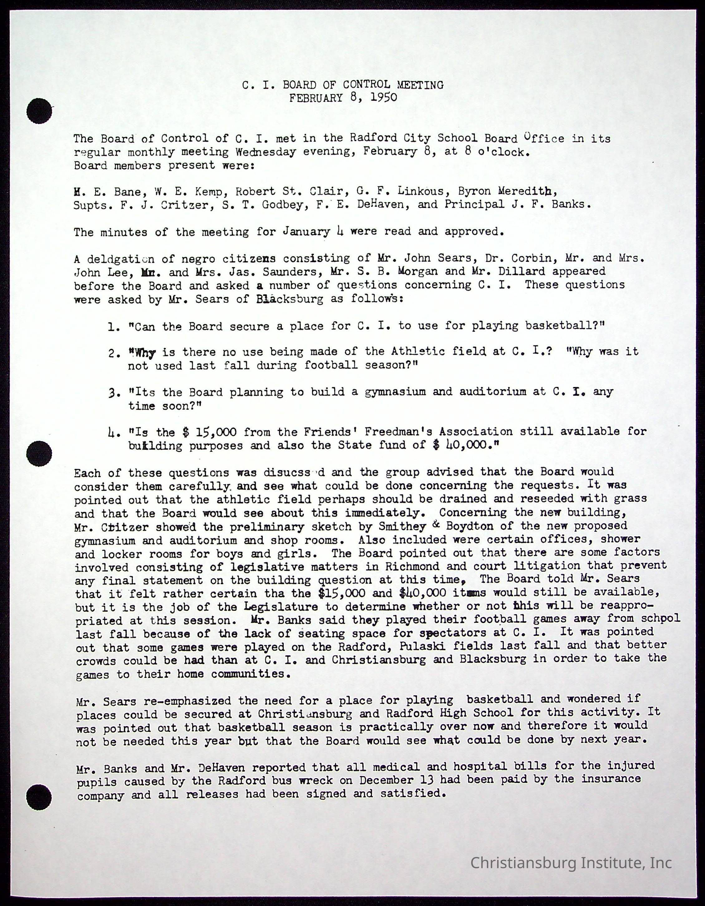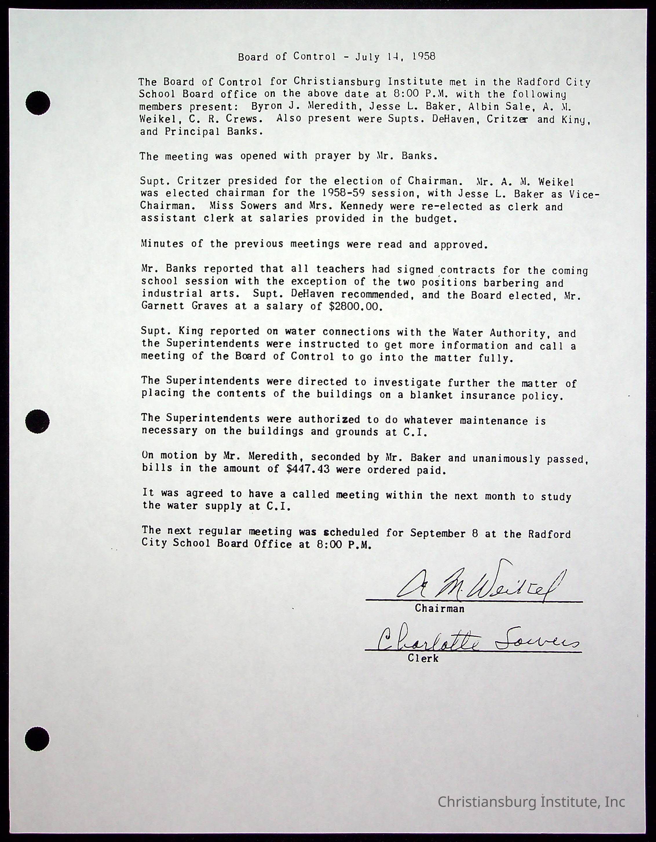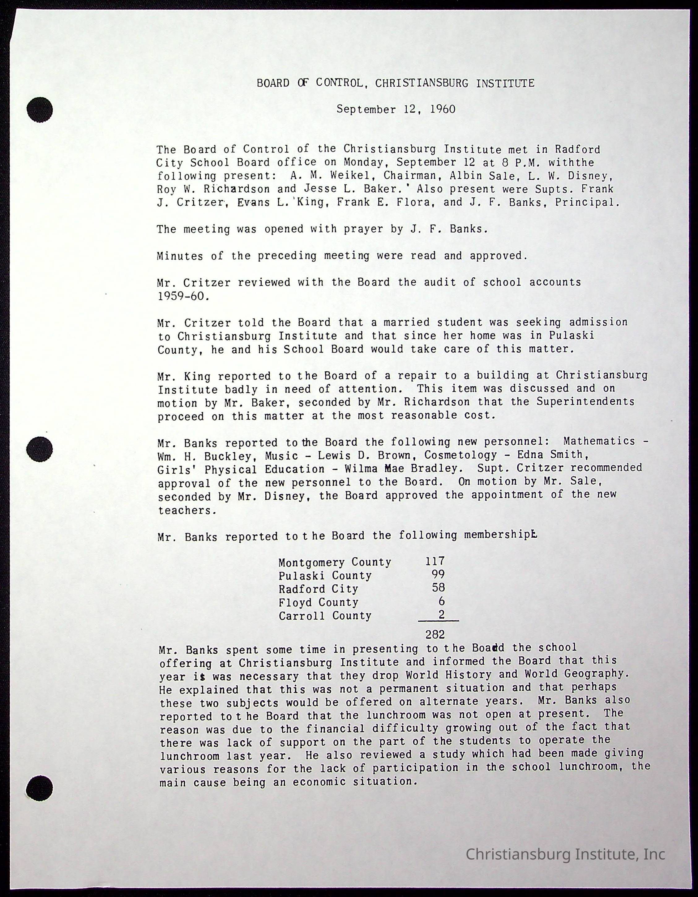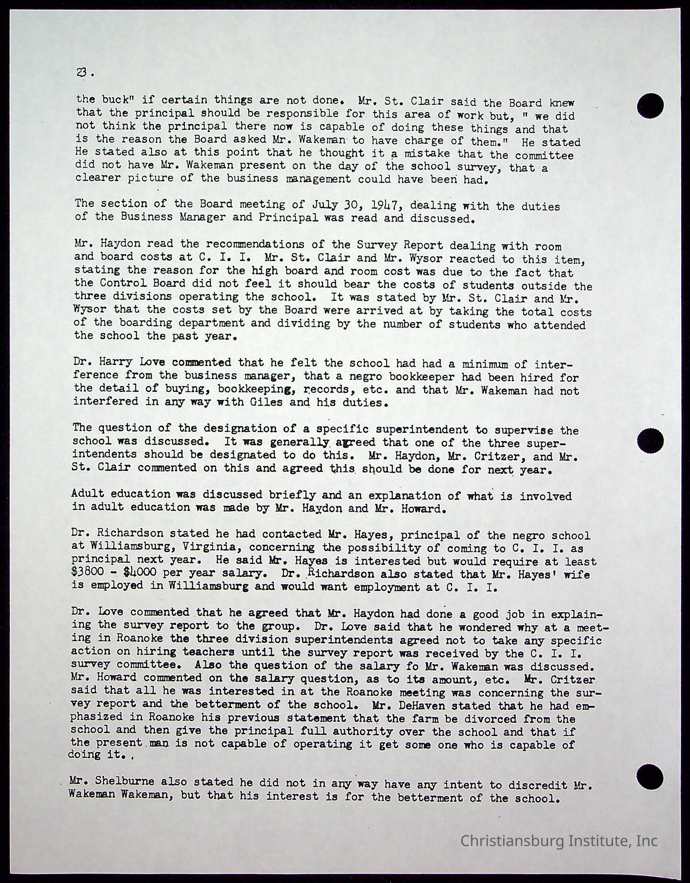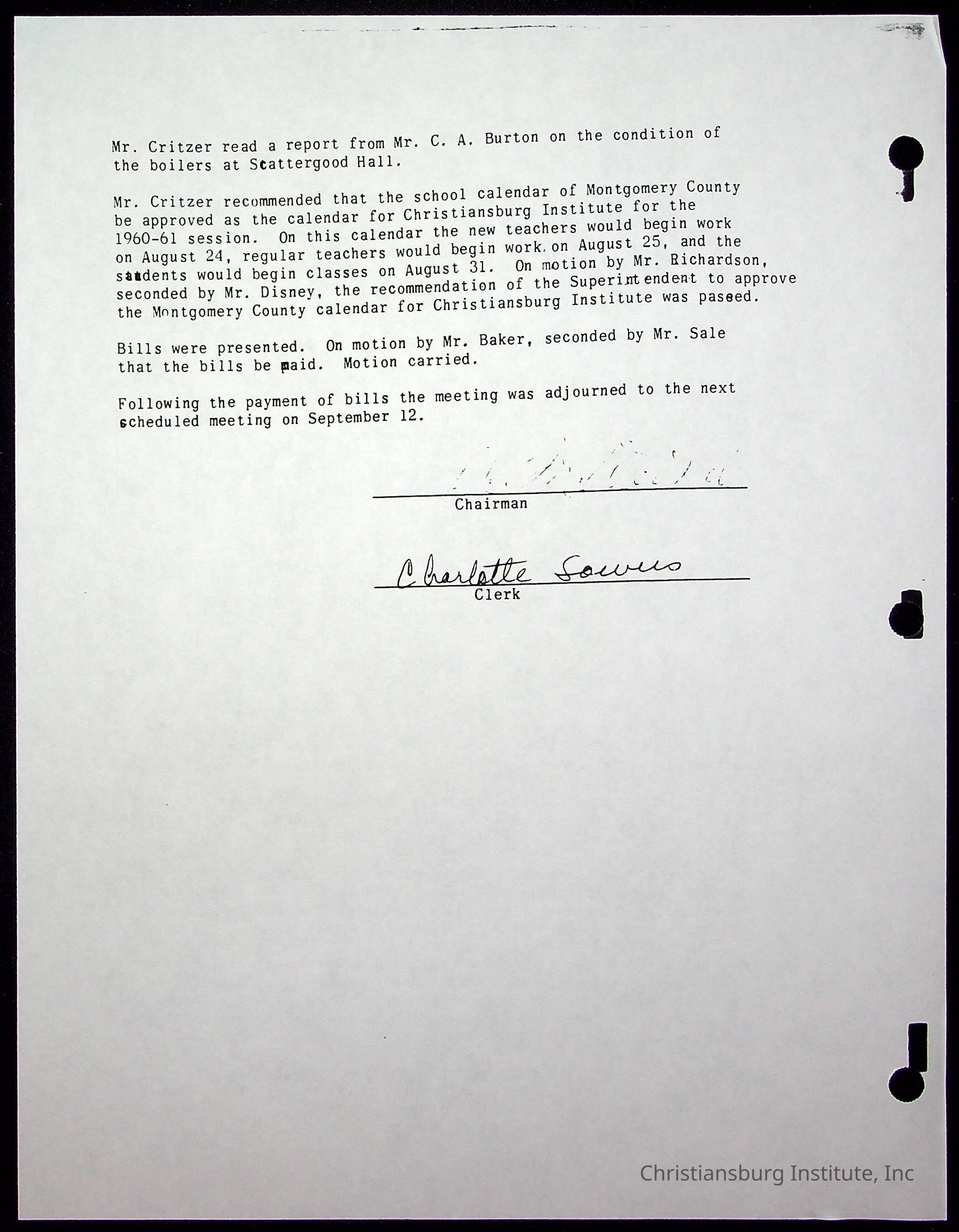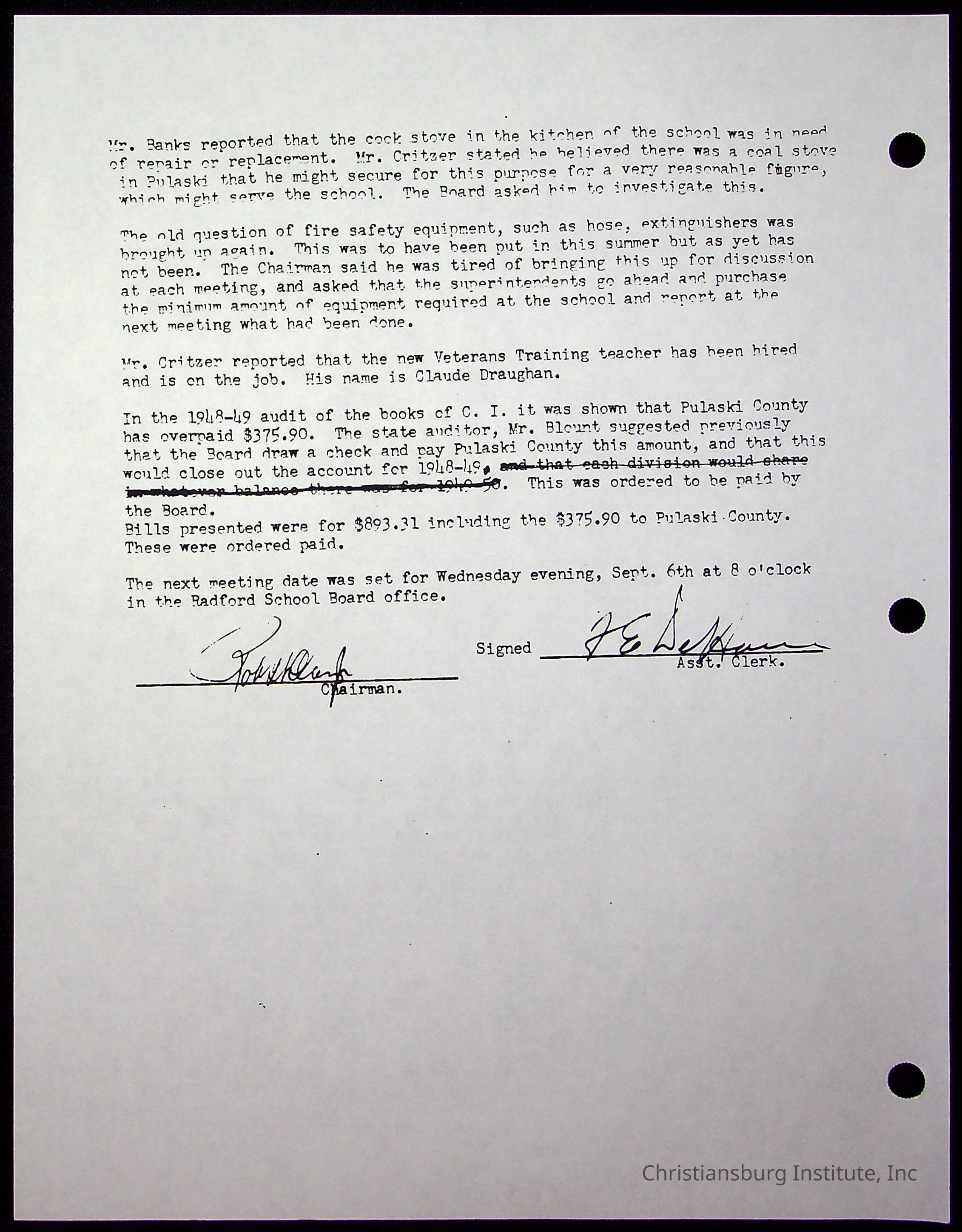Christiansburg Industrial Institute Board Minutes, July 1947-August 1963 (photocopy)Description