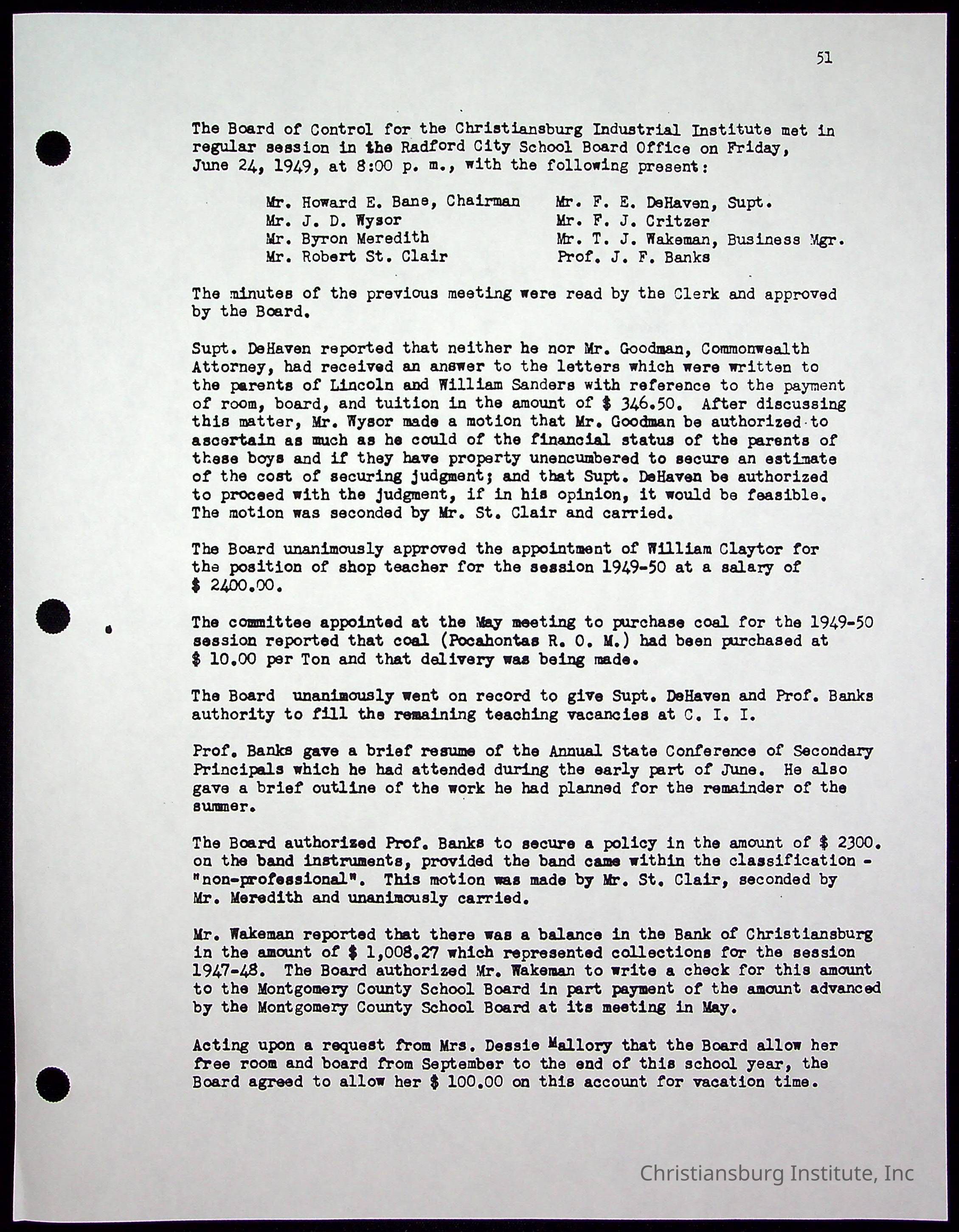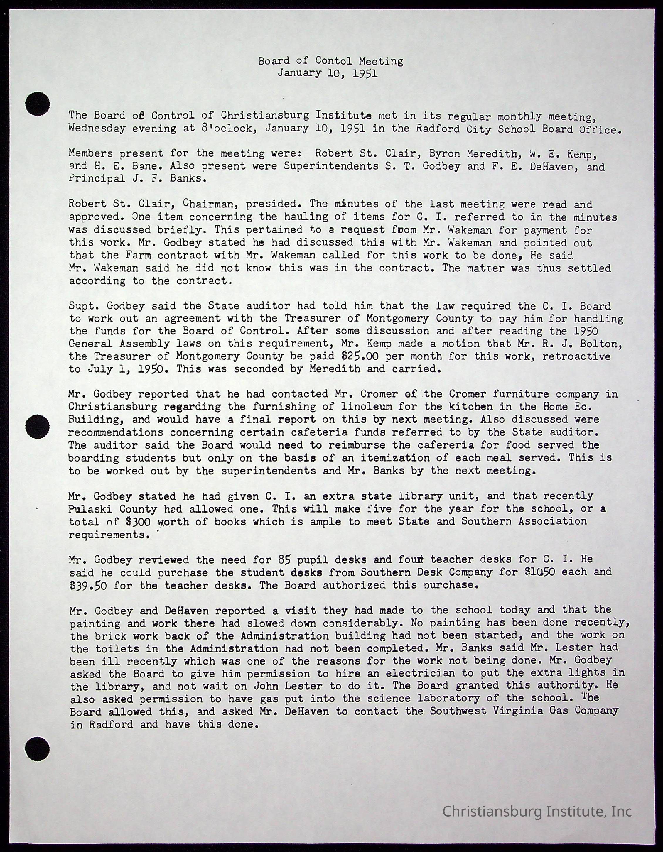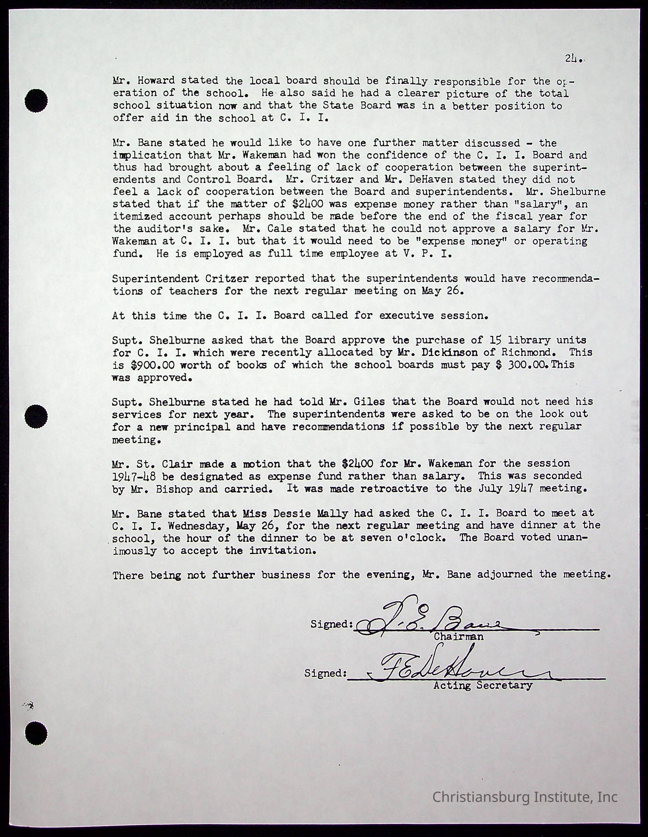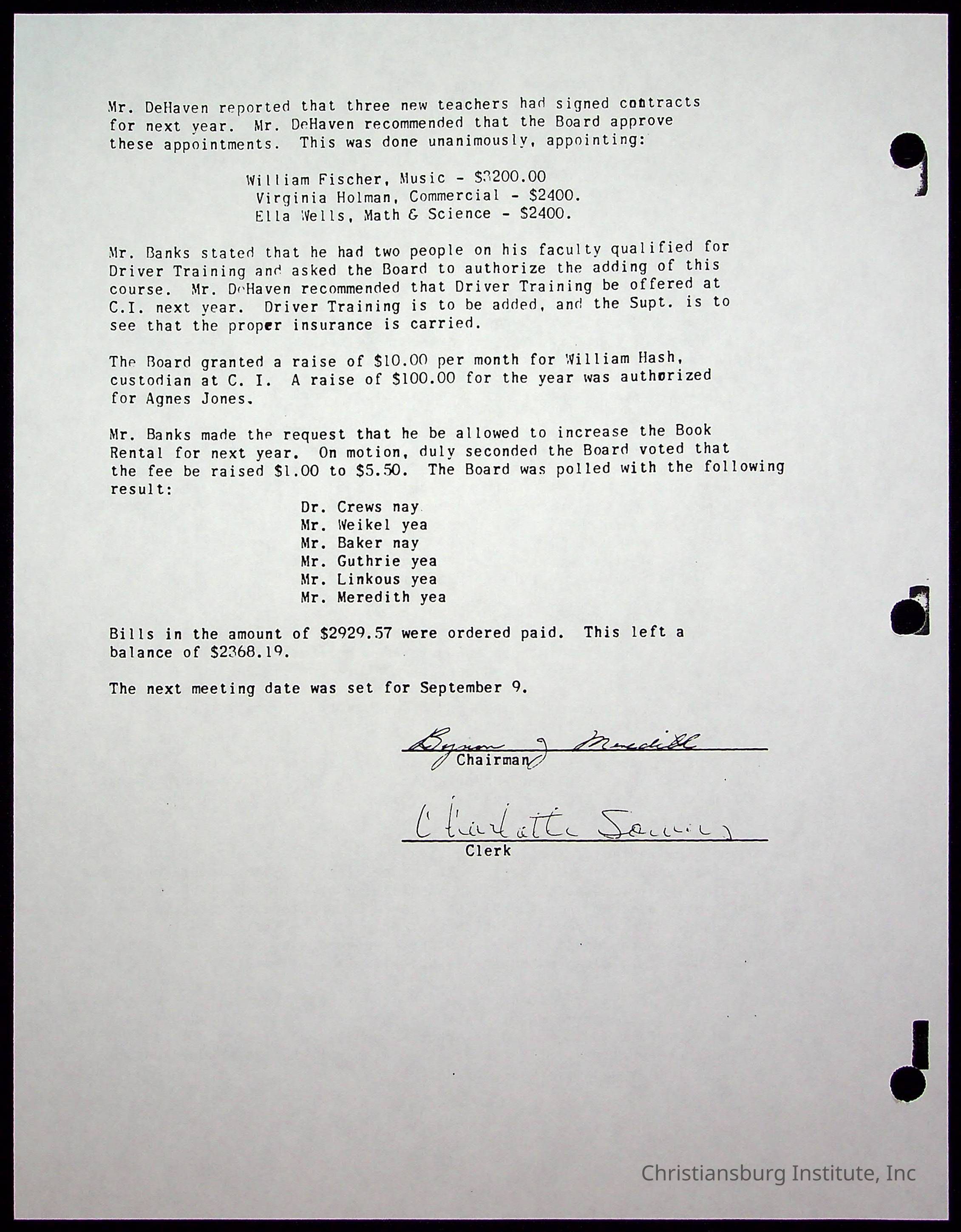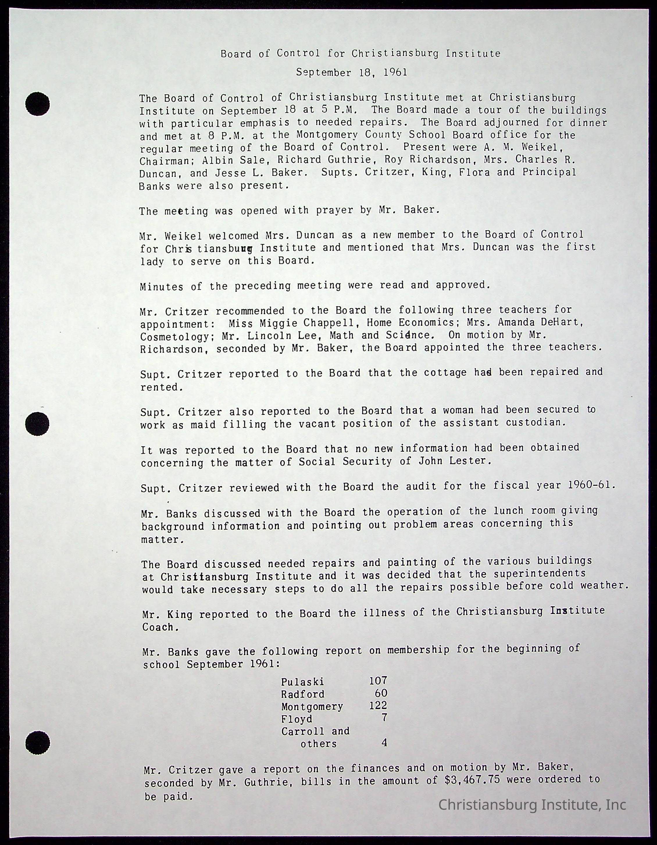 Christiansburg Industrial Institute Board Minutes, July 1947-August 1963 (photocopy)Description