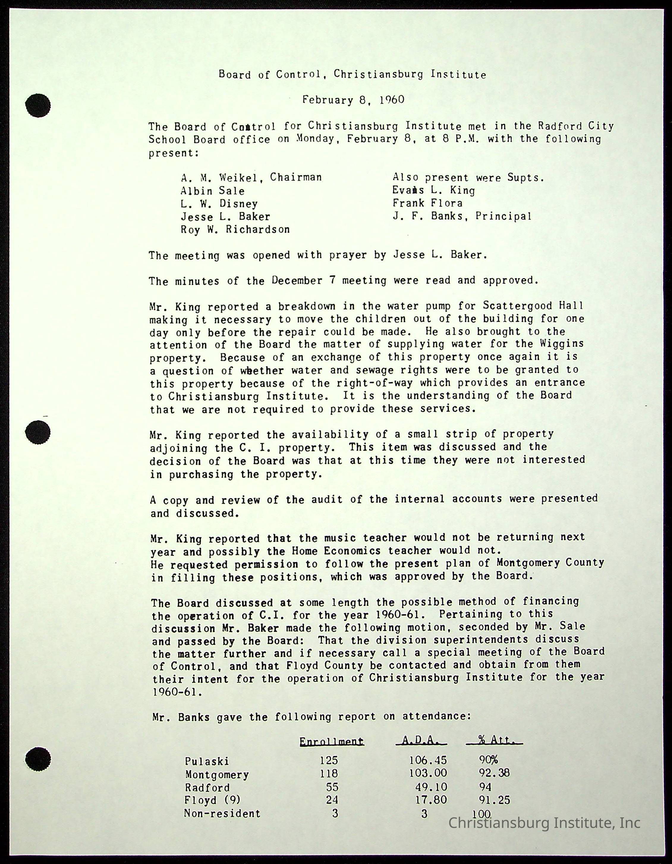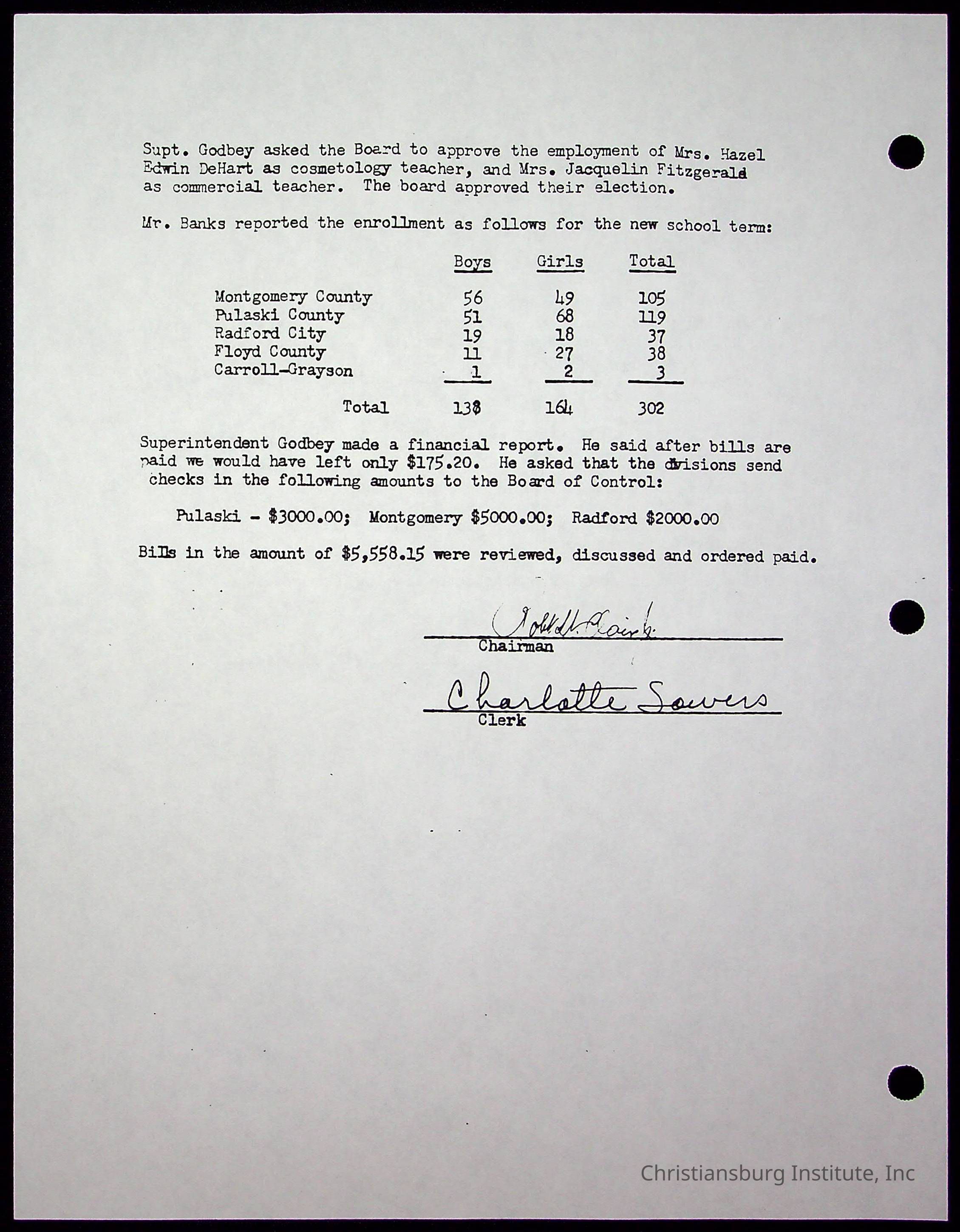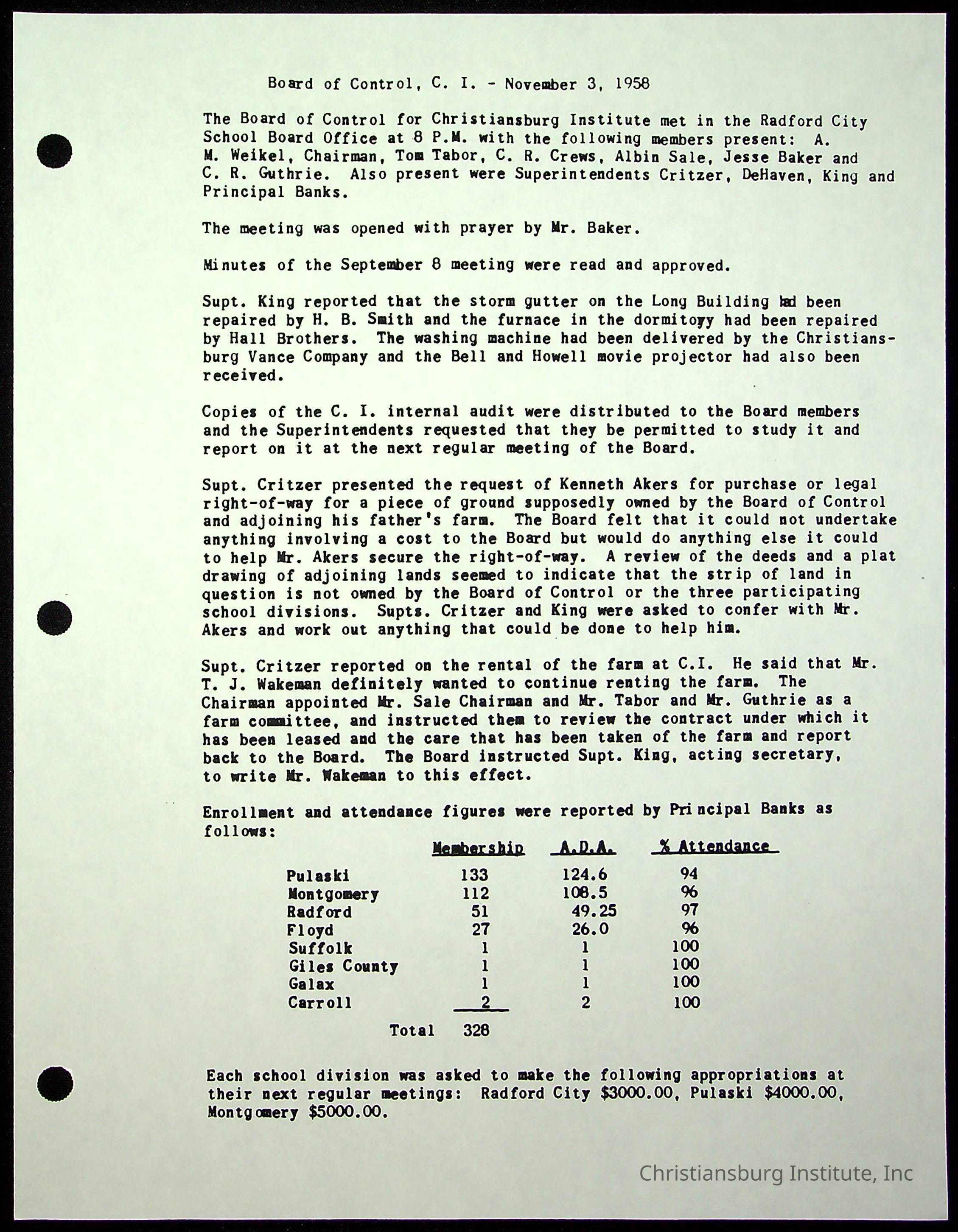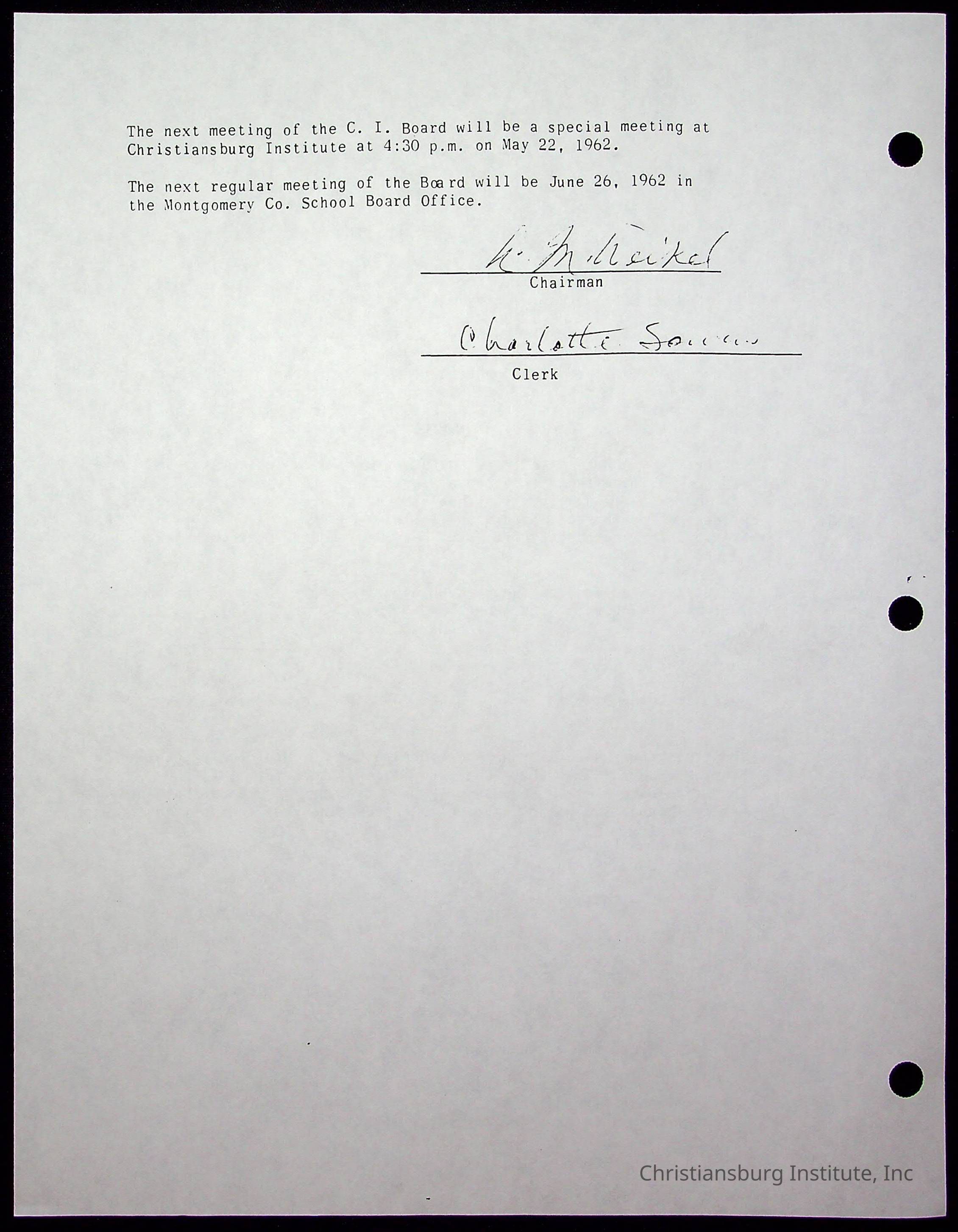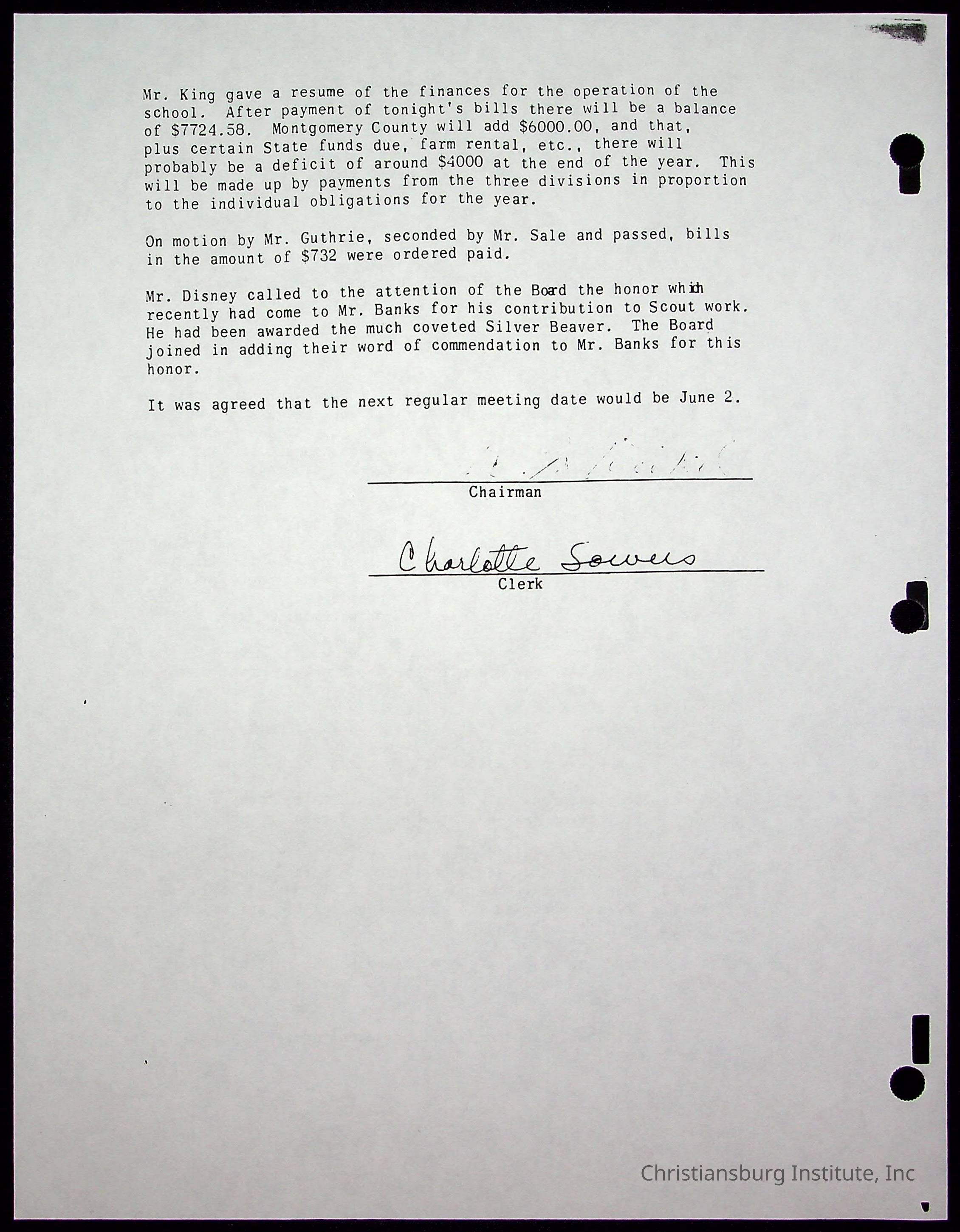 Christiansburg Industrial Institute Board Minutes, July 1947-August 1963 (photocopy)Description