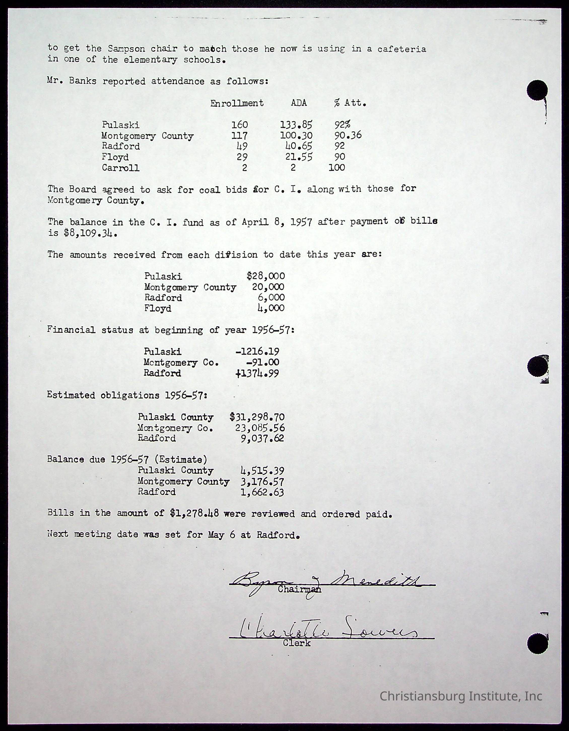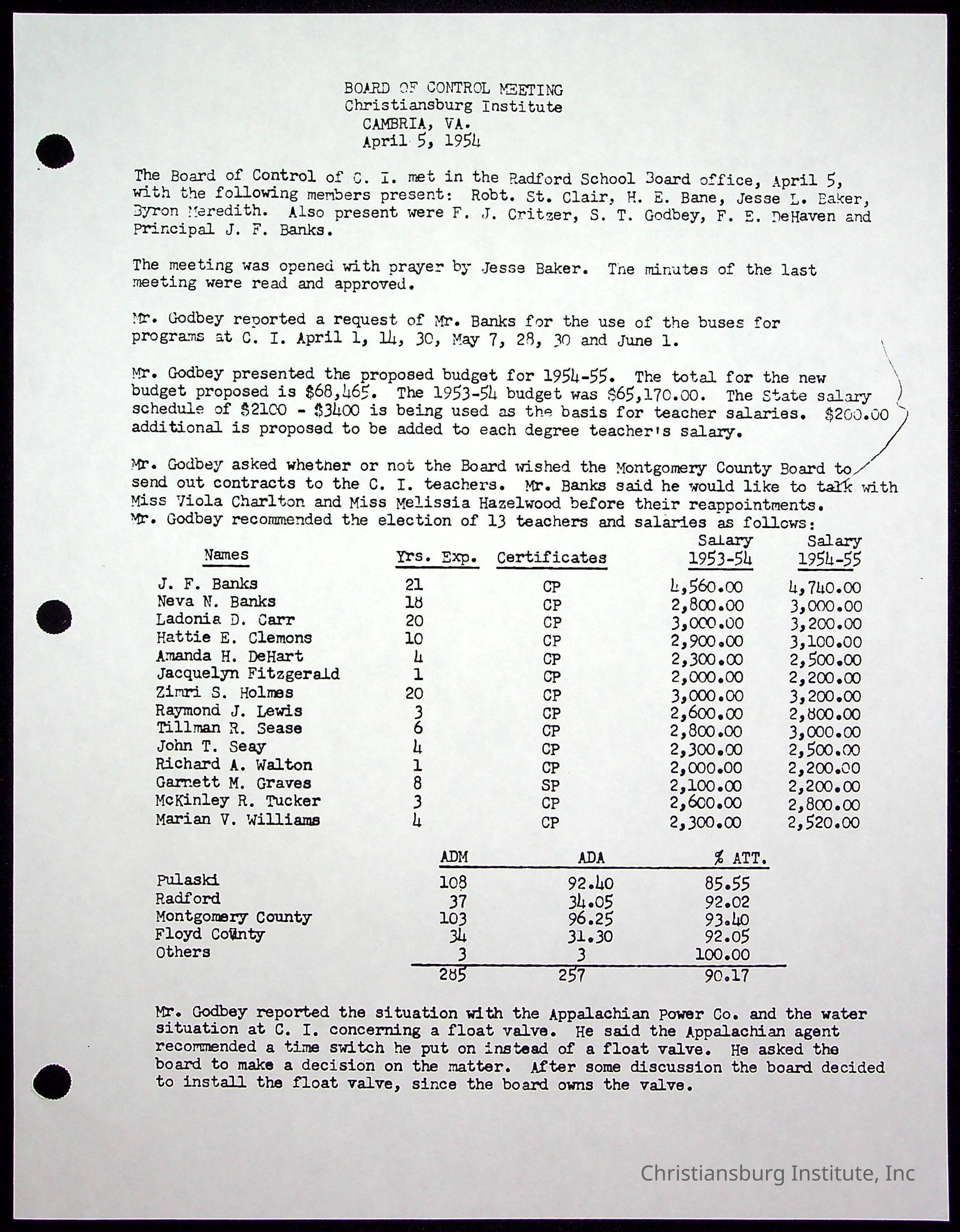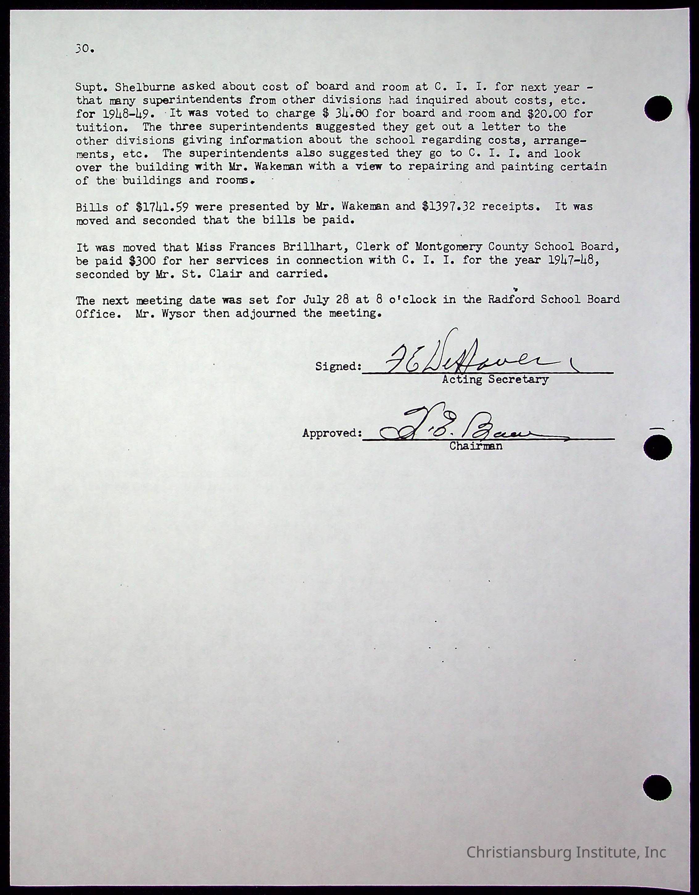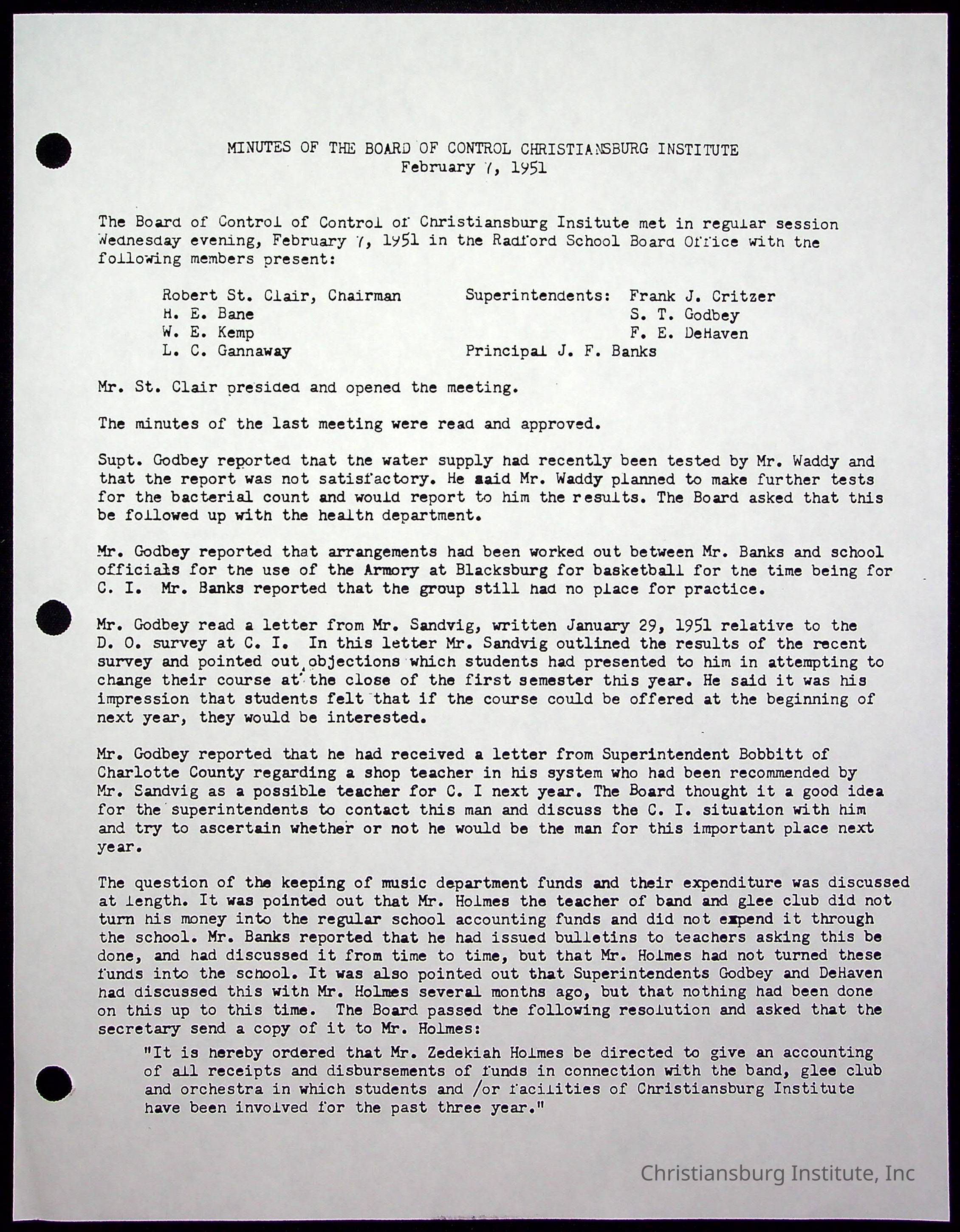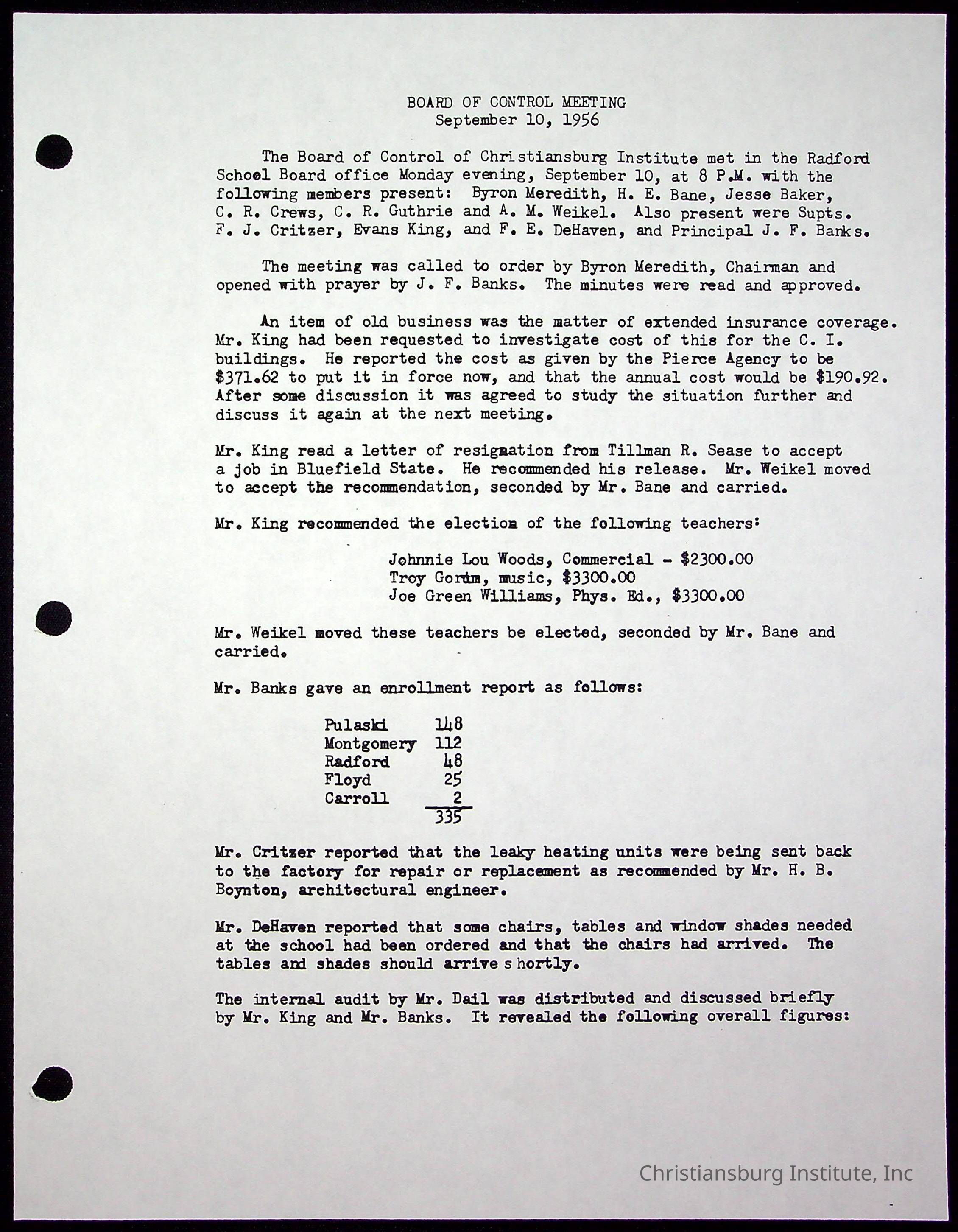 Christiansburg Industrial Institute Board Minutes, July 1947-August 1963 (photocopy)Description