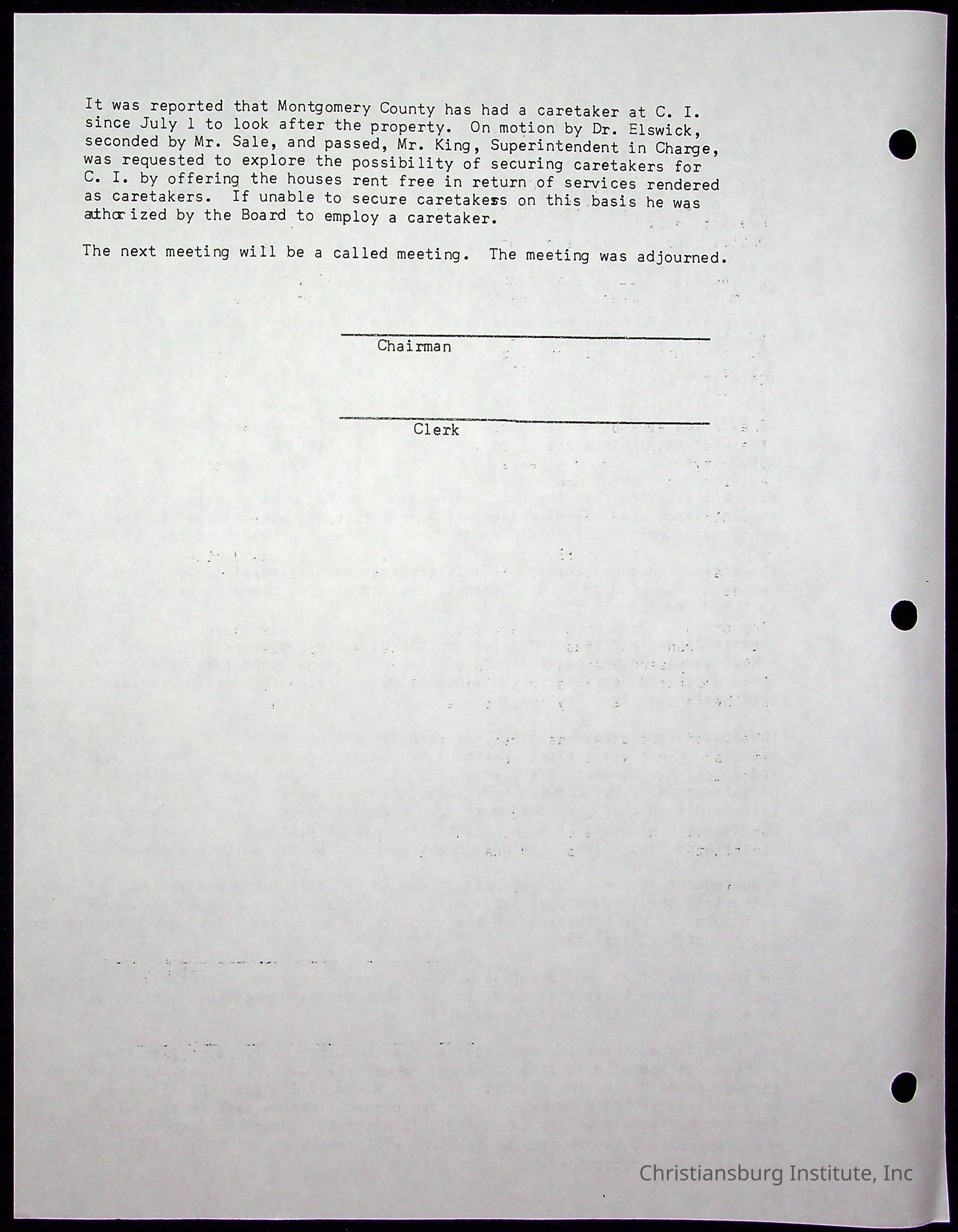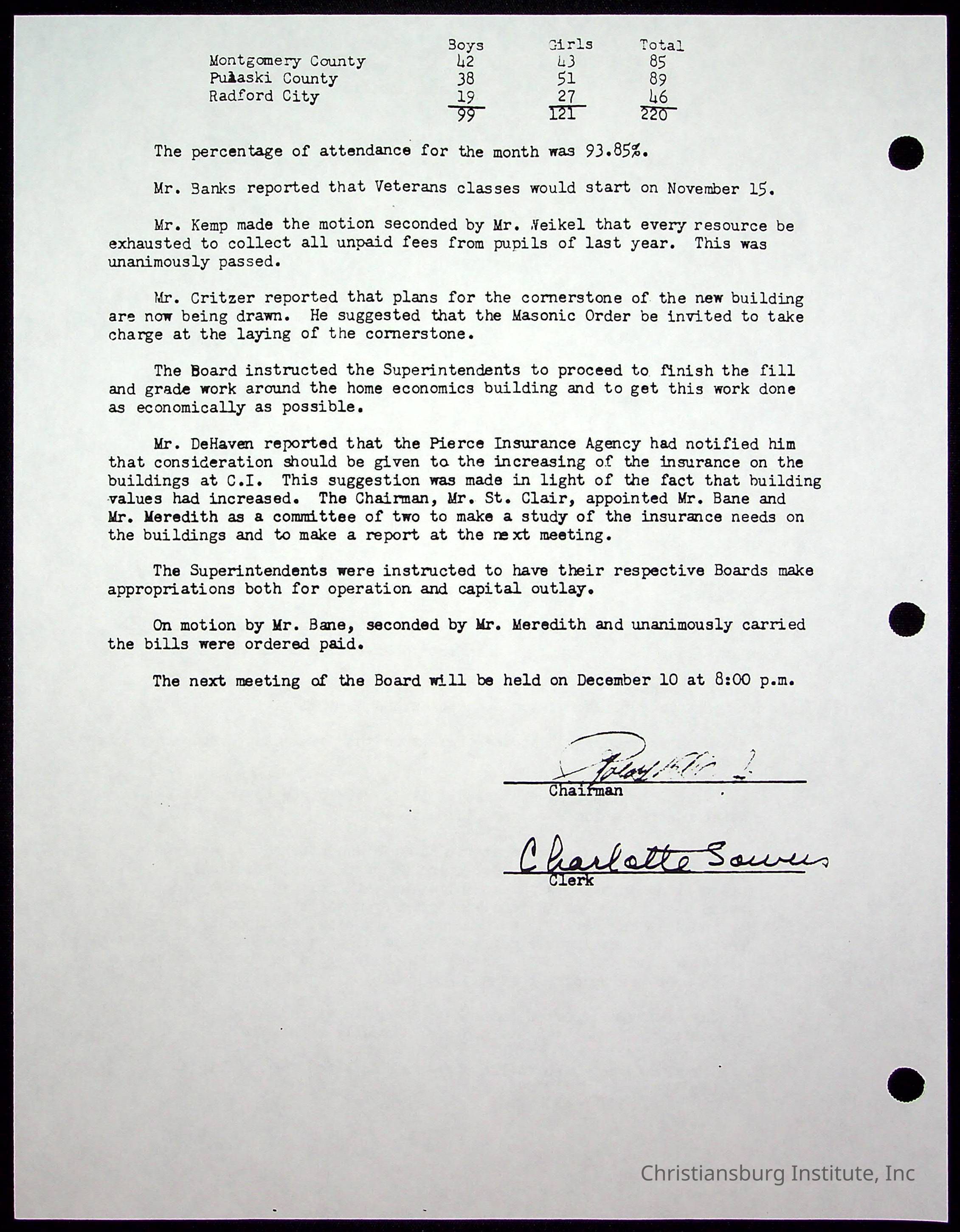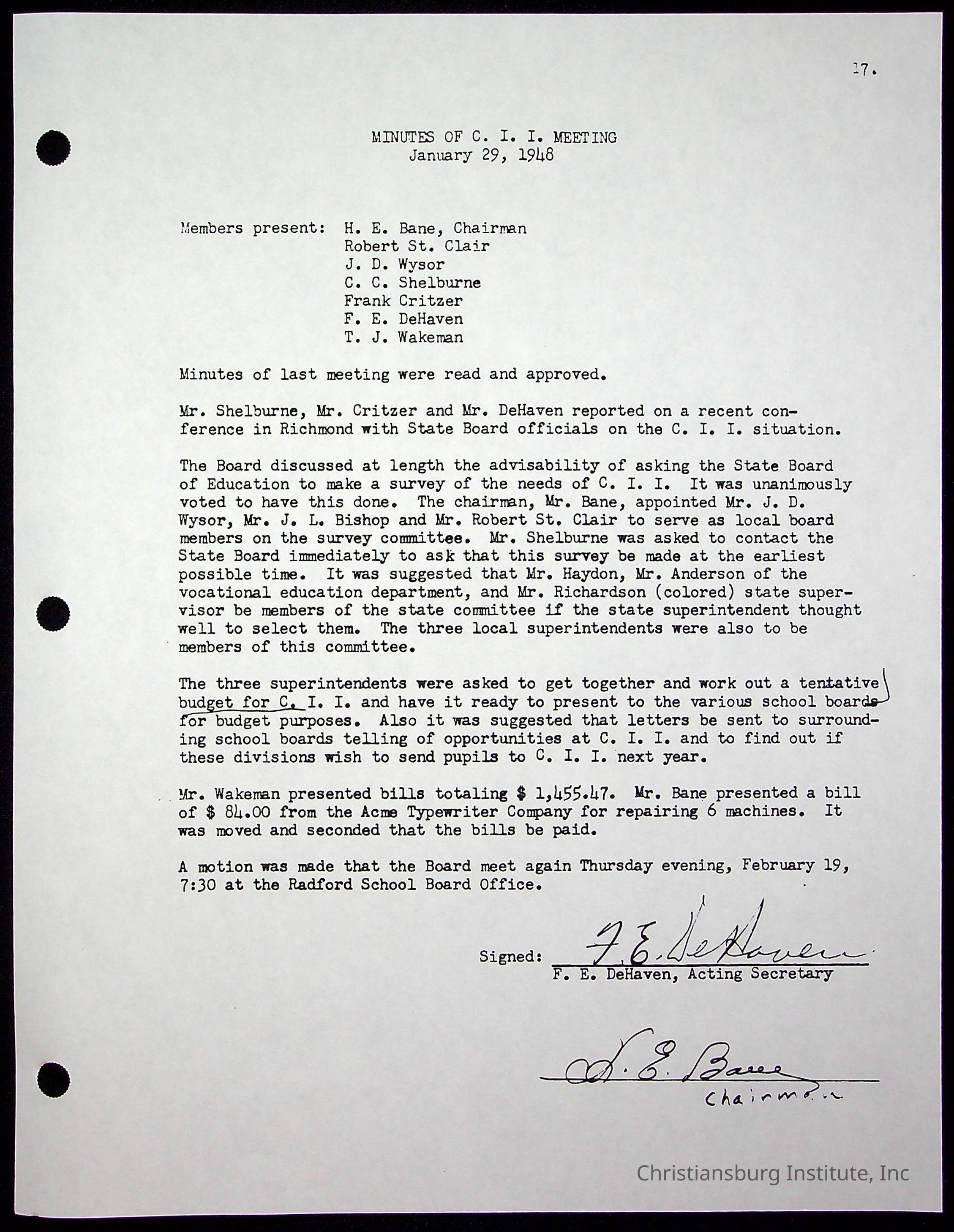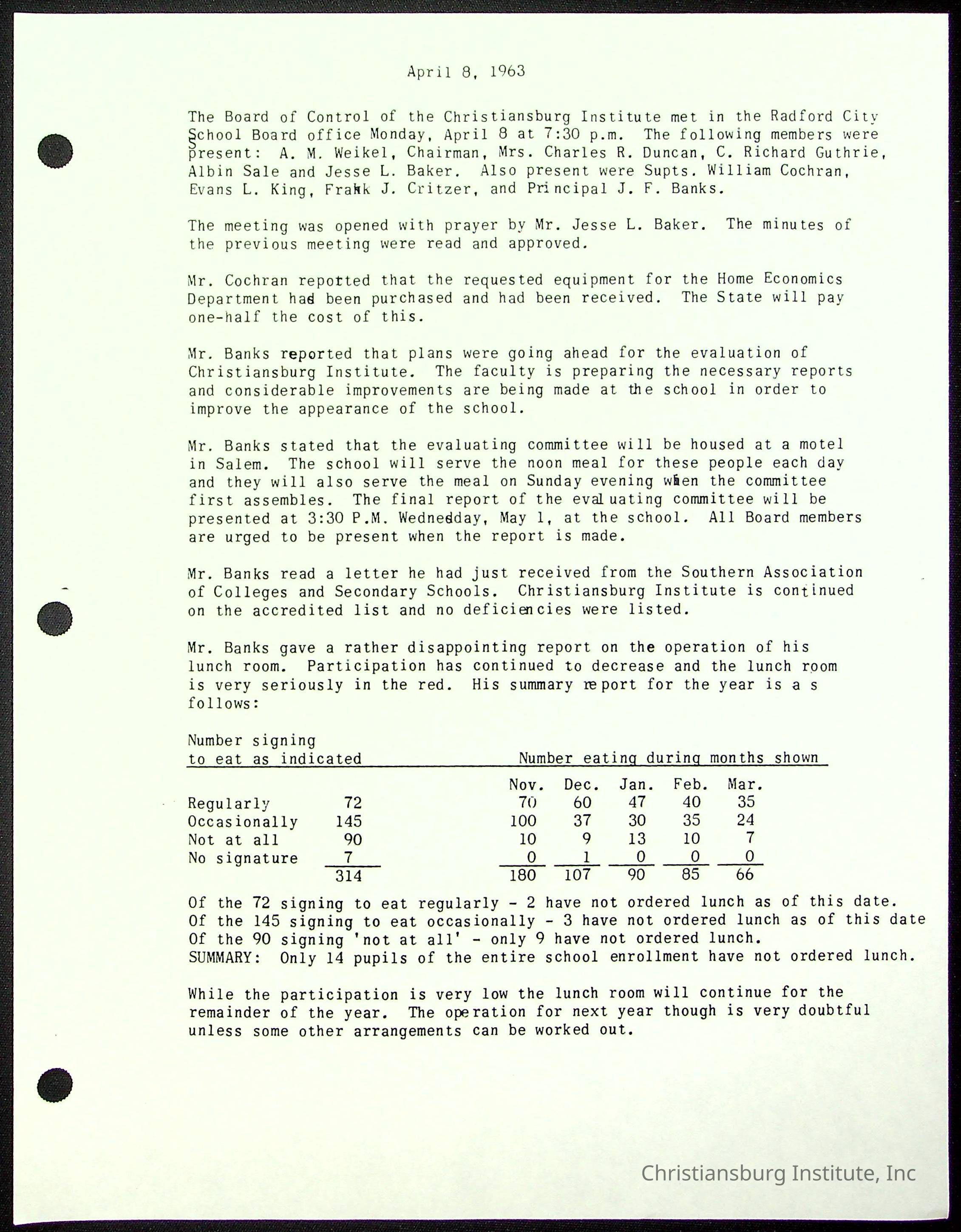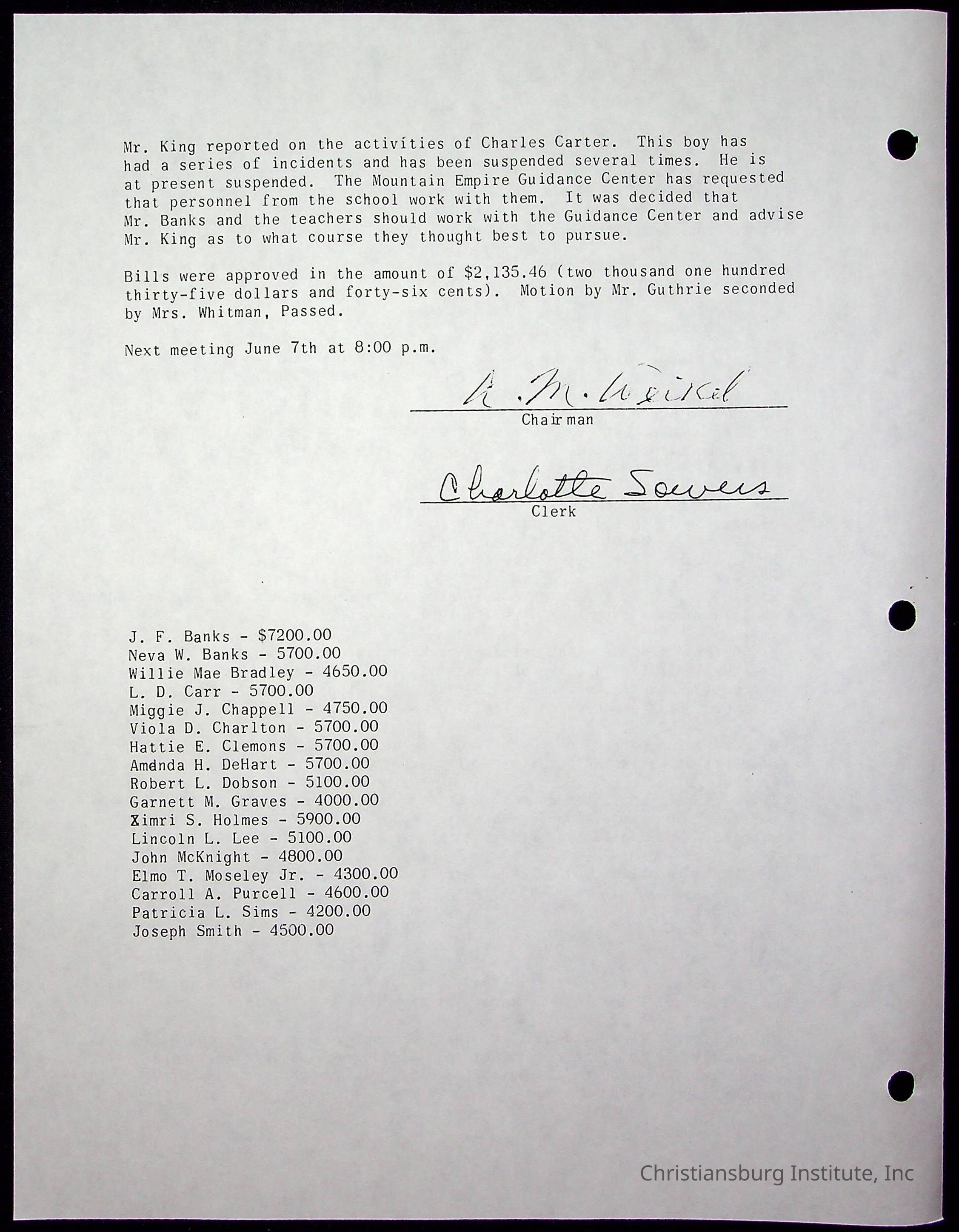 Christiansburg Industrial Institute Board Minutes, July 1947-August 1963 (photocopy)Description