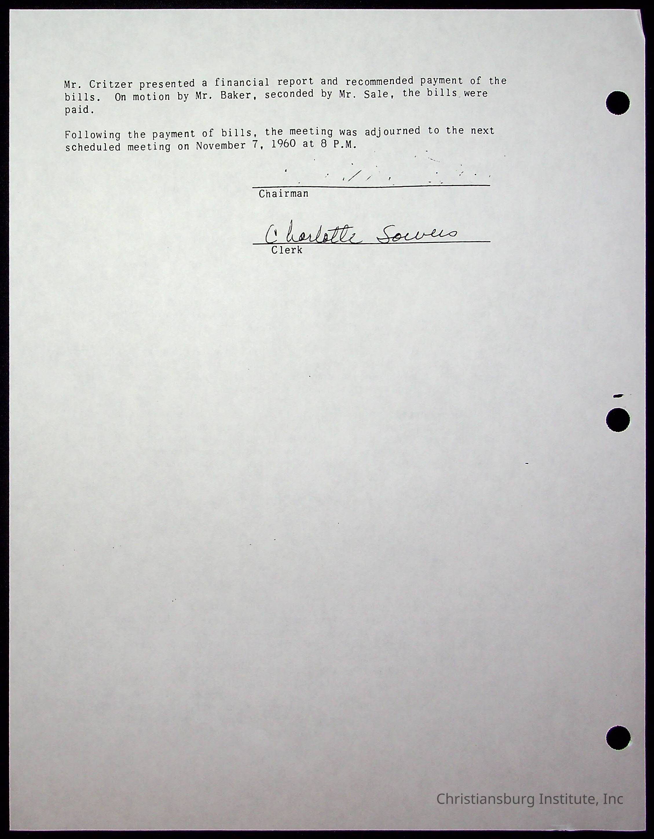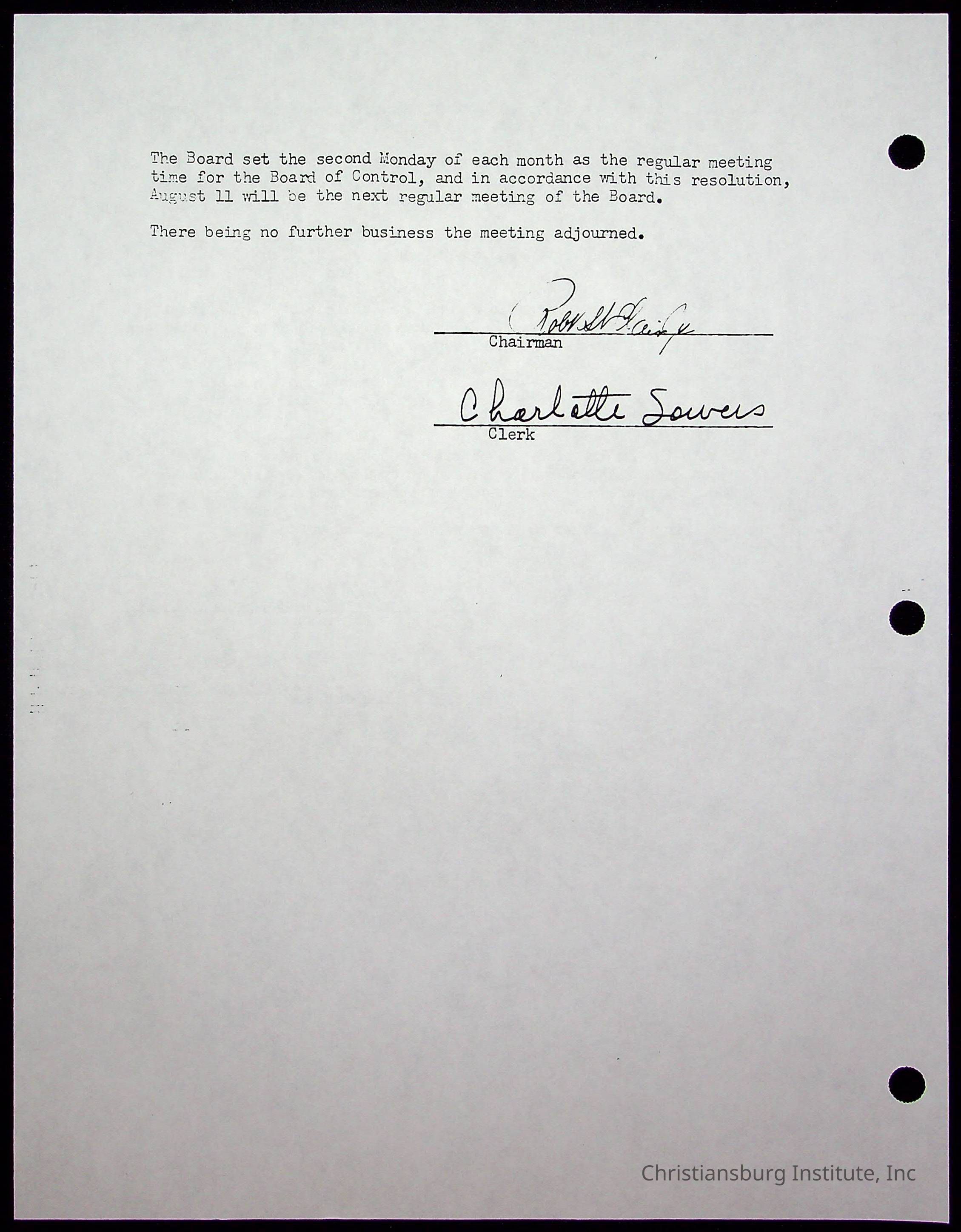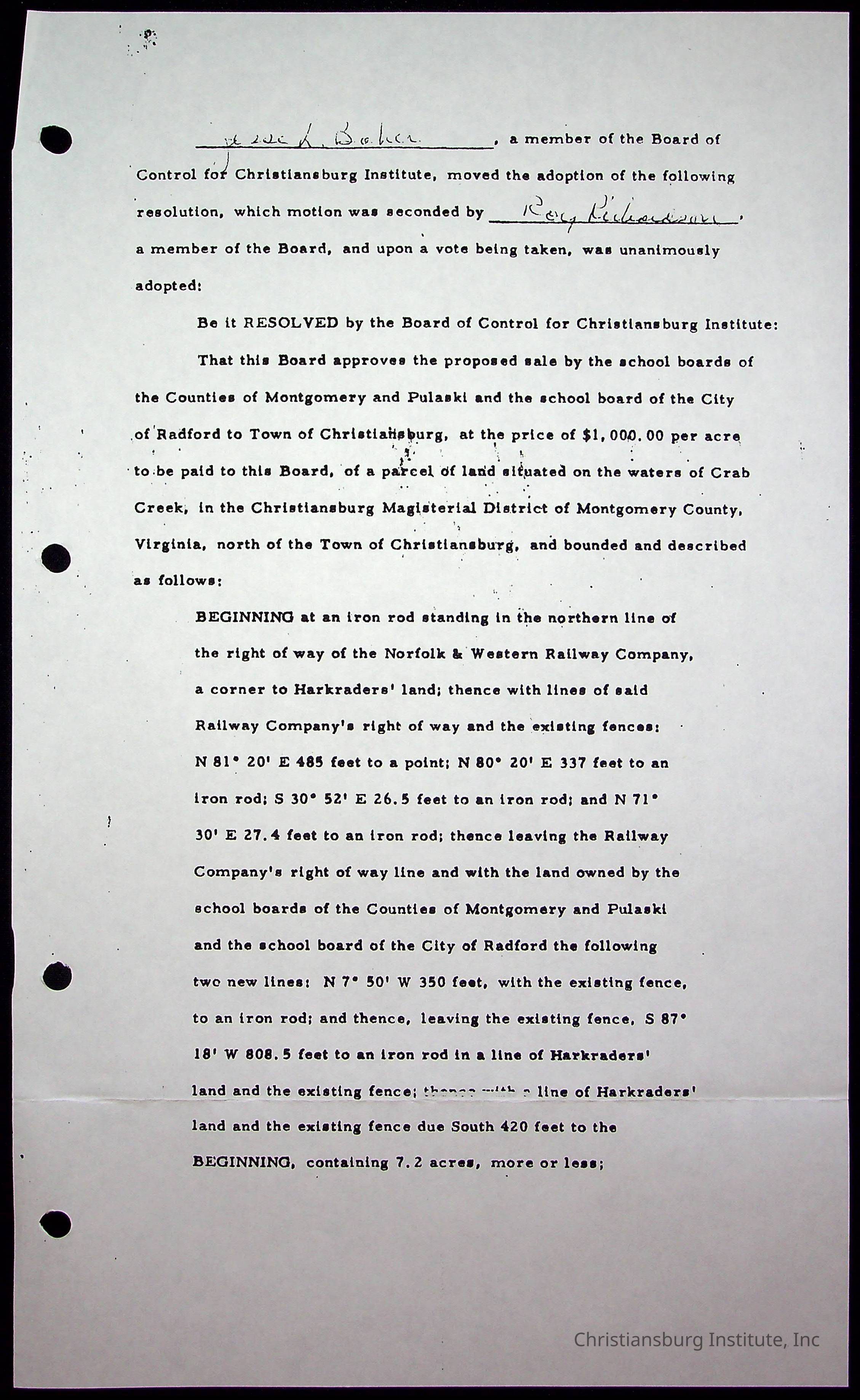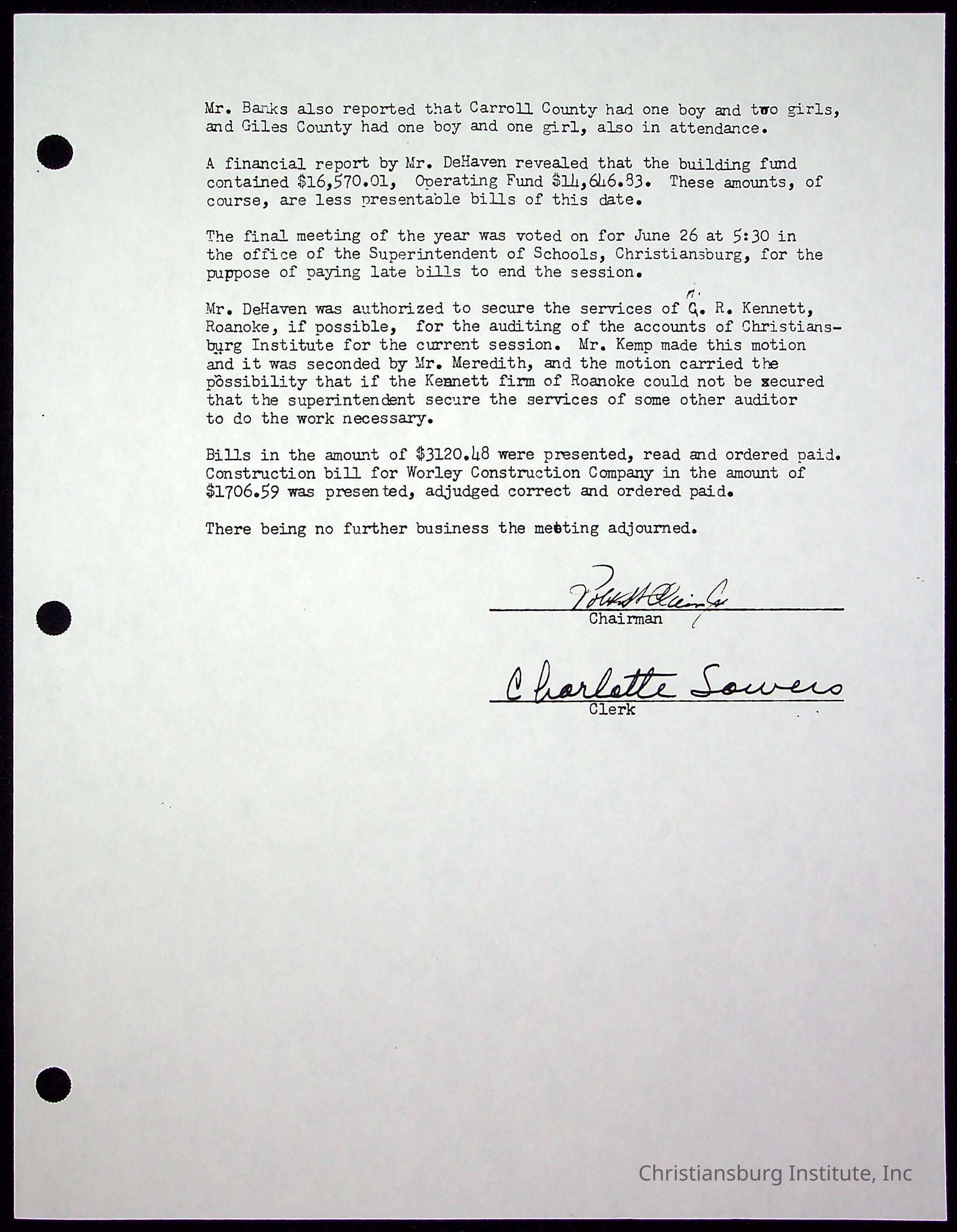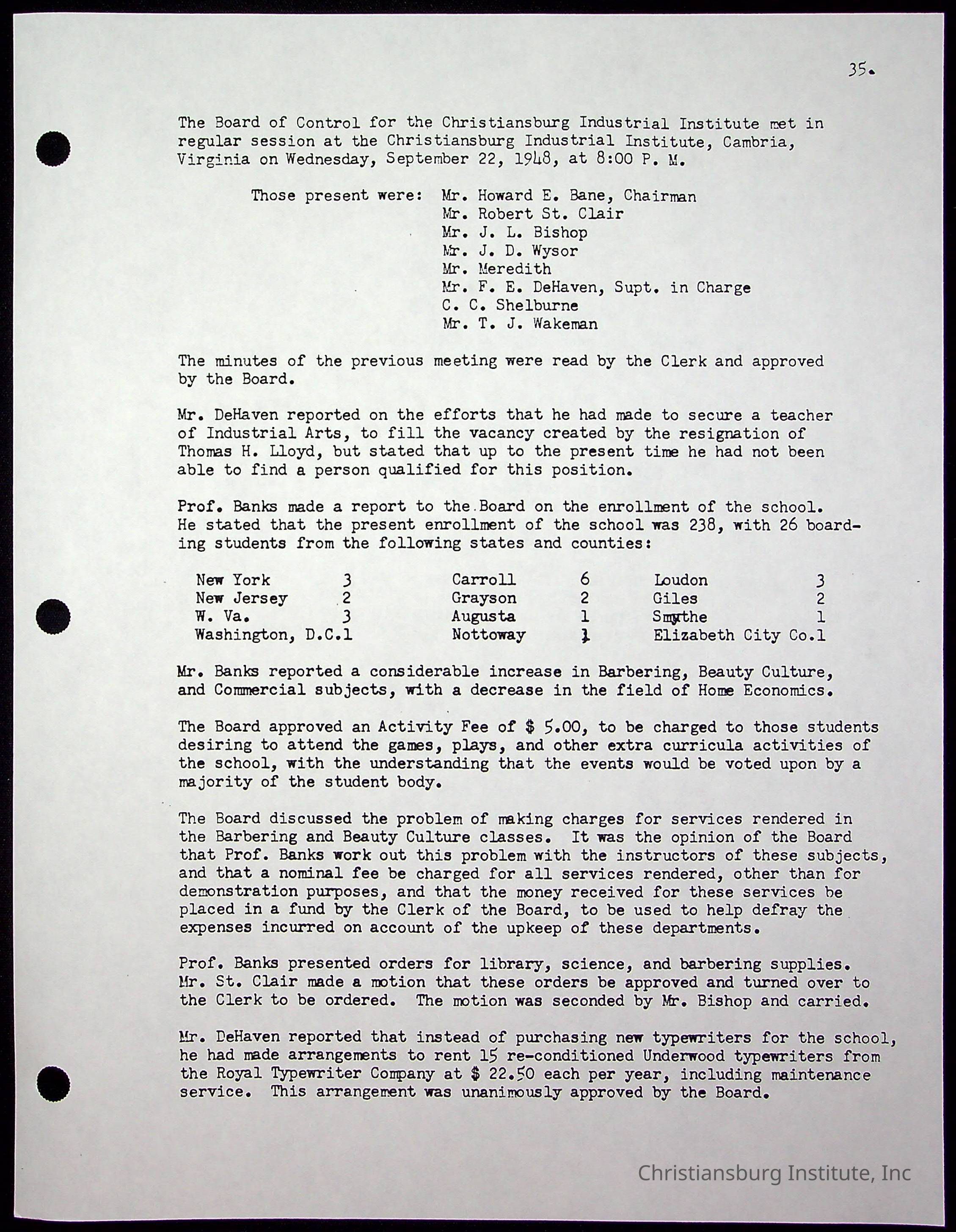 Christiansburg Industrial Institute Board Minutes, July 1947-August 1963 (photocopy)Description