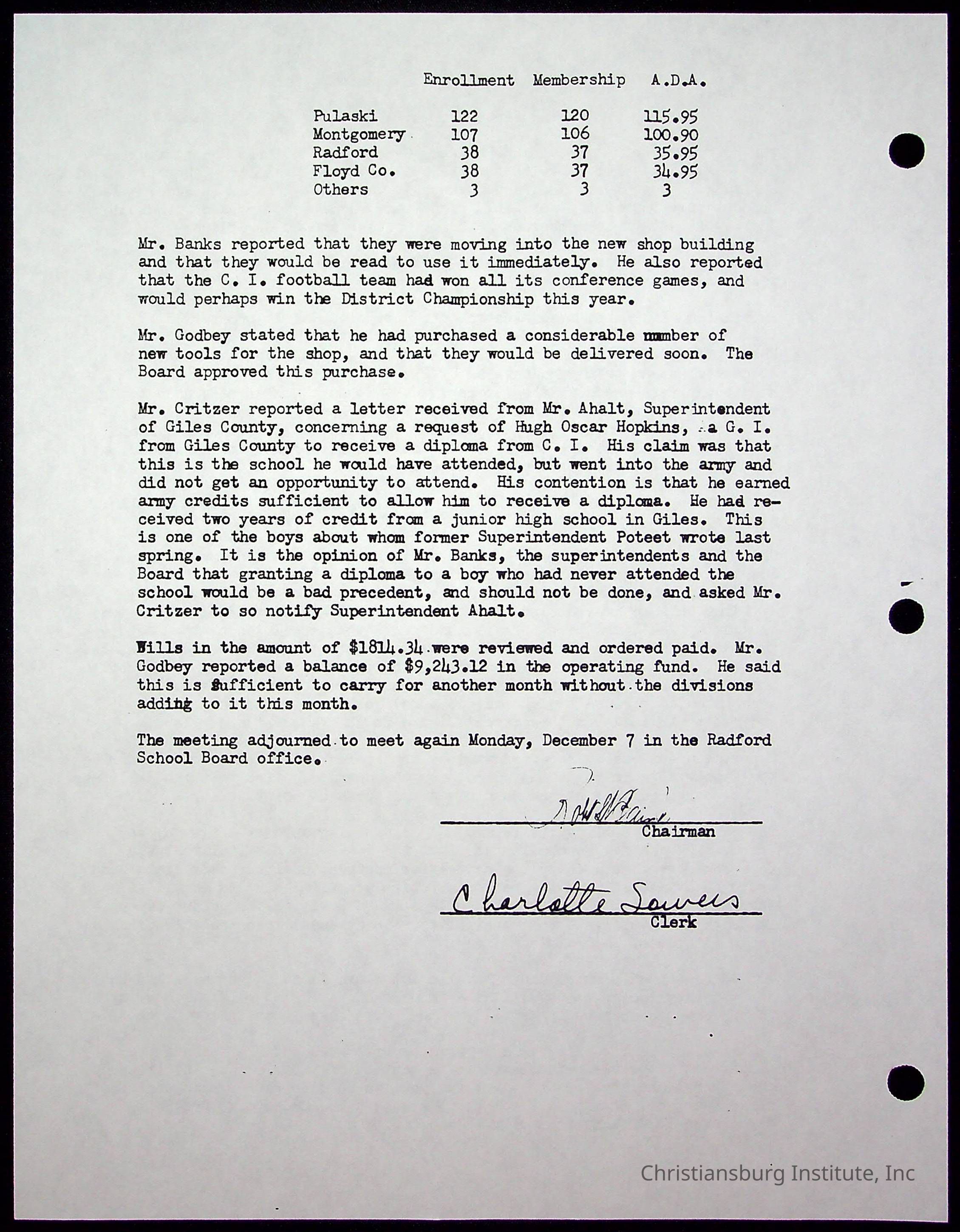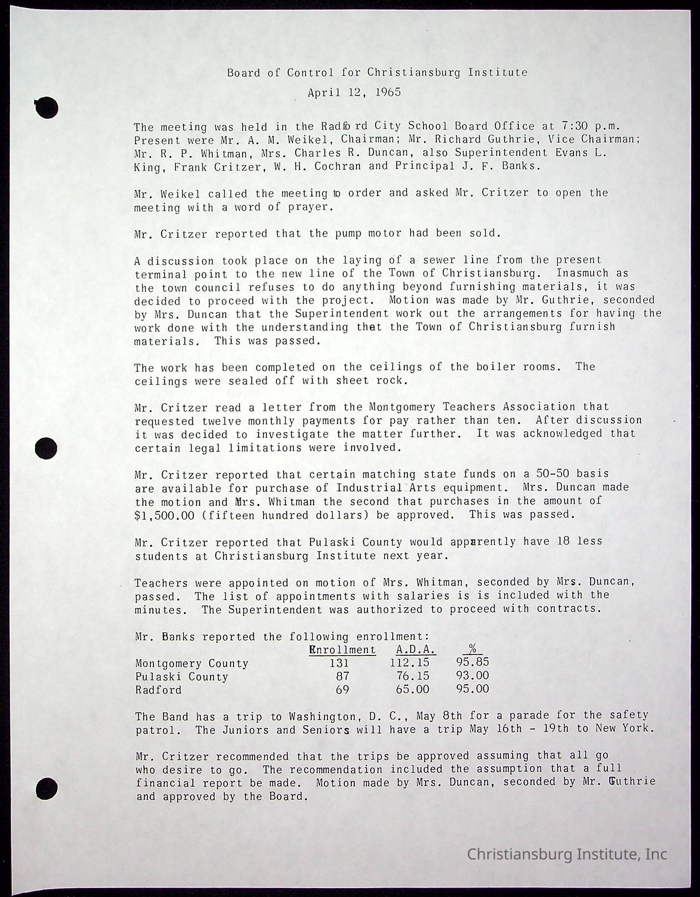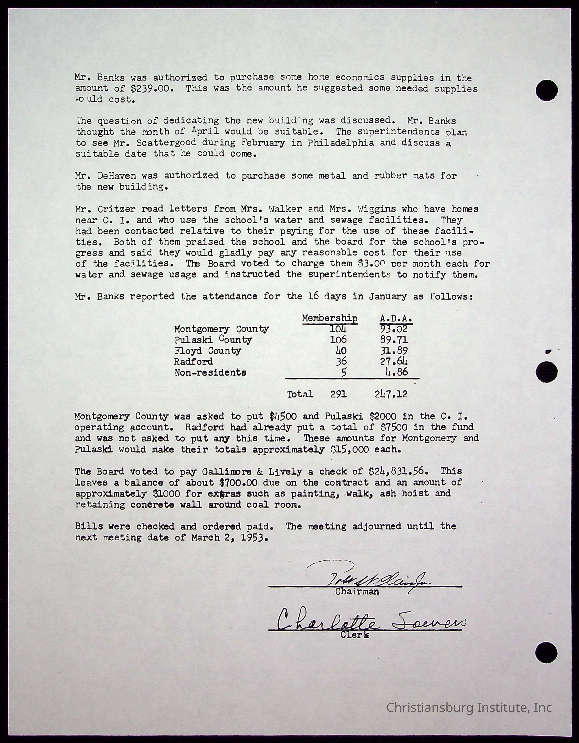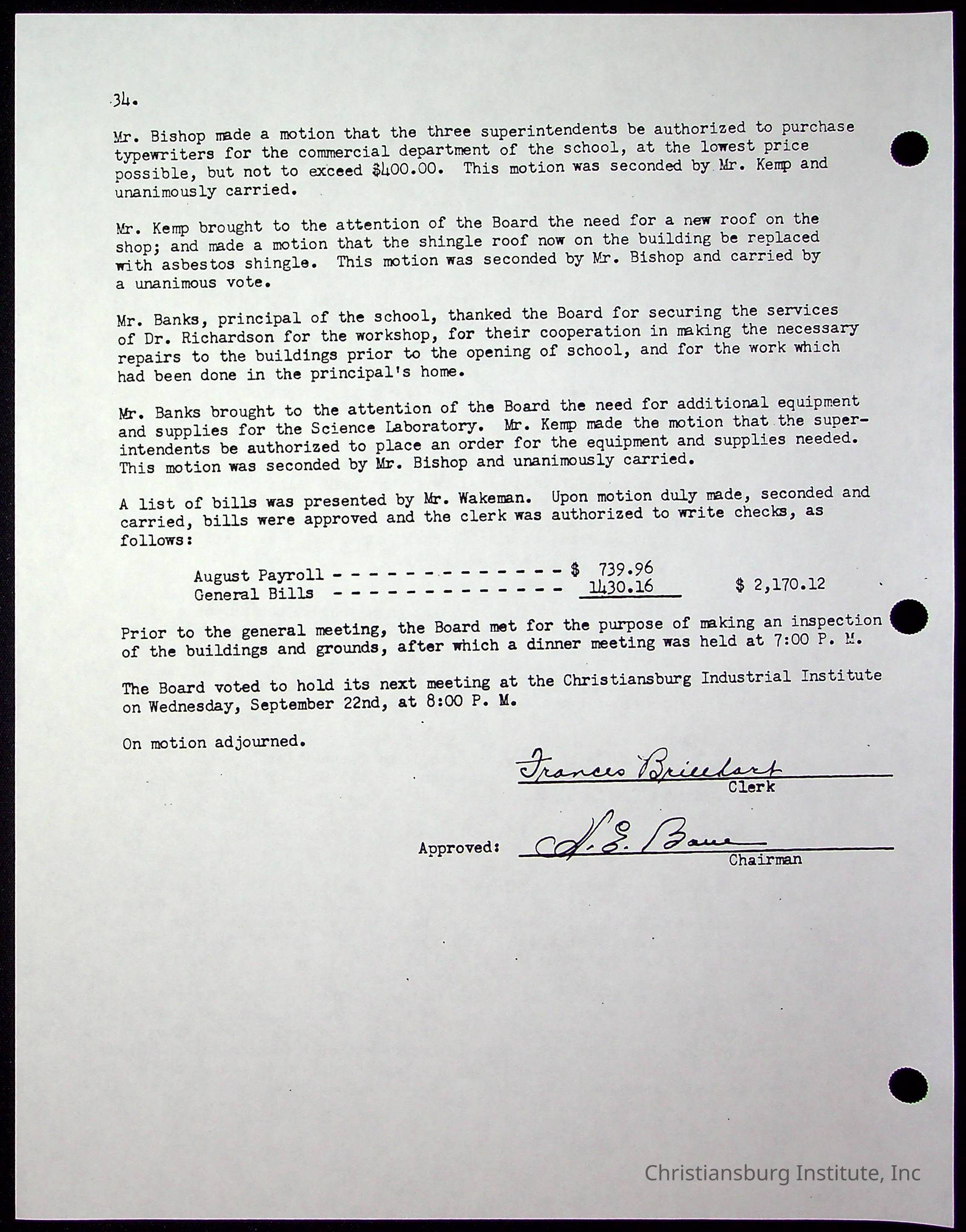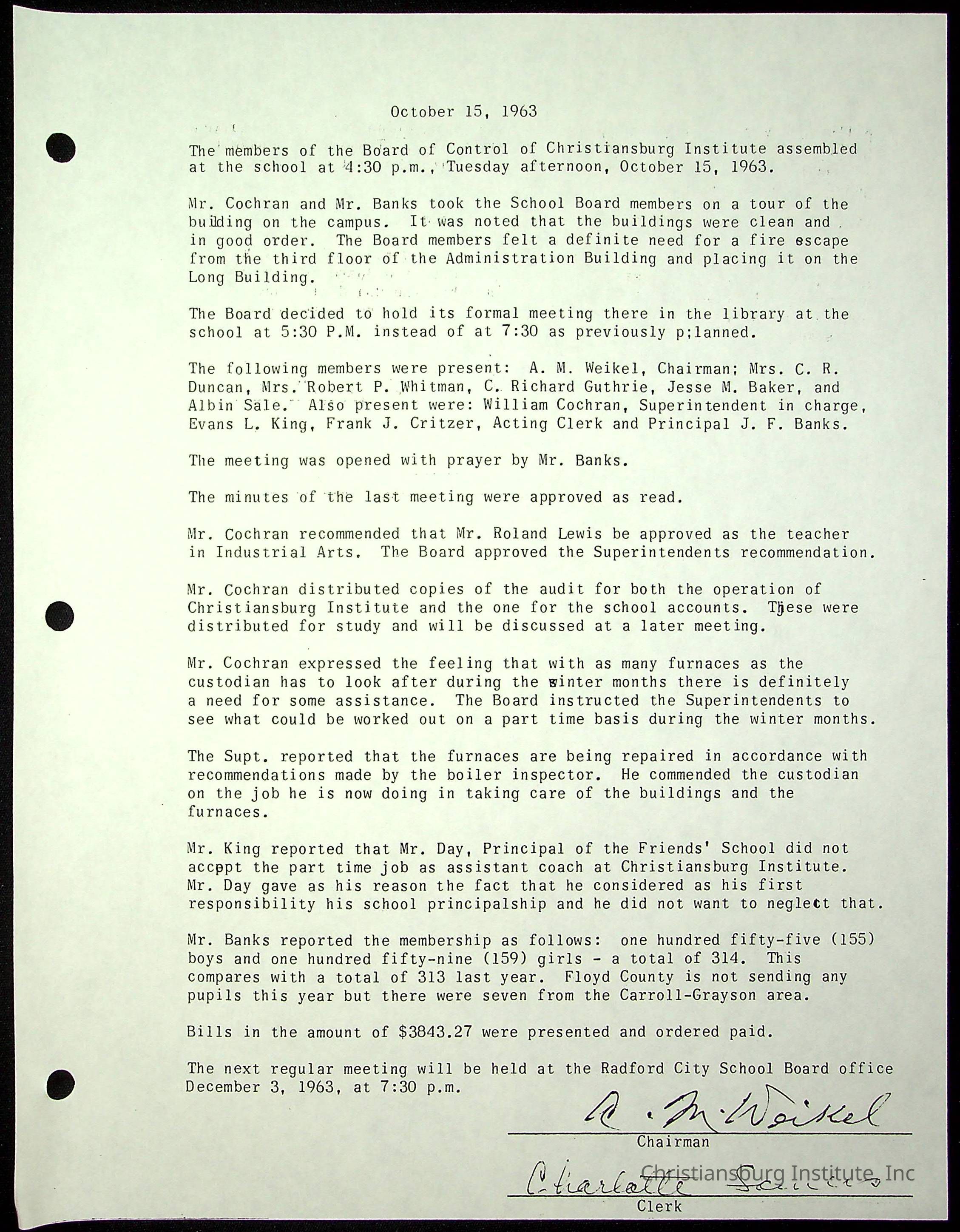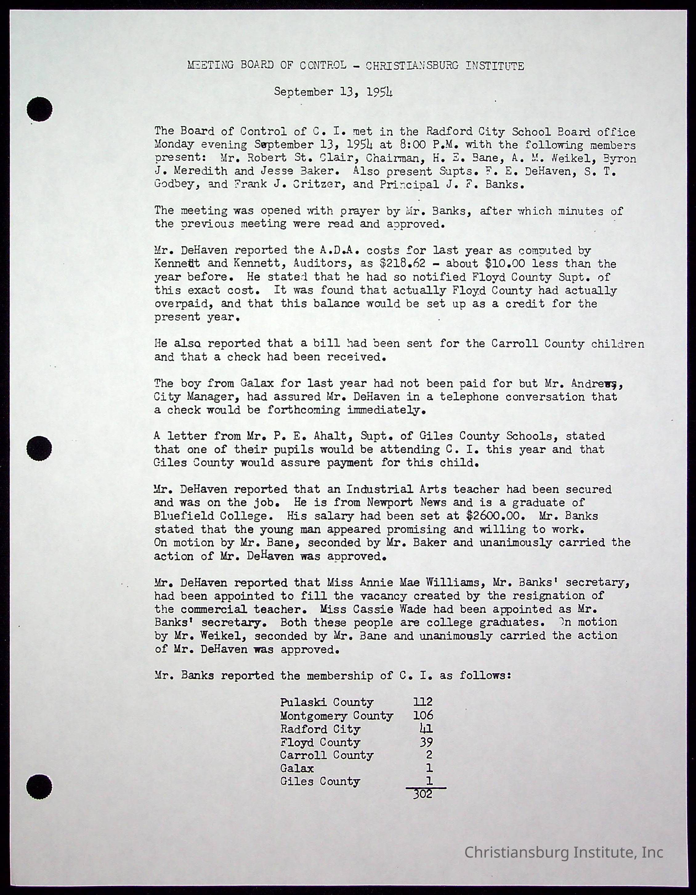 Christiansburg Industrial Institute Board Minutes, July 1947-August 1963 (photocopy)Description