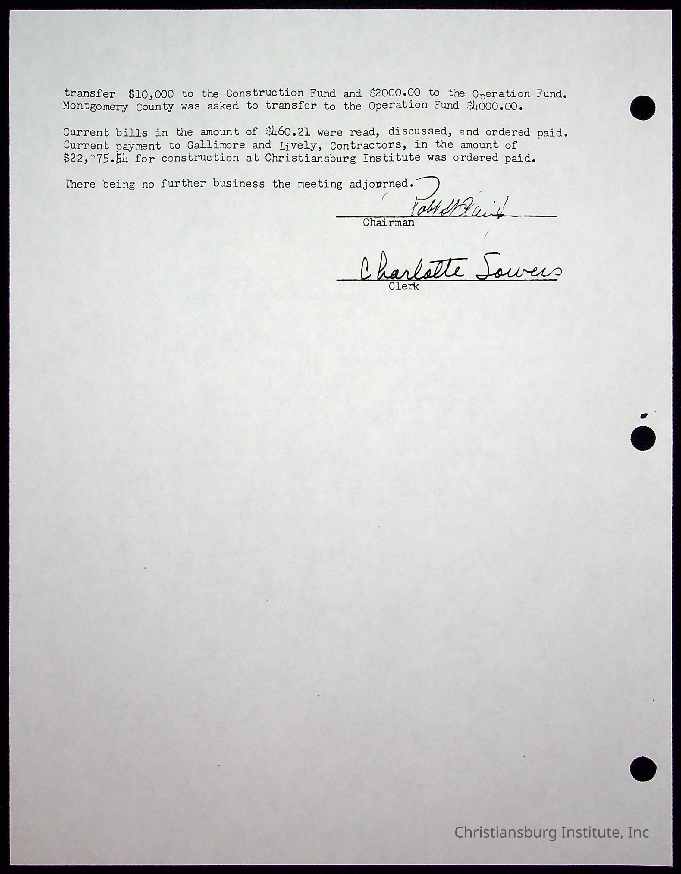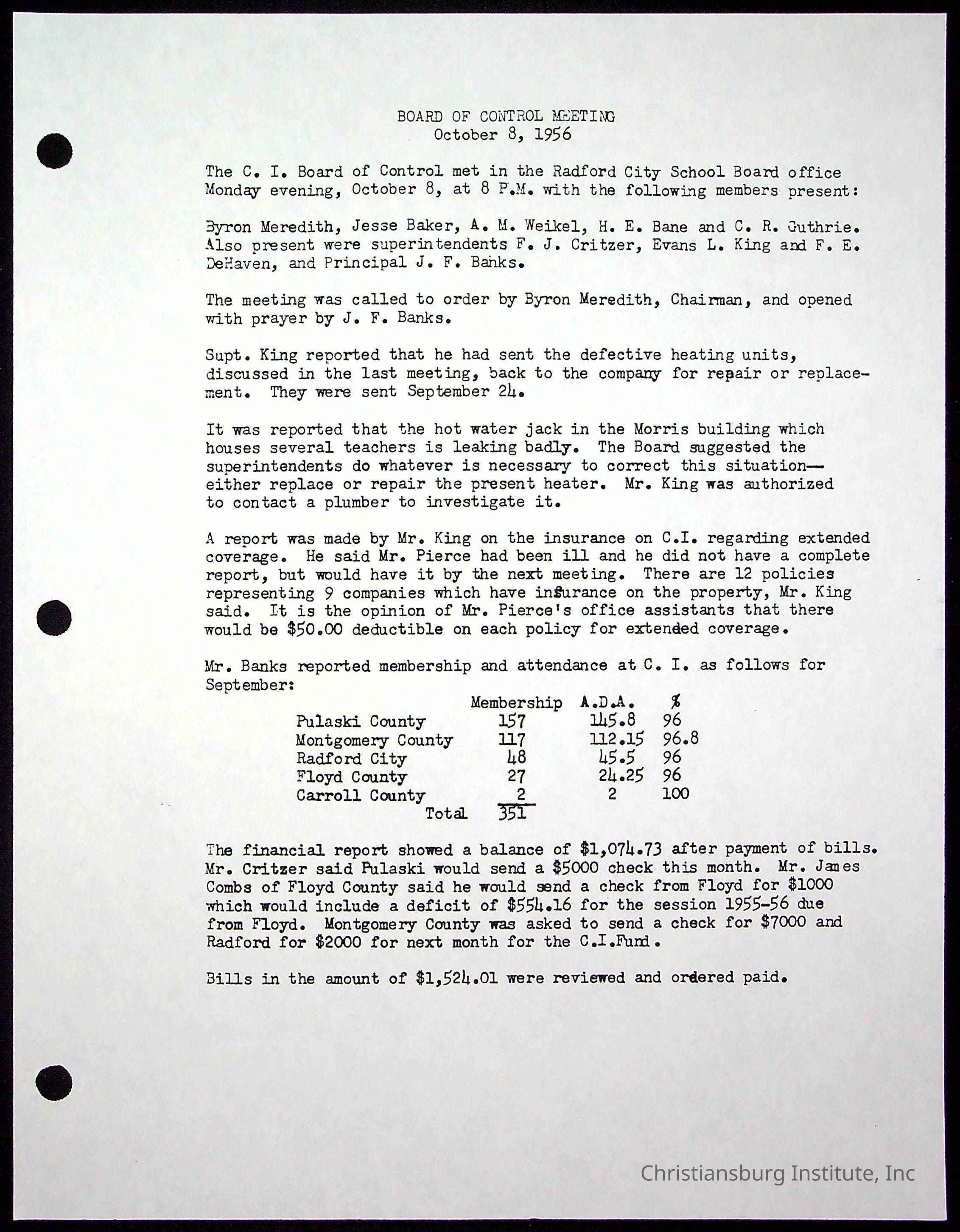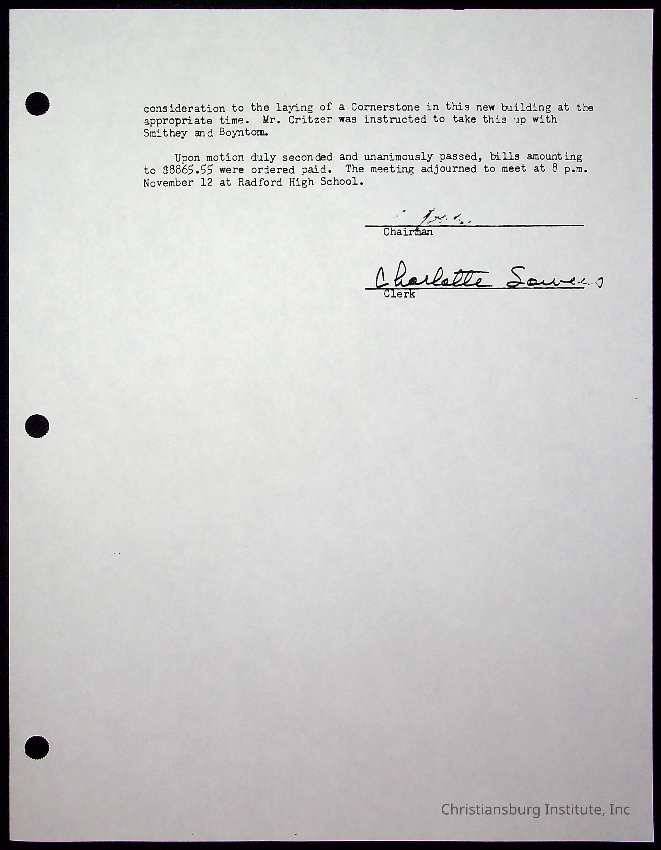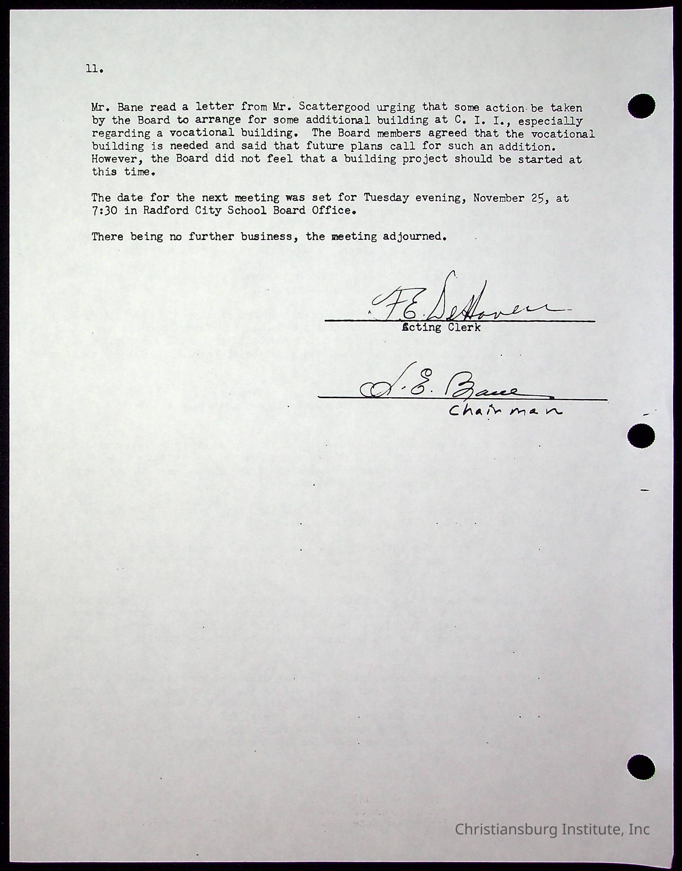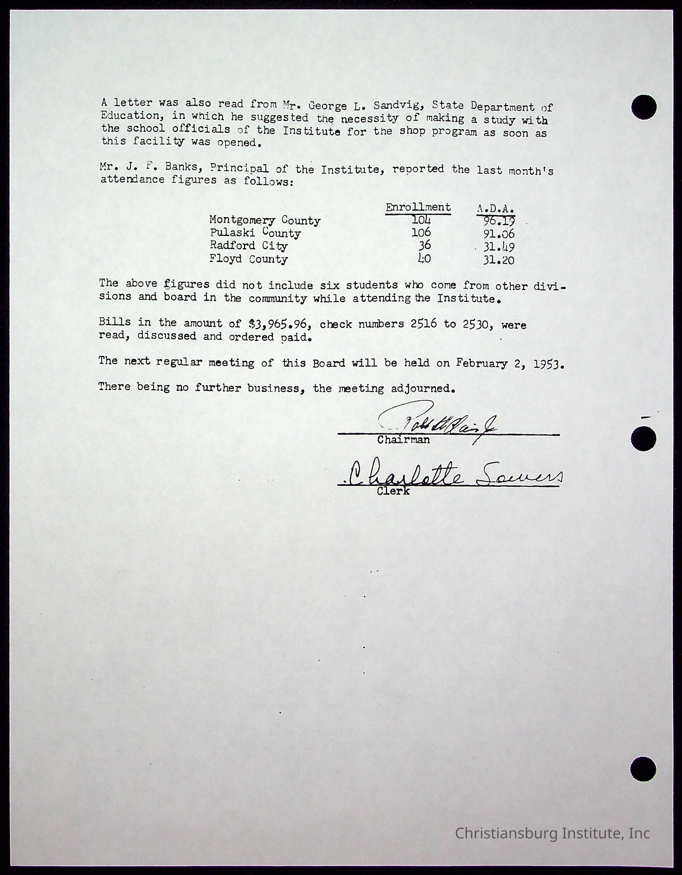 Christiansburg Industrial Institute Board Minutes, July 1947-August 1963 (photocopy)Description