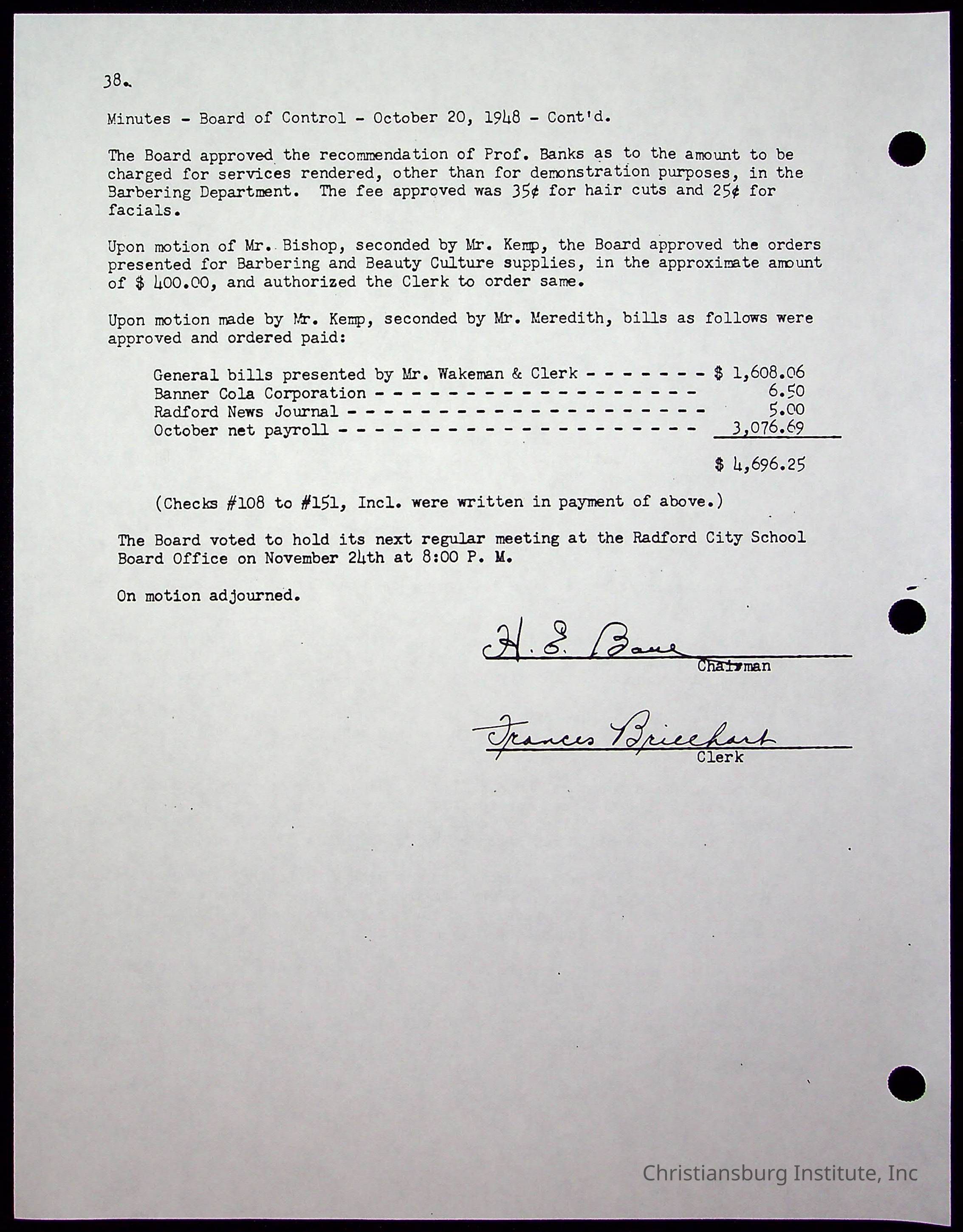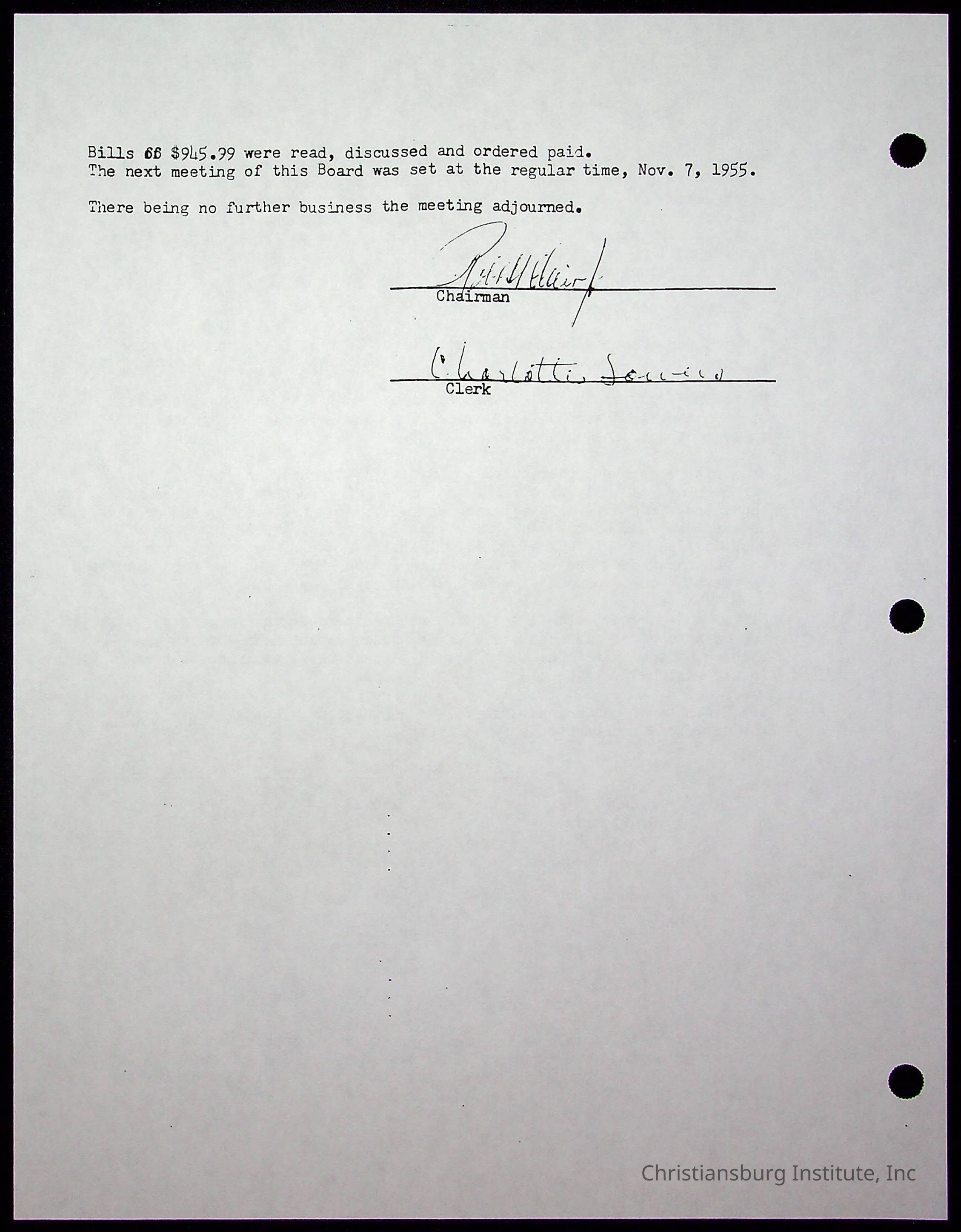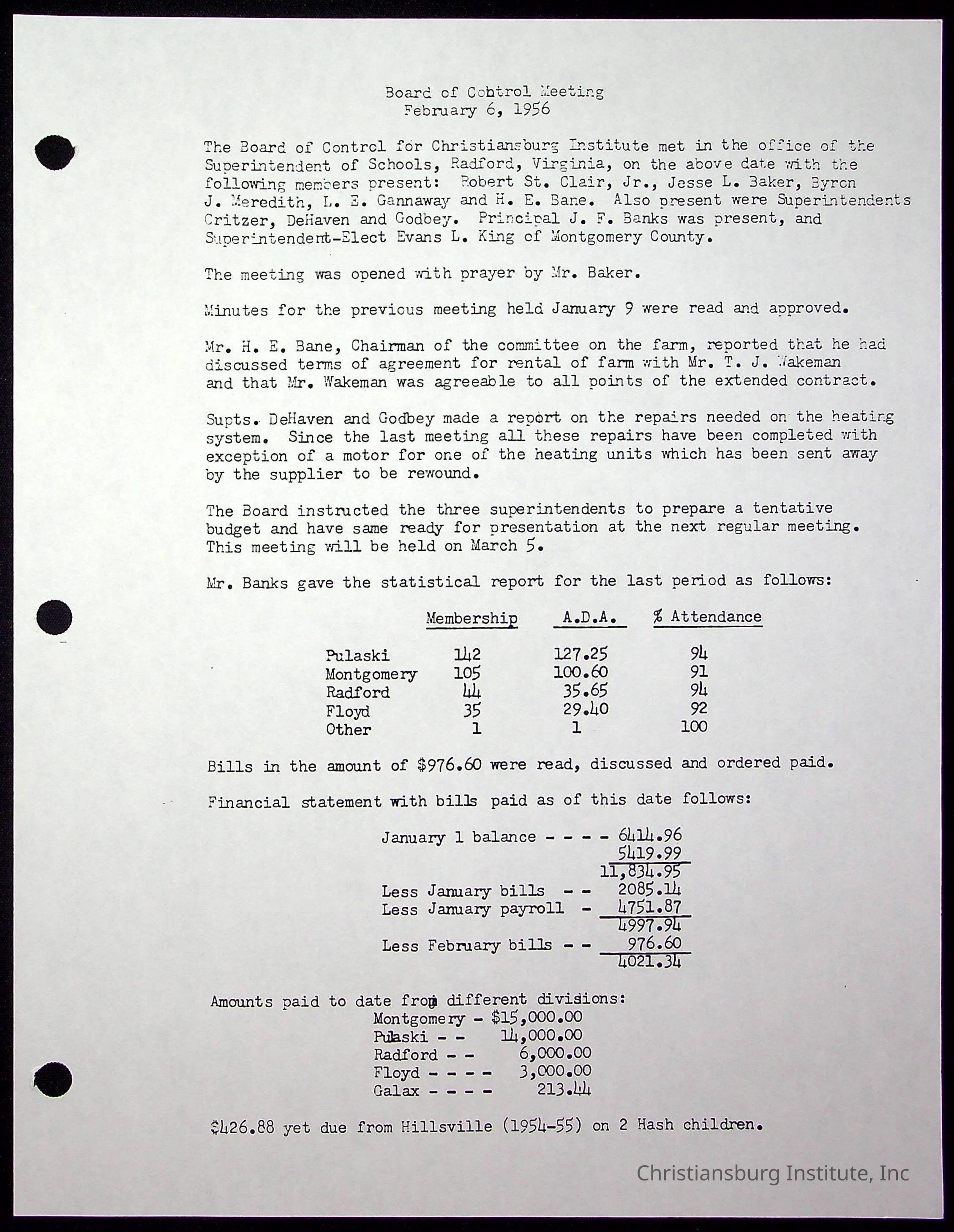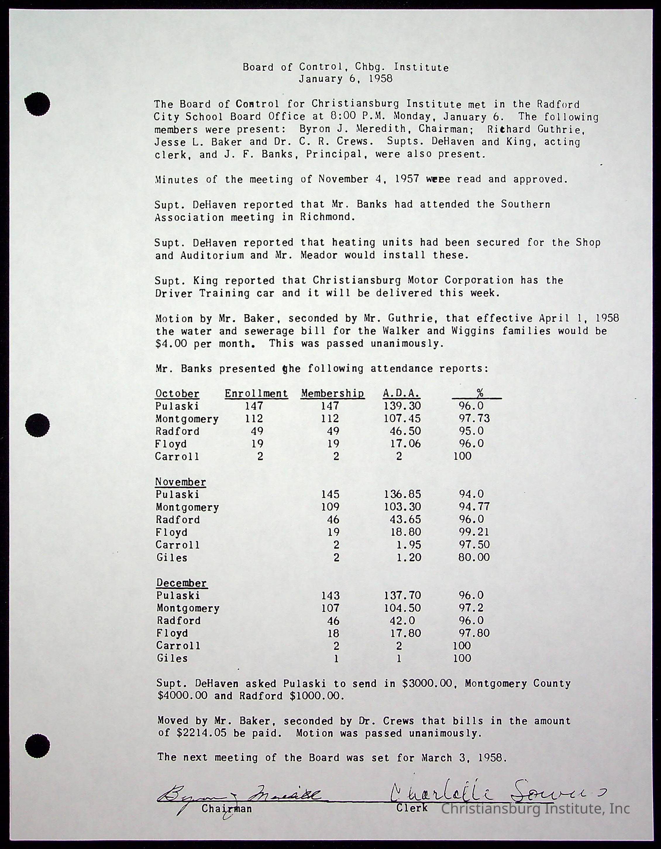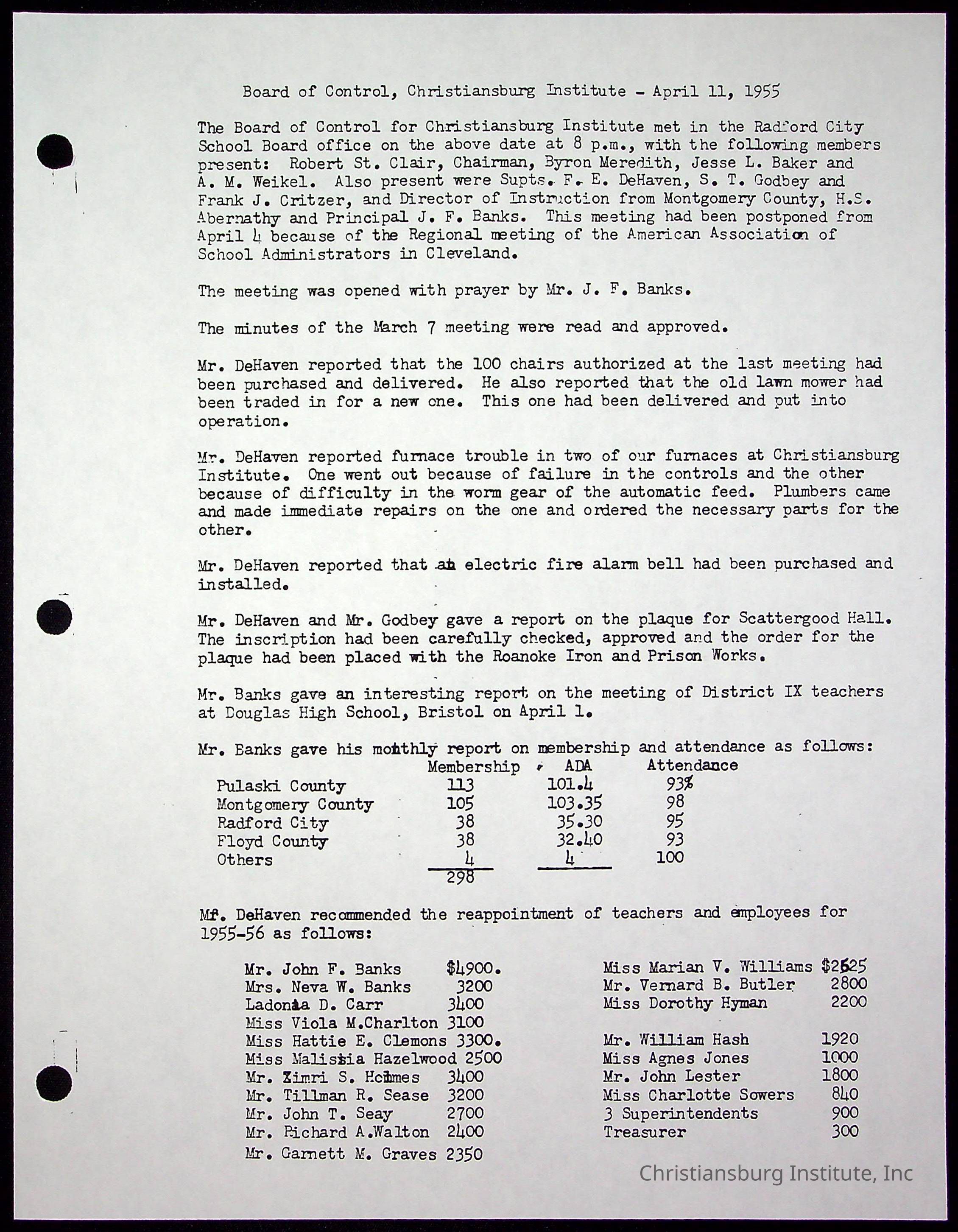 Christiansburg Industrial Institute Board Minutes, July 1947-August 1963 (photocopy)Description