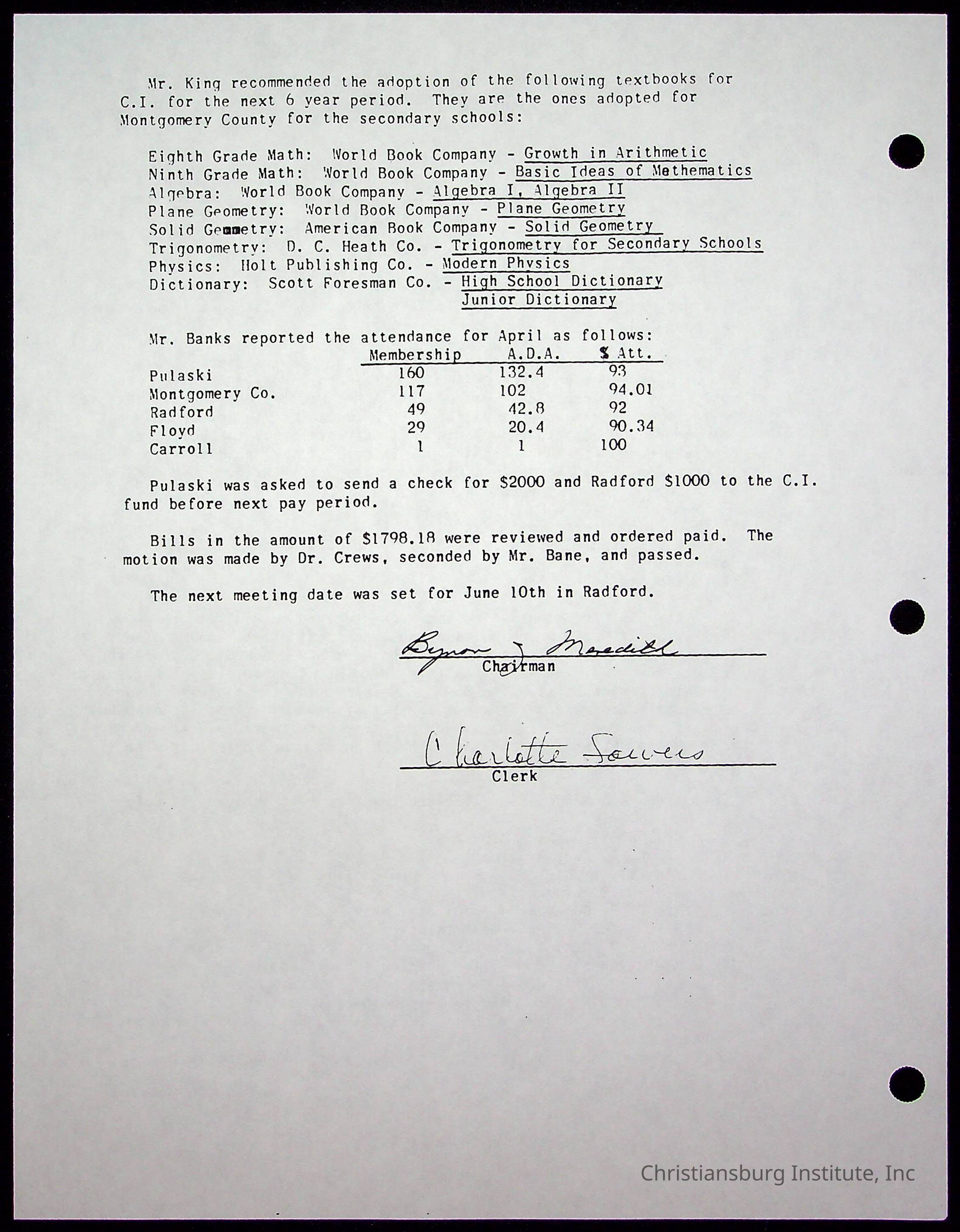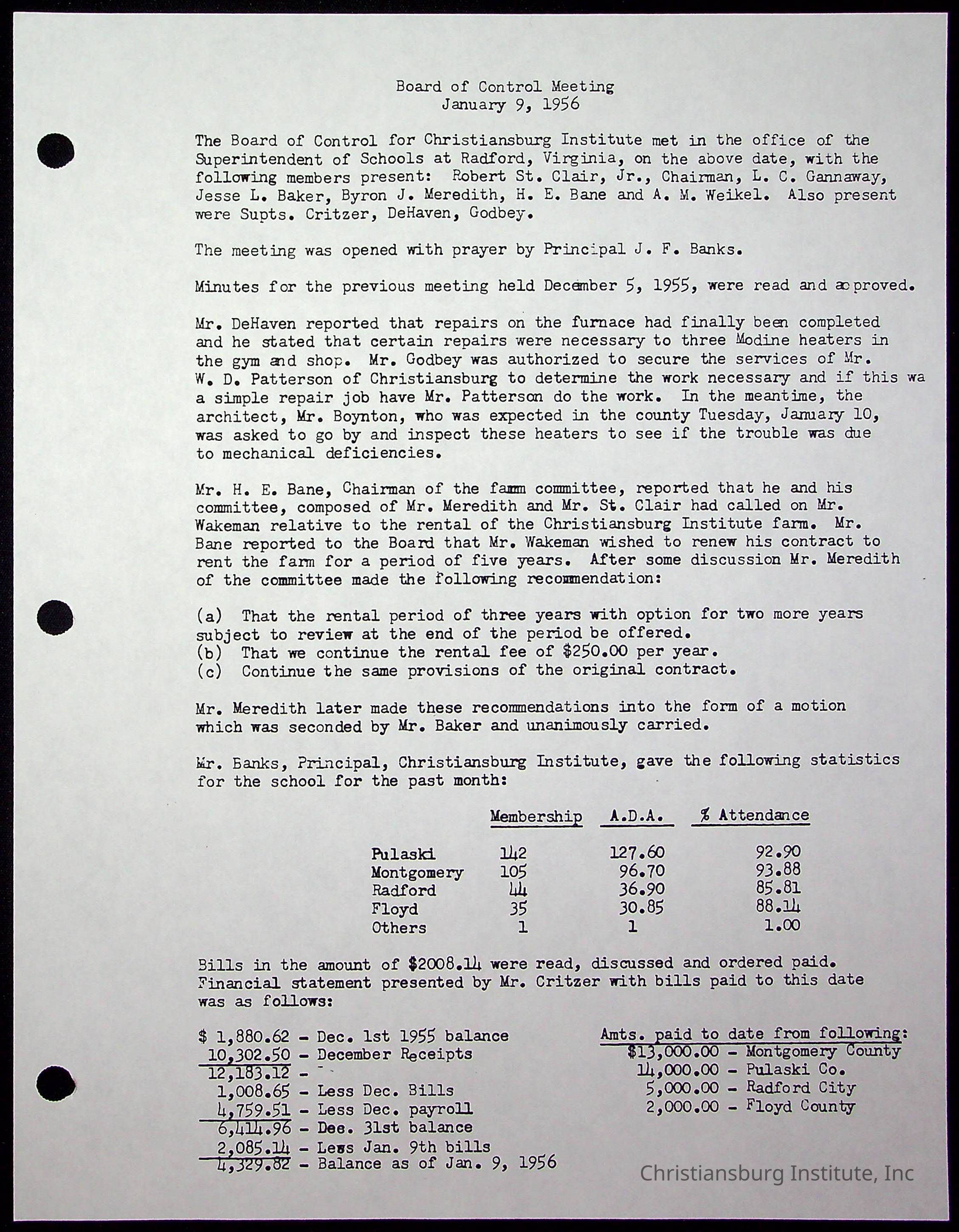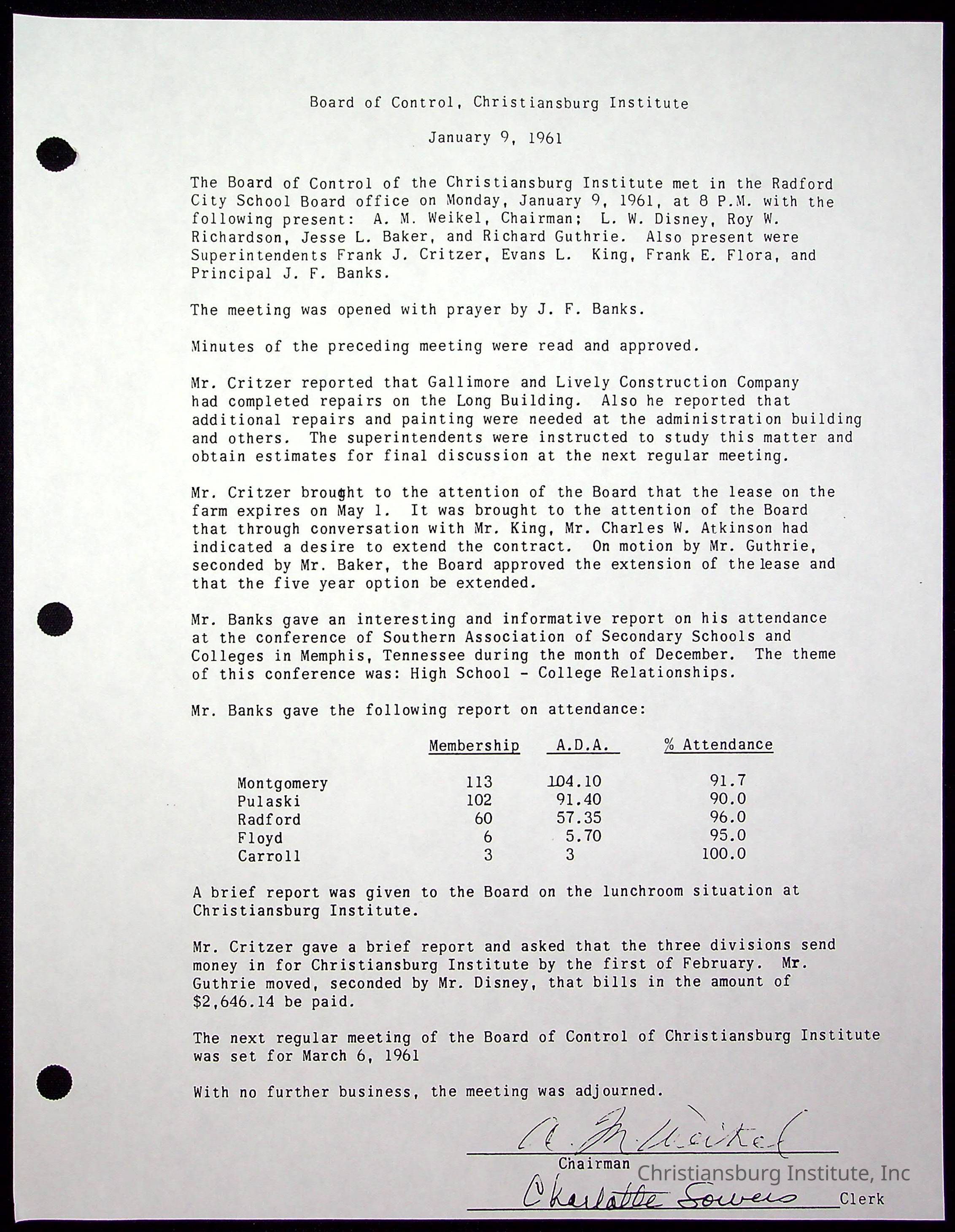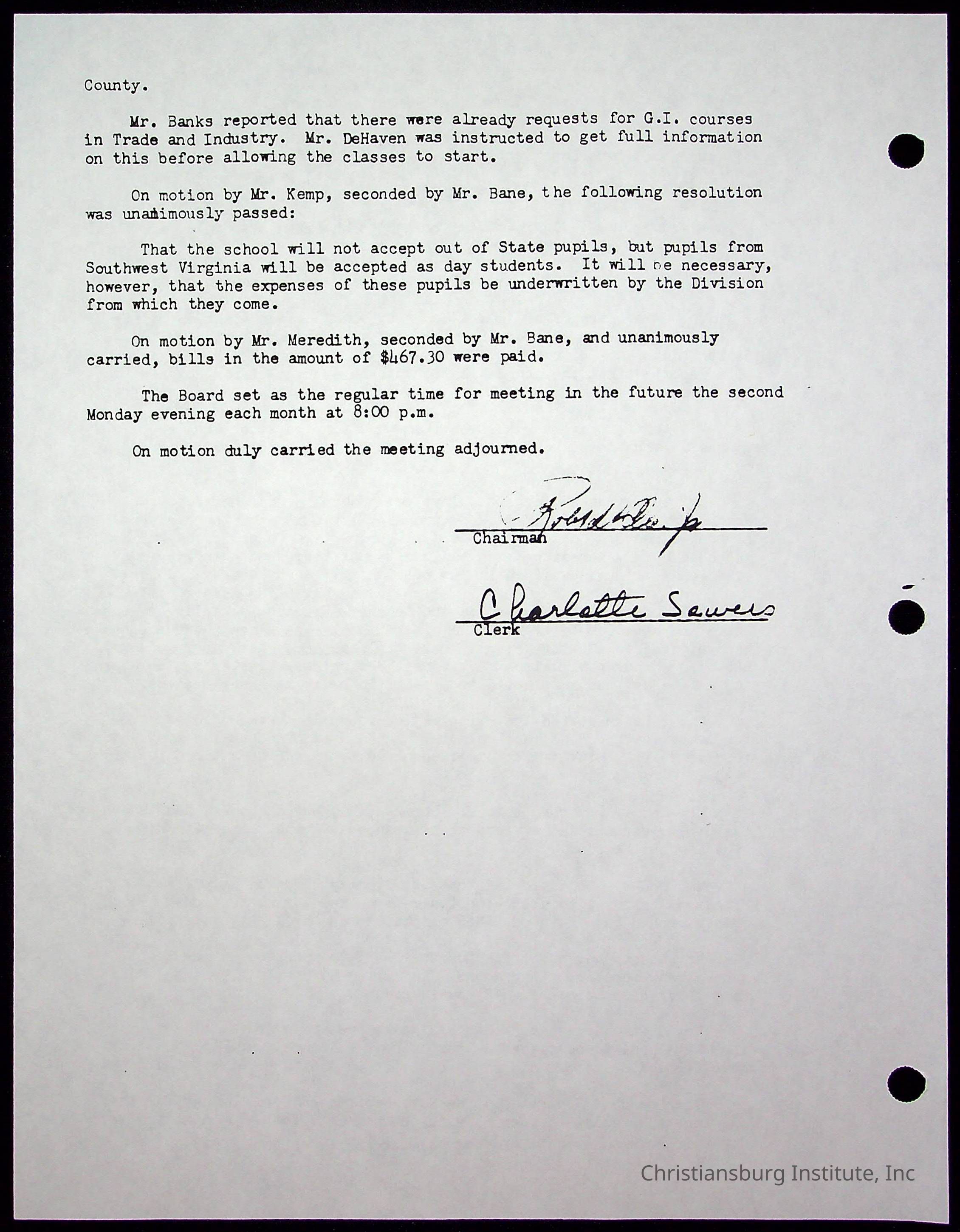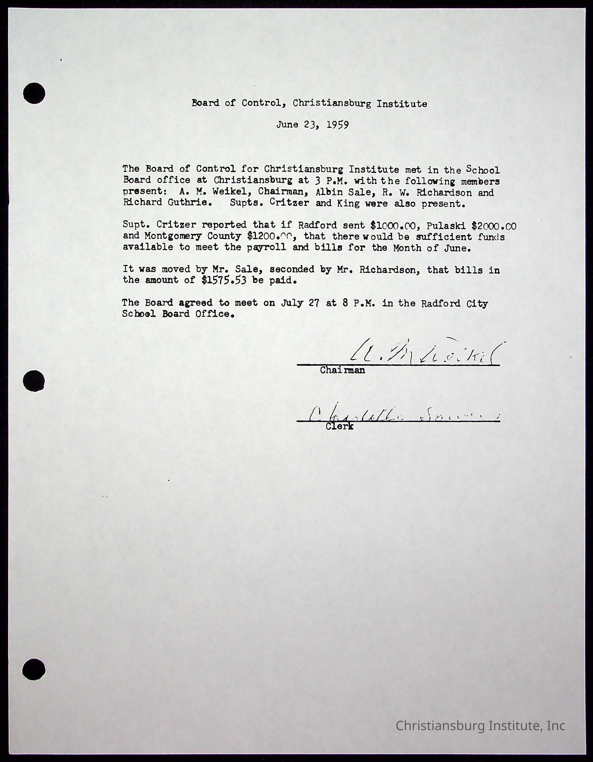 Christiansburg Industrial Institute Board Minutes, July 1947-August 1963 (photocopy)Description