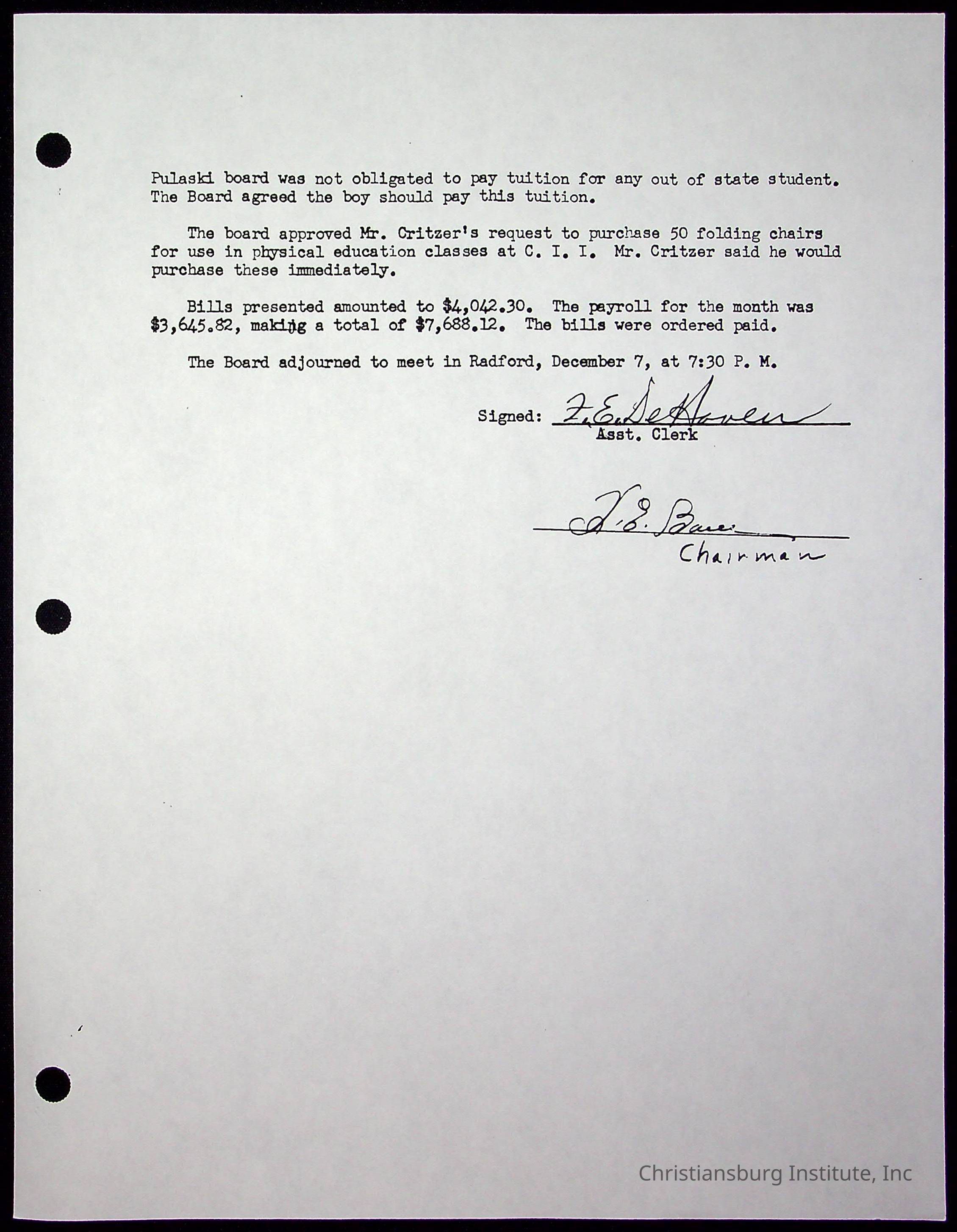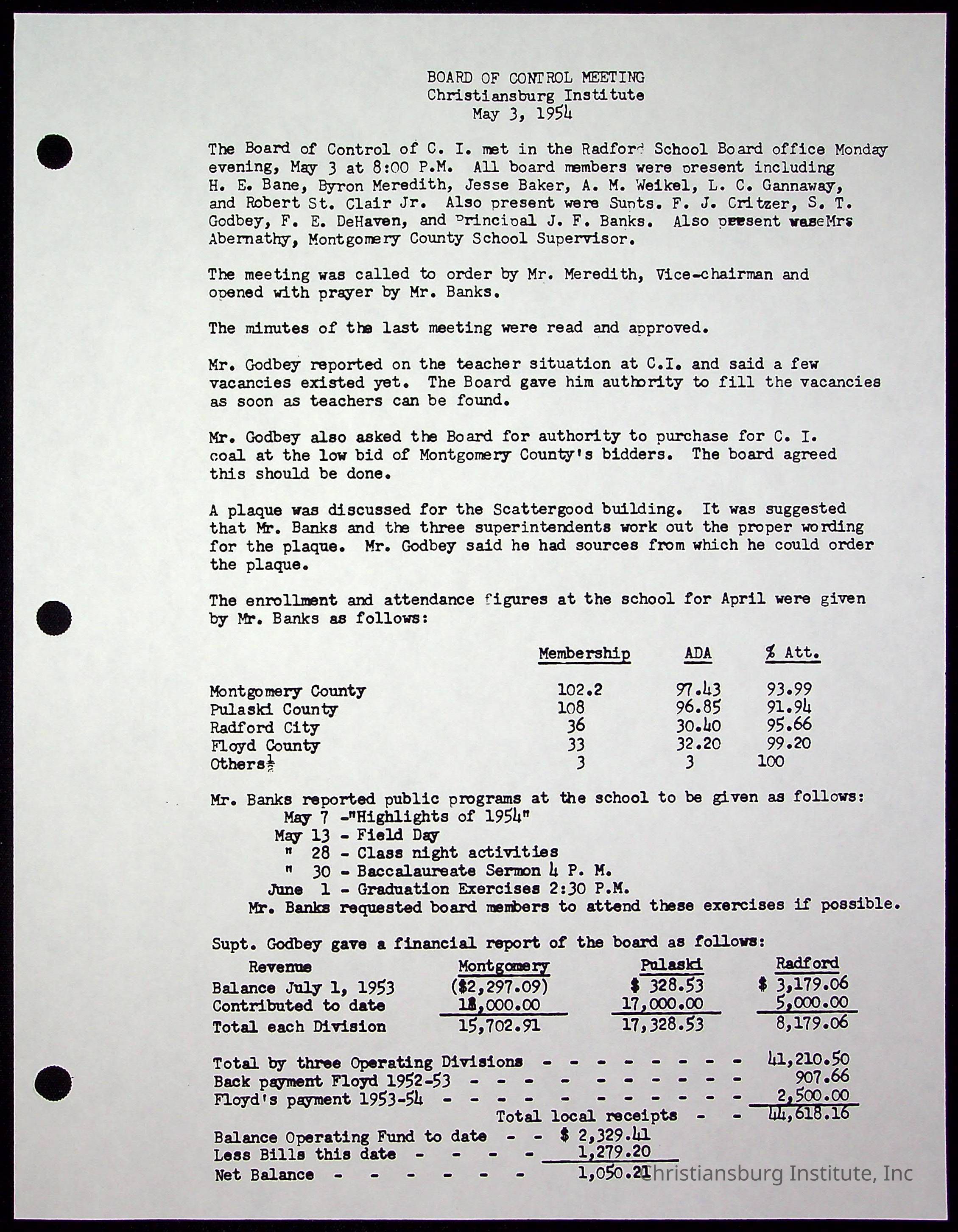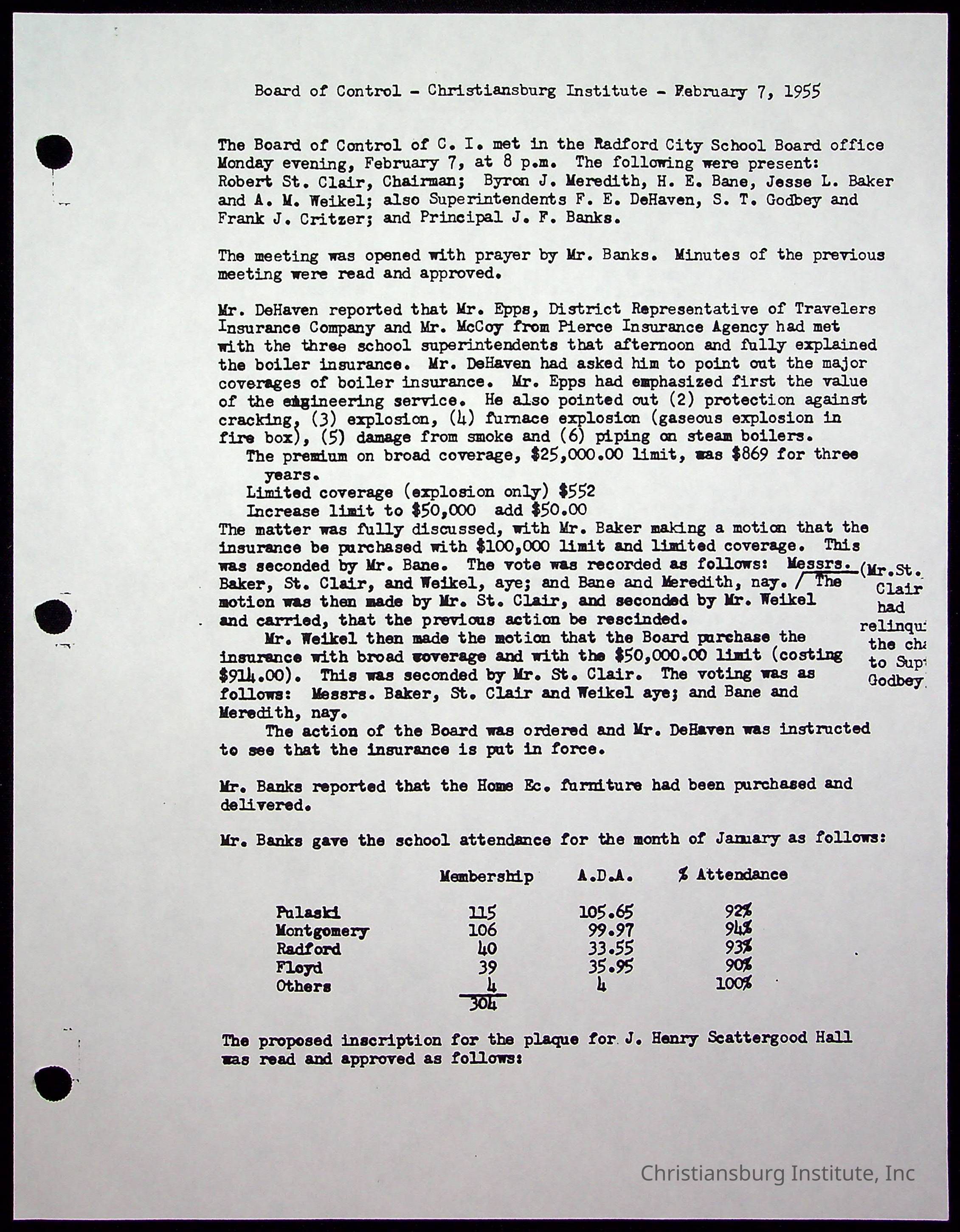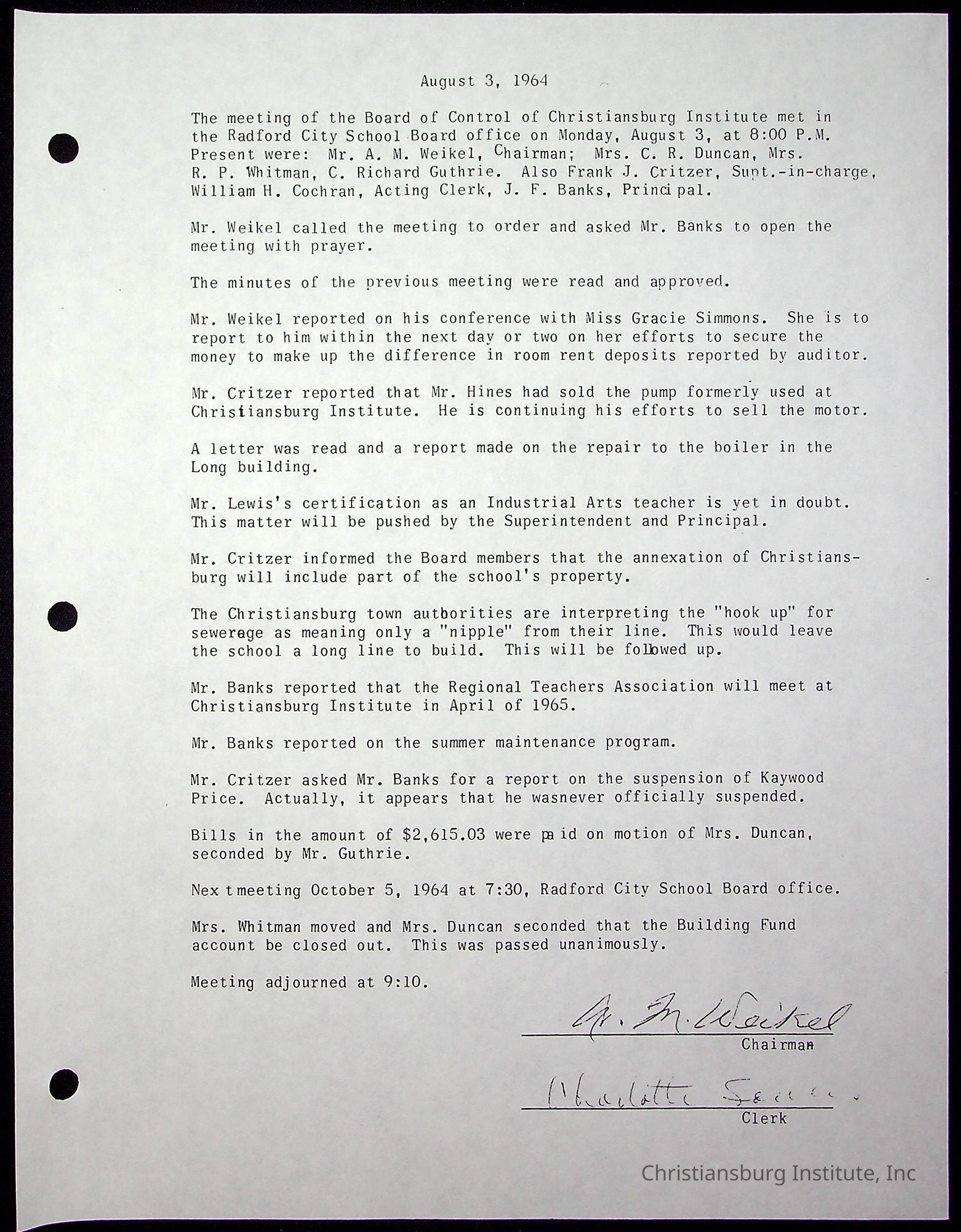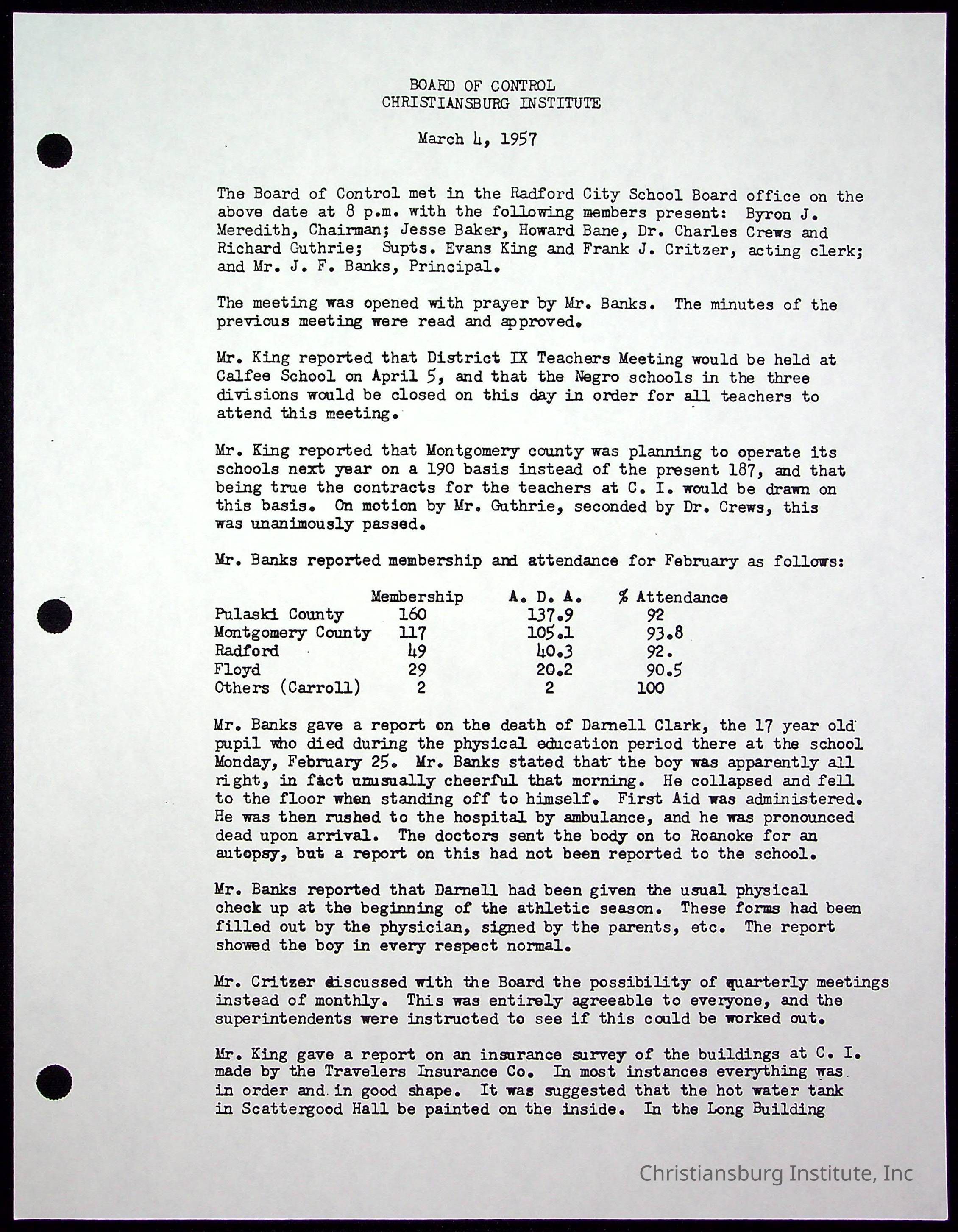 Christiansburg Industrial Institute Board Minutes, July 1947-August 1963 (photocopy)Description
