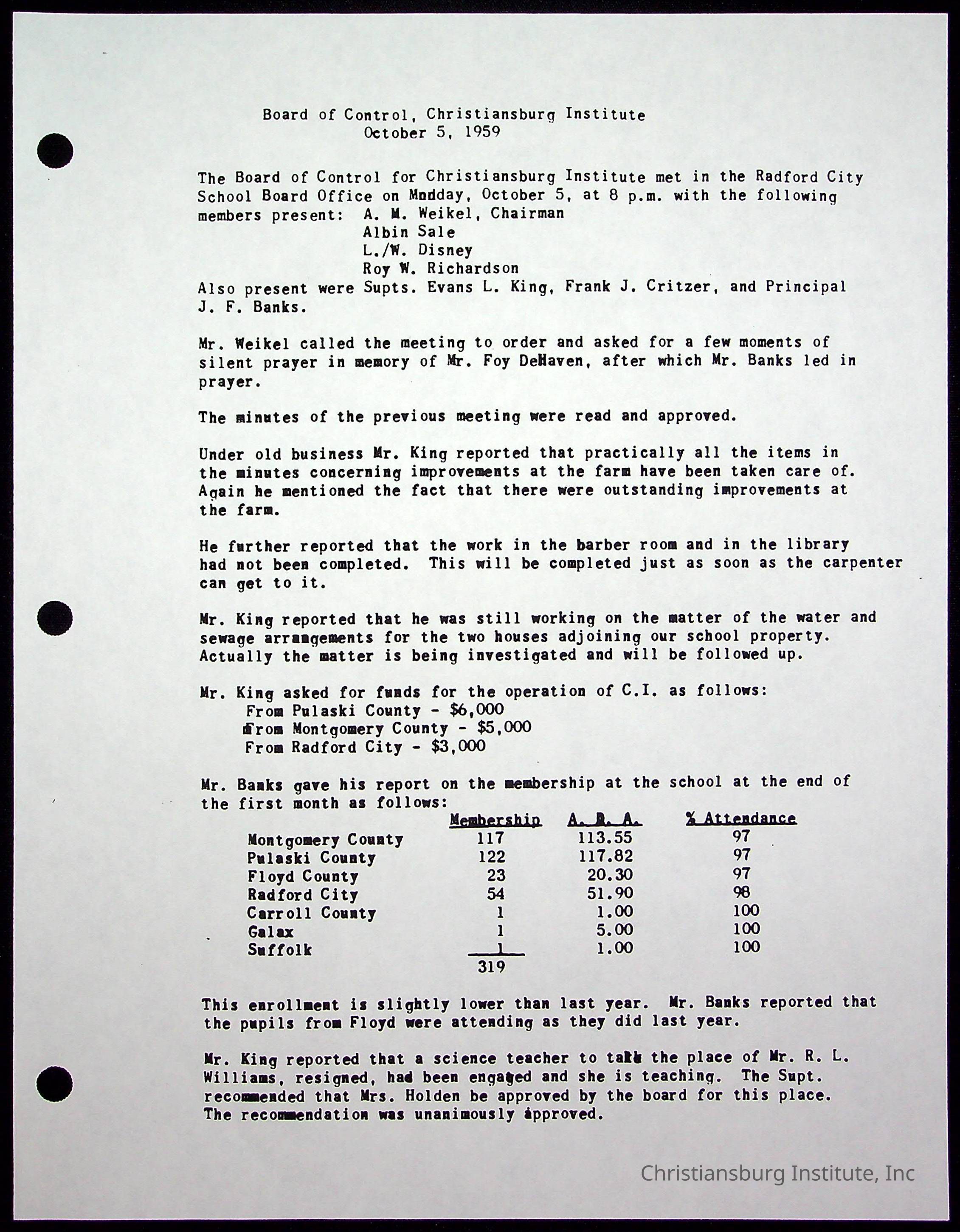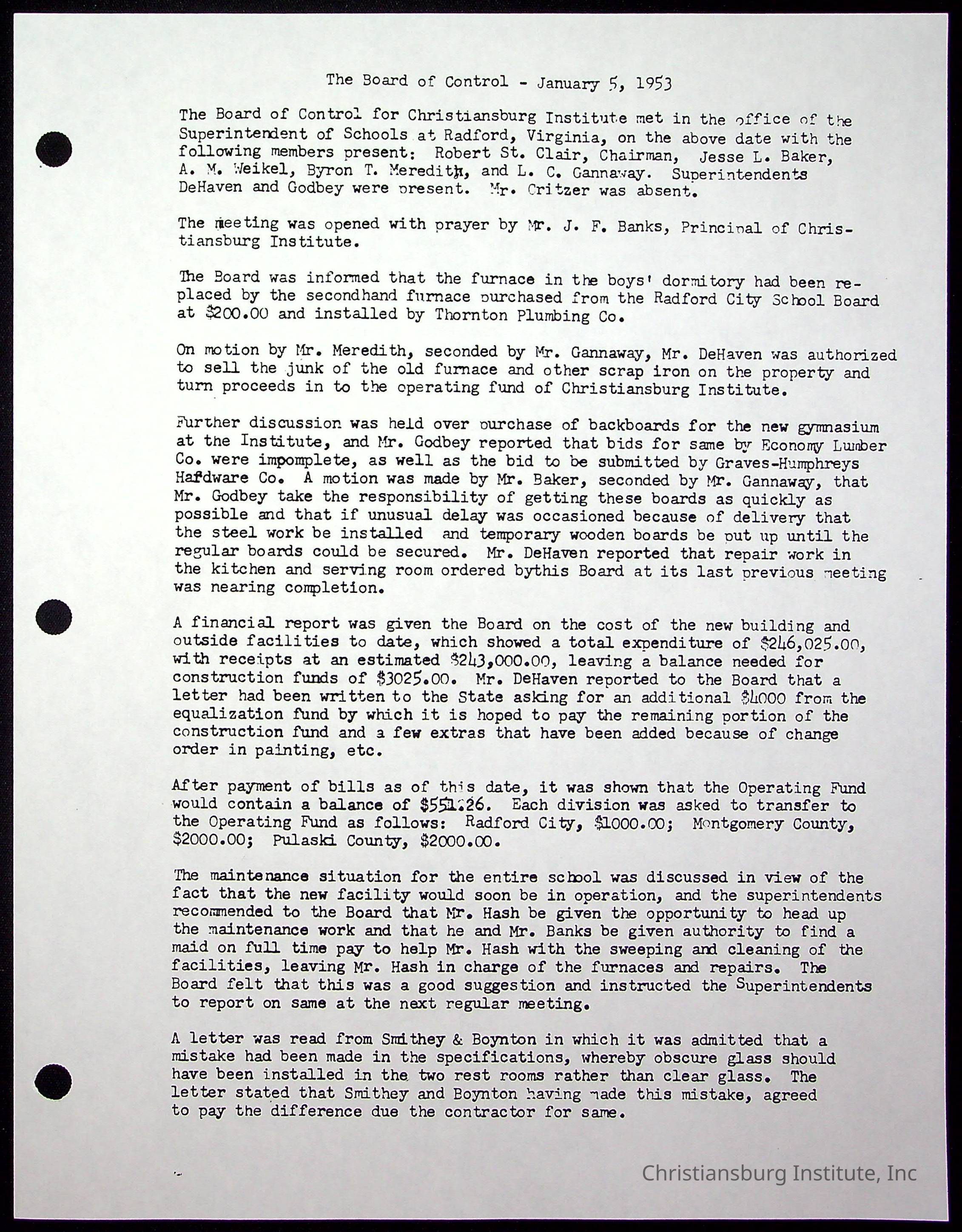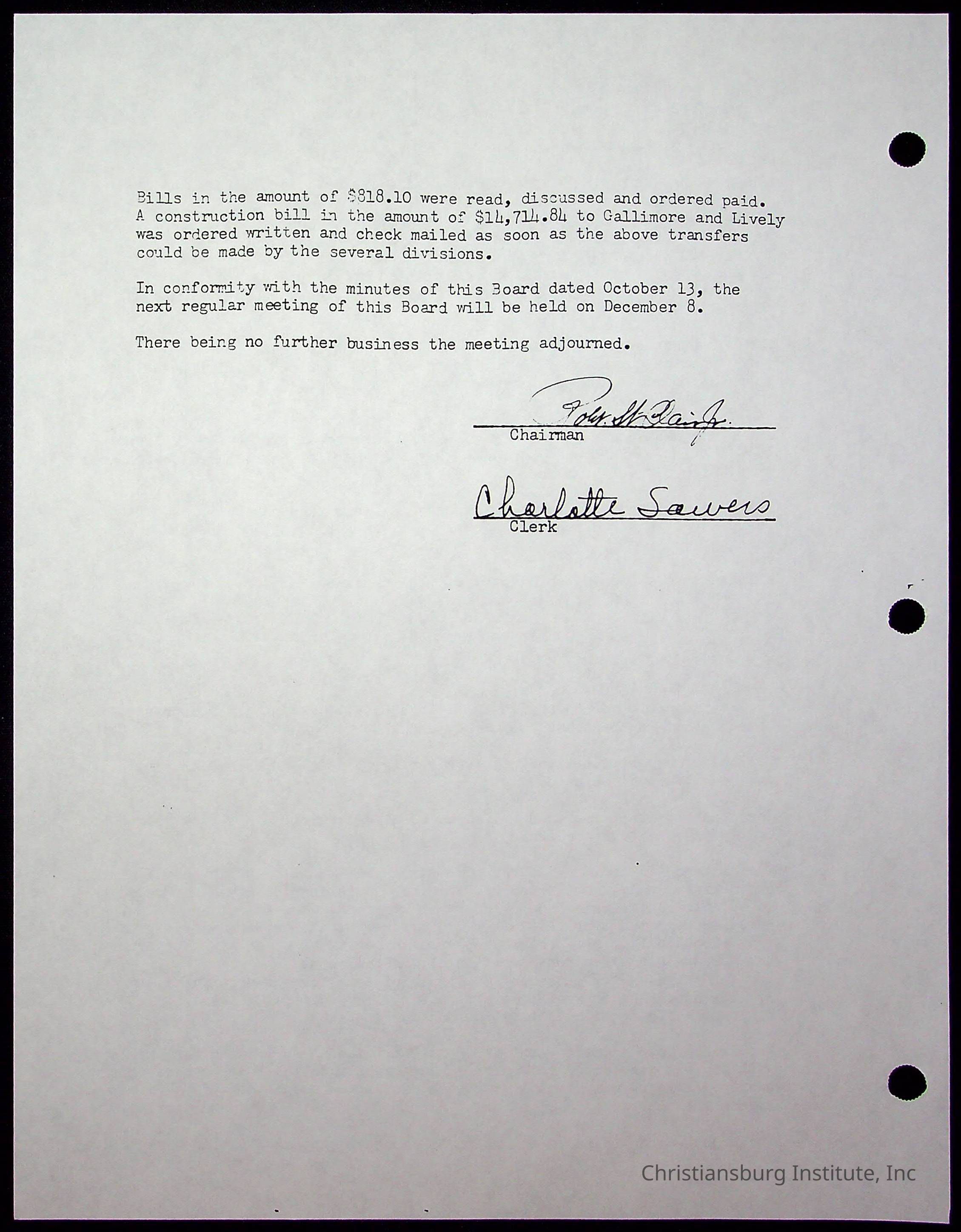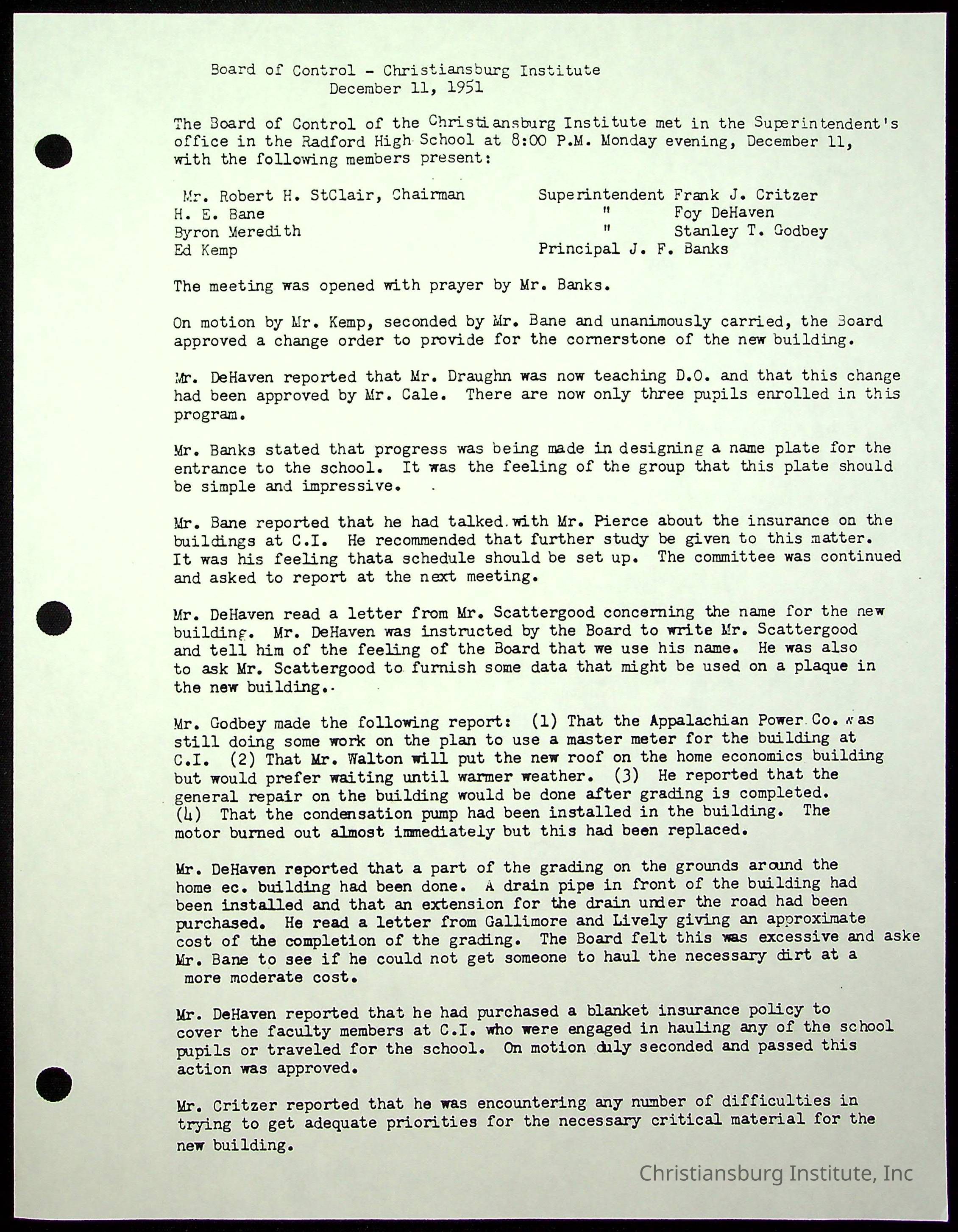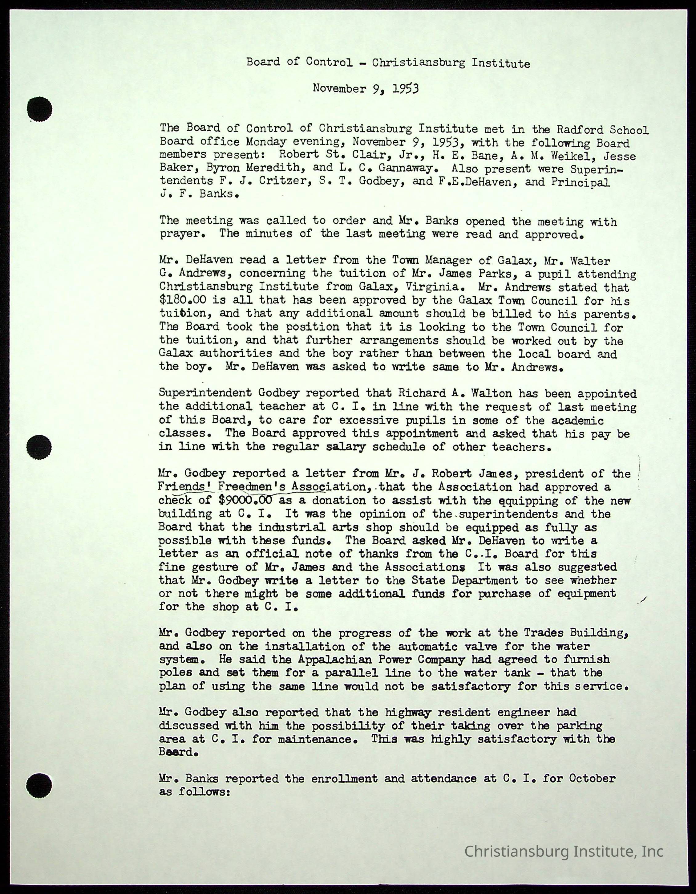Christiansburg Industrial Institute Board Minutes, July 1947-August 1963 (photocopy)Description