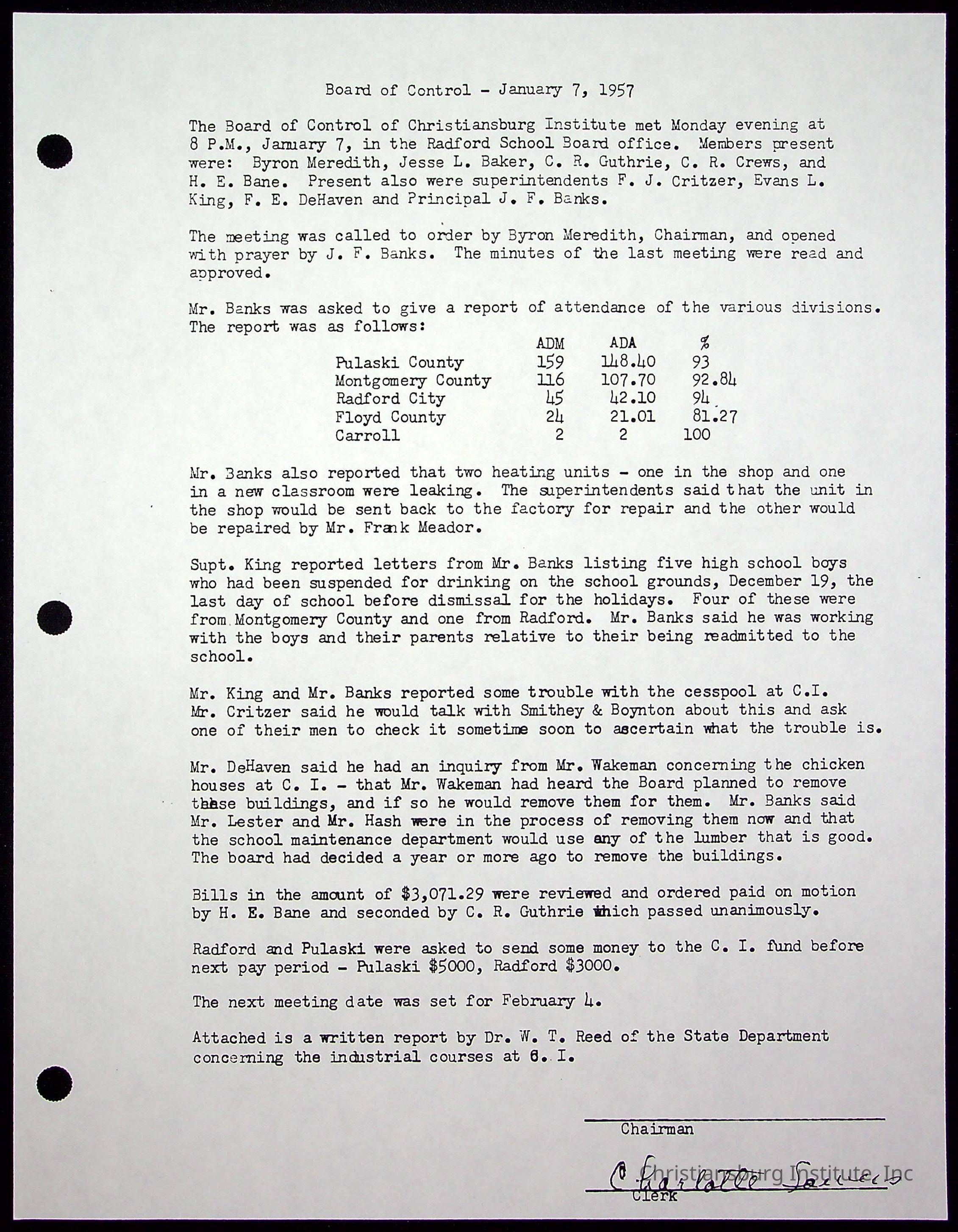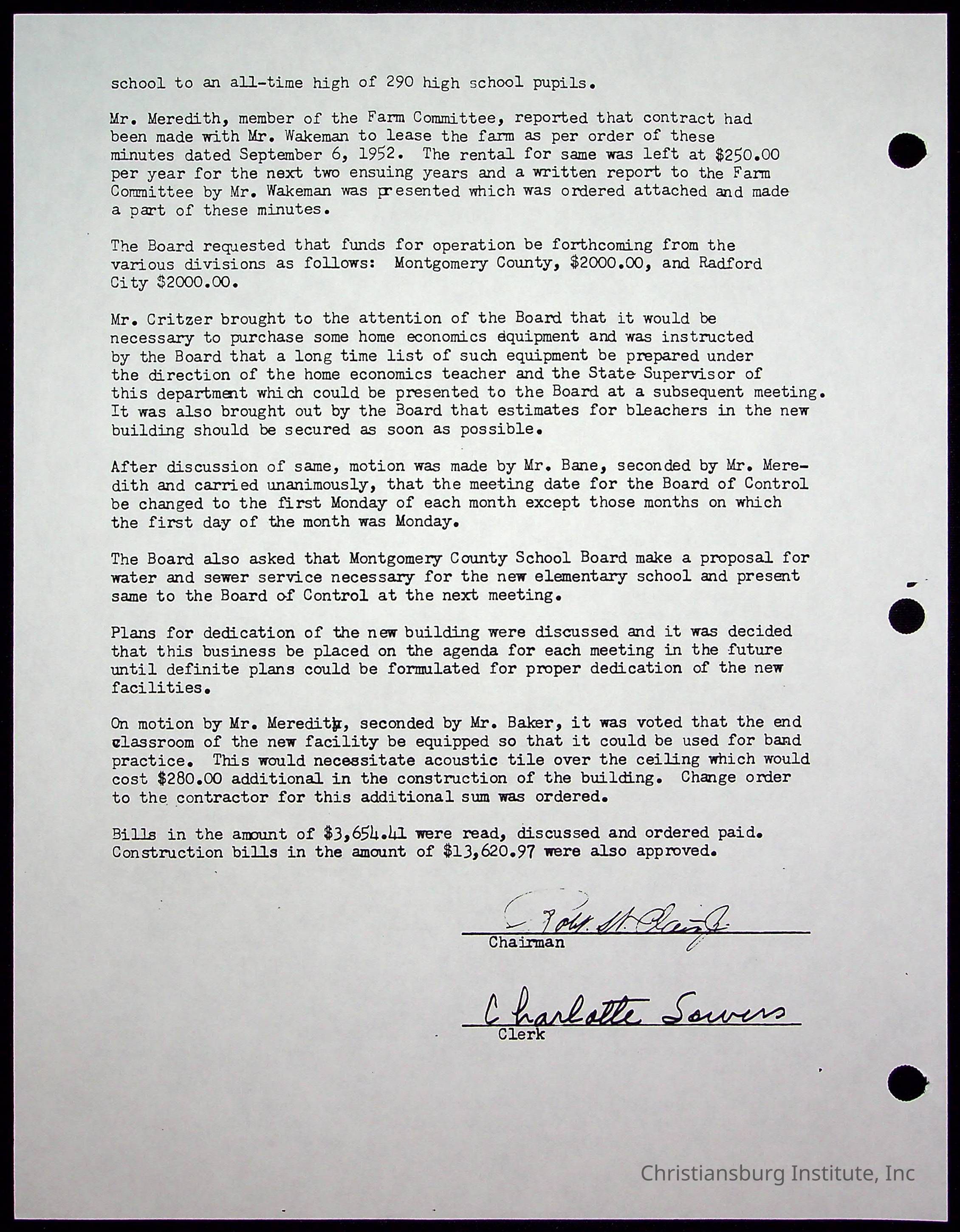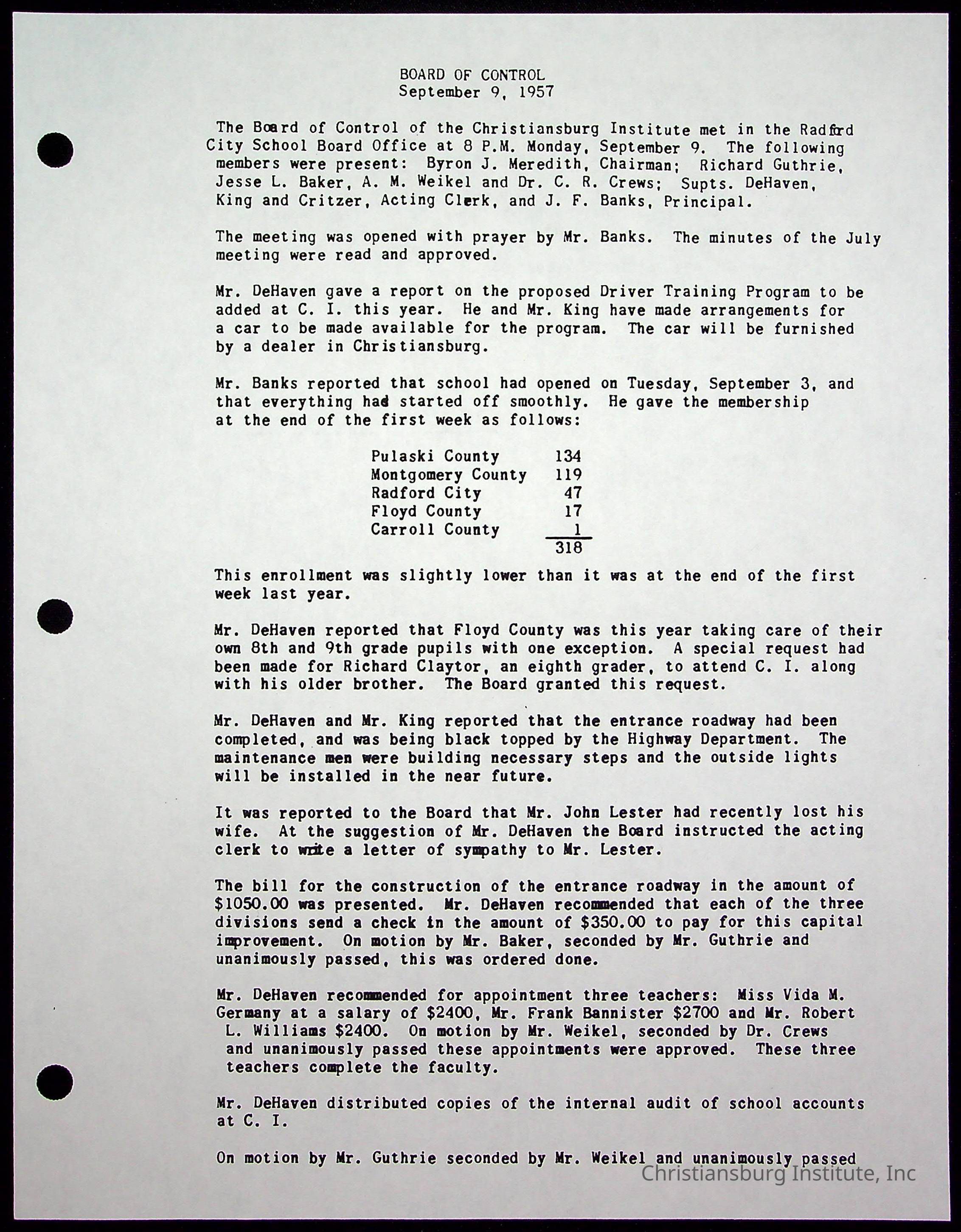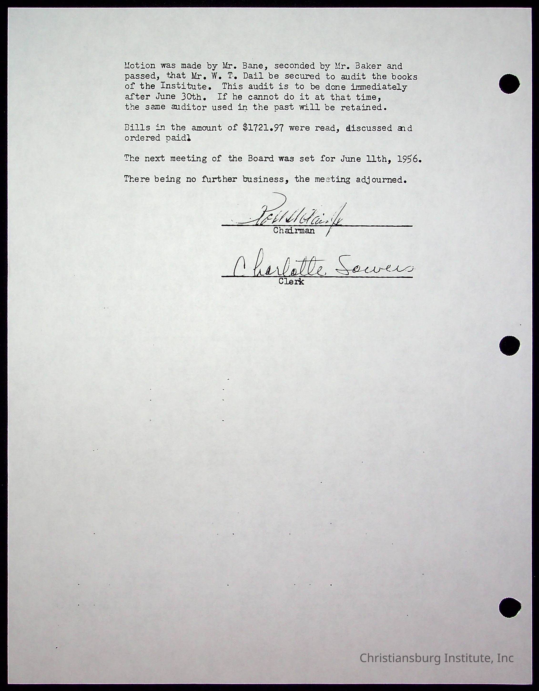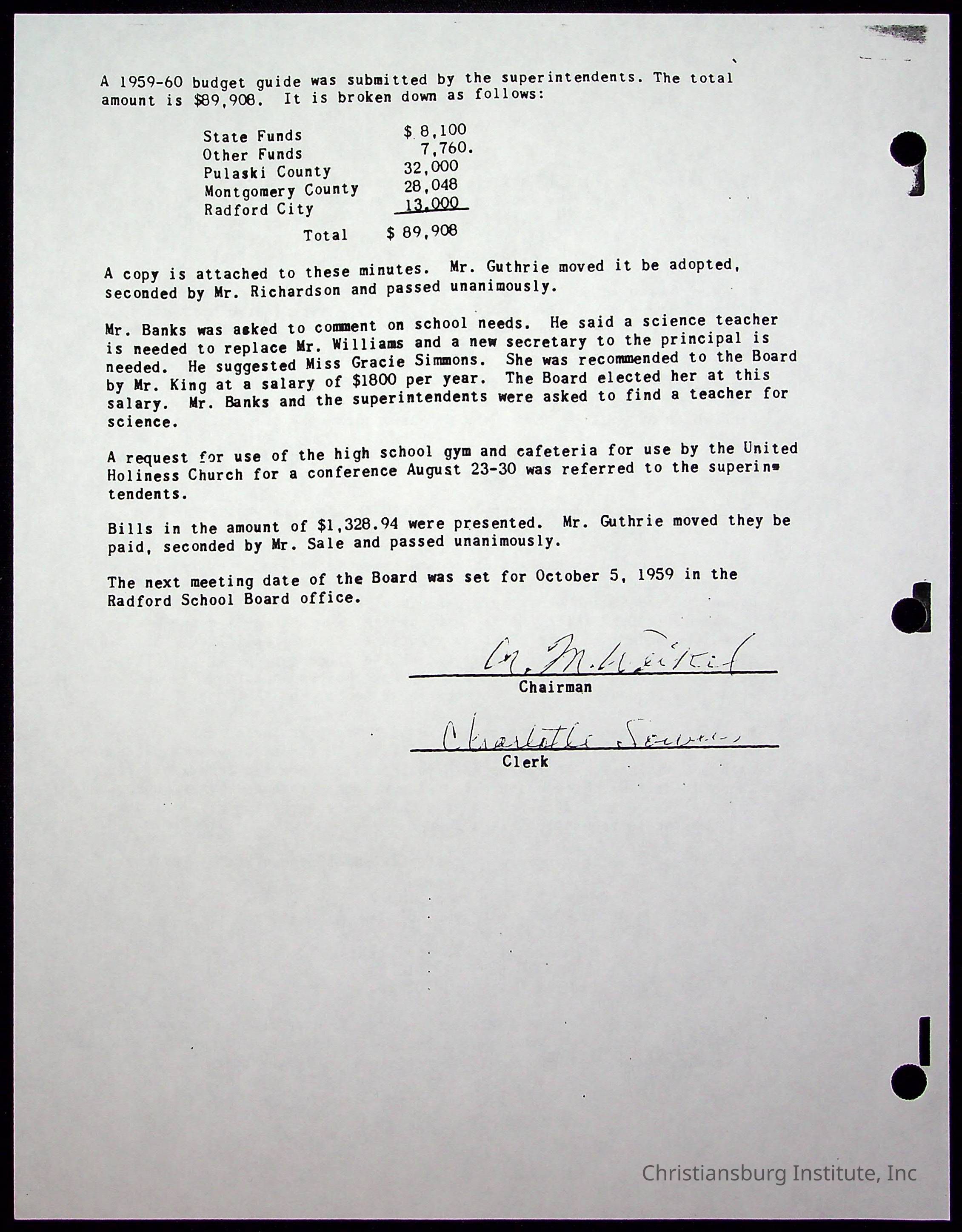 Christiansburg Industrial Institute Board Minutes, July 1947-August 1963 (photocopy)Description