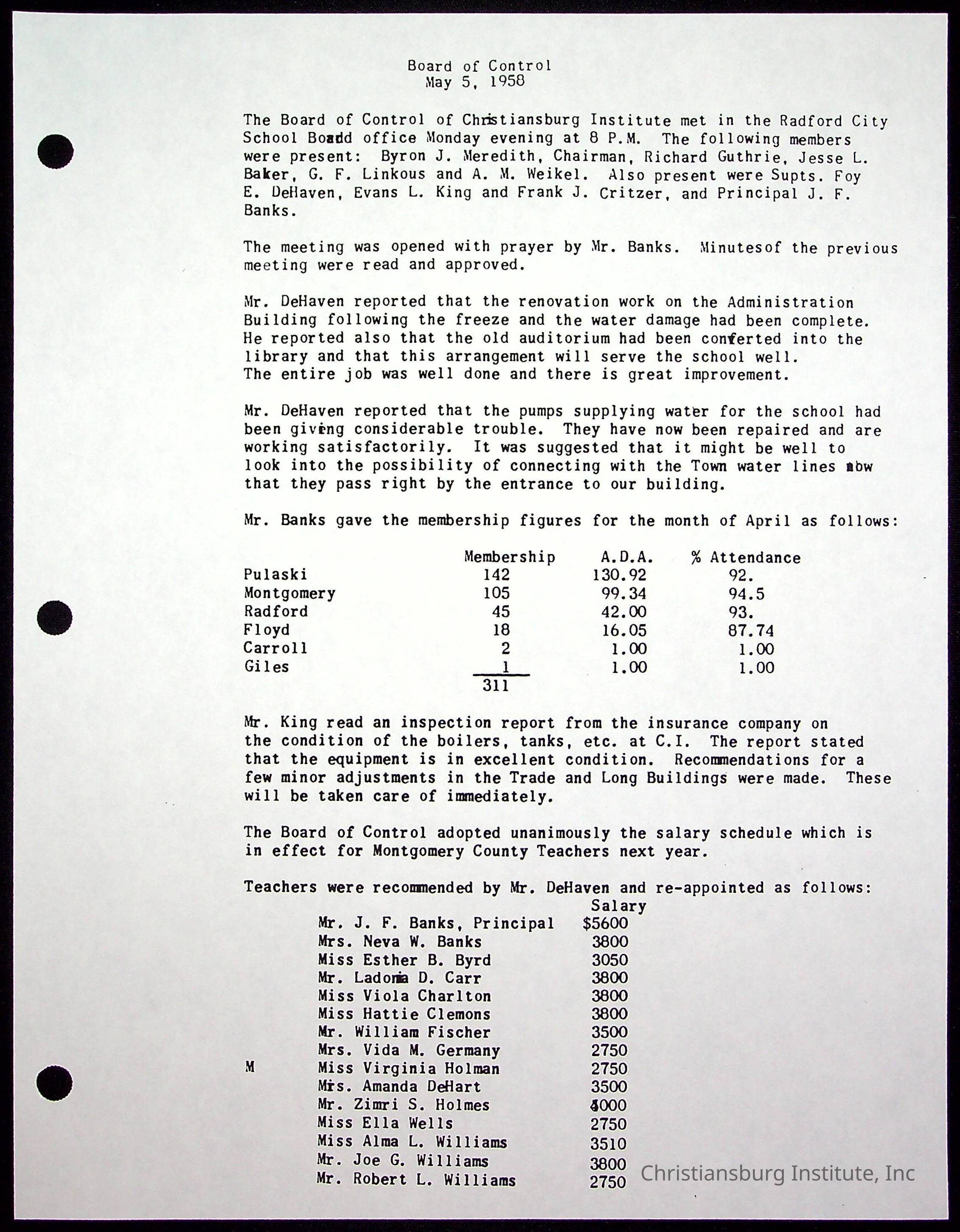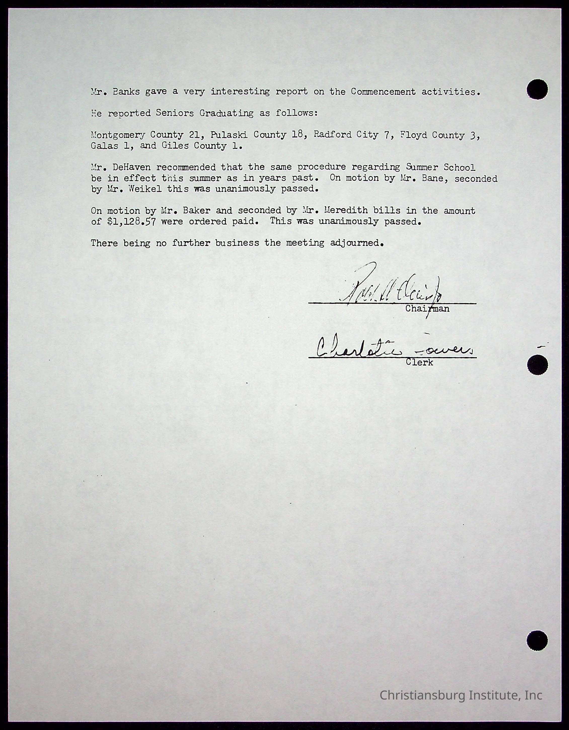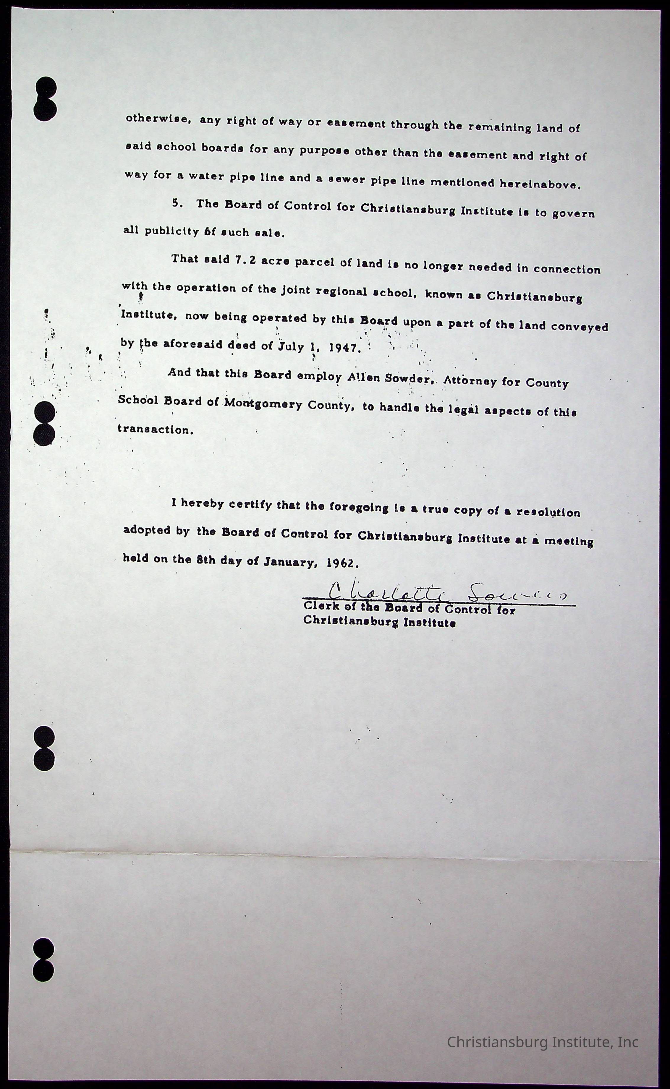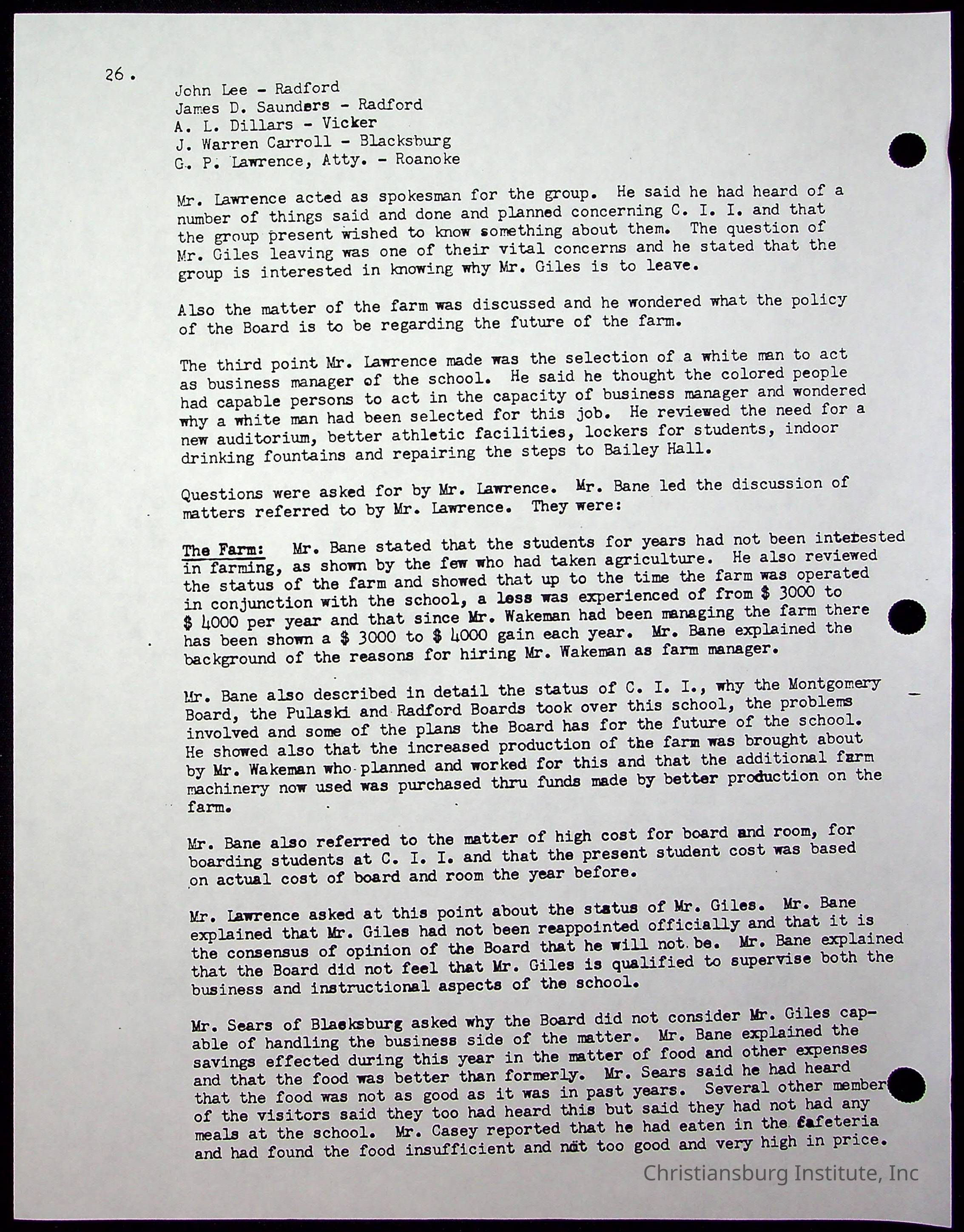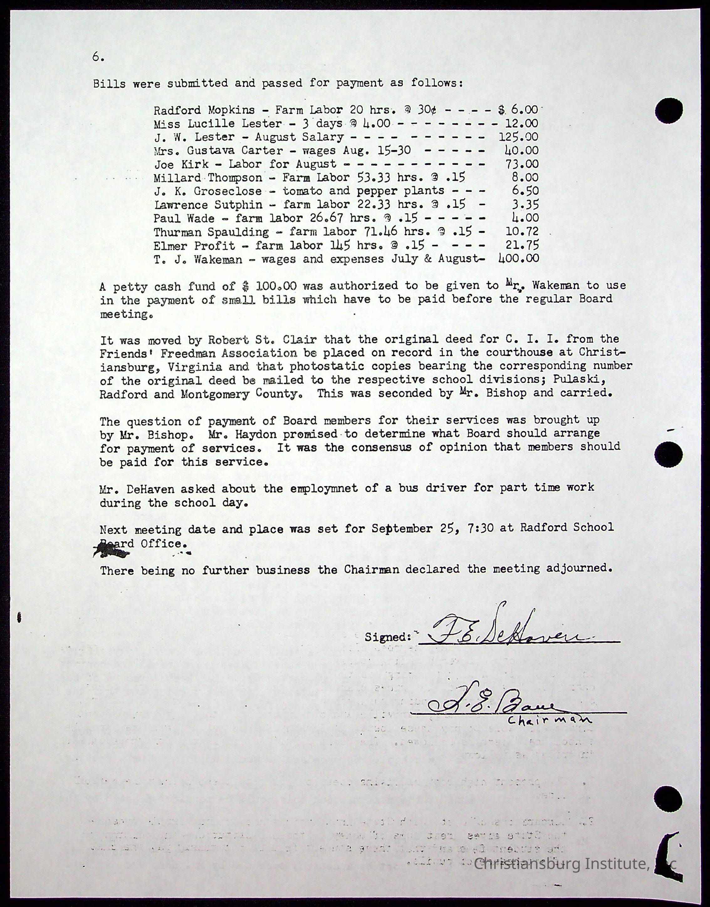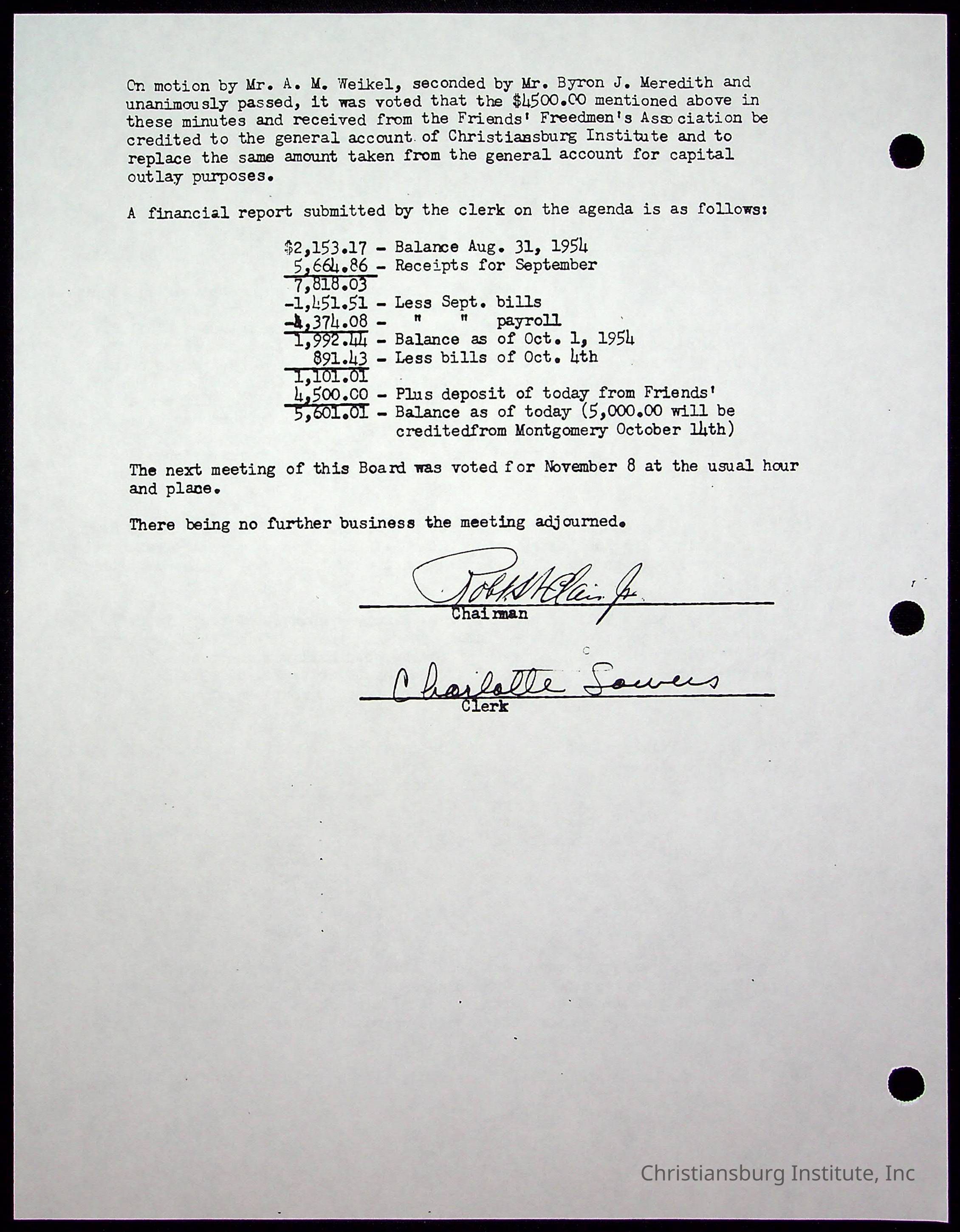 Christiansburg Industrial Institute Board Minutes, July 1947-August 1963 (photocopy)Description
