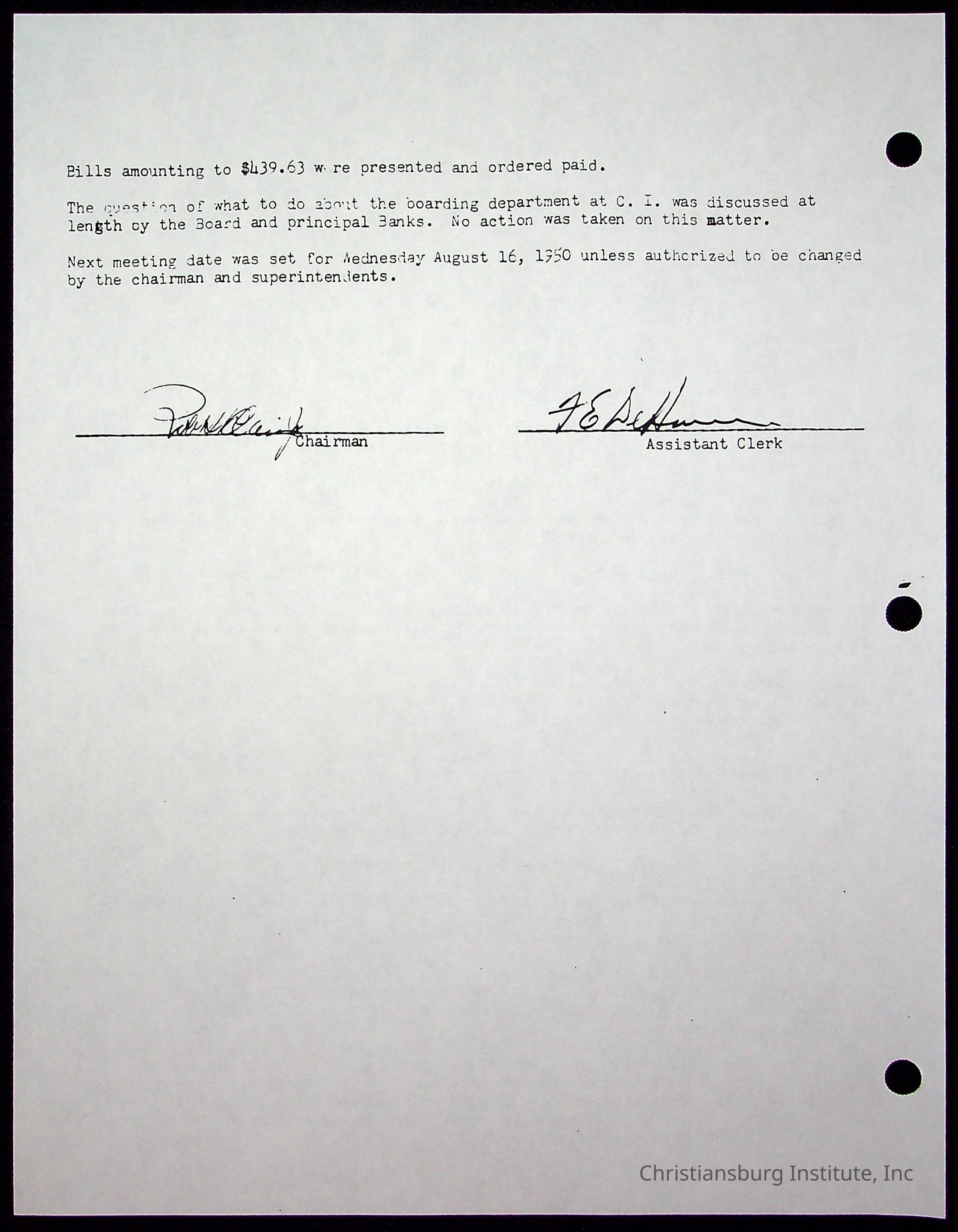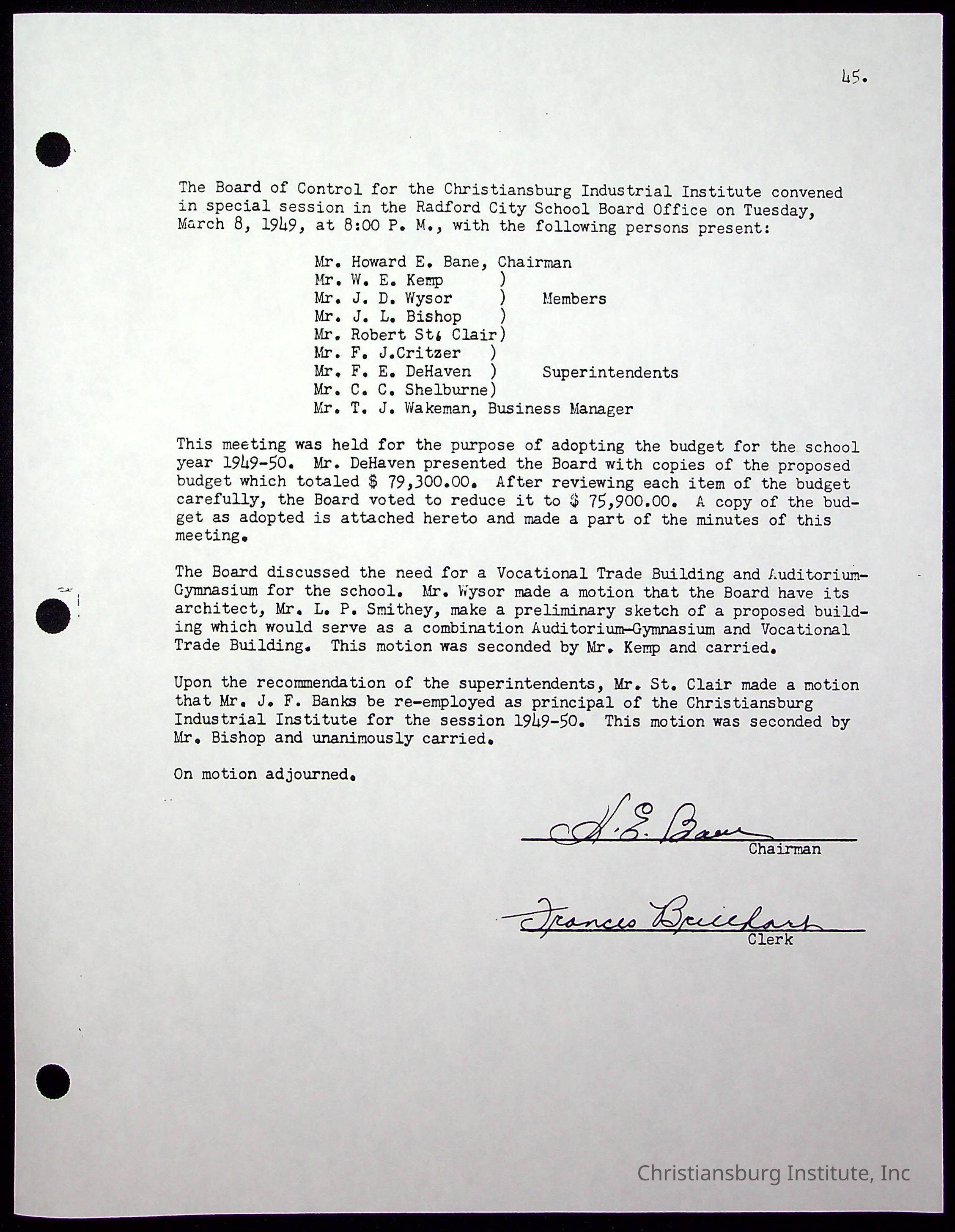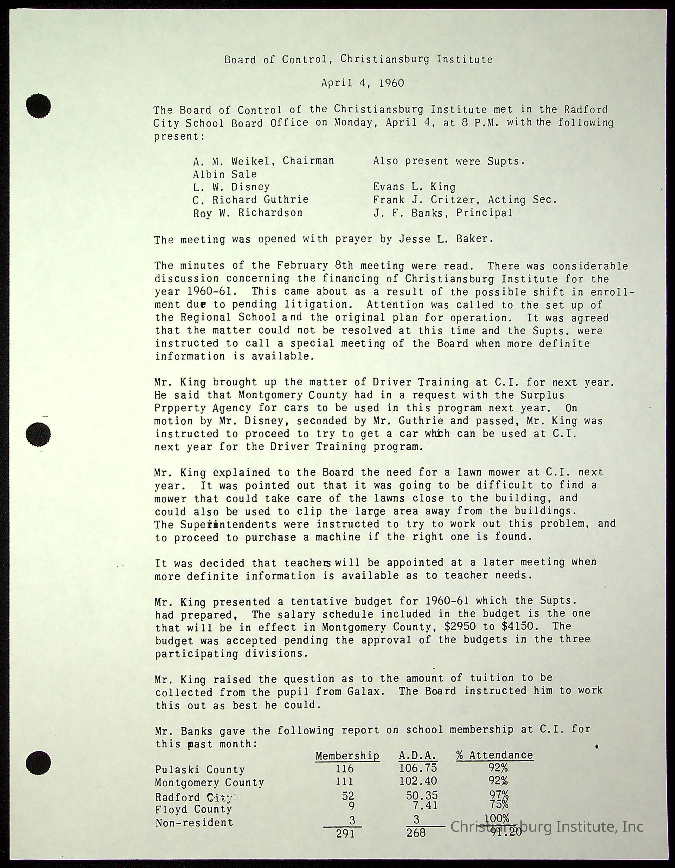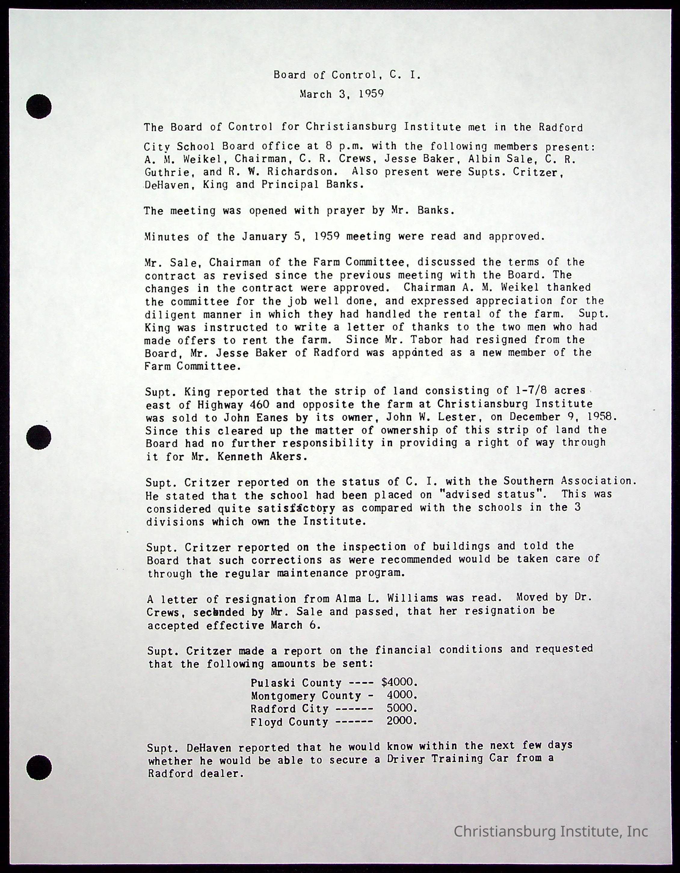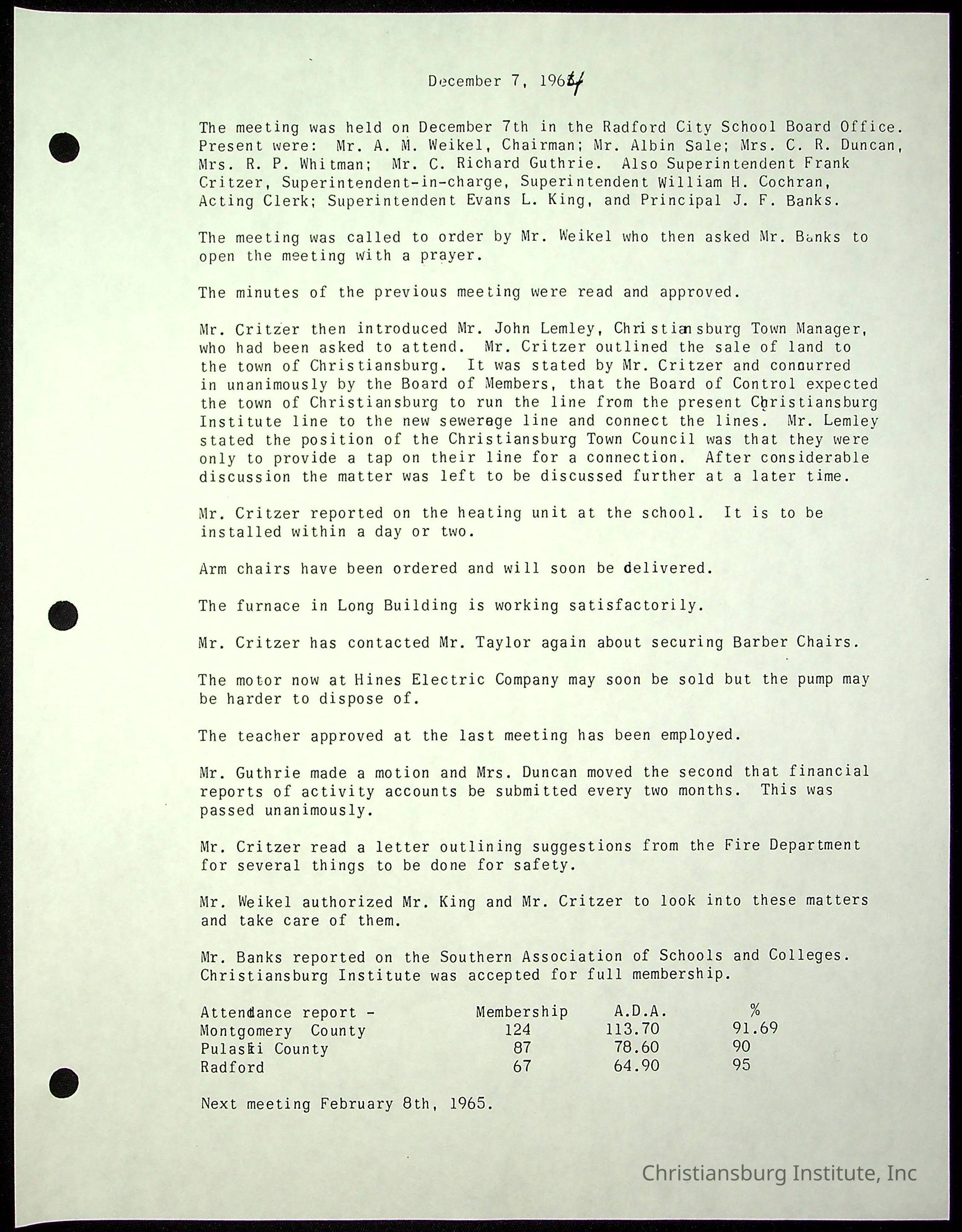 Christiansburg Industrial Institute Board Minutes, July 1947-August 1963 (photocopy)Description