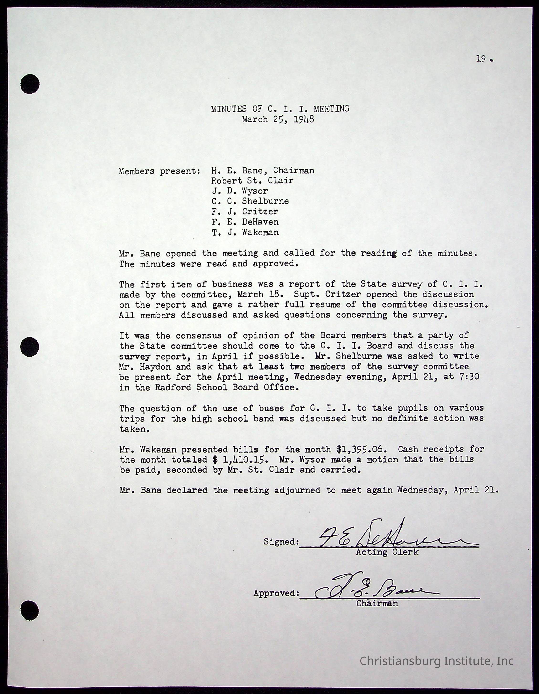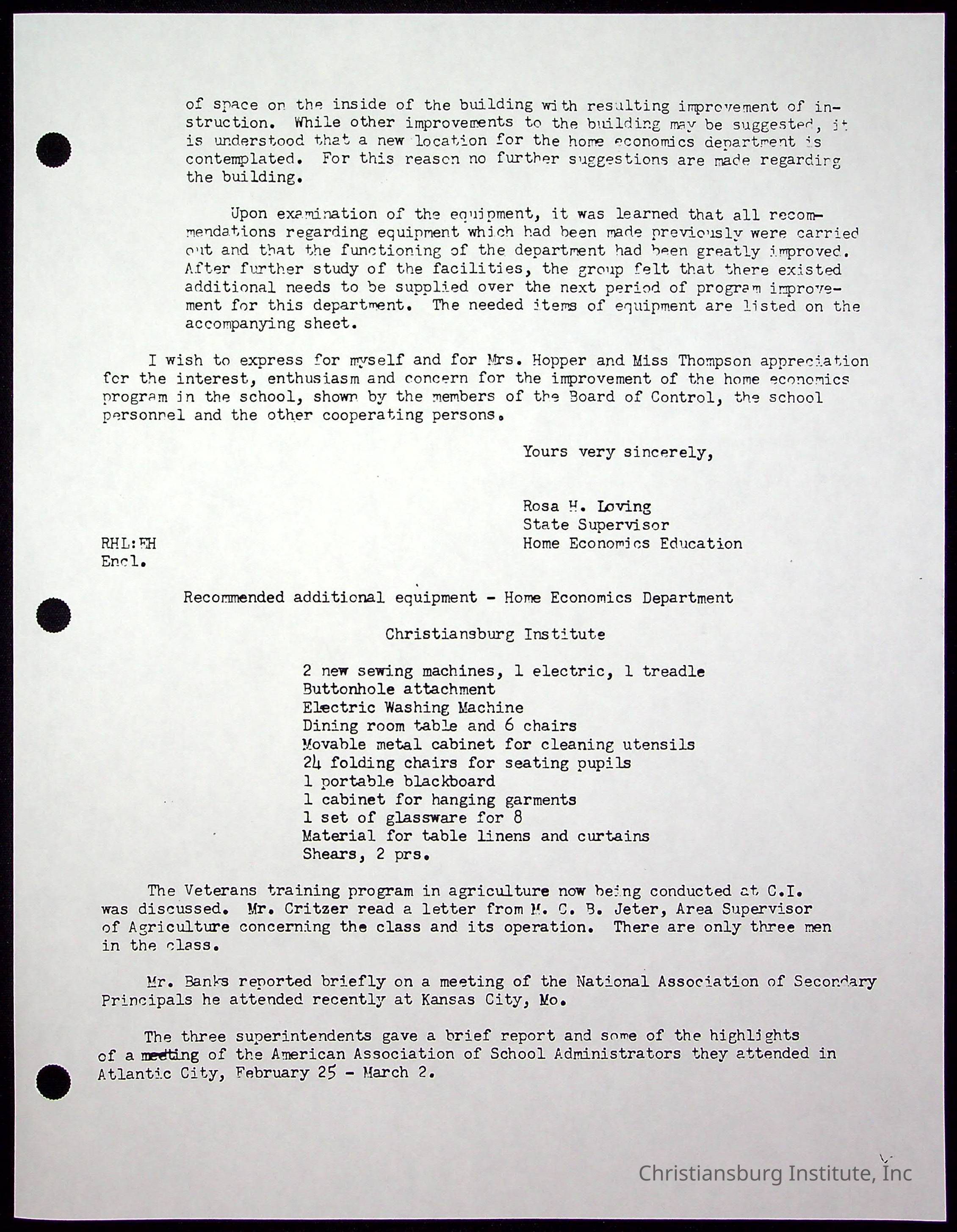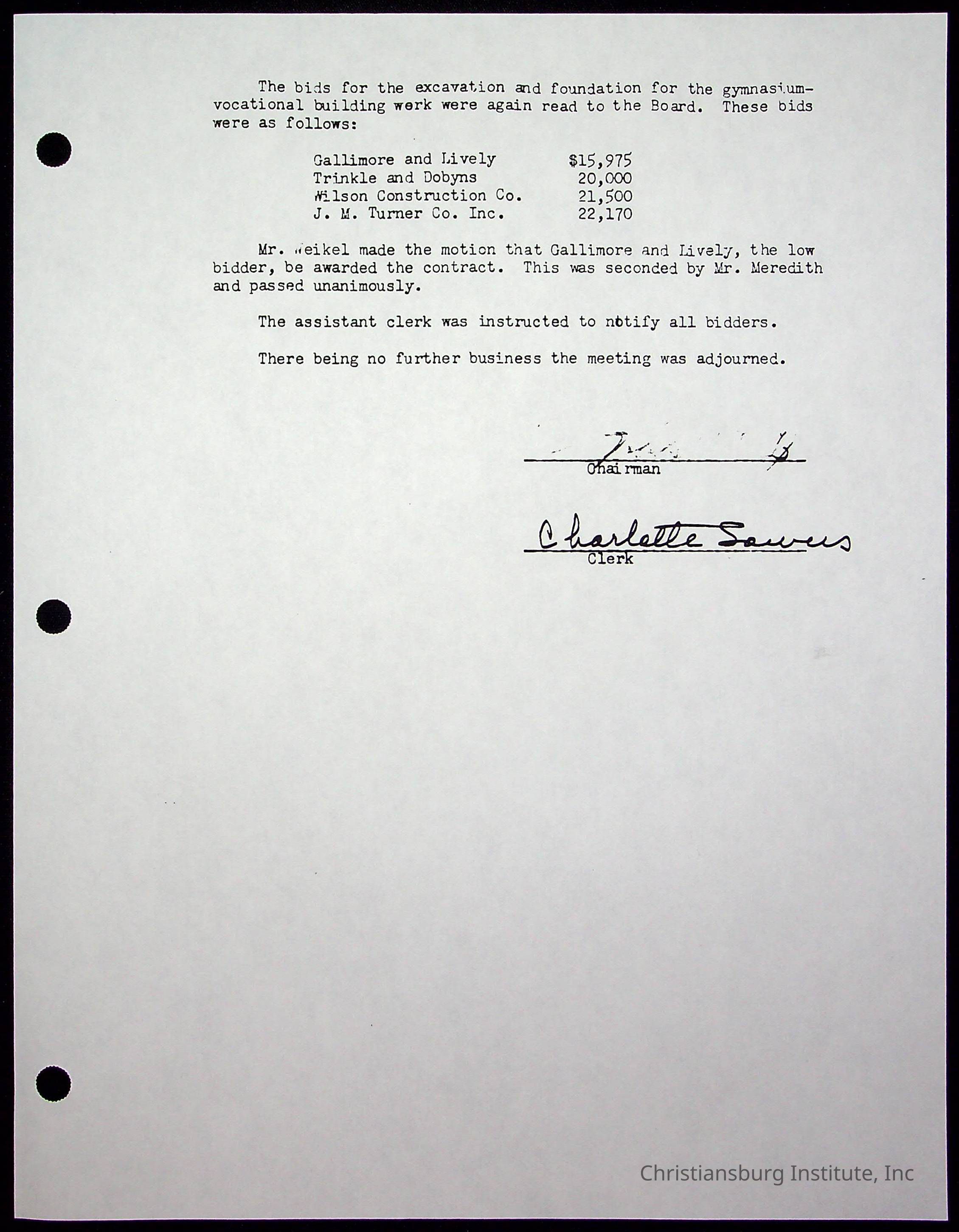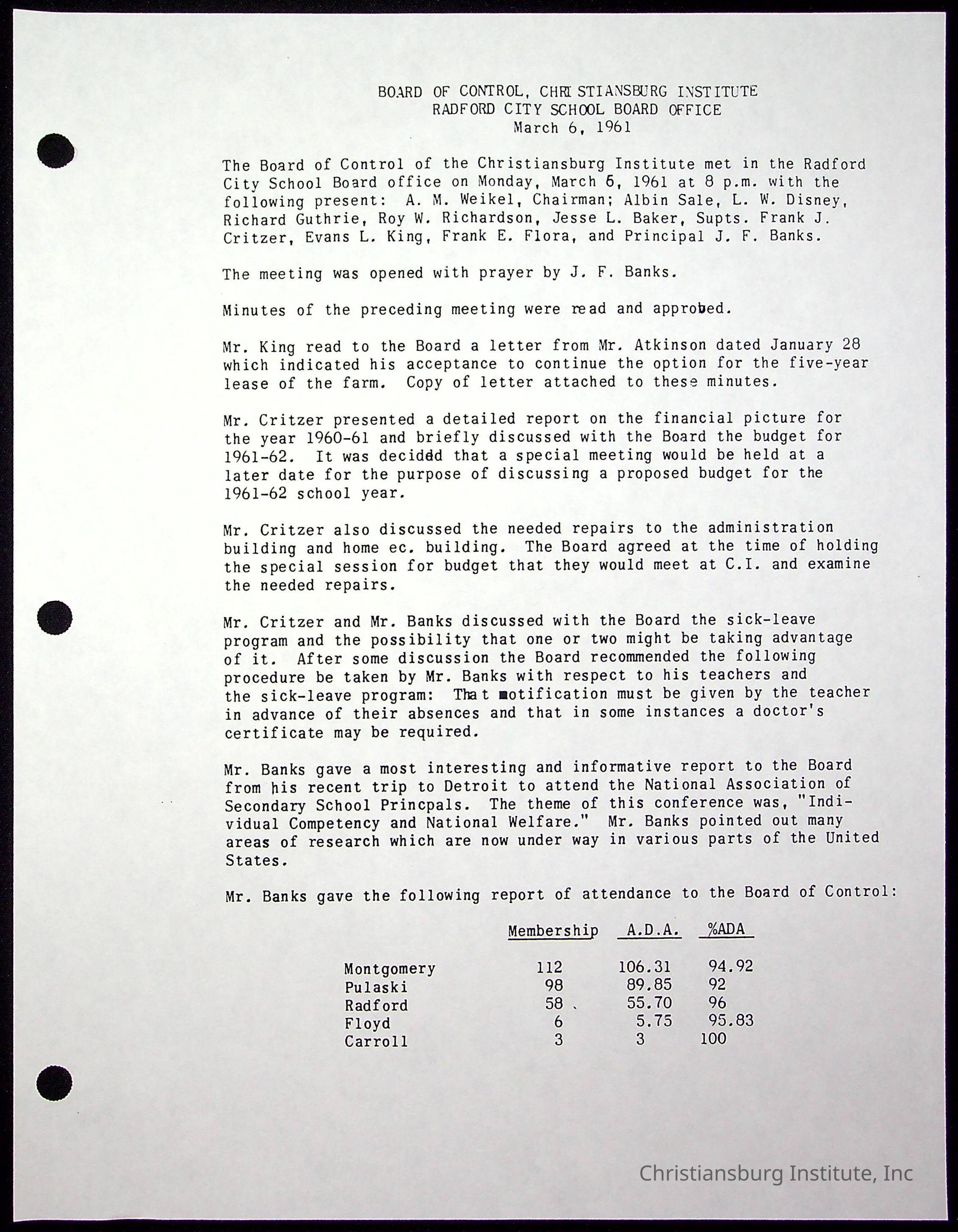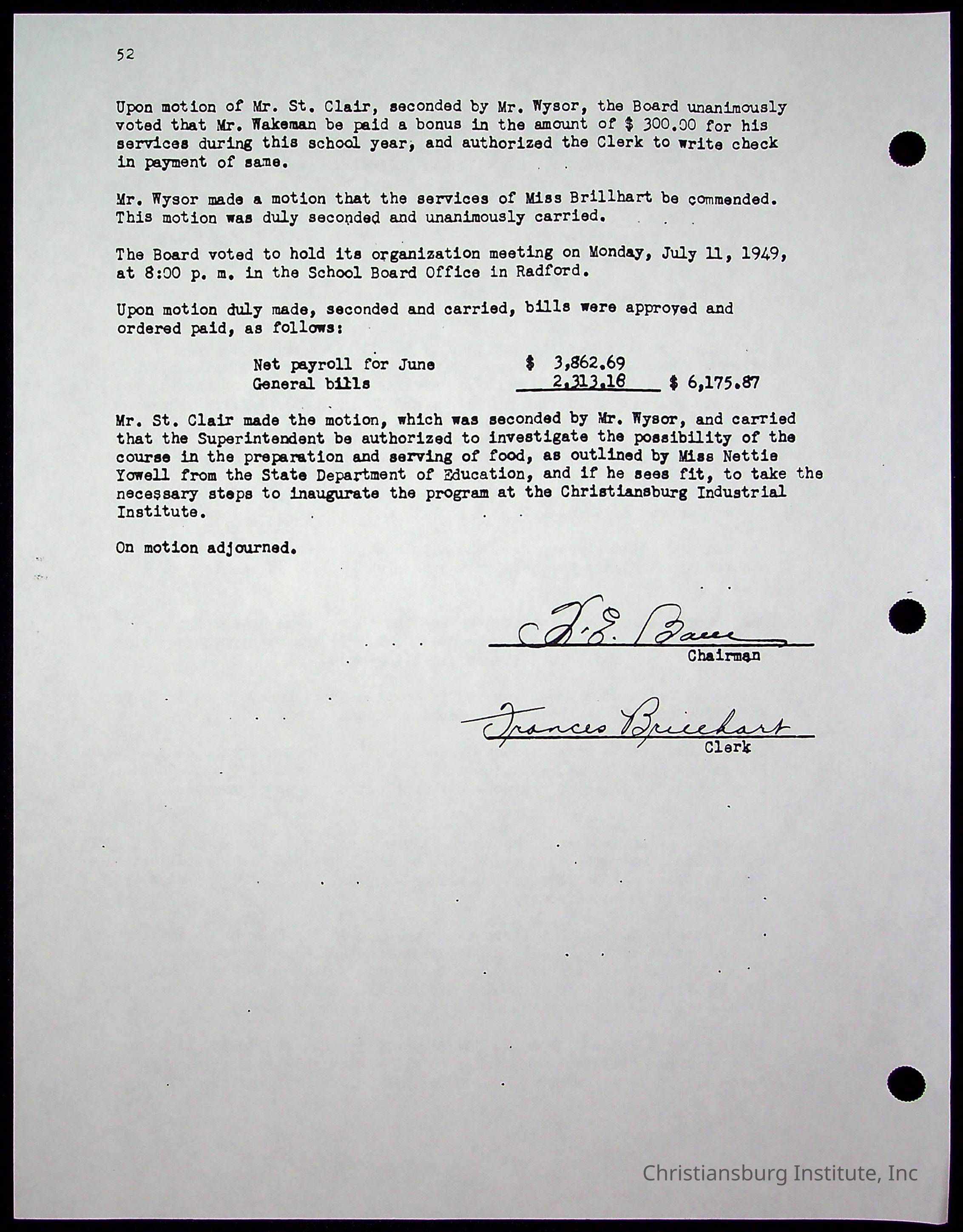 Christiansburg Industrial Institute Board Minutes, July 1947-August 1963 (photocopy)Description