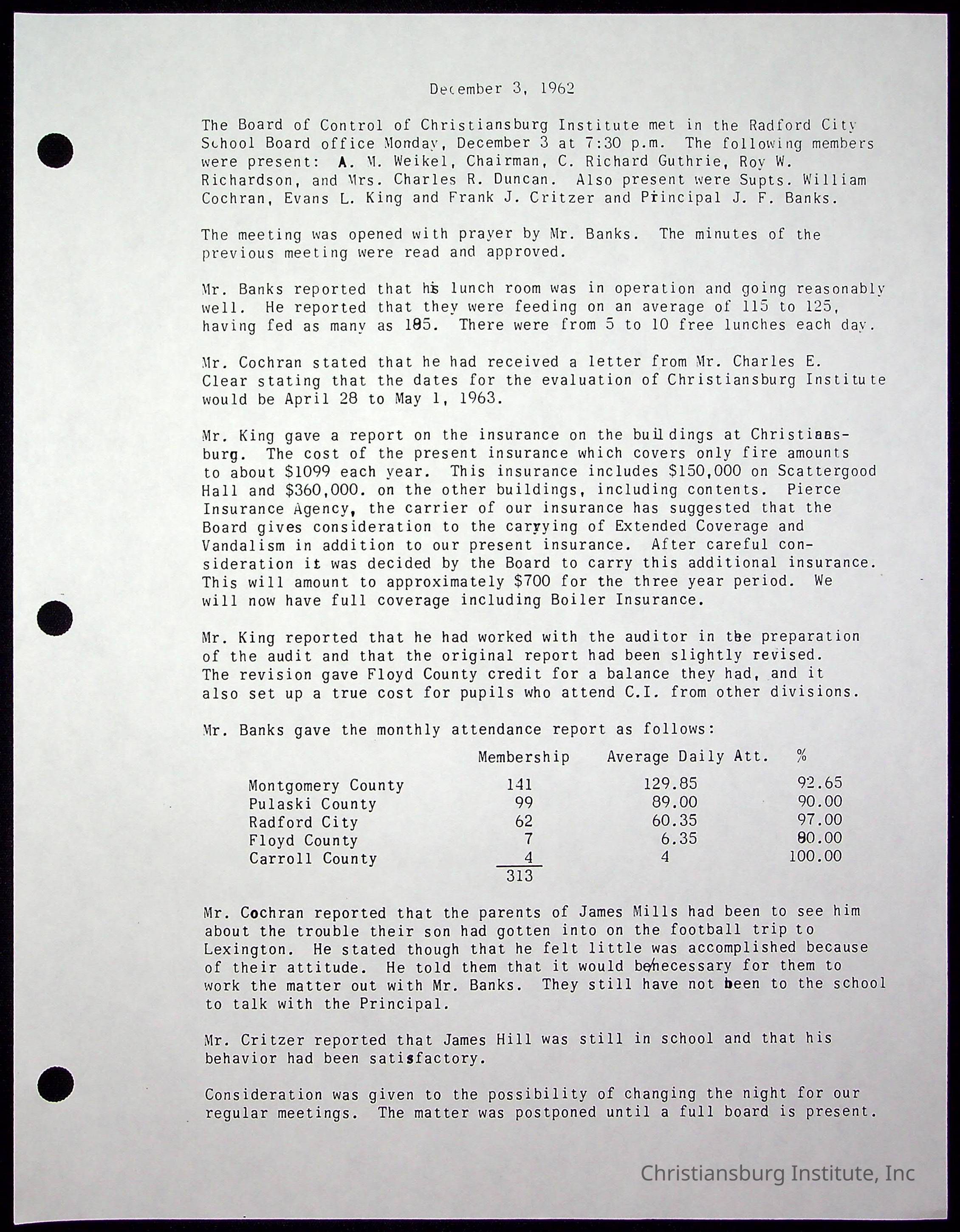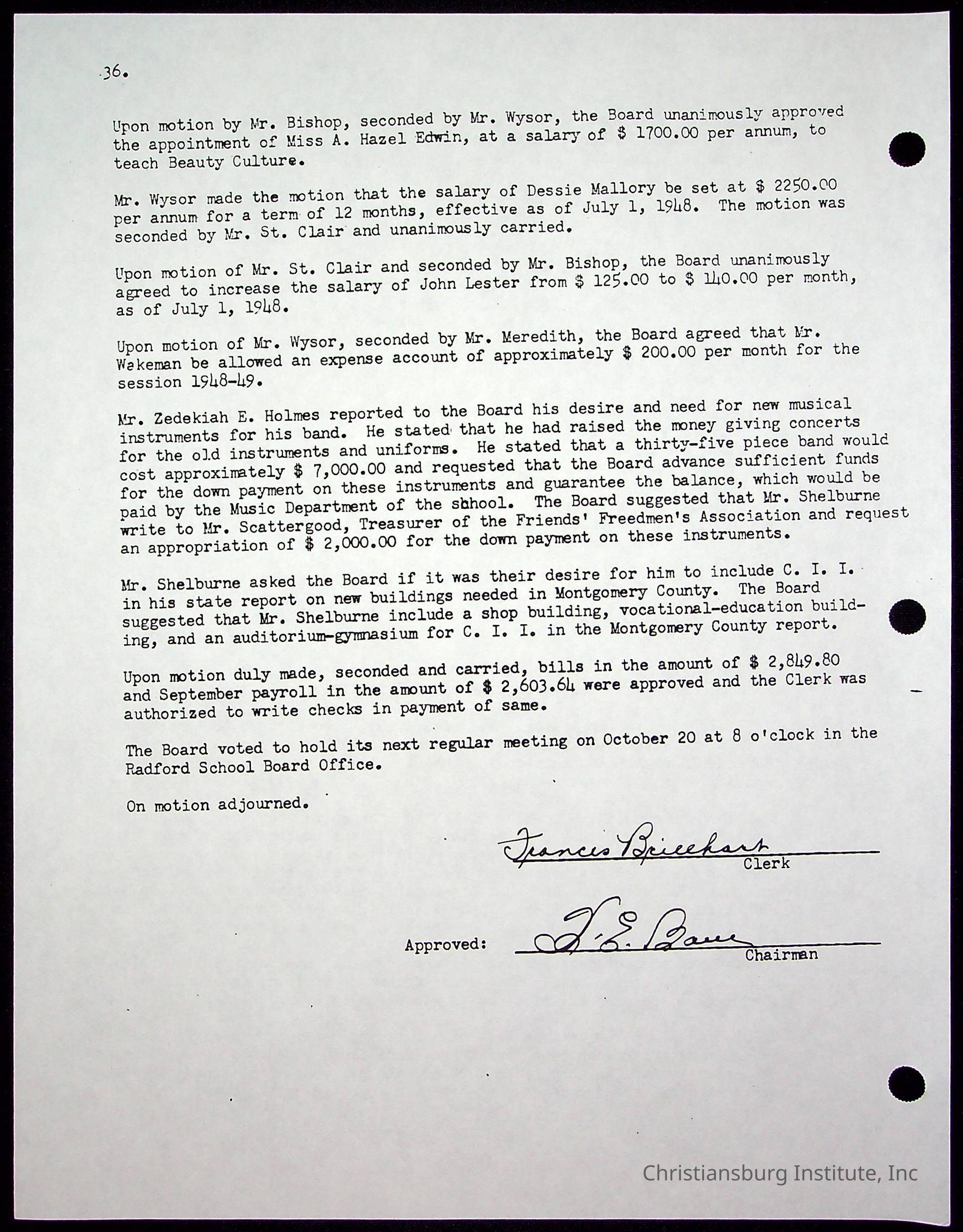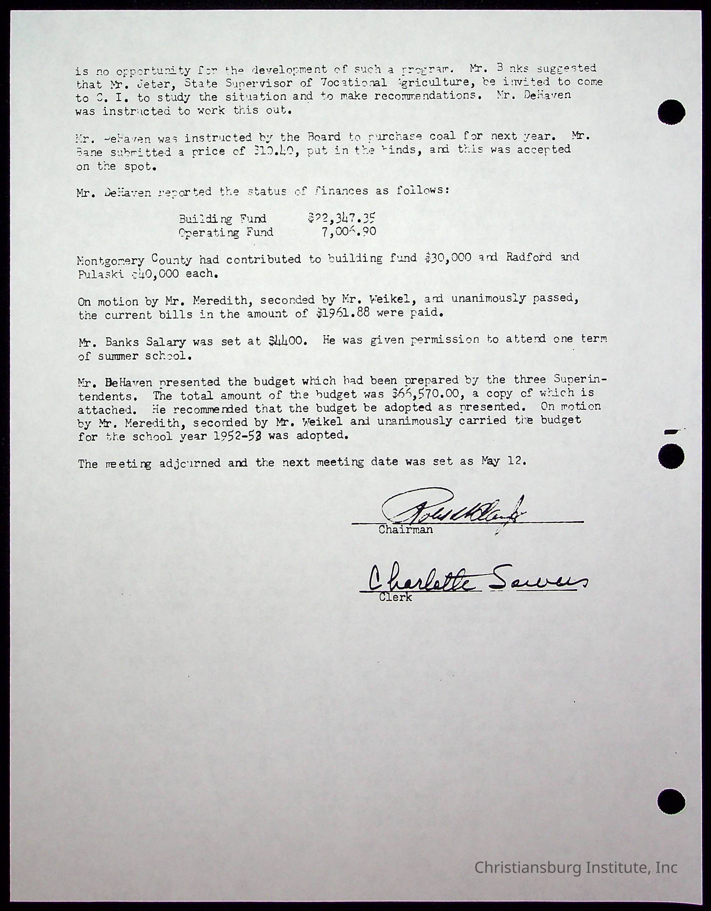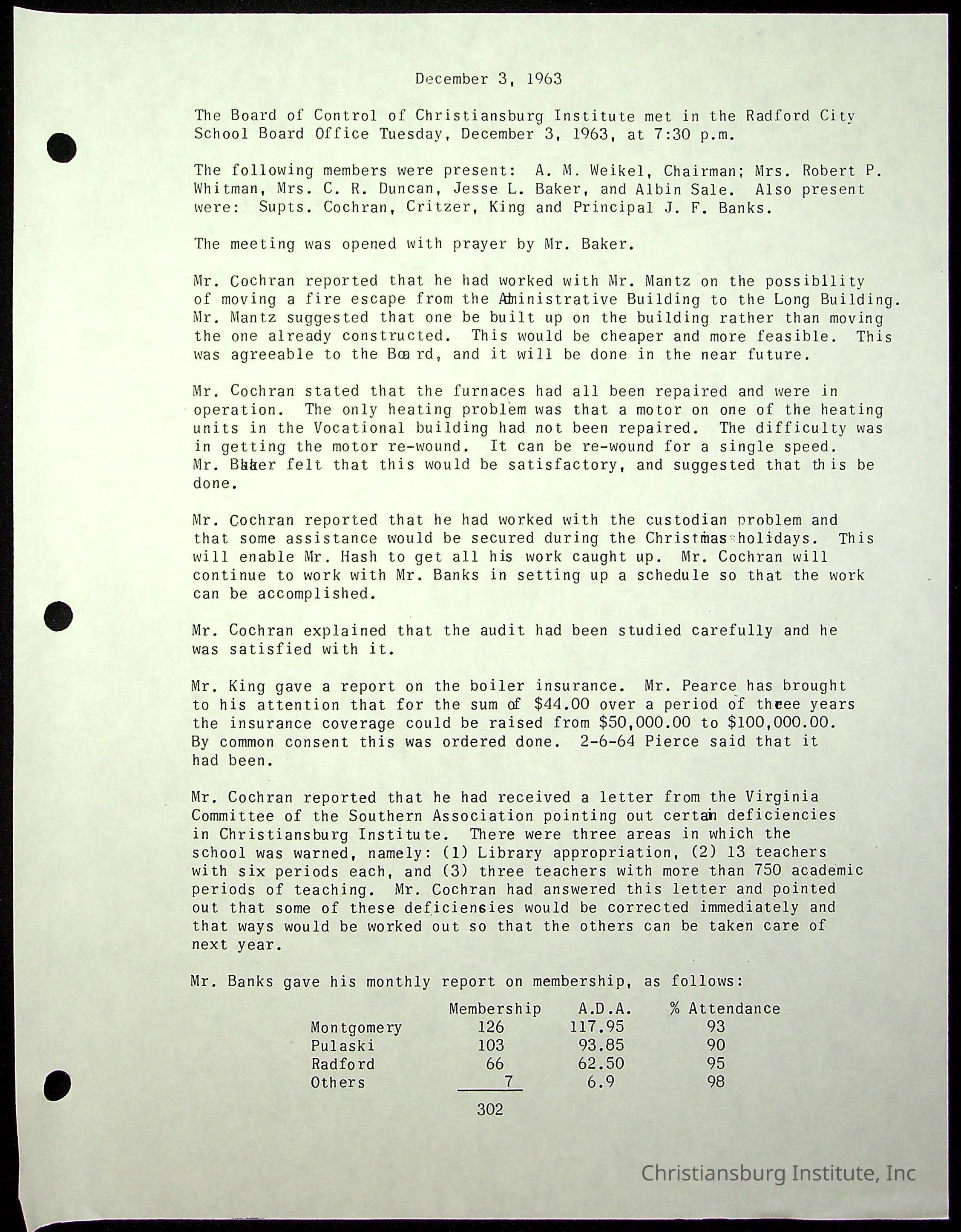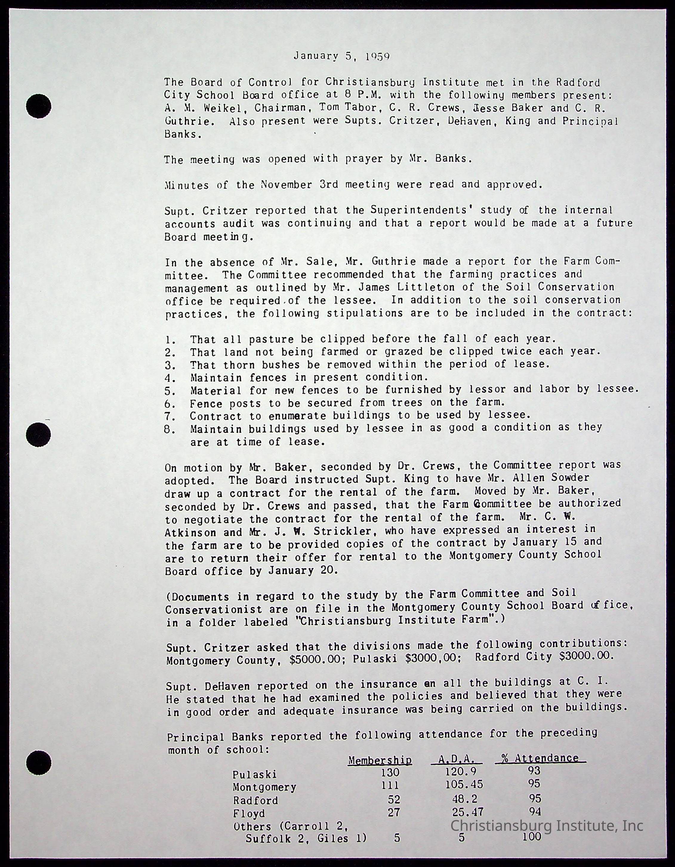 Christiansburg Industrial Institute Board Minutes, July 1947-August 1963 (photocopy)Description