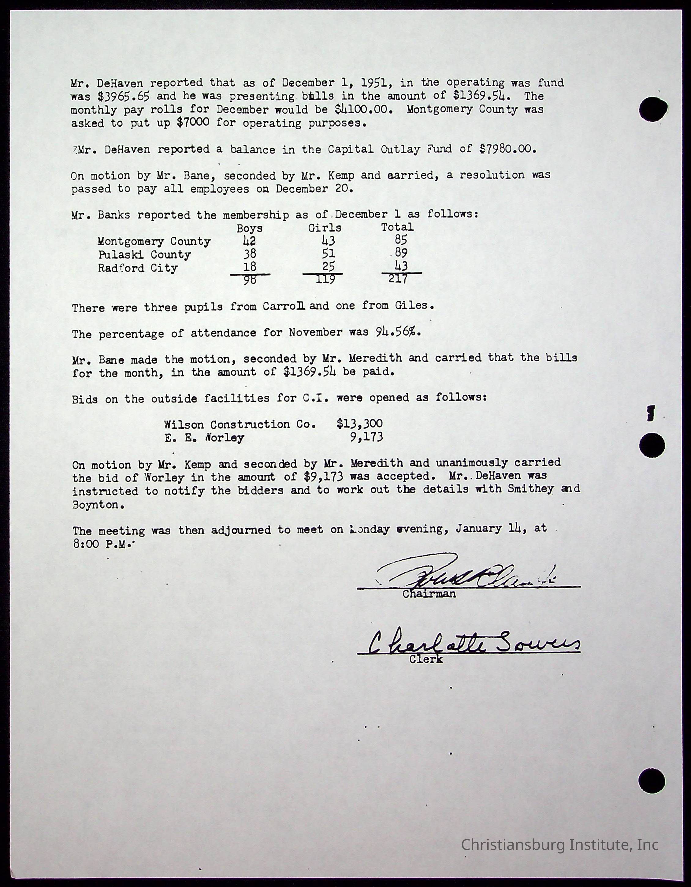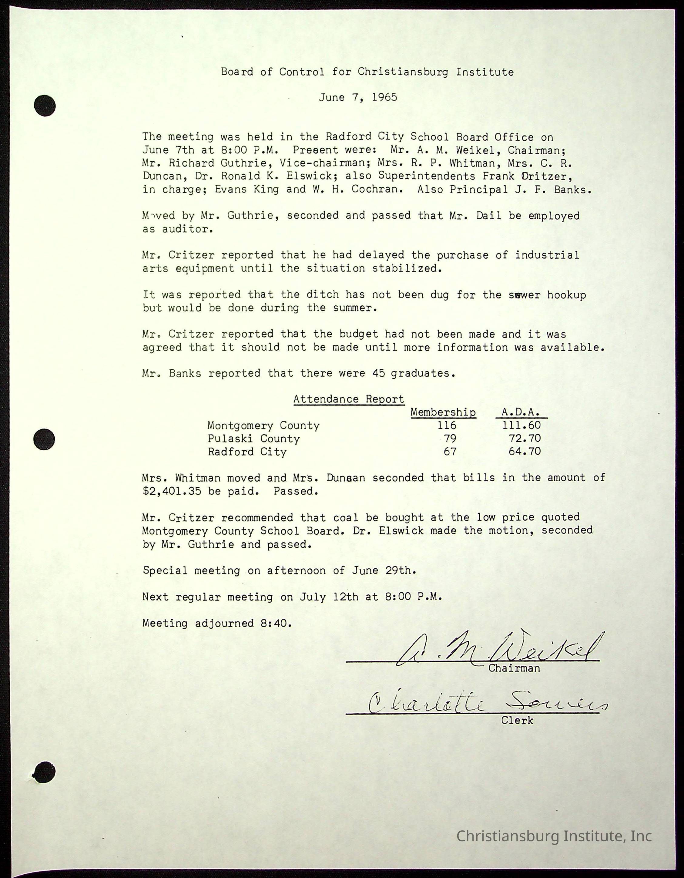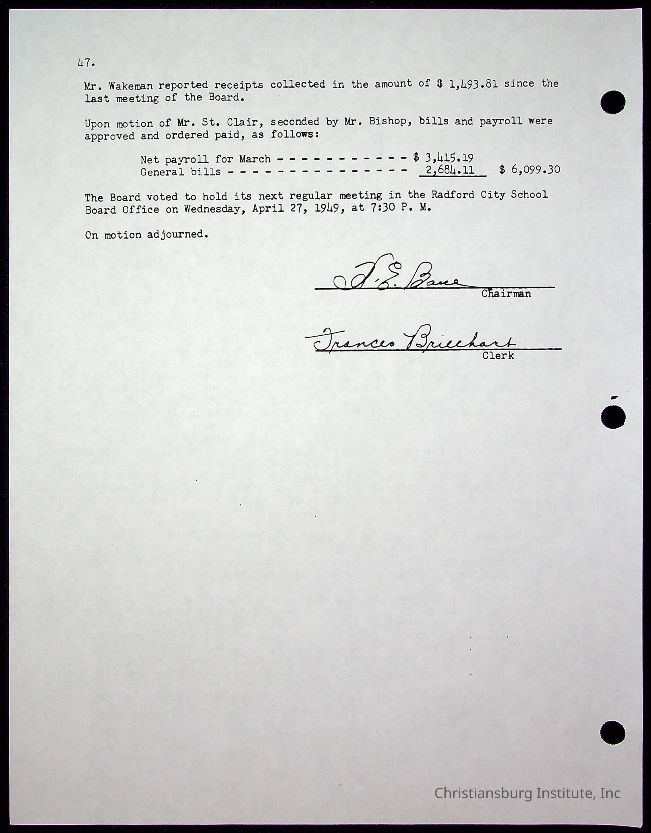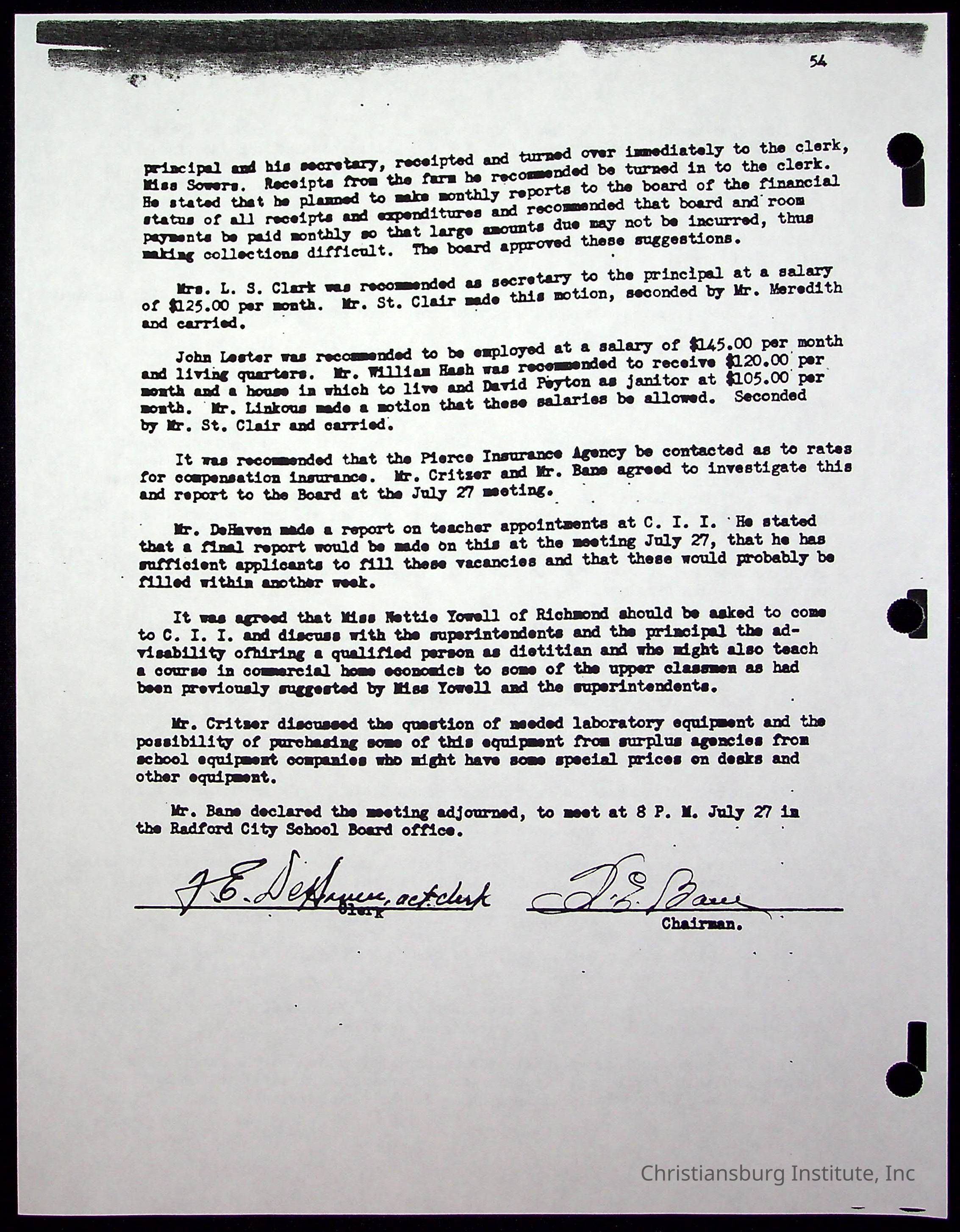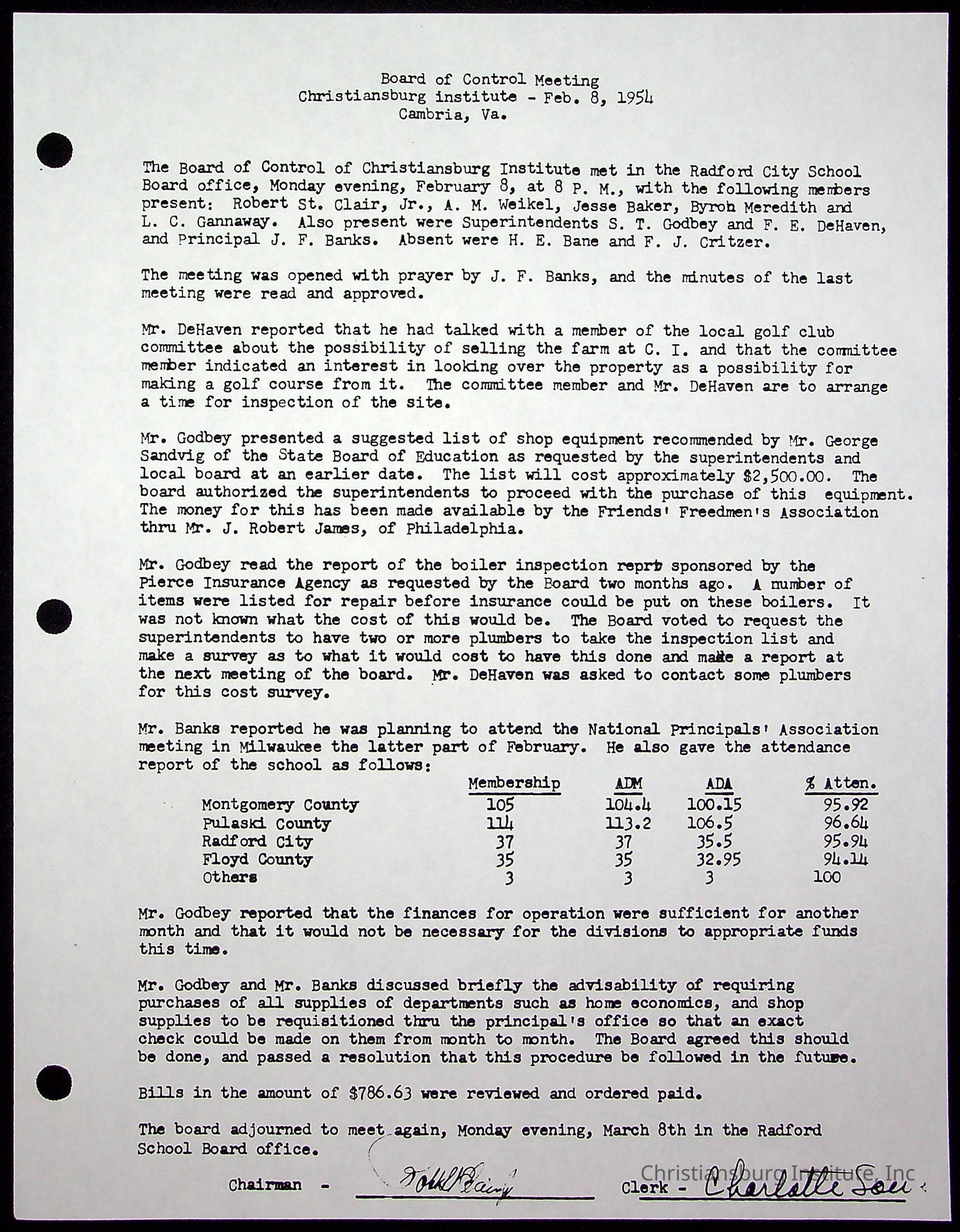 Christiansburg Industrial Institute Board Minutes, July 1947-August 1963 (photocopy)Description