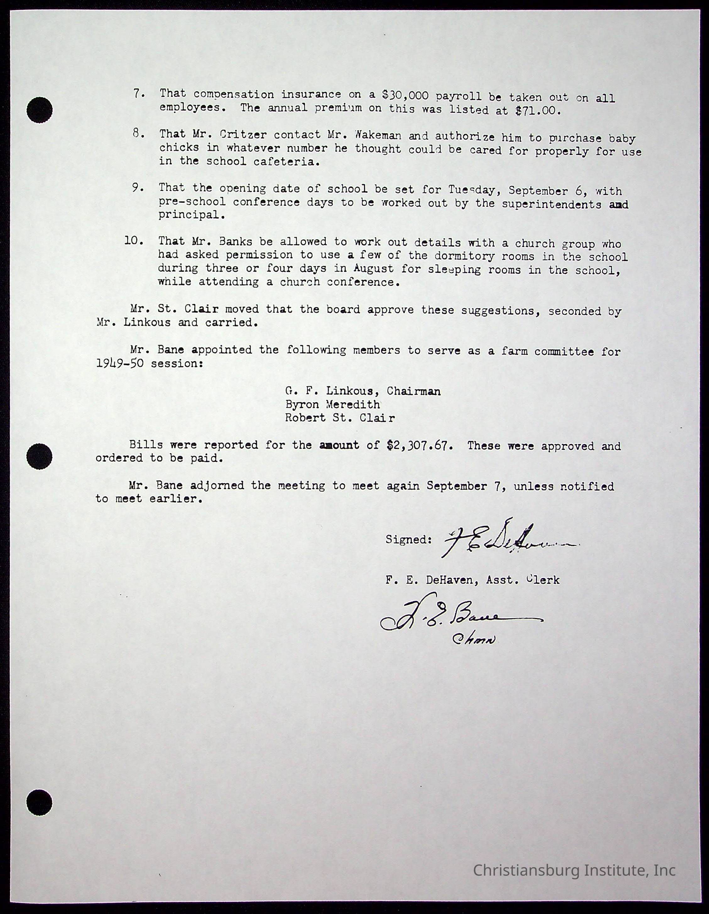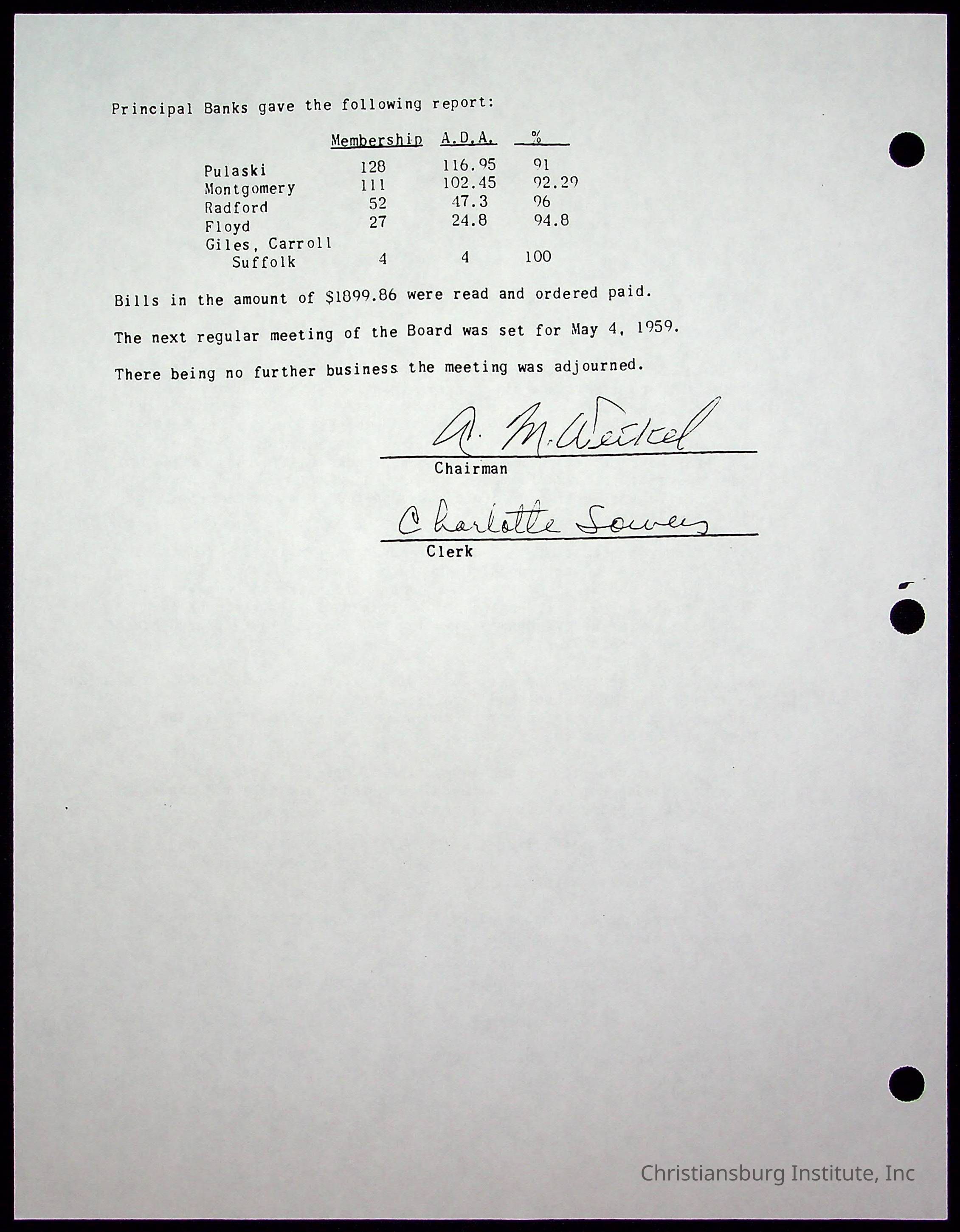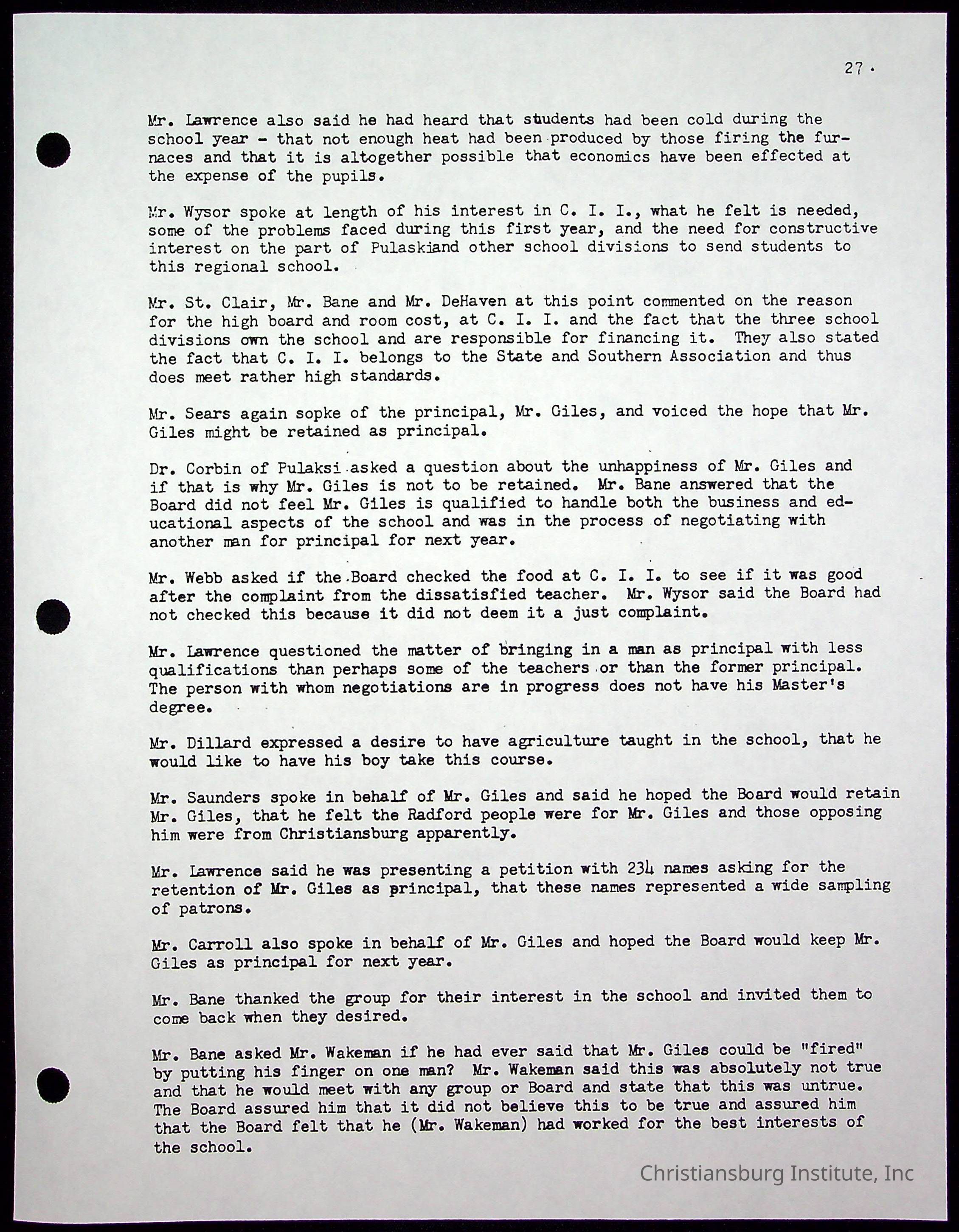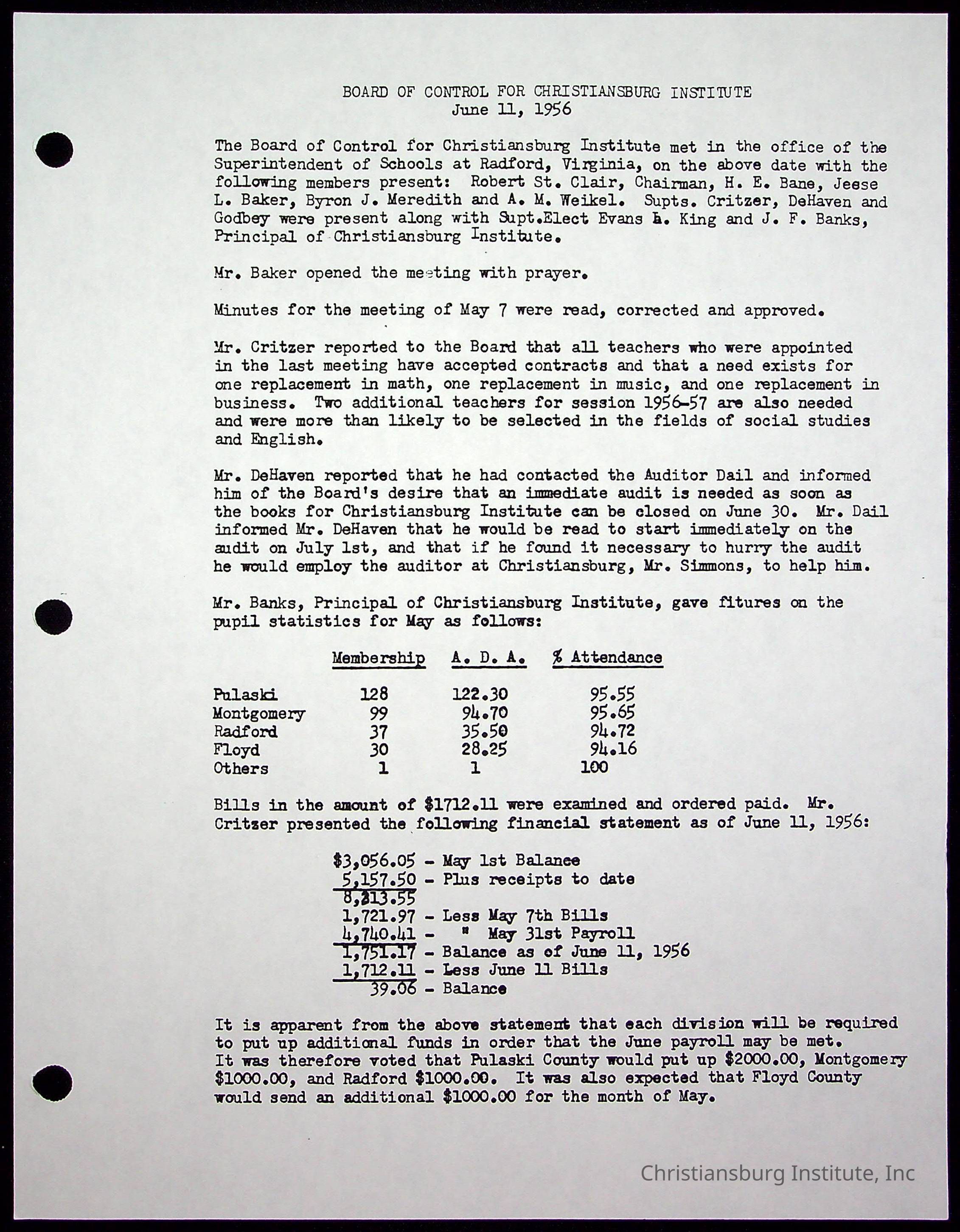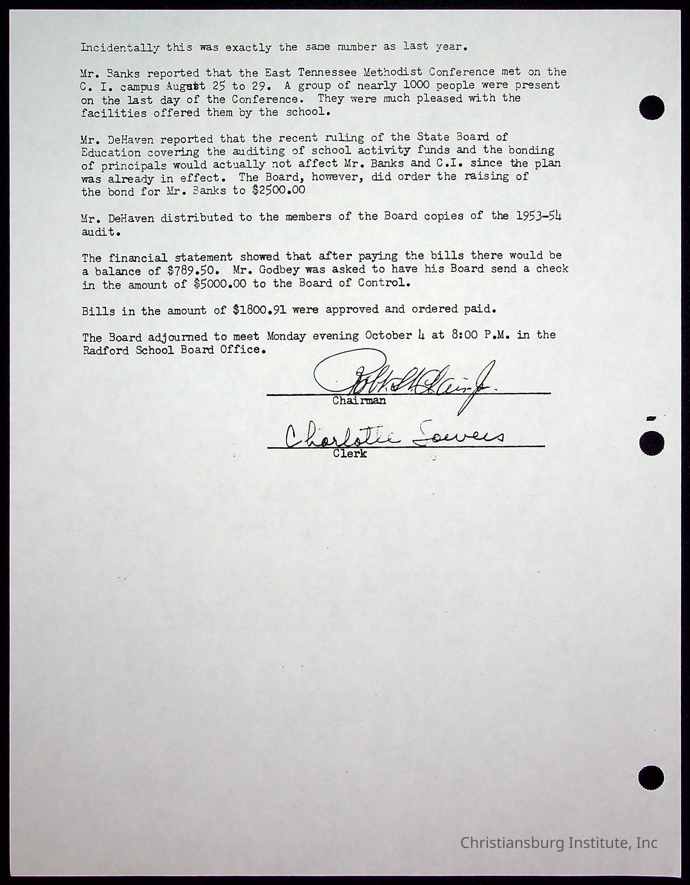 Christiansburg Industrial Institute Board Minutes, July 1947-August 1963 (photocopy)Description