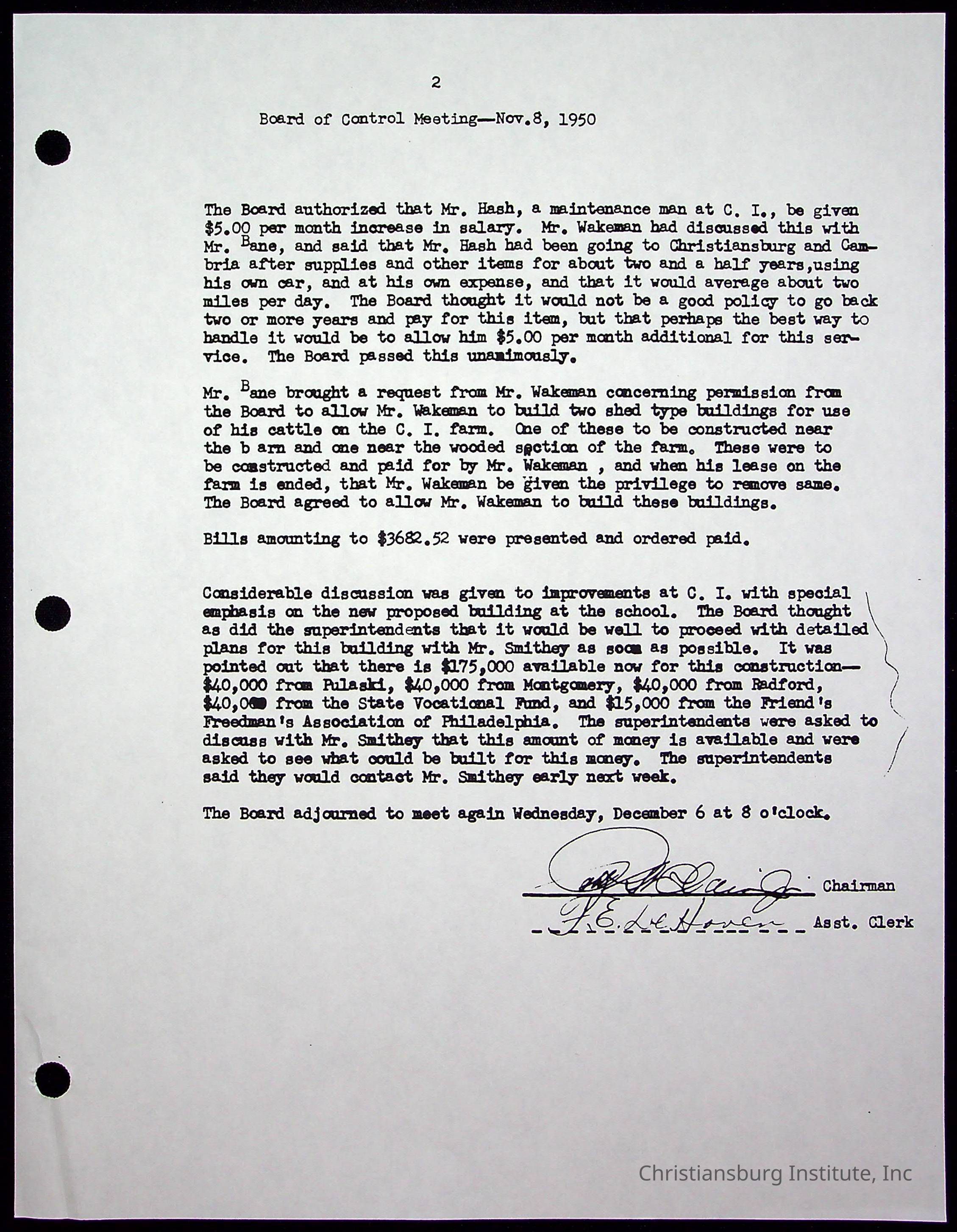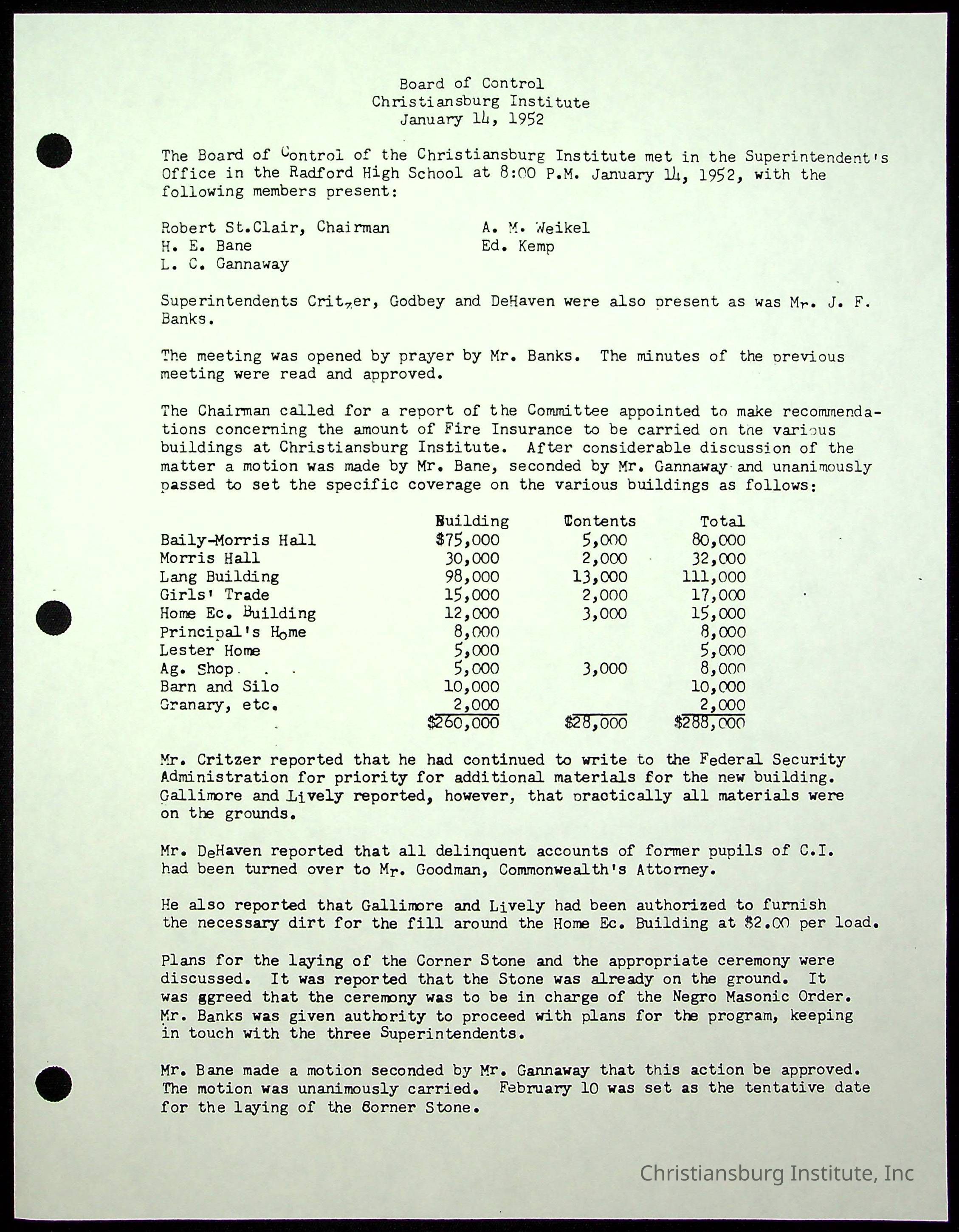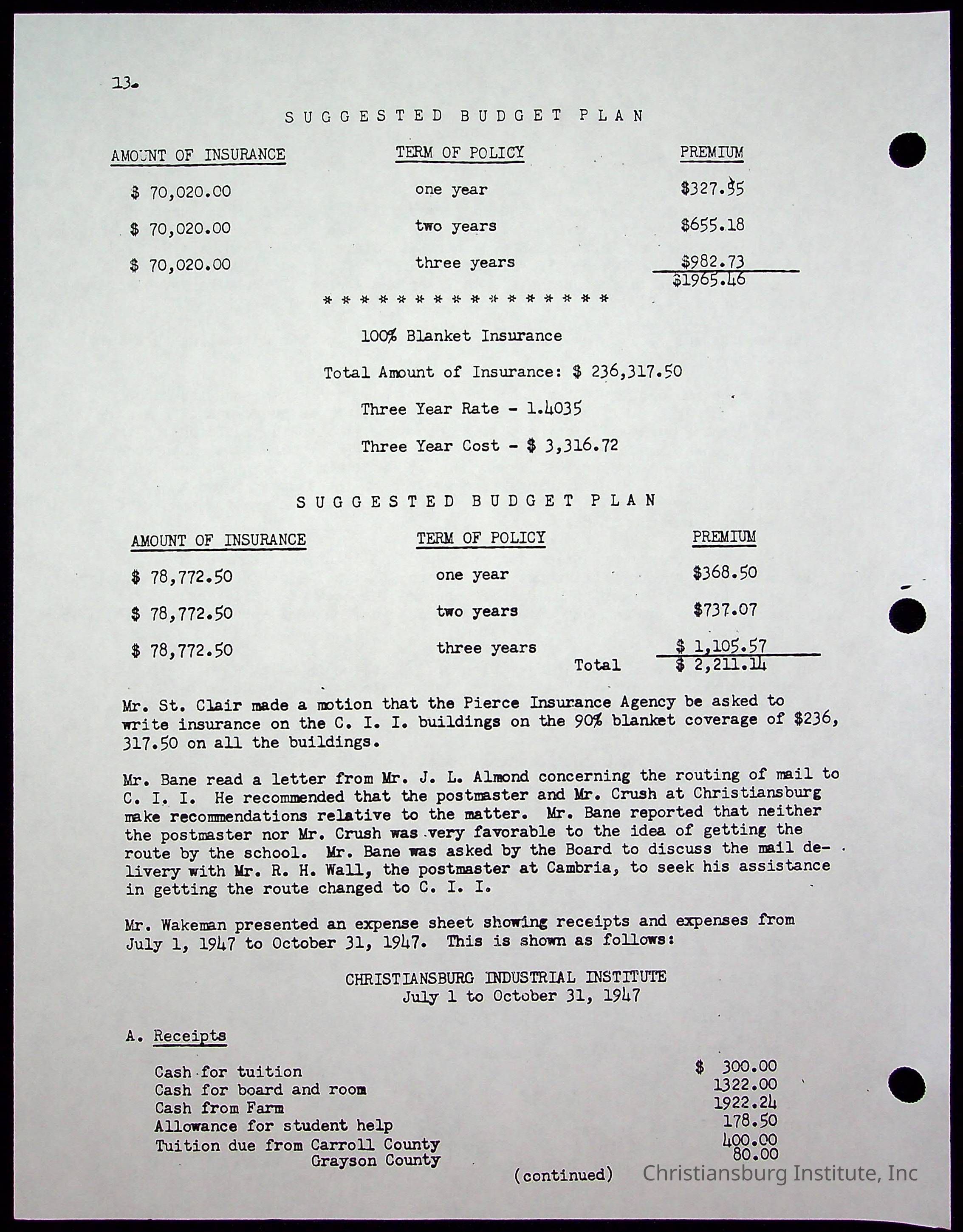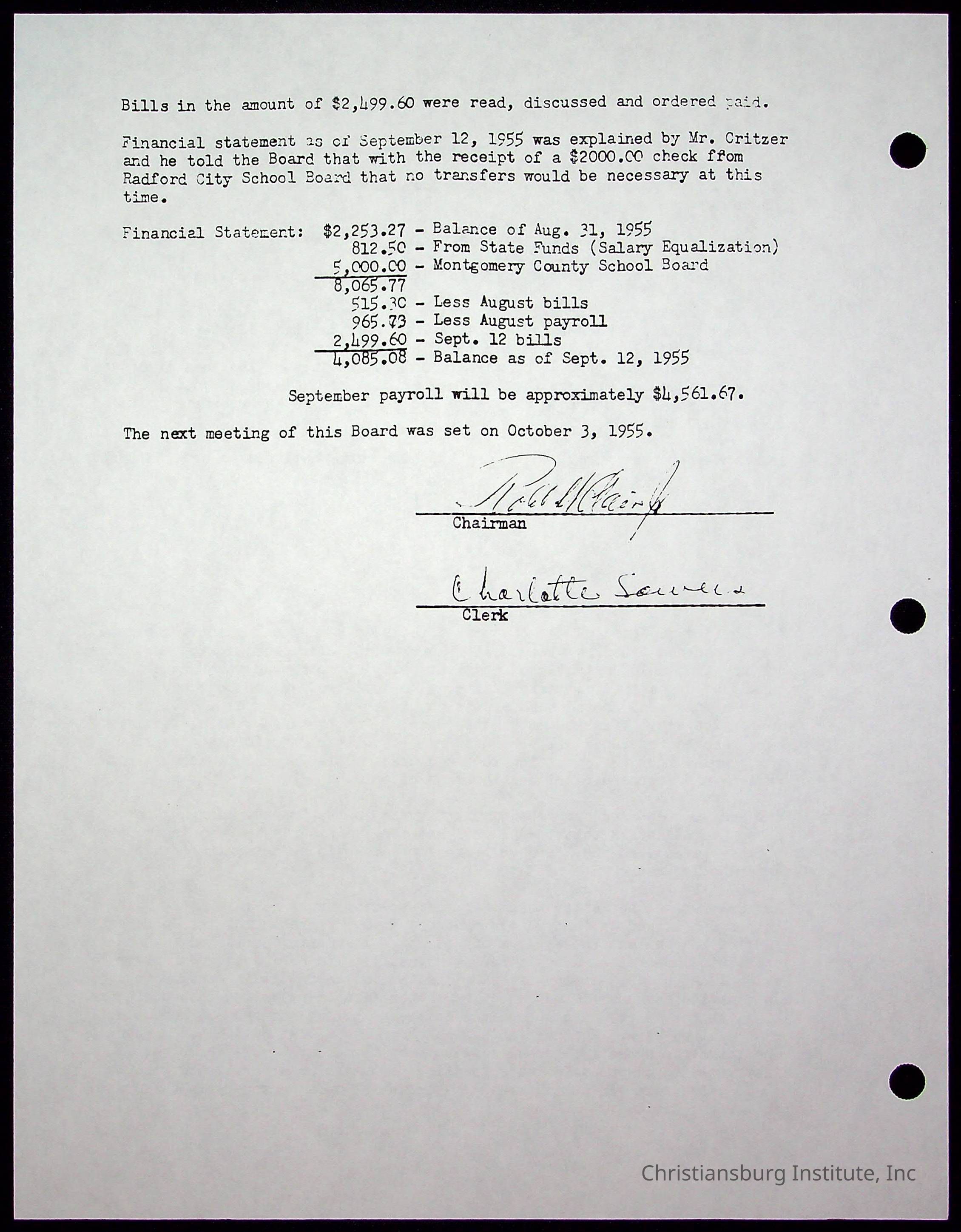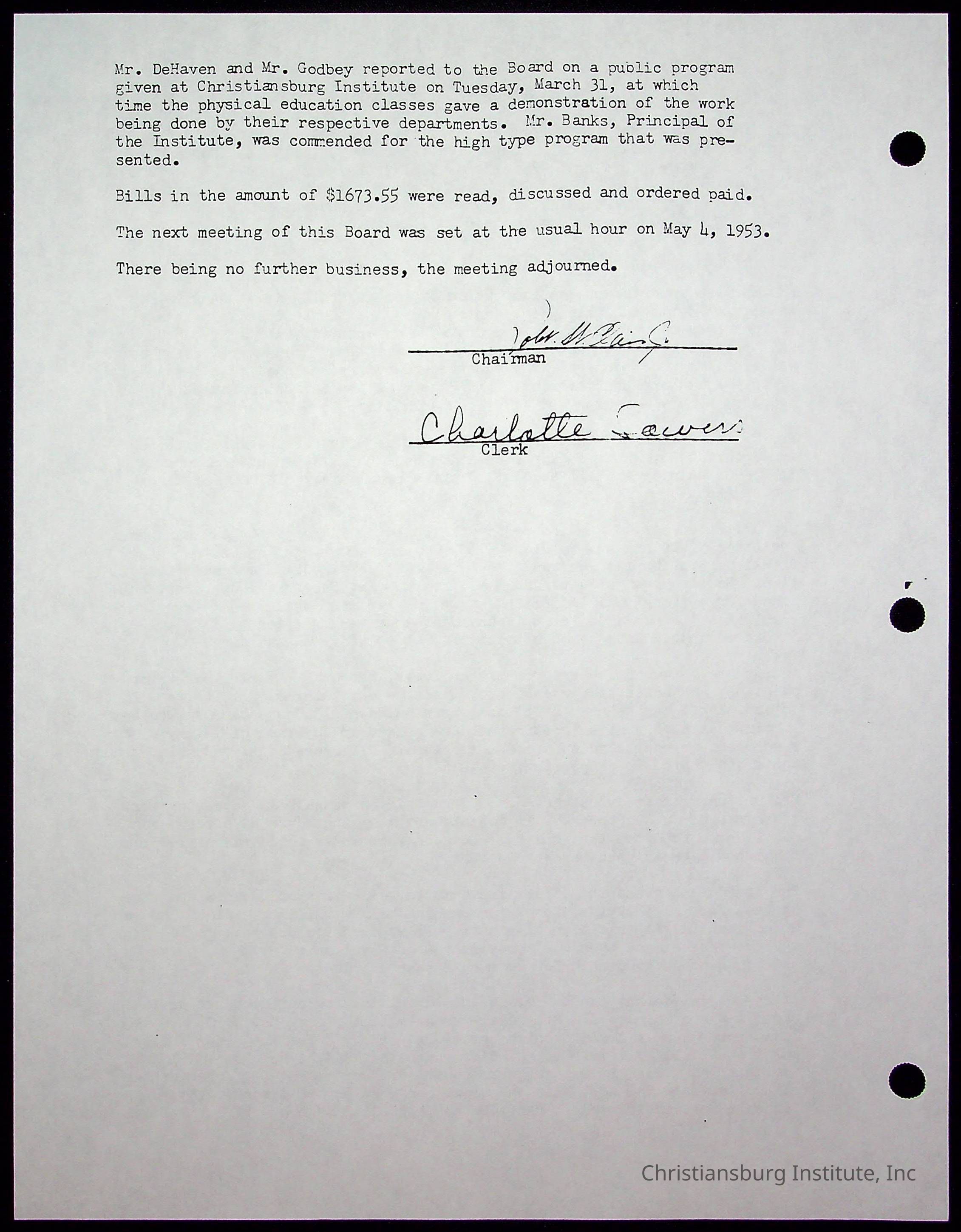 Christiansburg Industrial Institute Board Minutes, July 1947-August 1963 (photocopy)Description