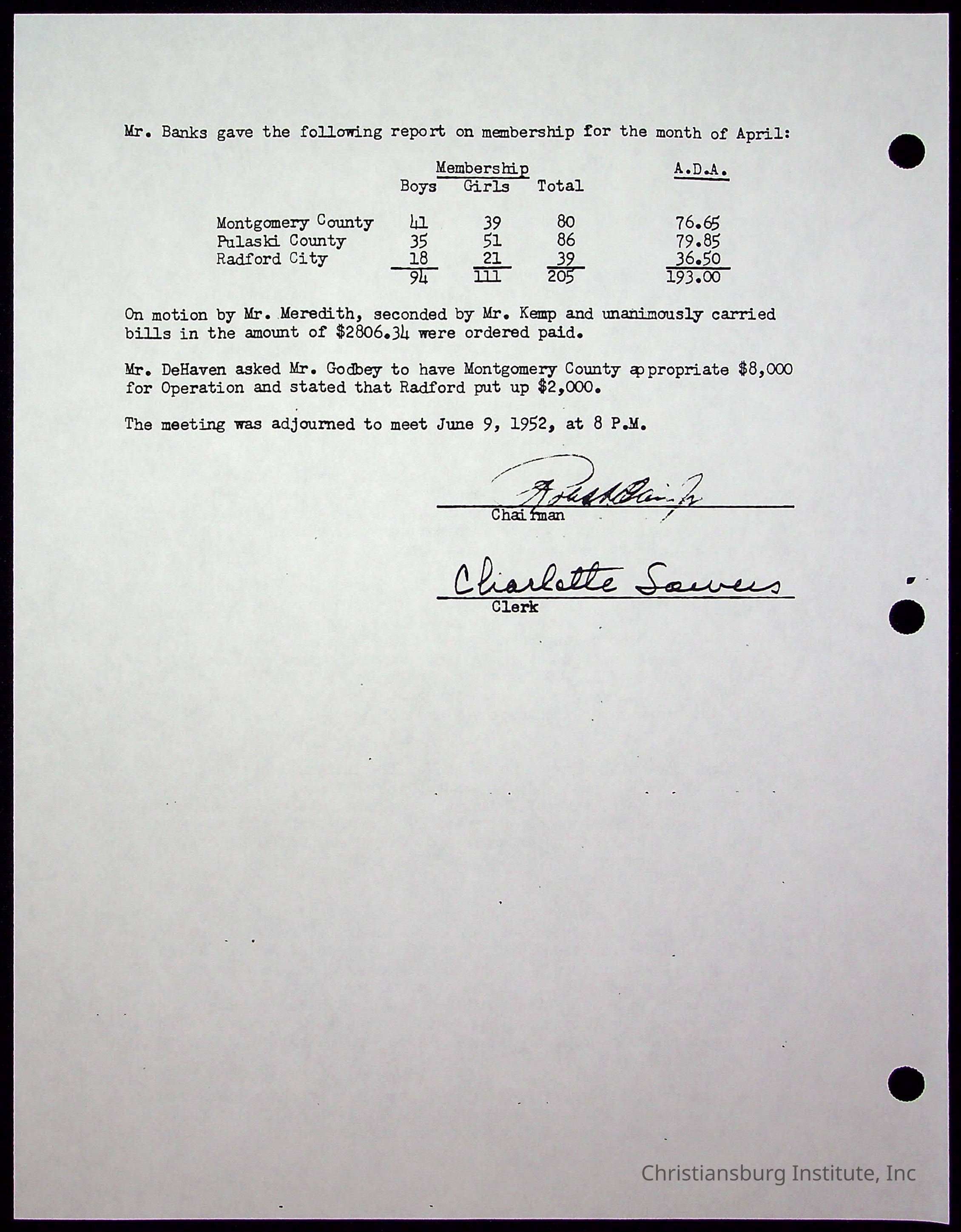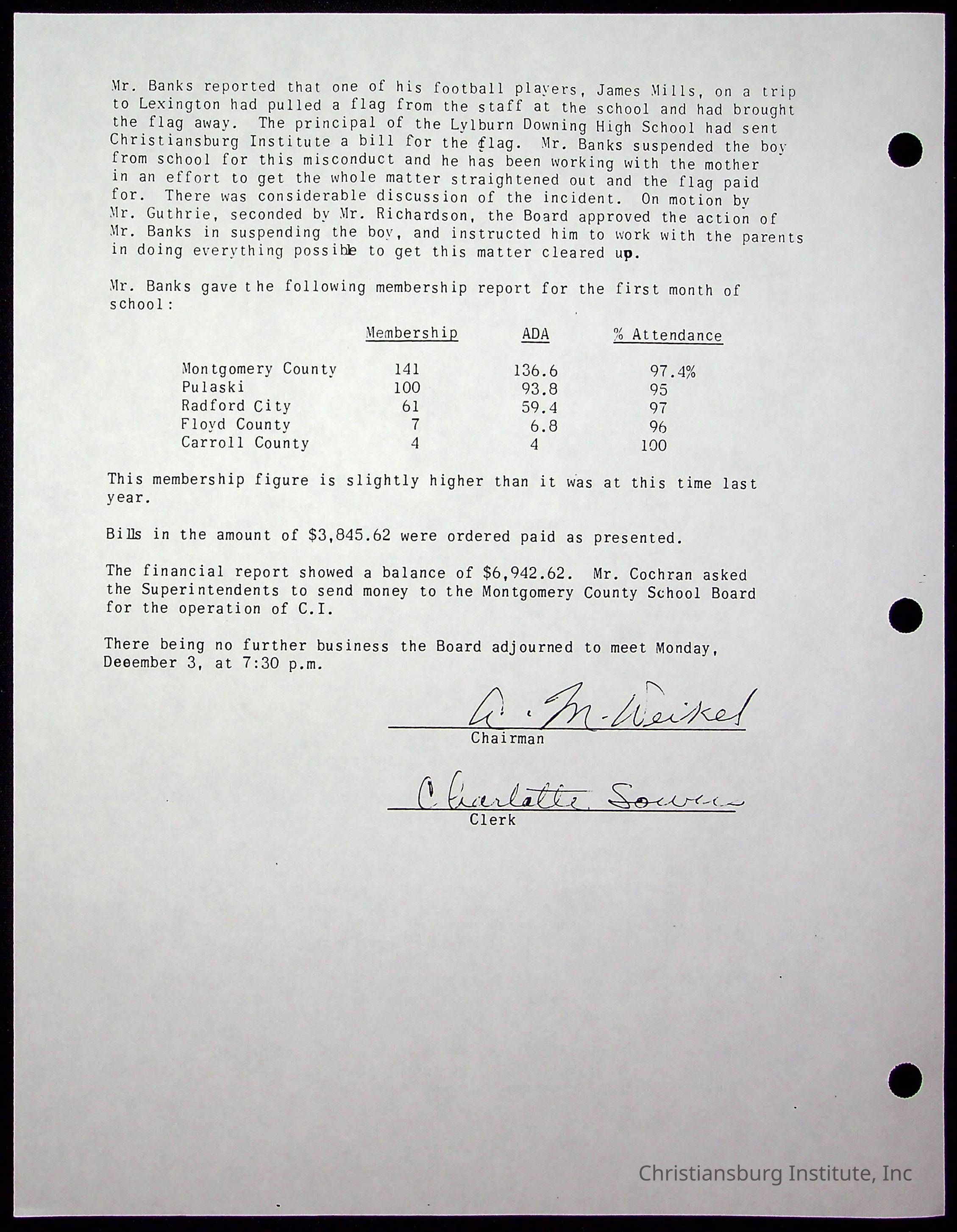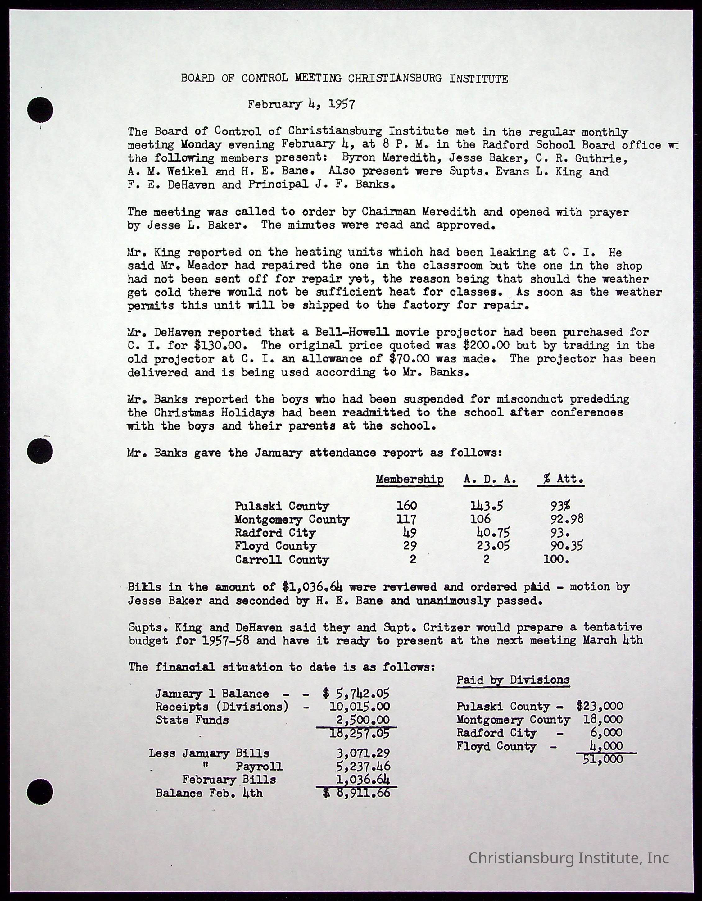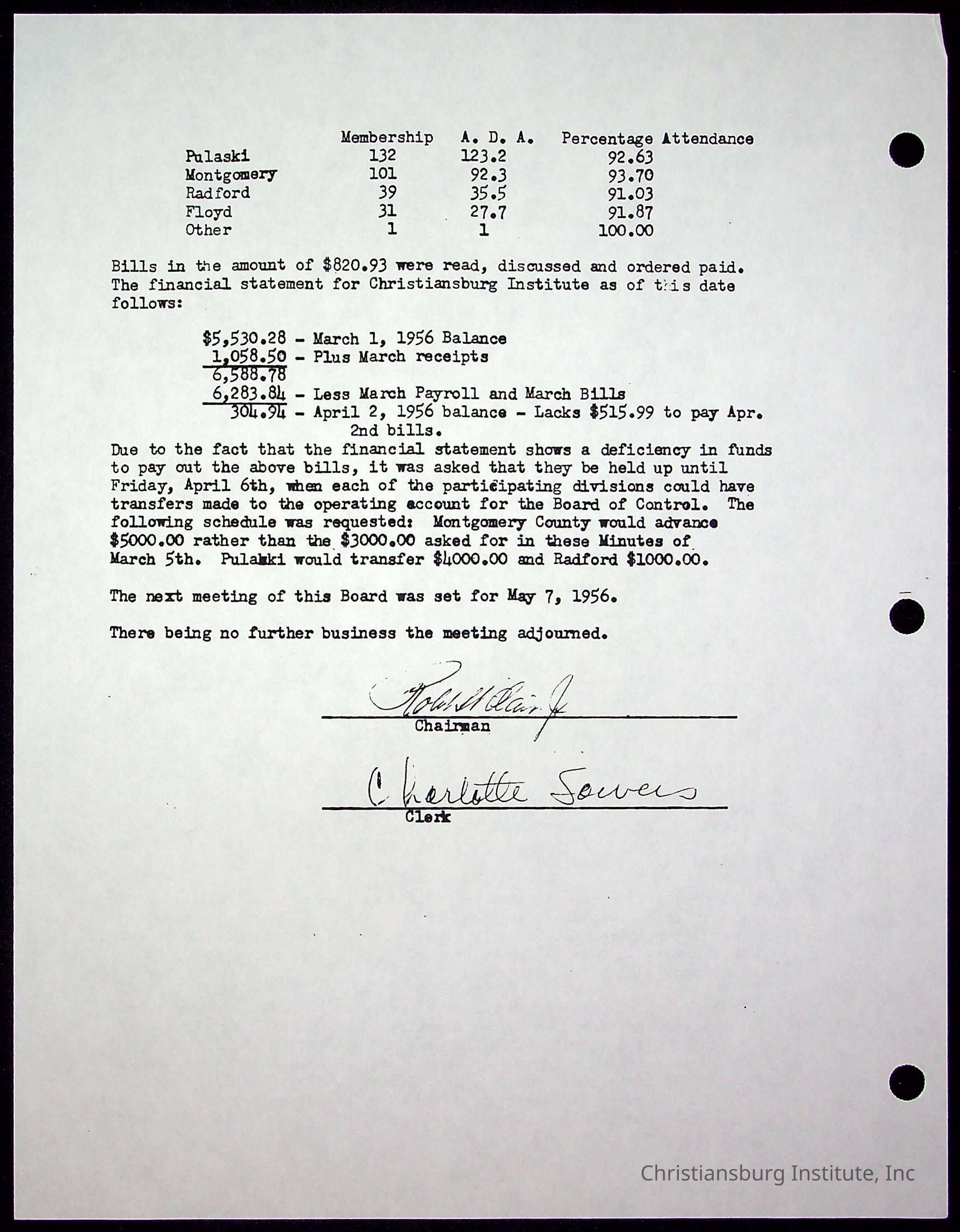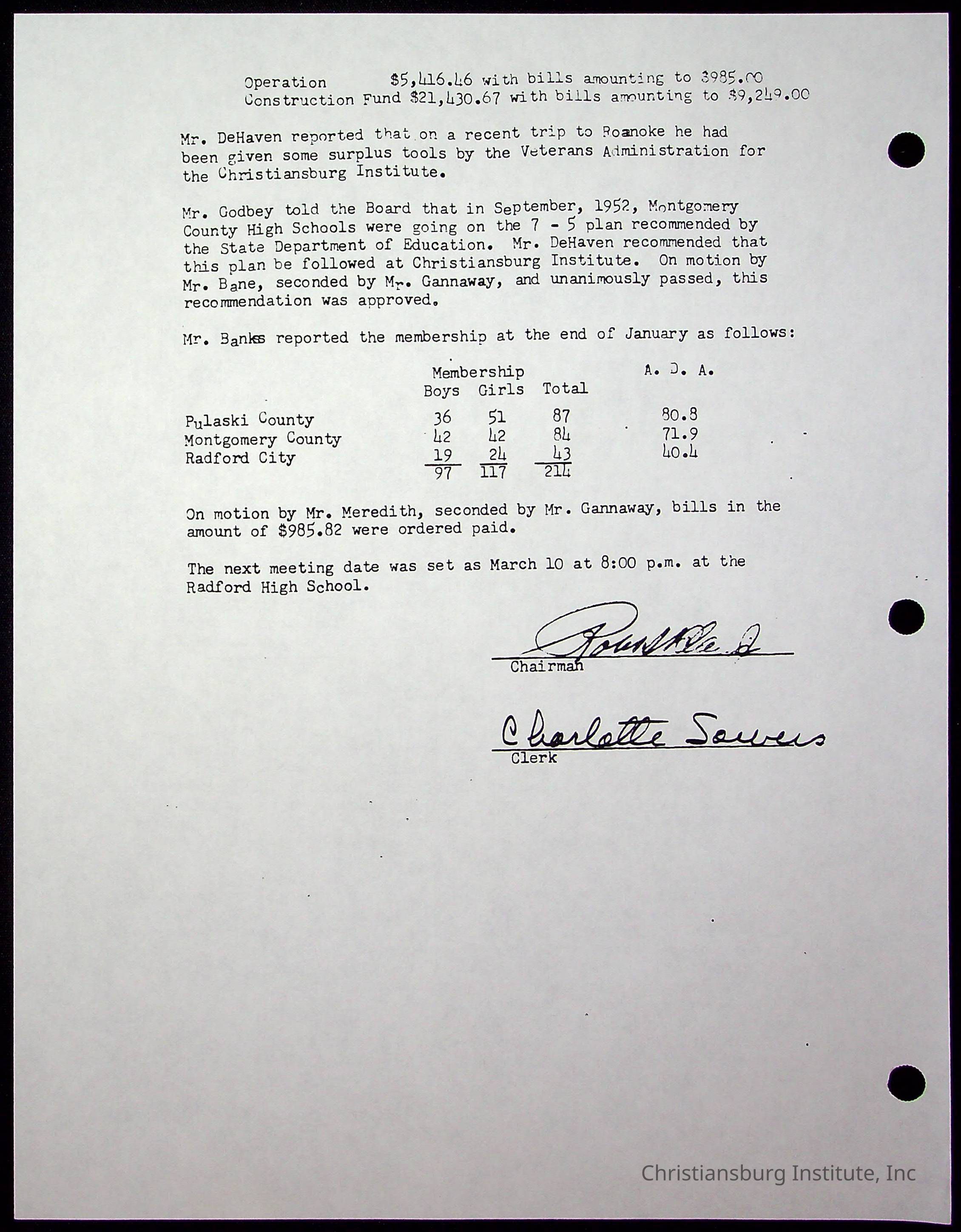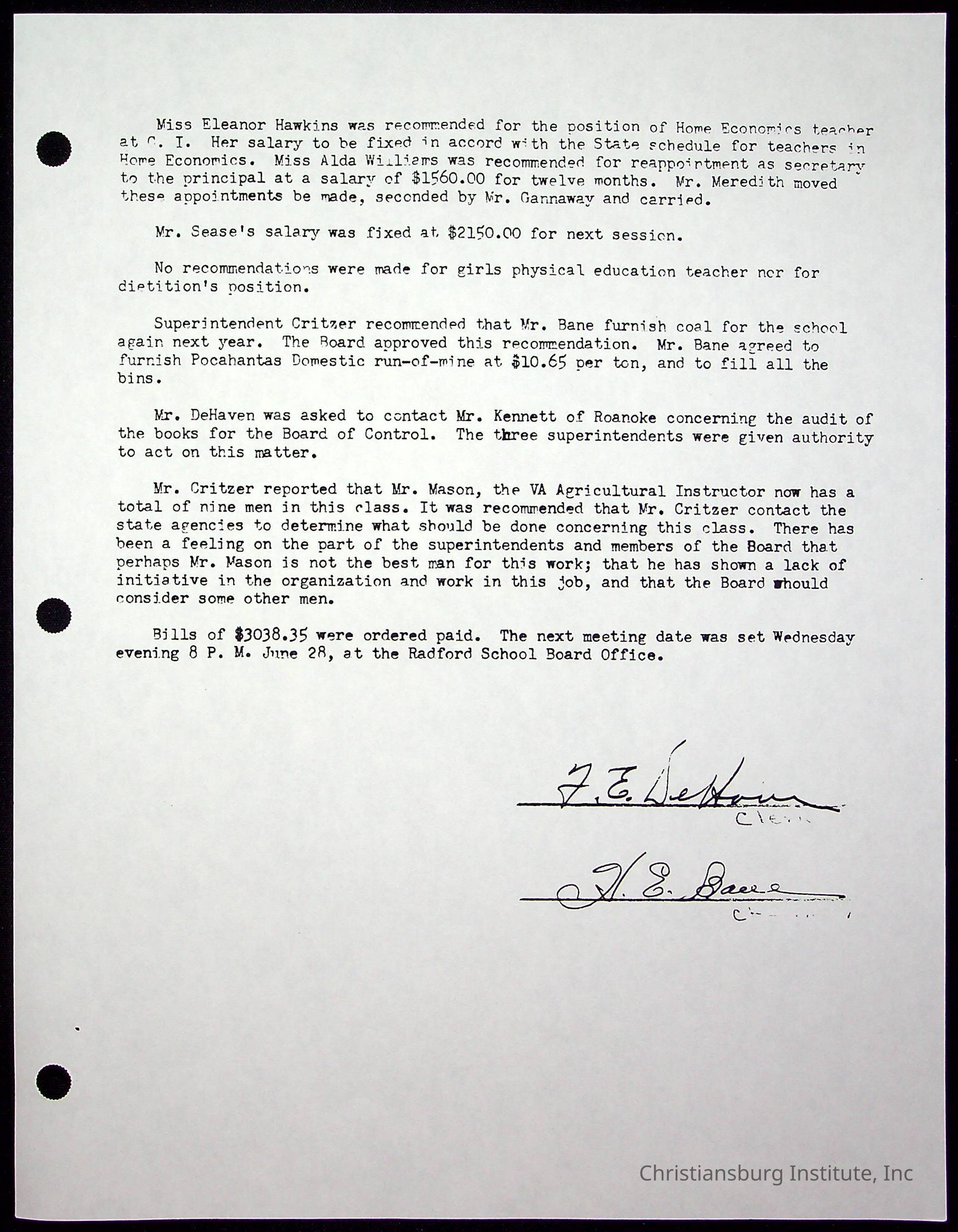 Christiansburg Industrial Institute Board Minutes, July 1947-August 1963 (photocopy)Description