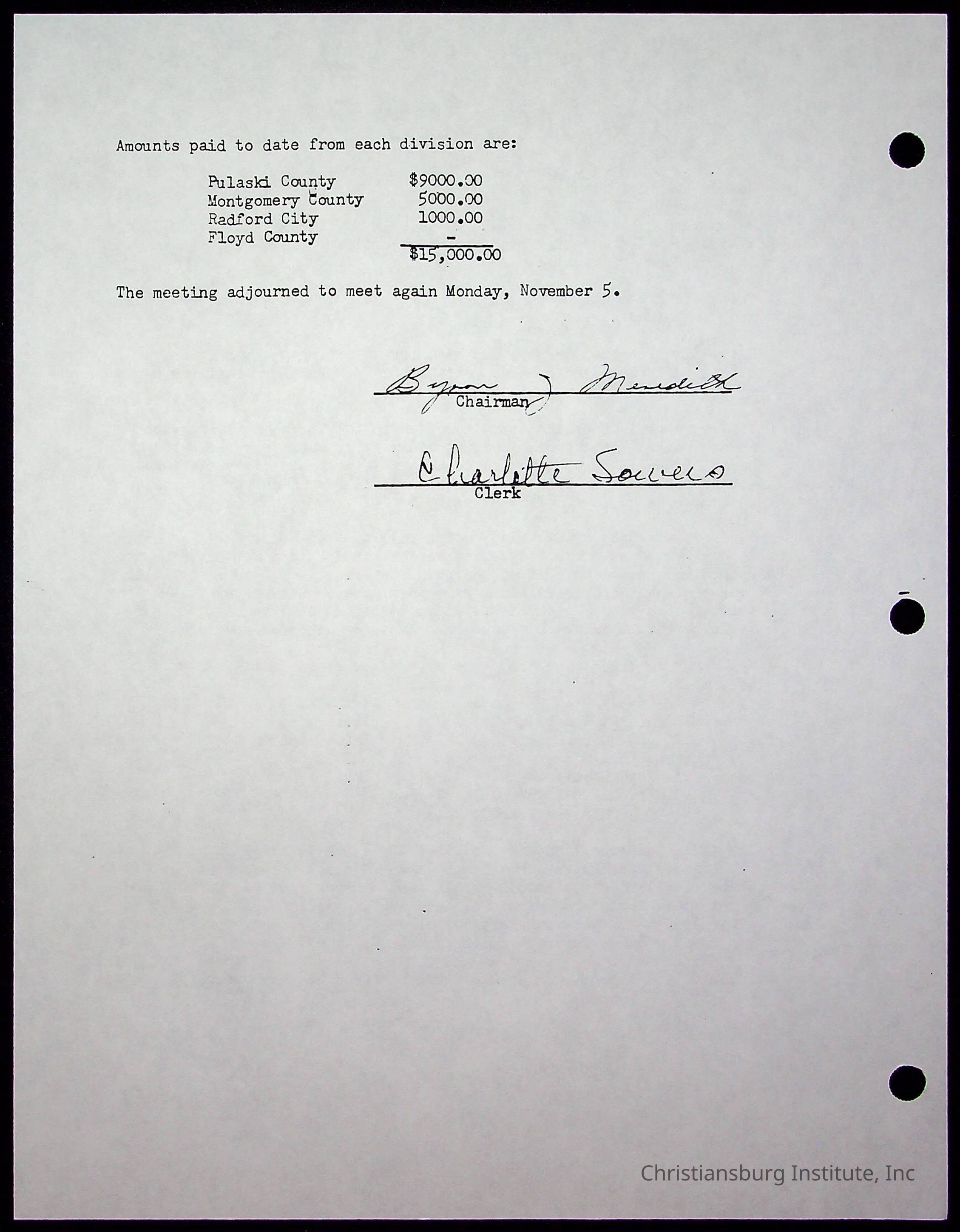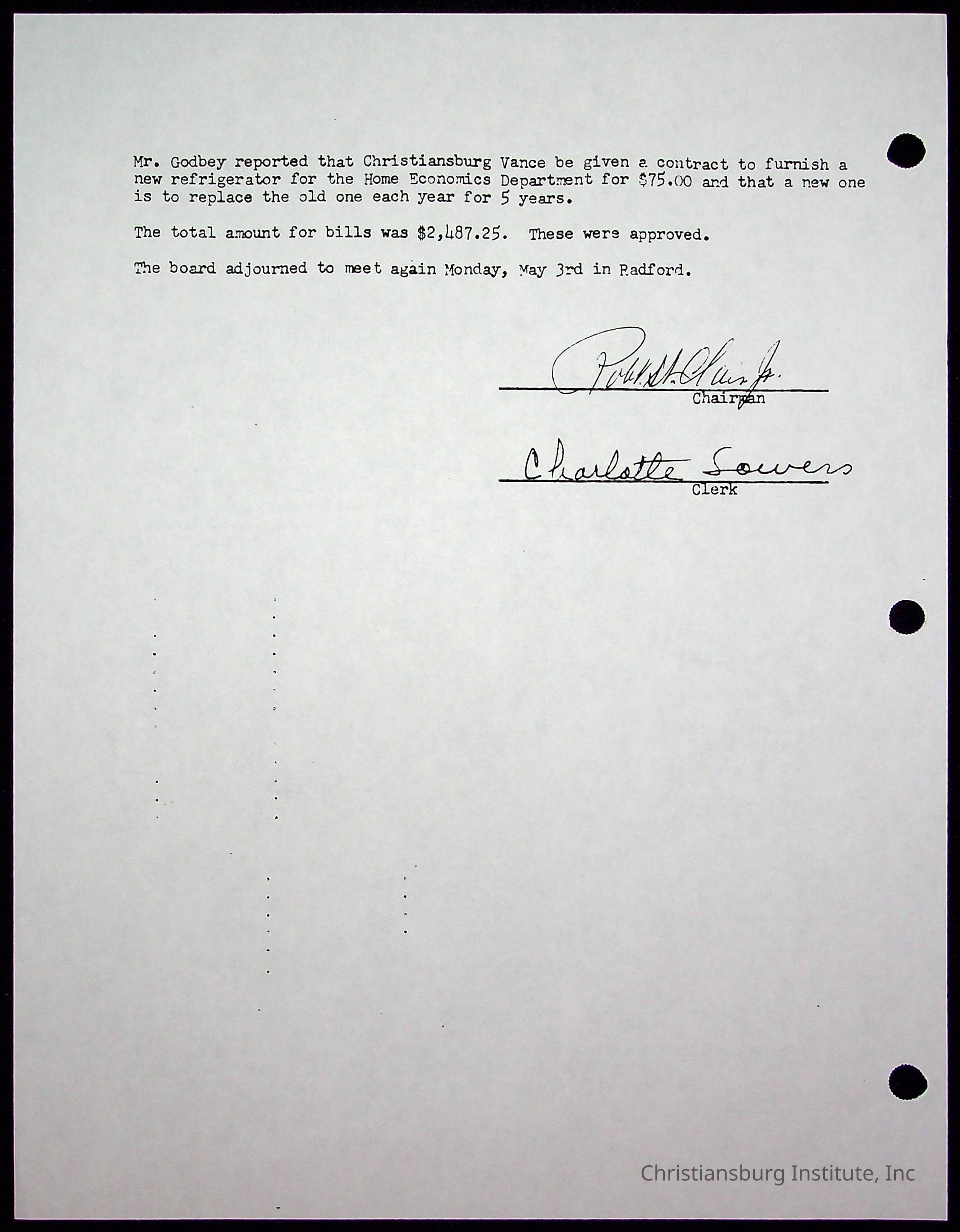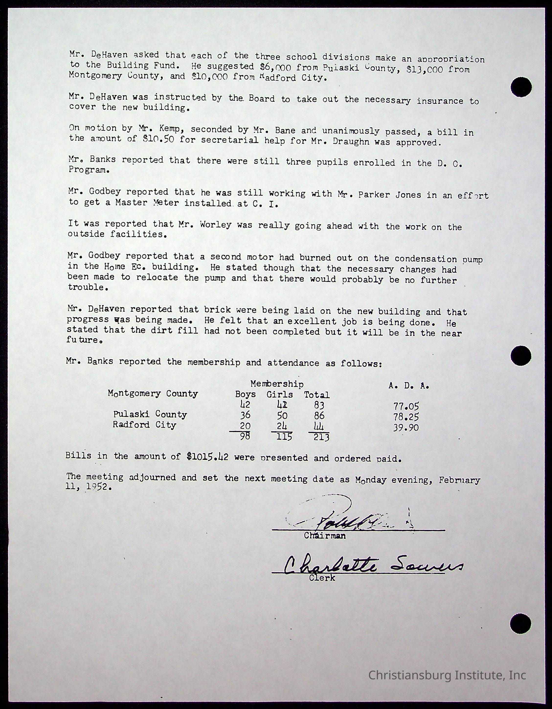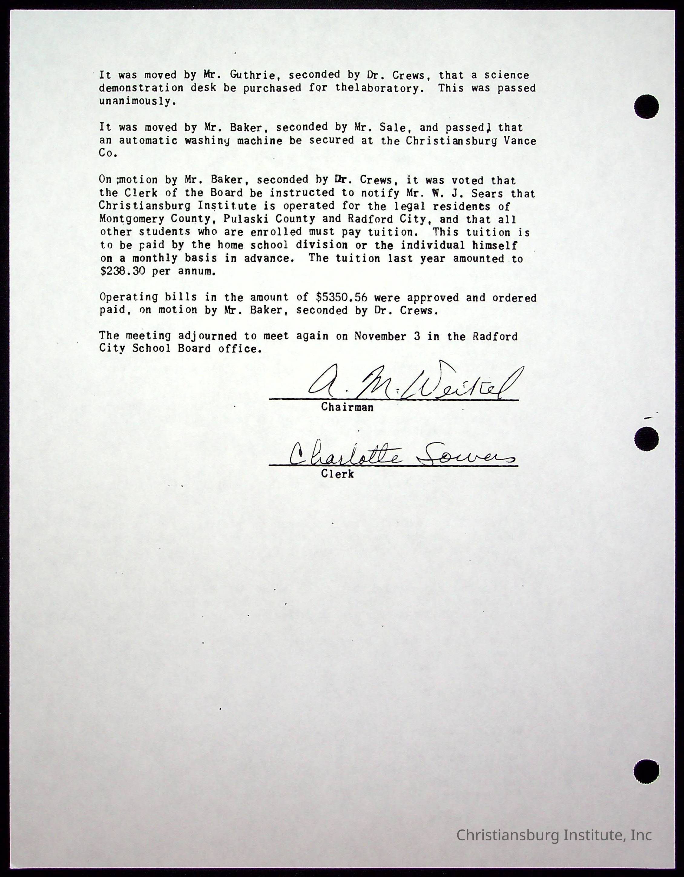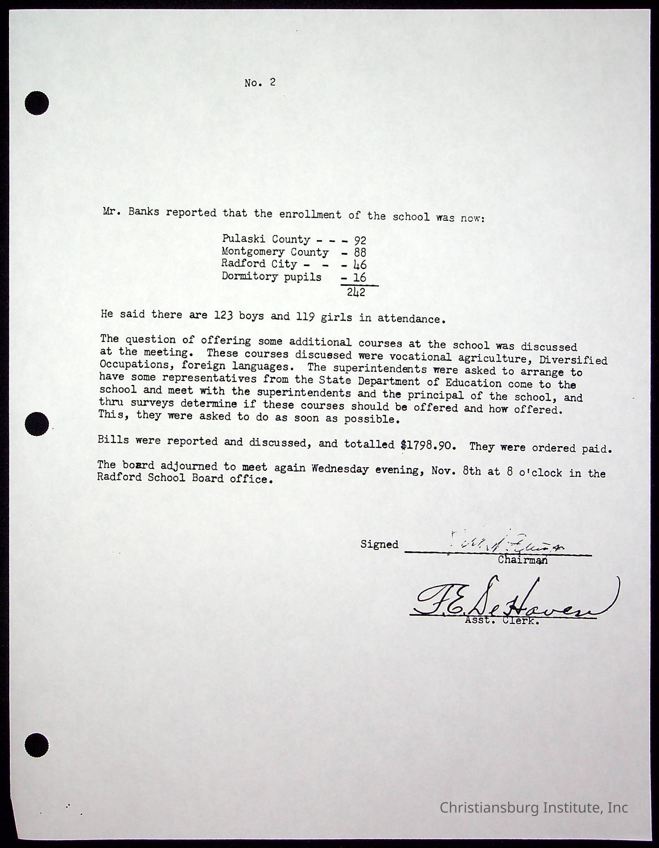 Christiansburg Industrial Institute Board Minutes, July 1947-August 1963 (photocopy)Description