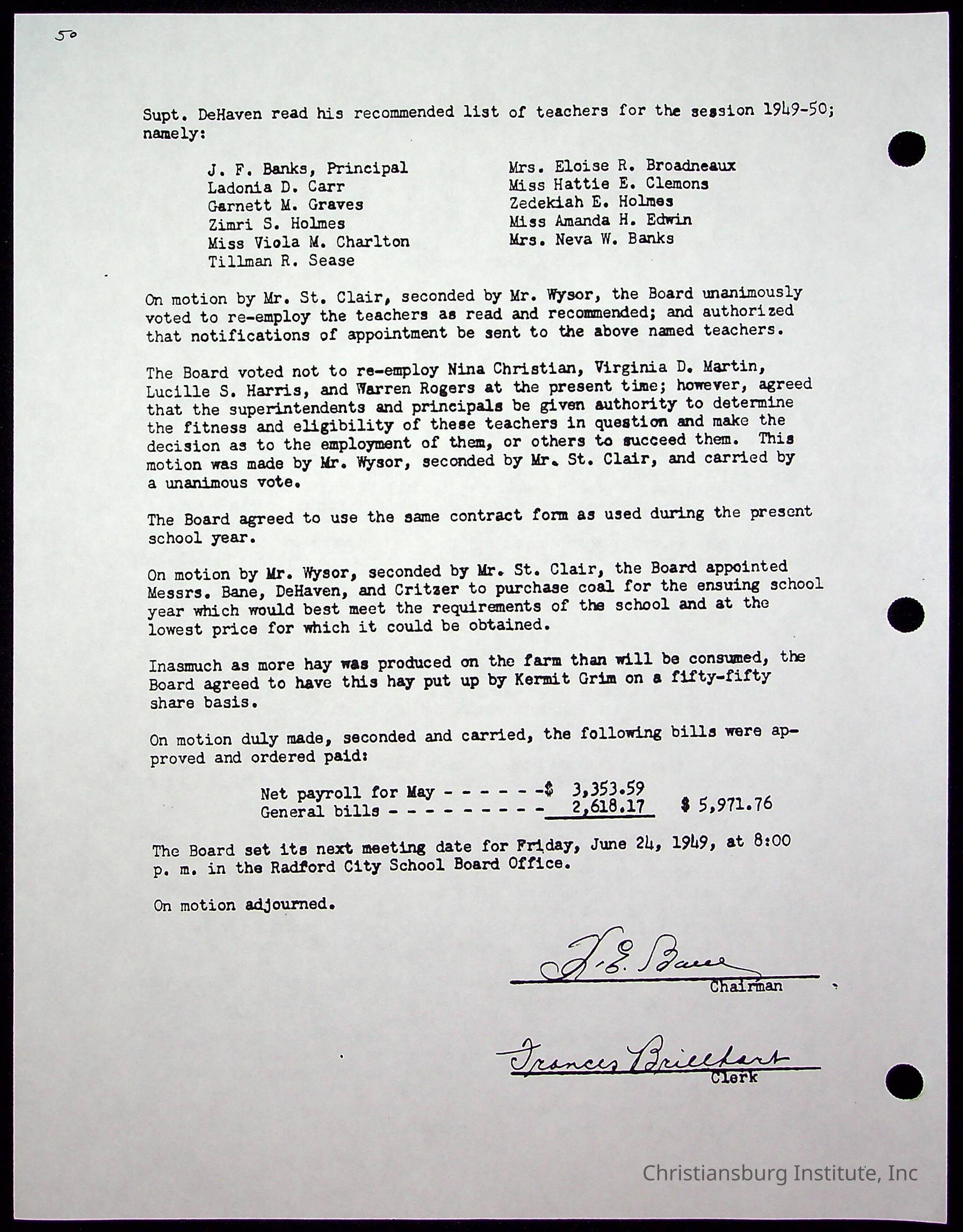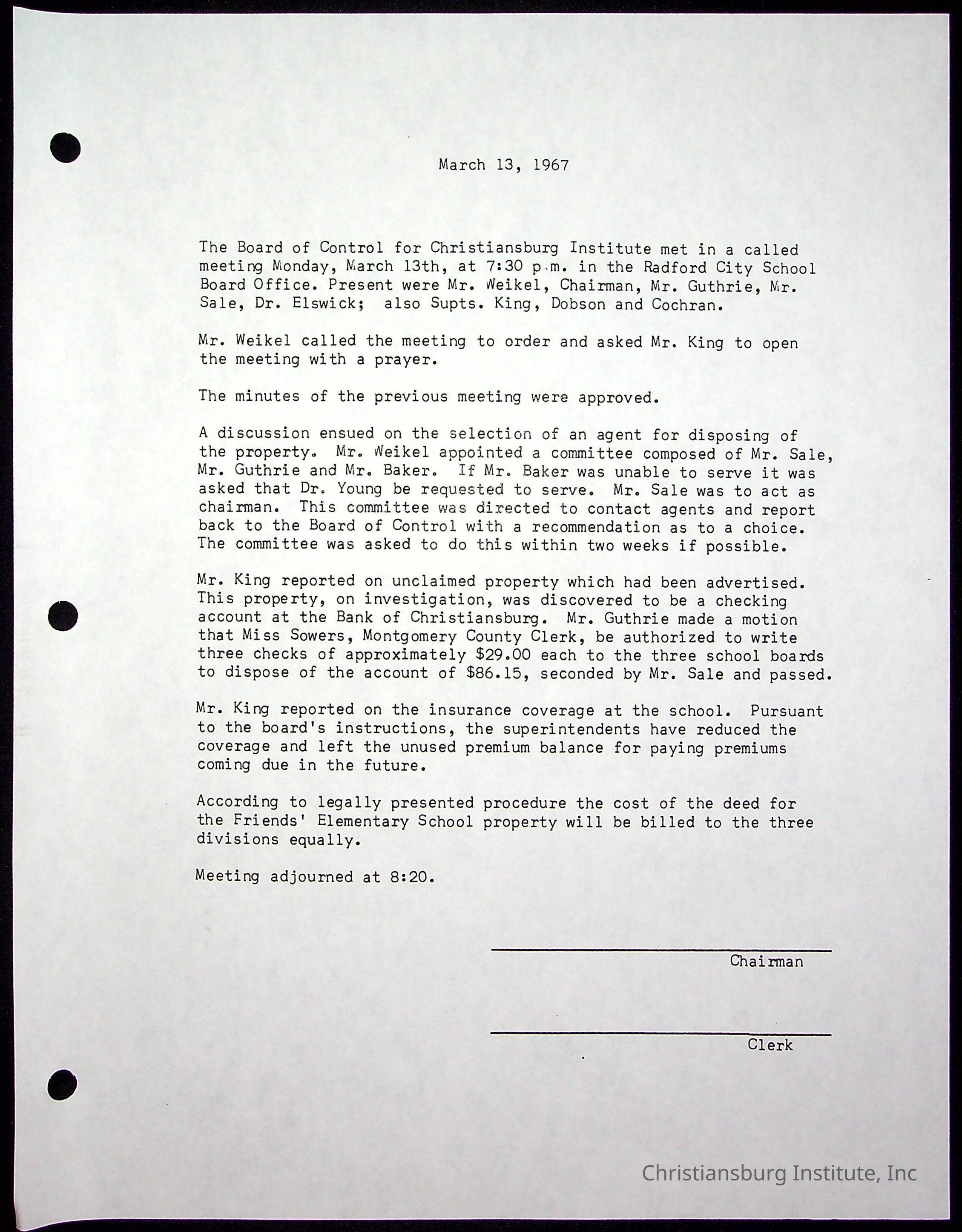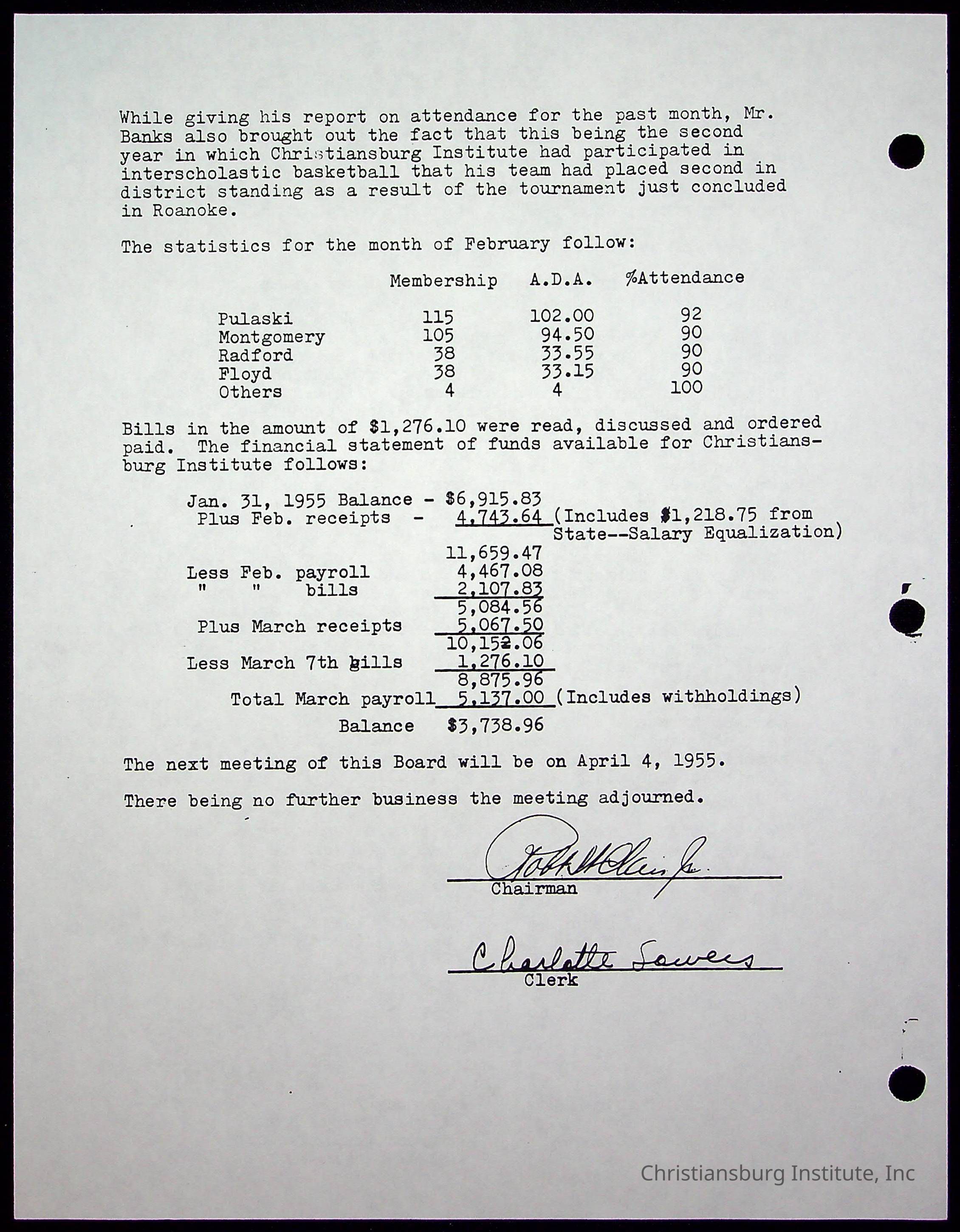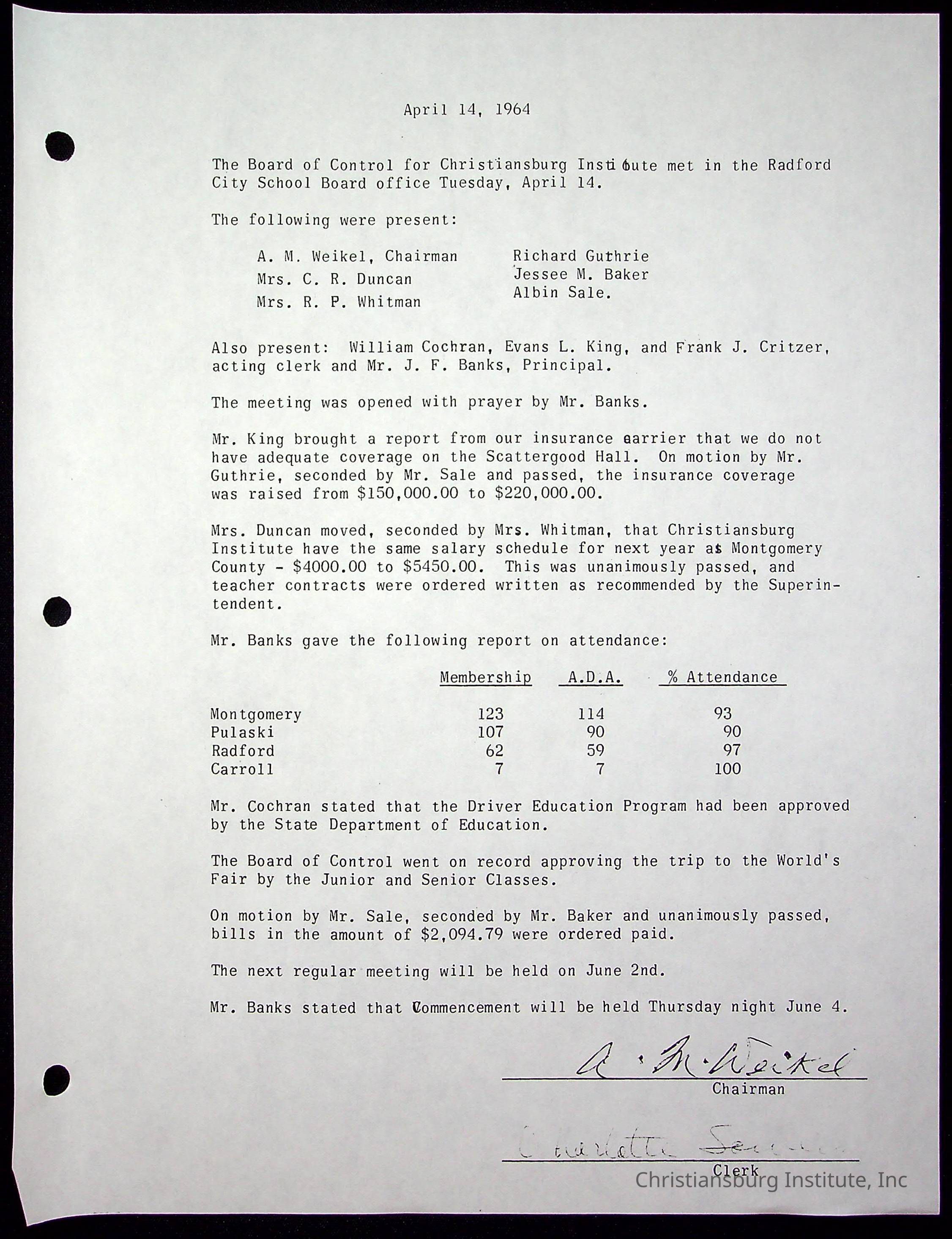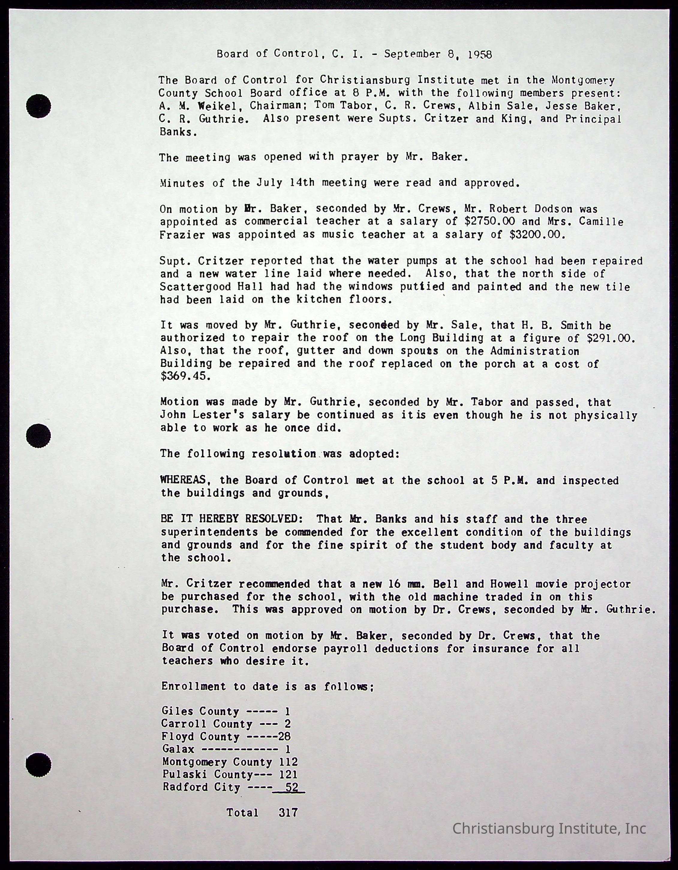 Christiansburg Industrial Institute Board Minutes, July 1947-August 1963 (photocopy)Description