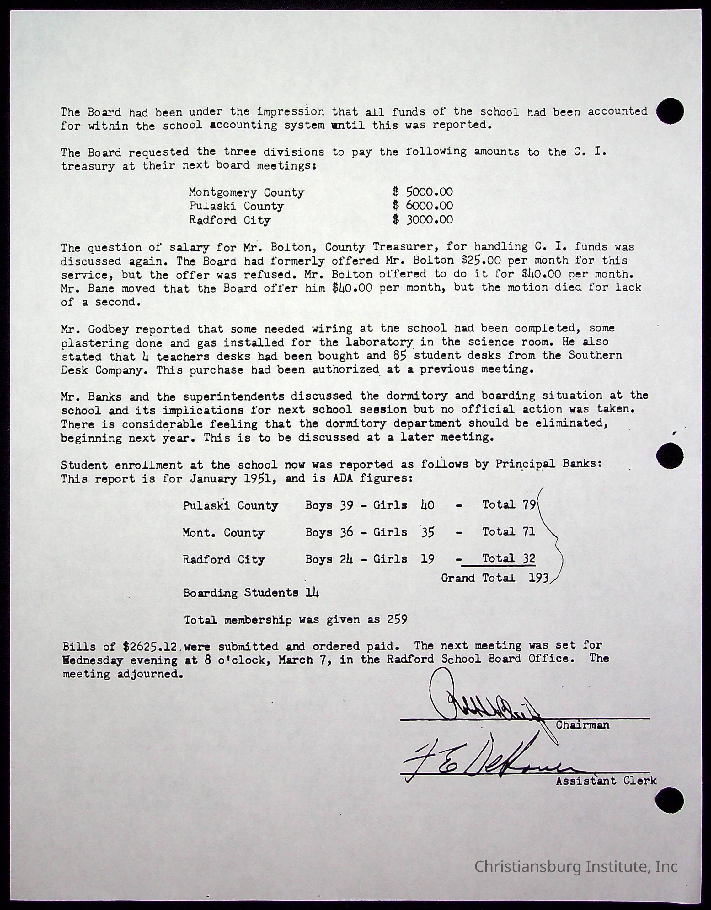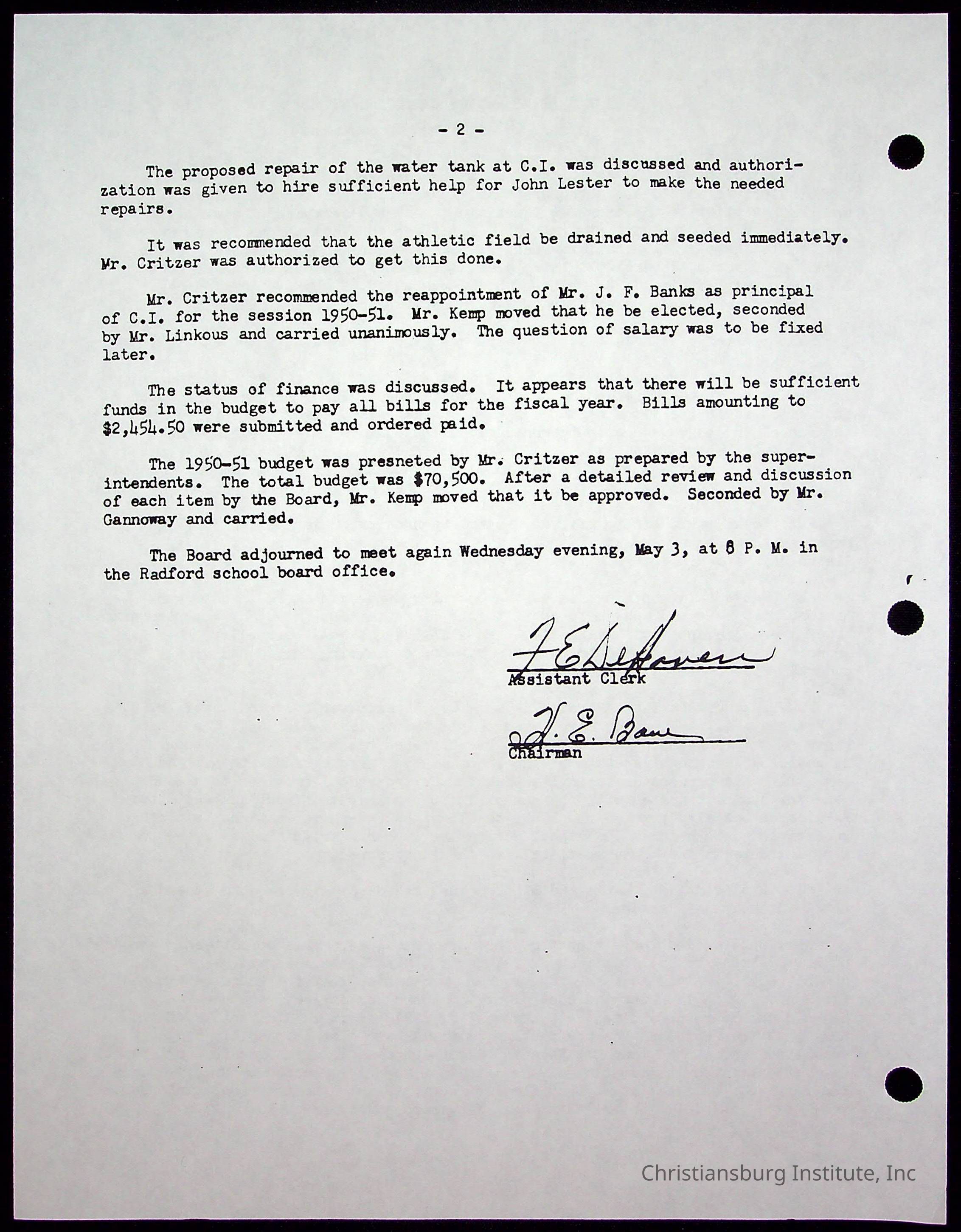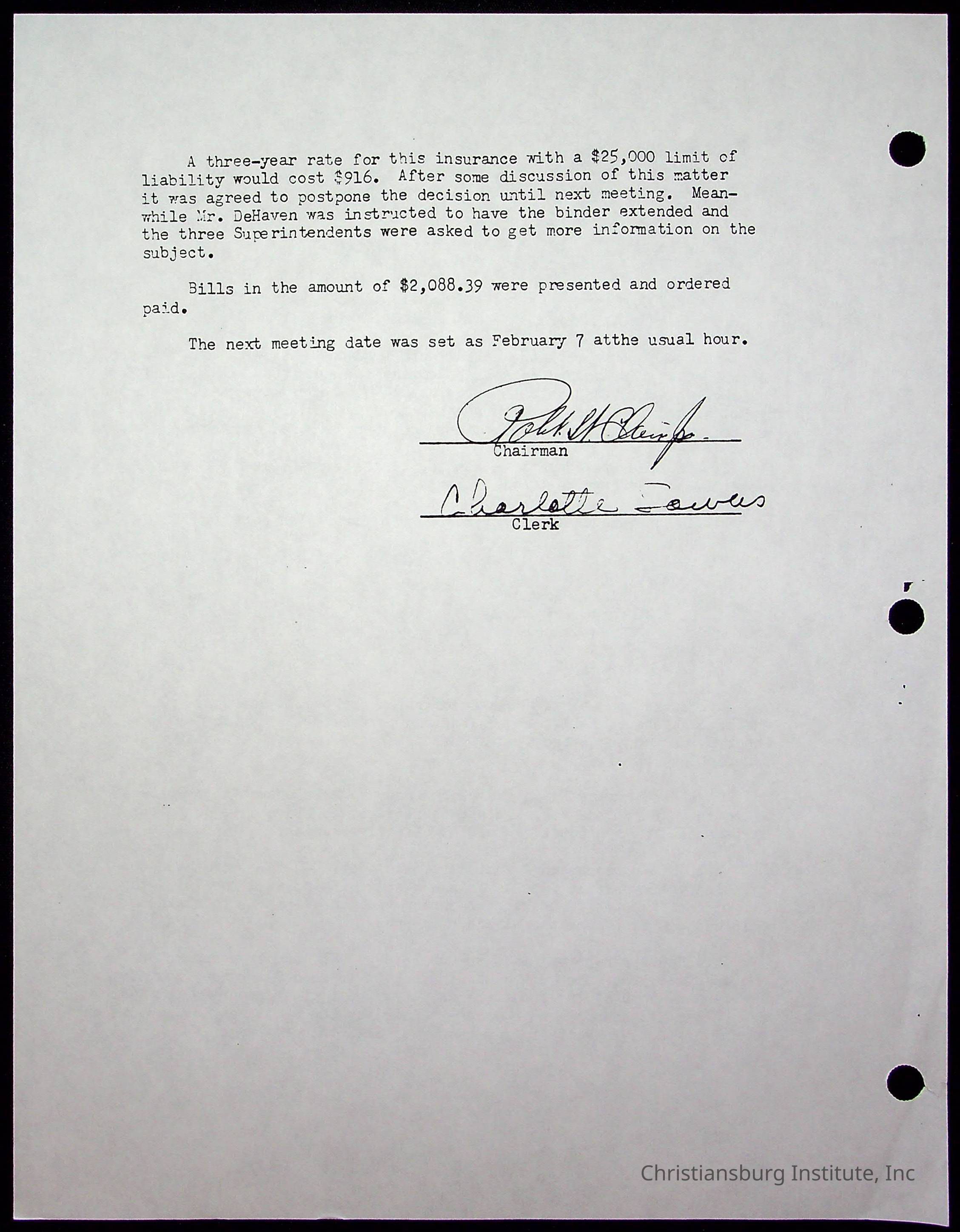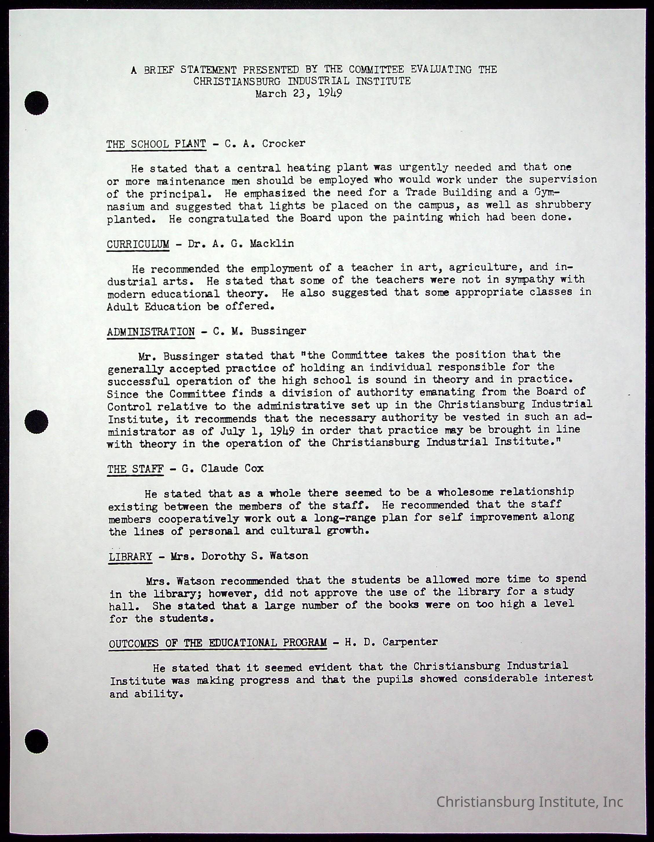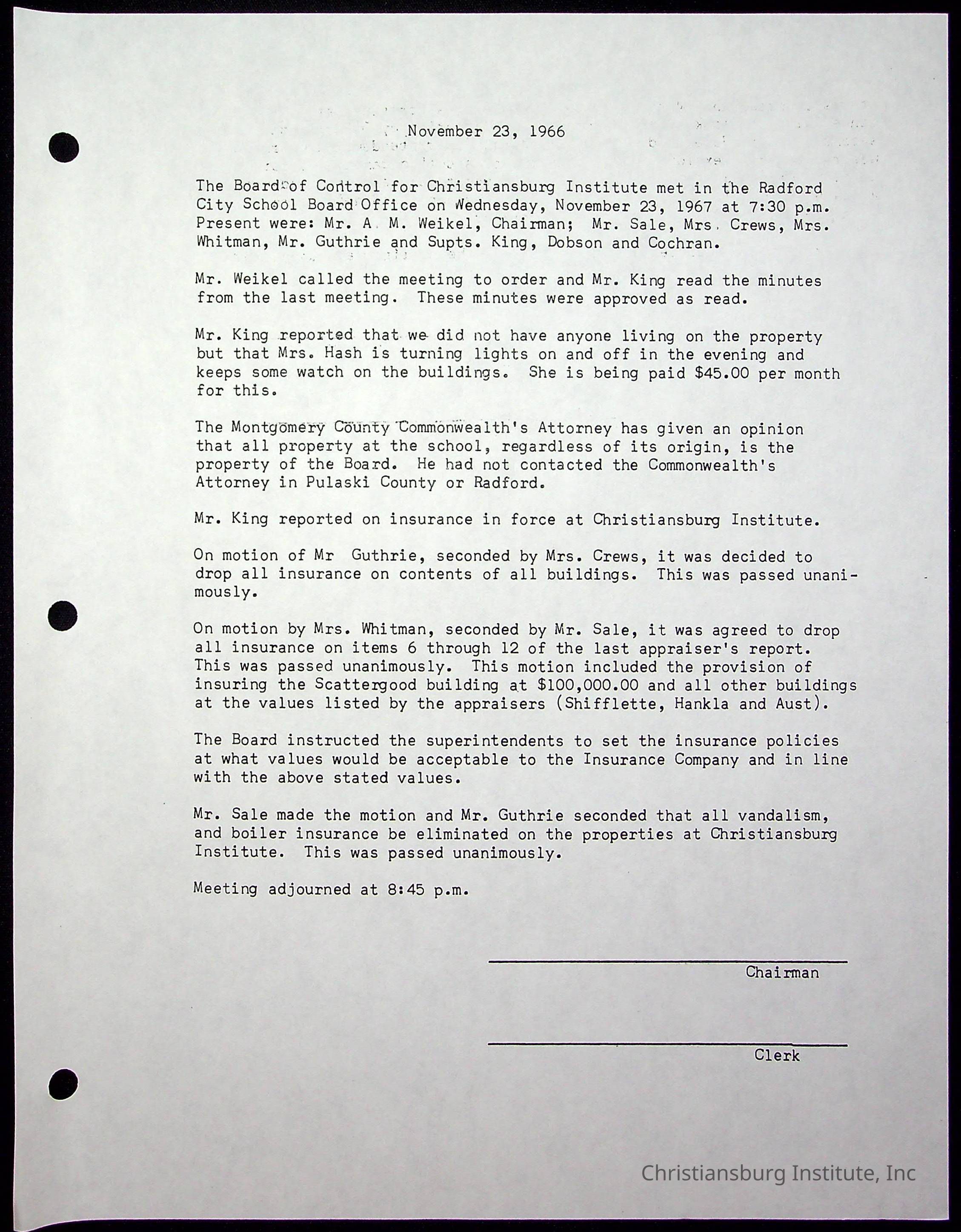 Christiansburg Industrial Institute Board Minutes, July 1947-August 1963 (photocopy)Description