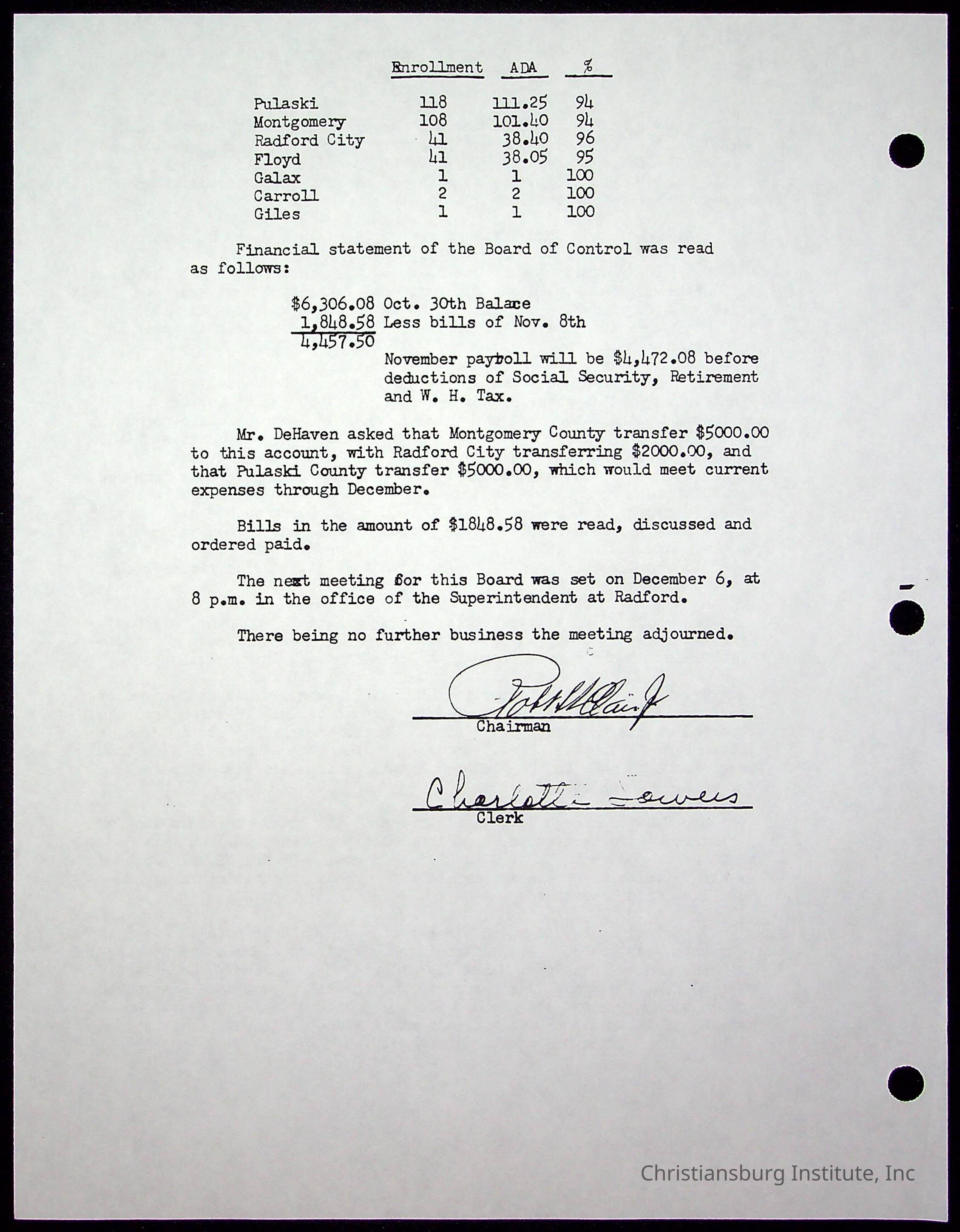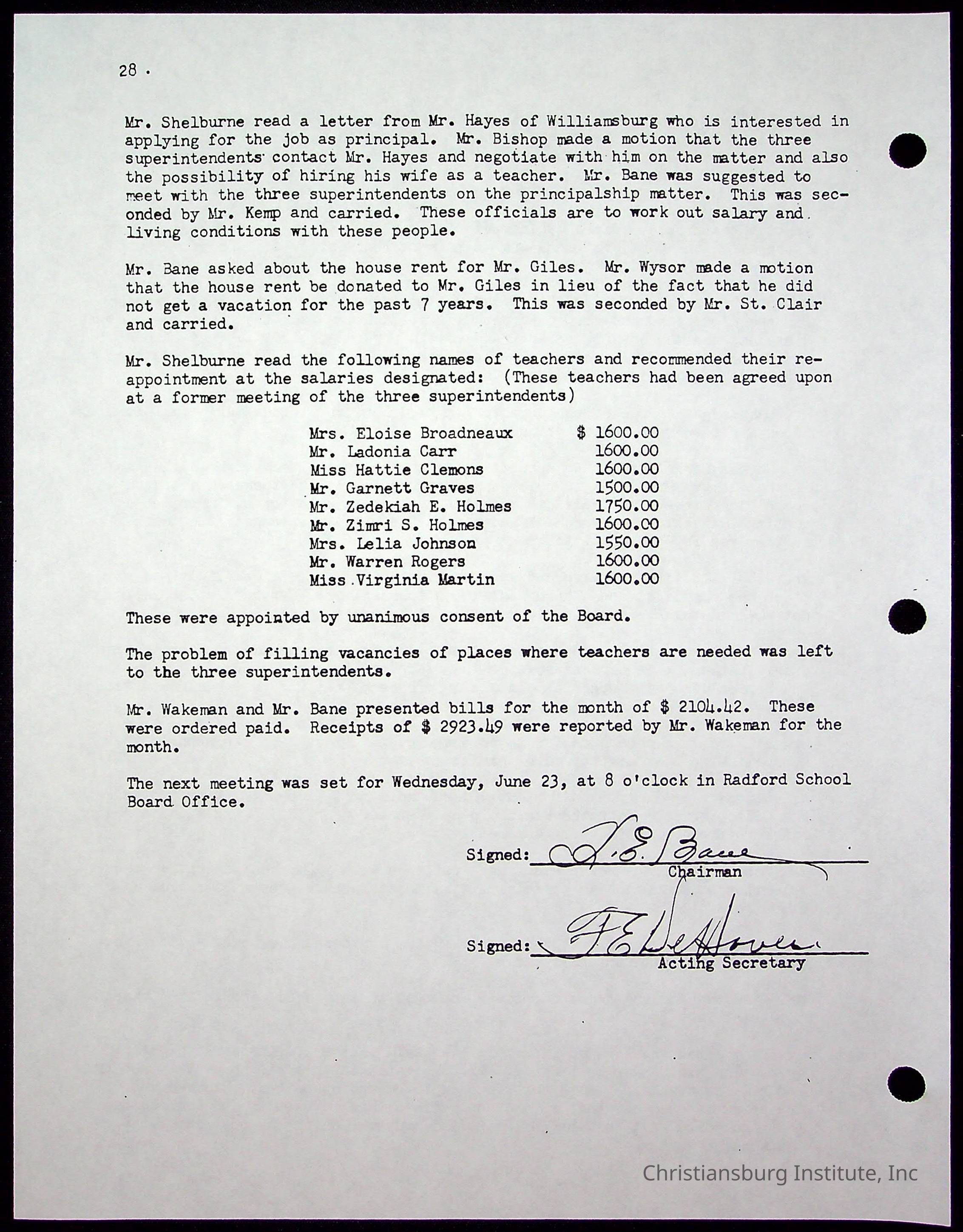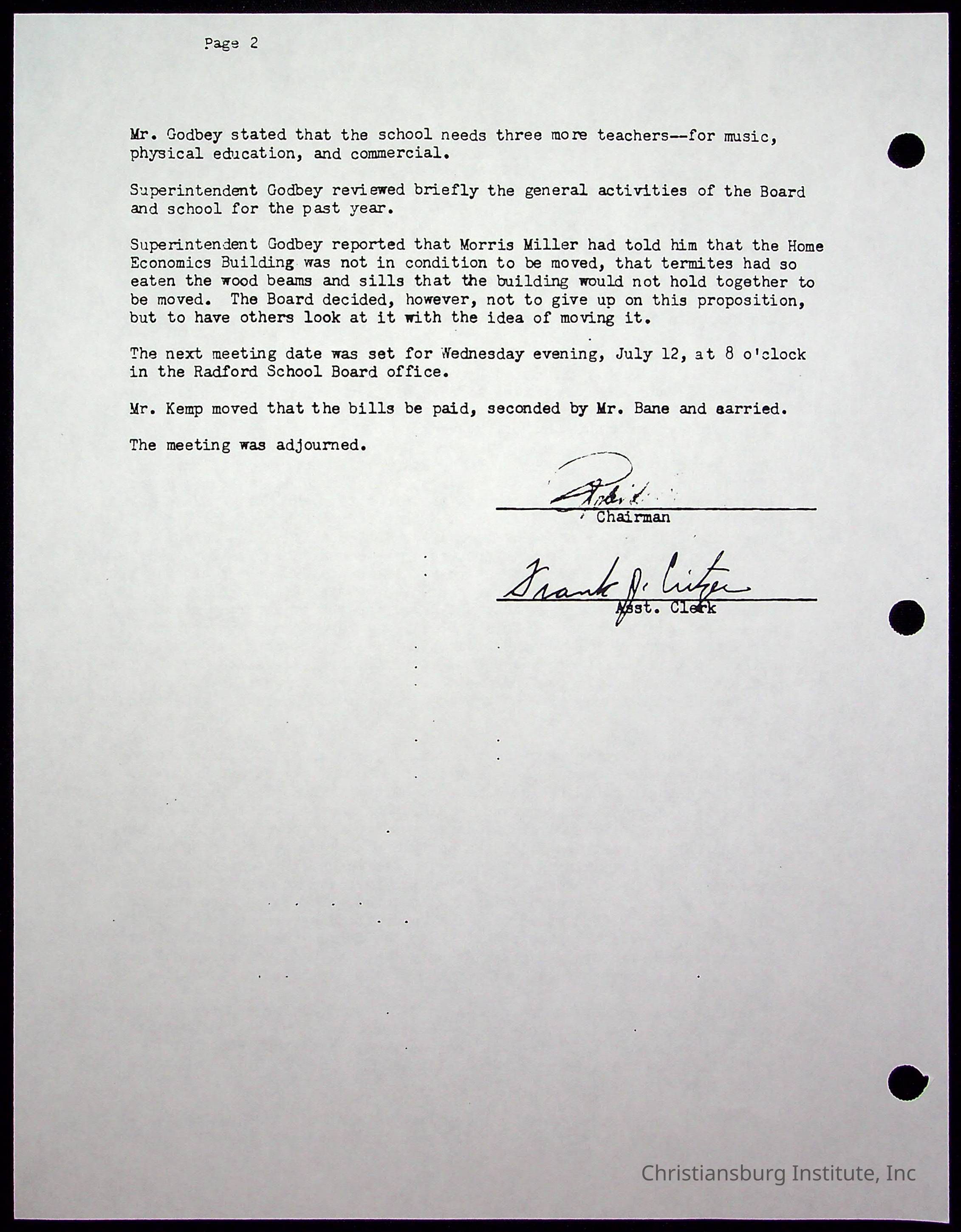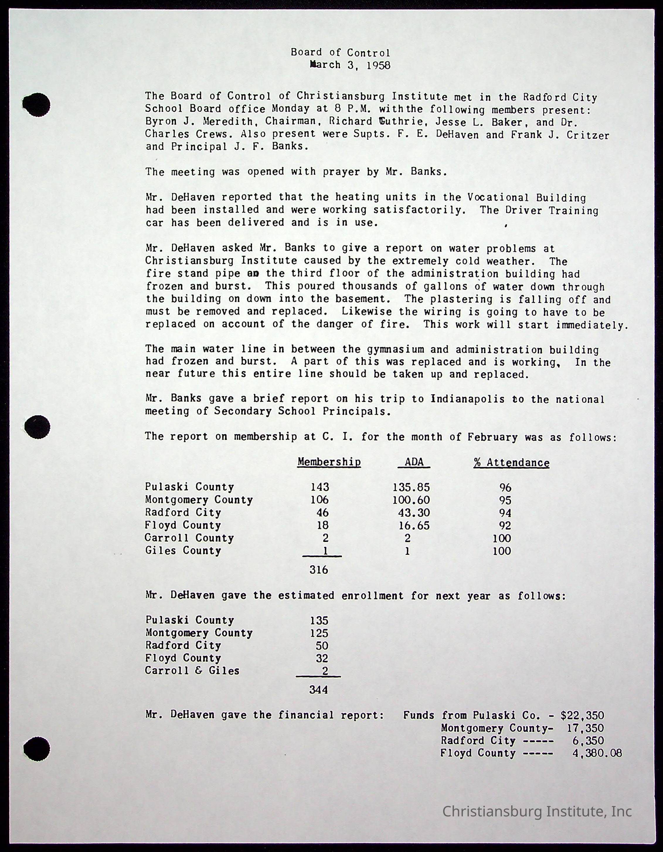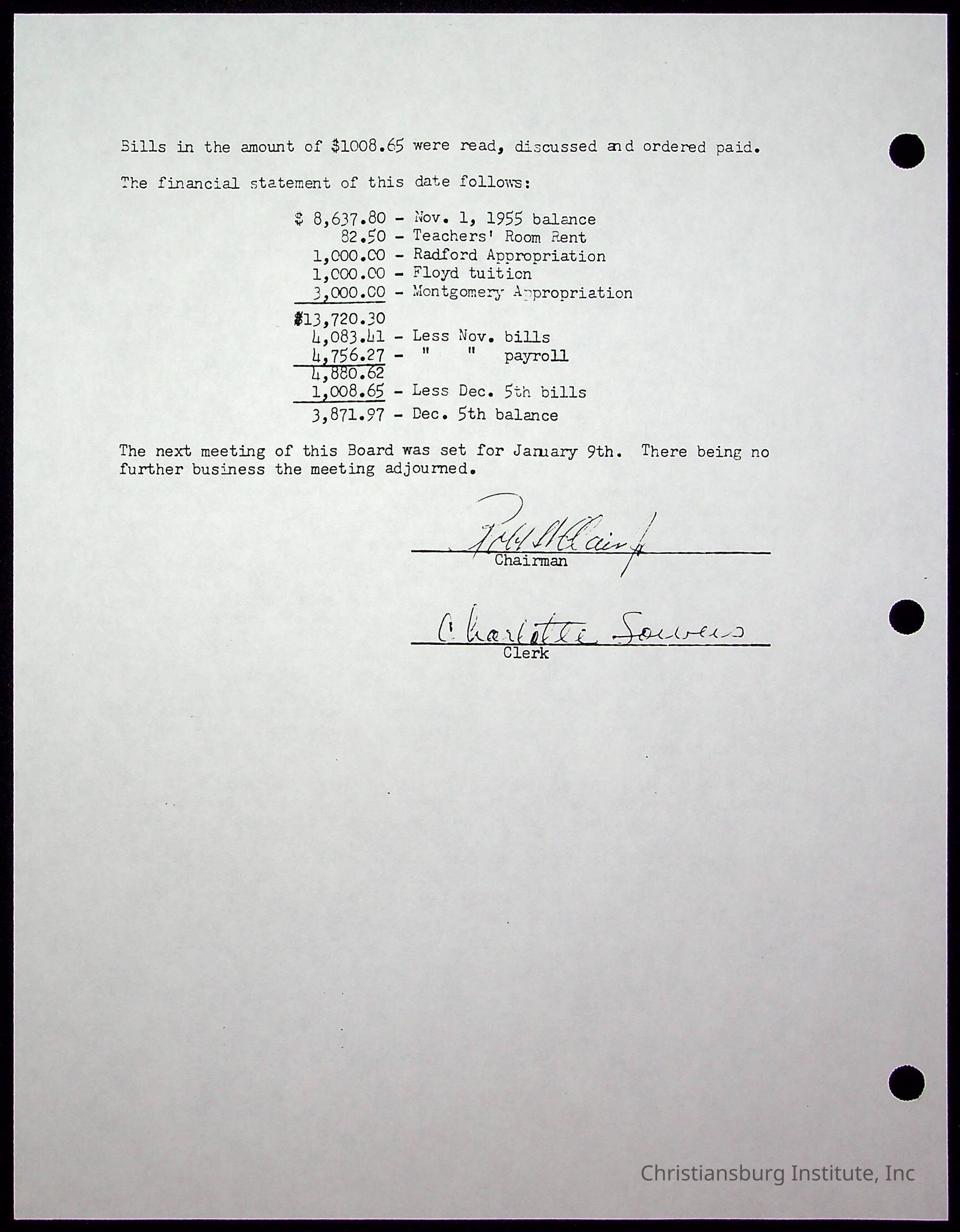 Christiansburg Industrial Institute Board Minutes, July 1947-August 1963 (photocopy)Description