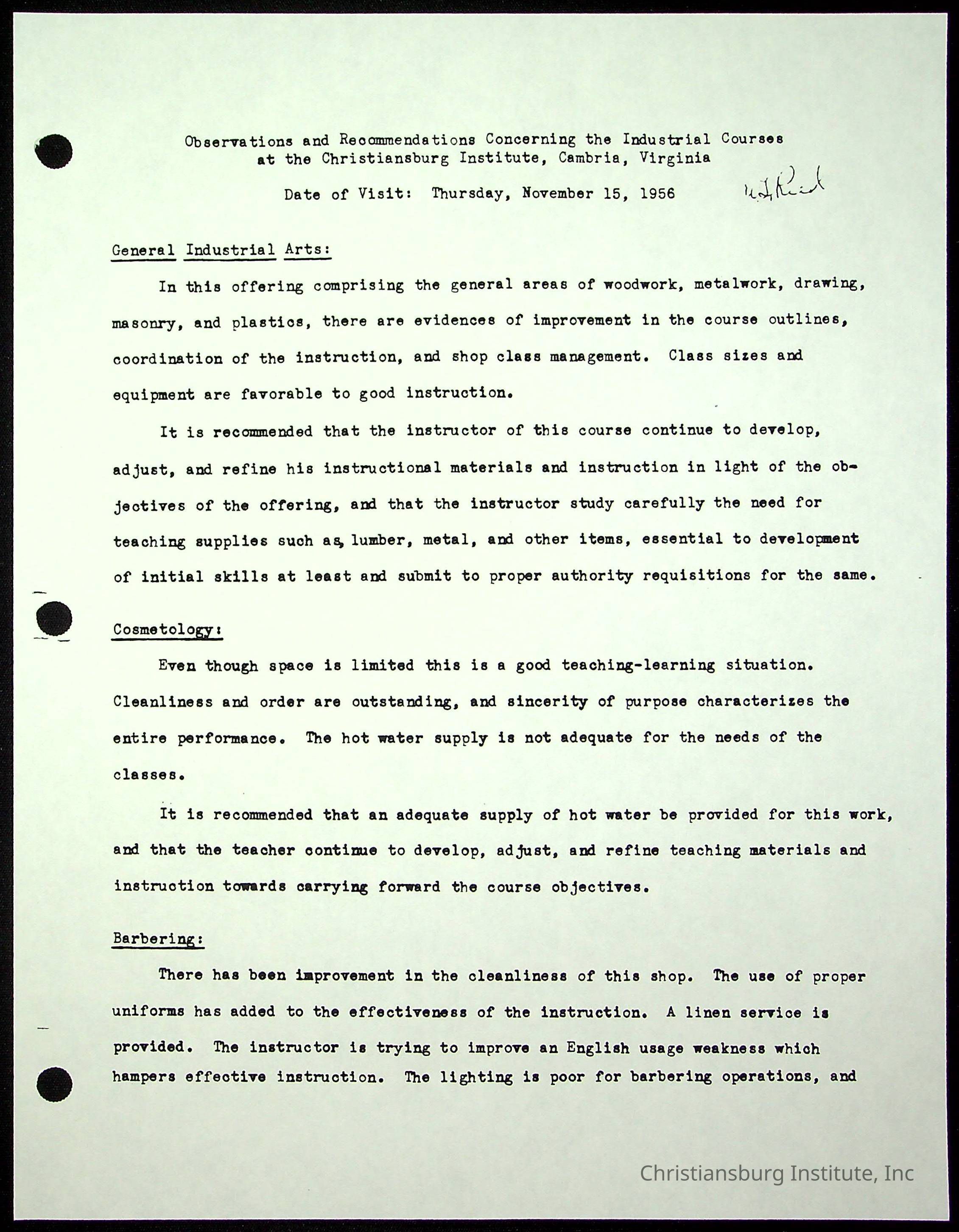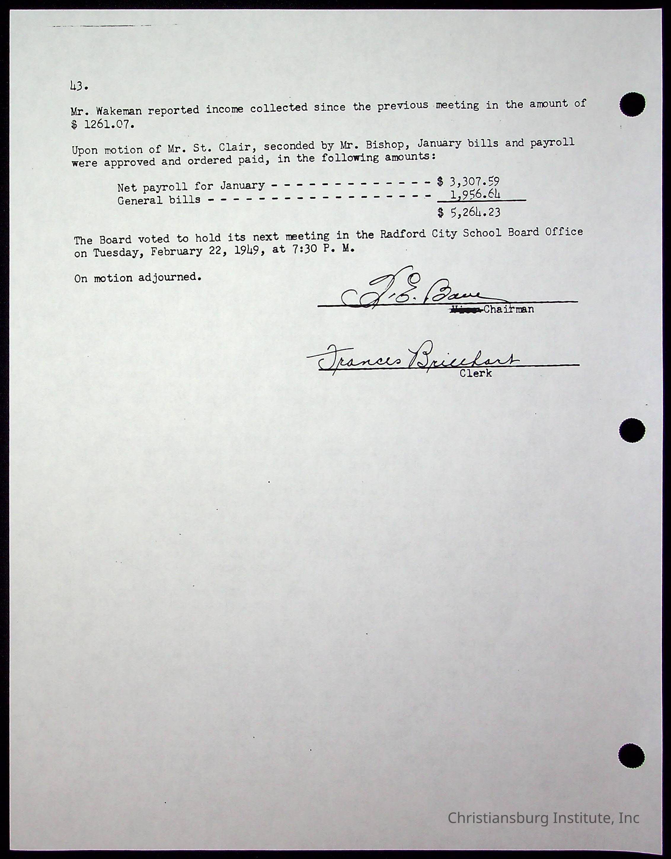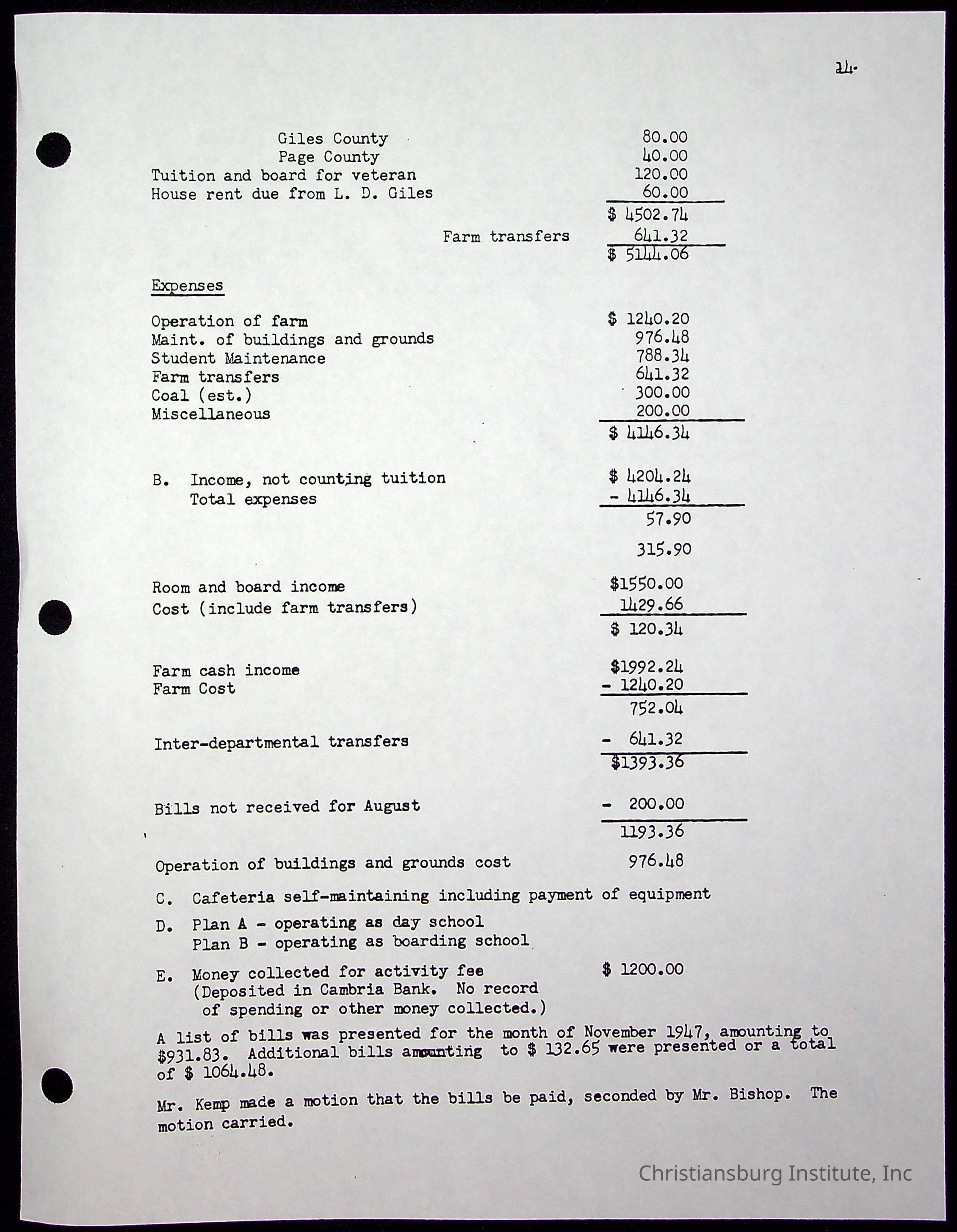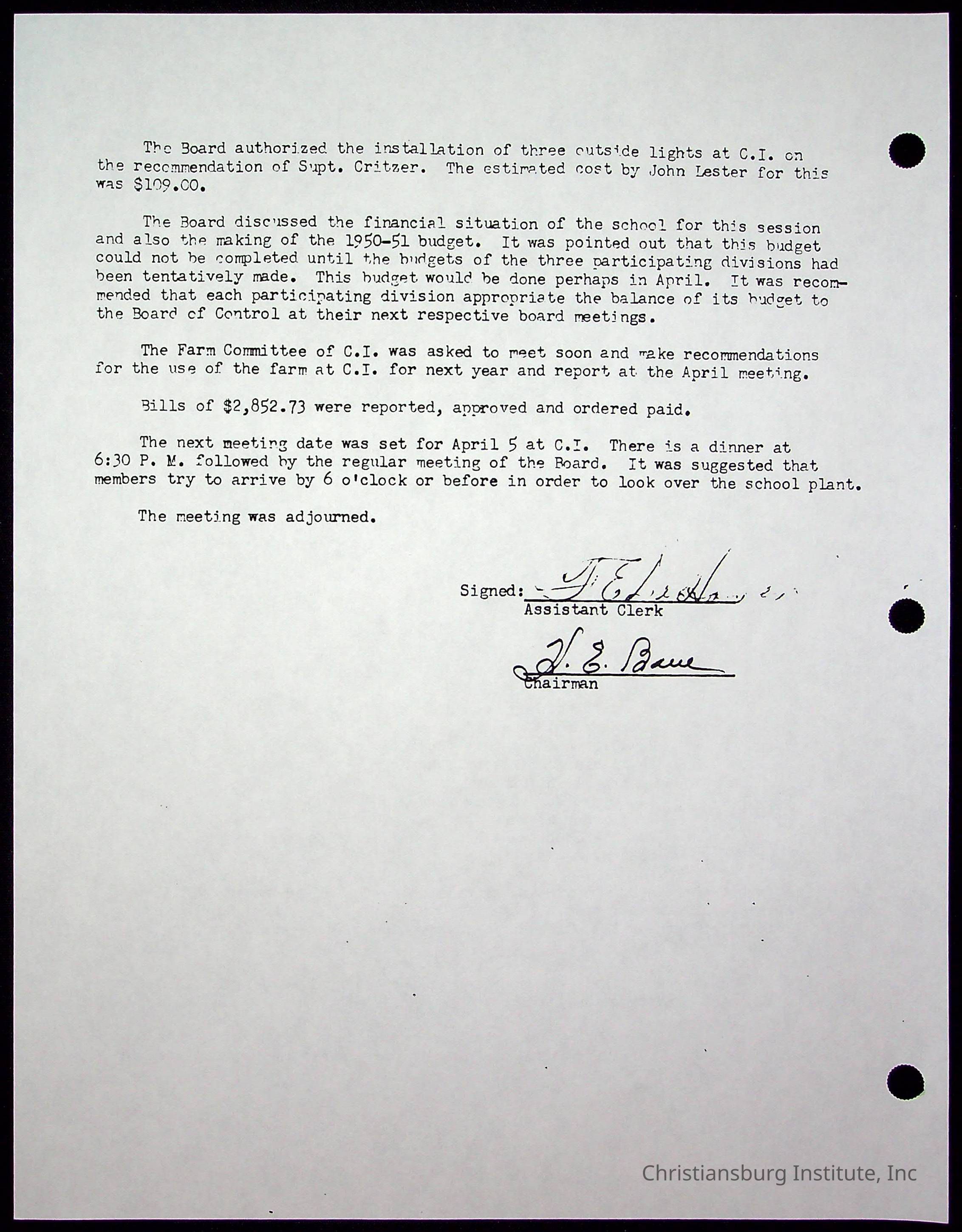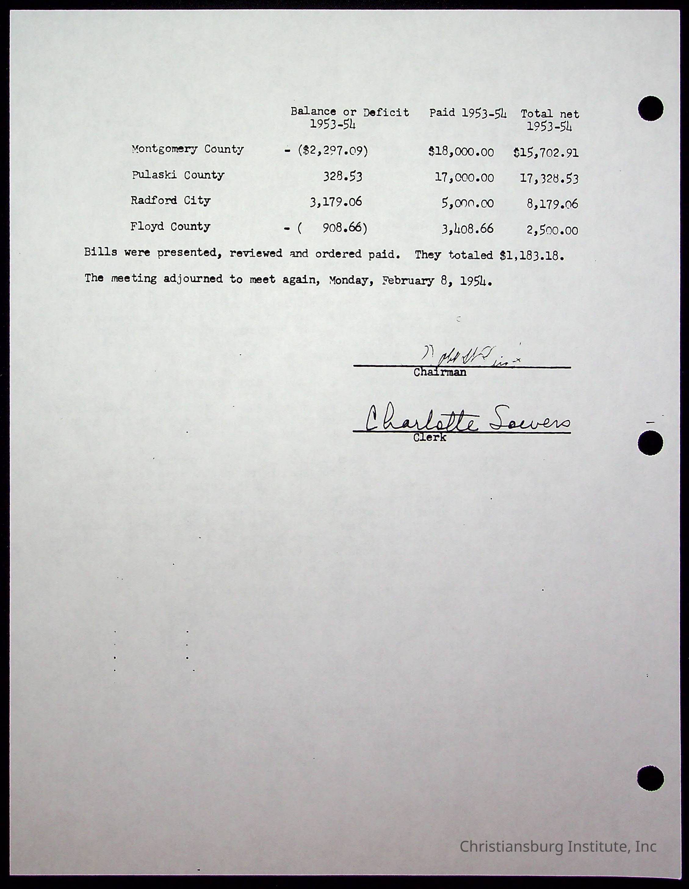 Christiansburg Industrial Institute Board Minutes, July 1947-August 1963 (photocopy)Description