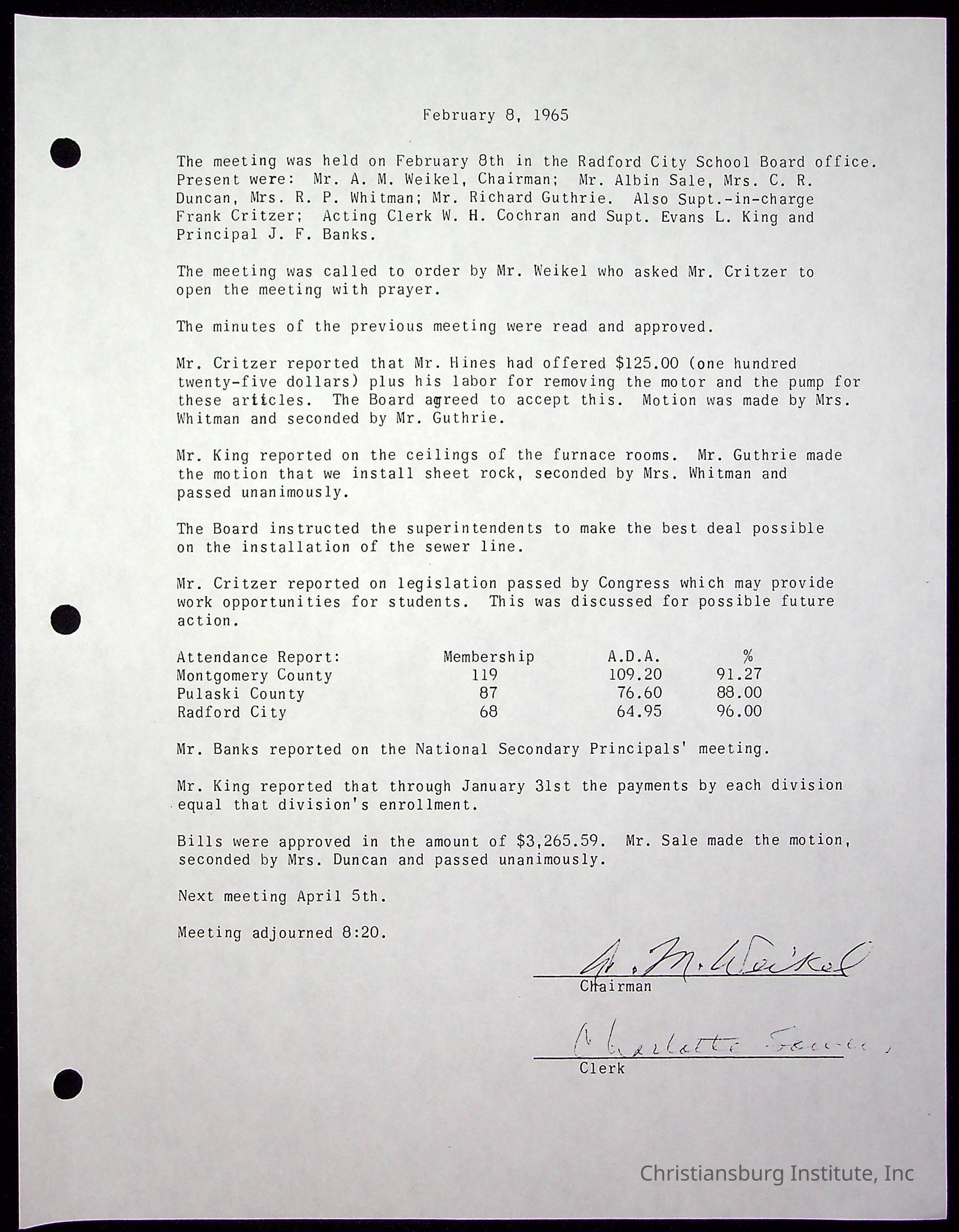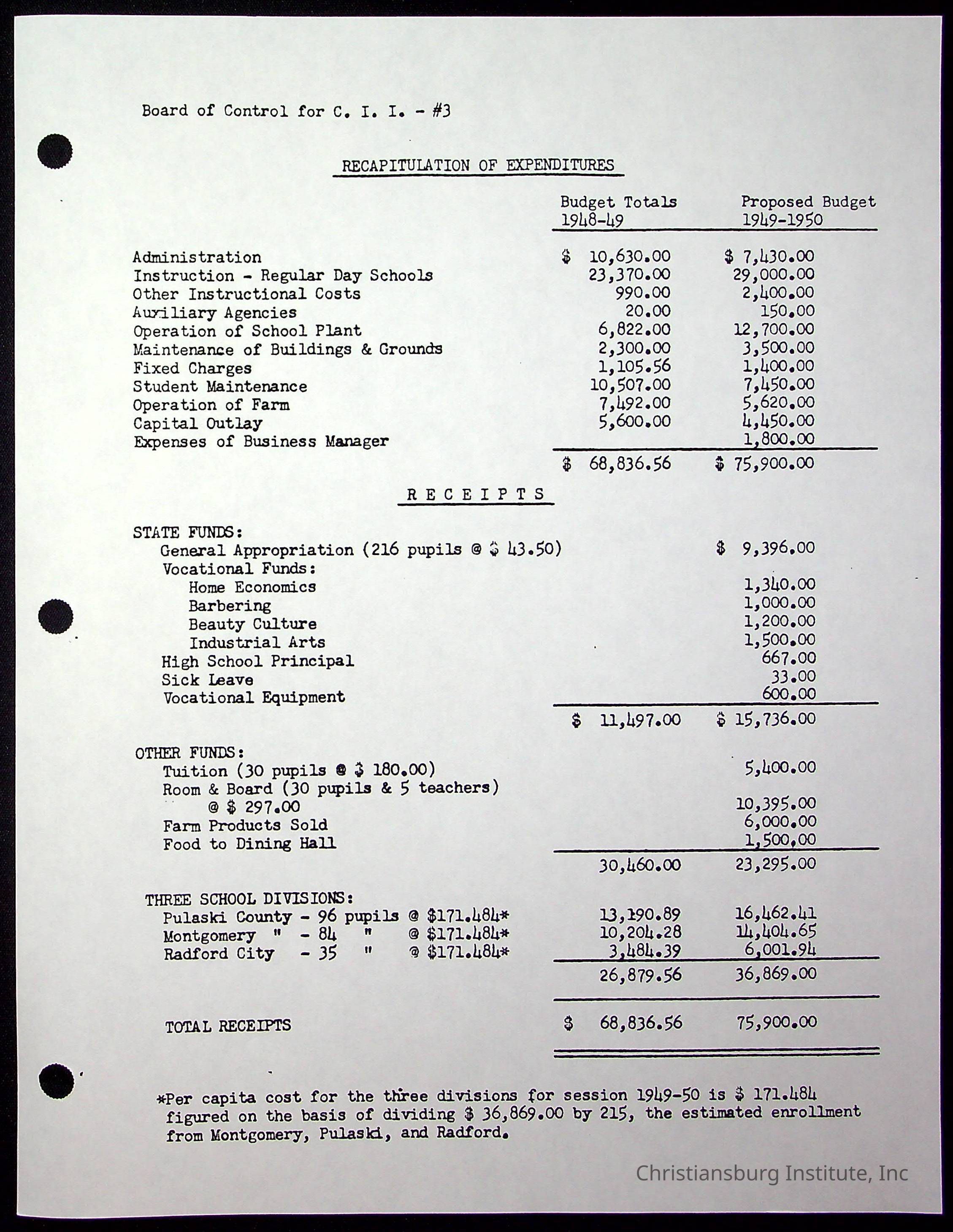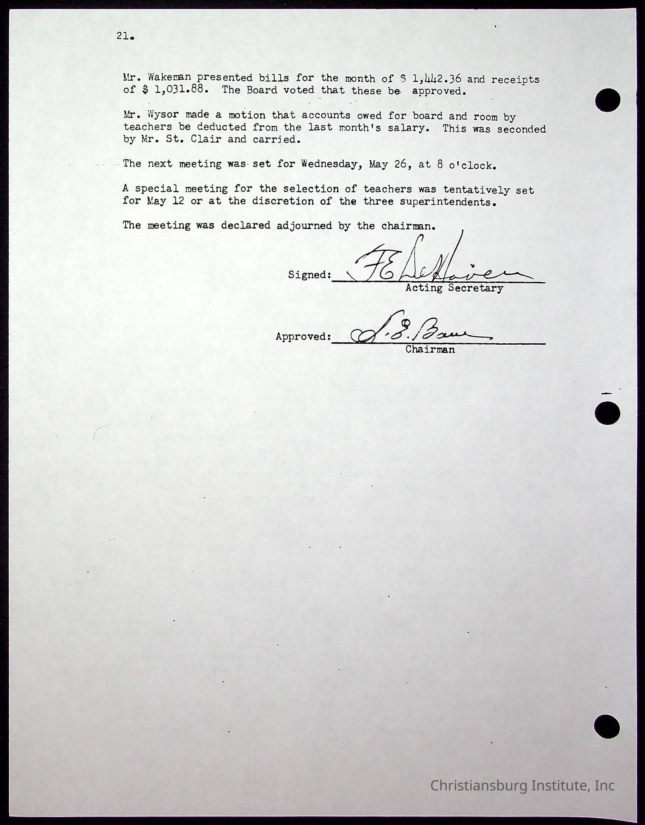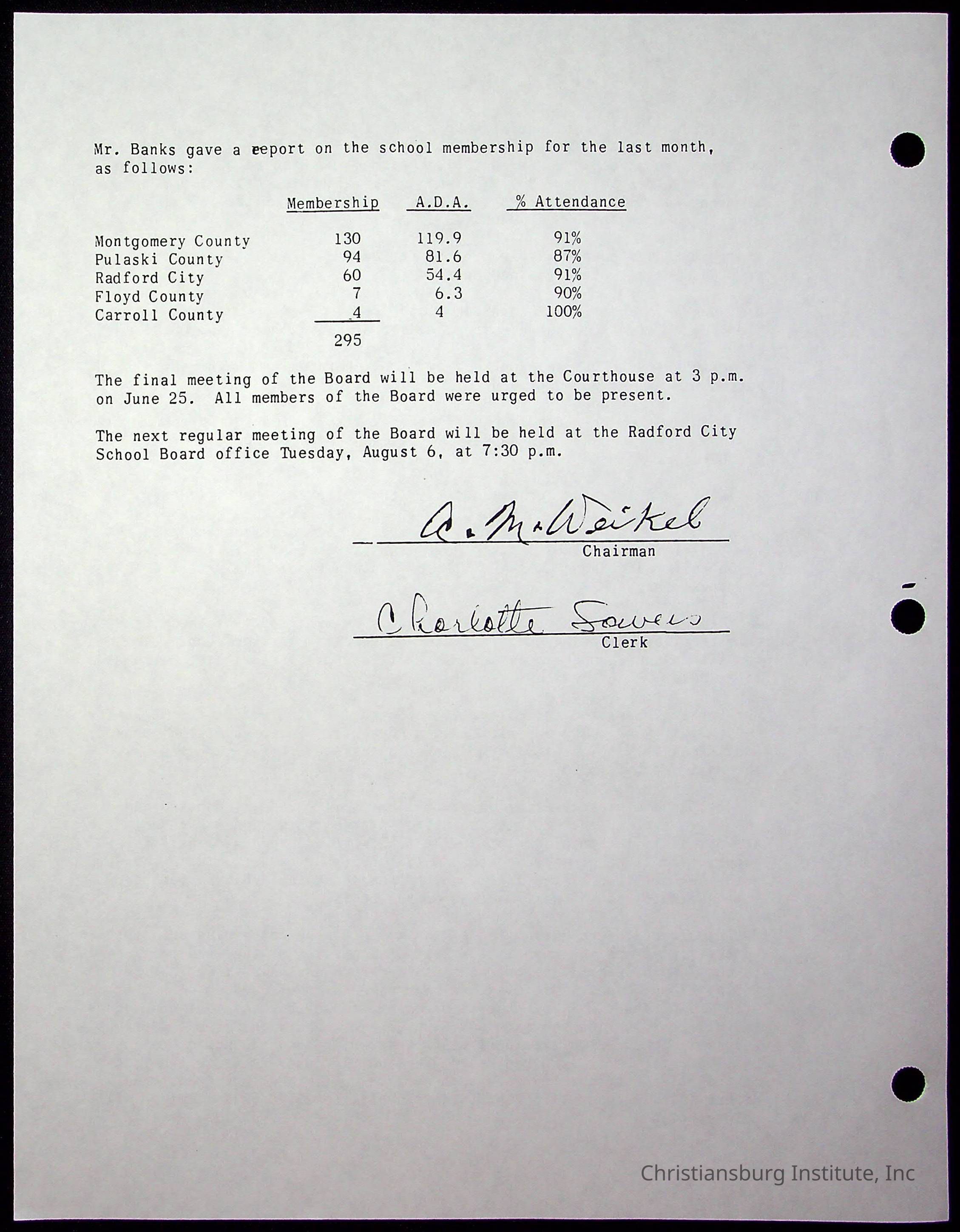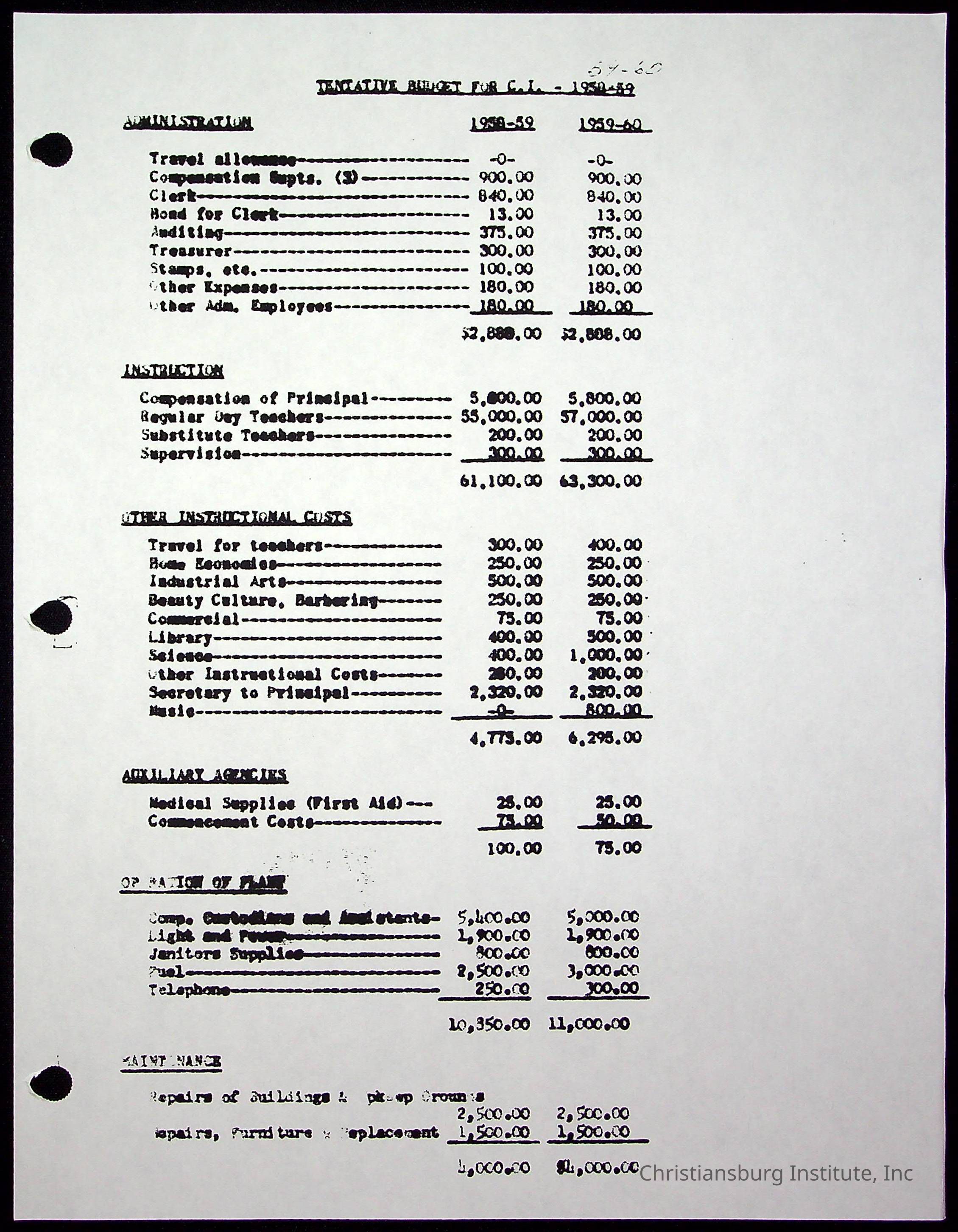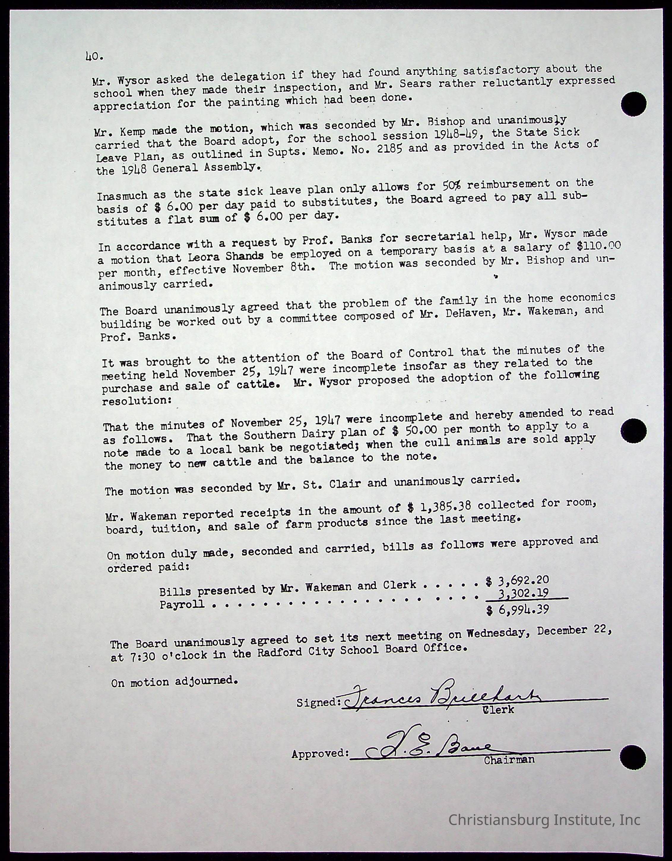 Christiansburg Industrial Institute Board Minutes, July 1947-August 1963 (photocopy)Description
