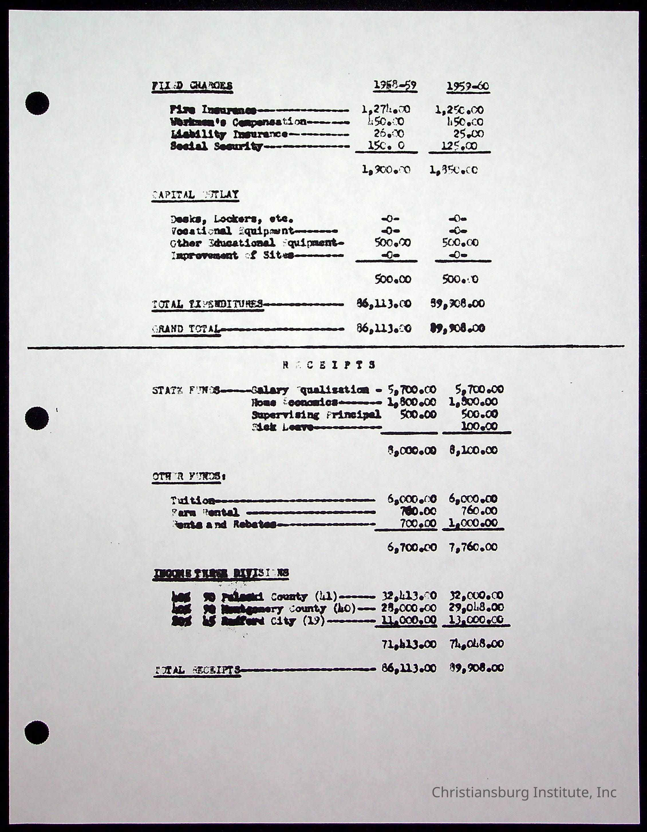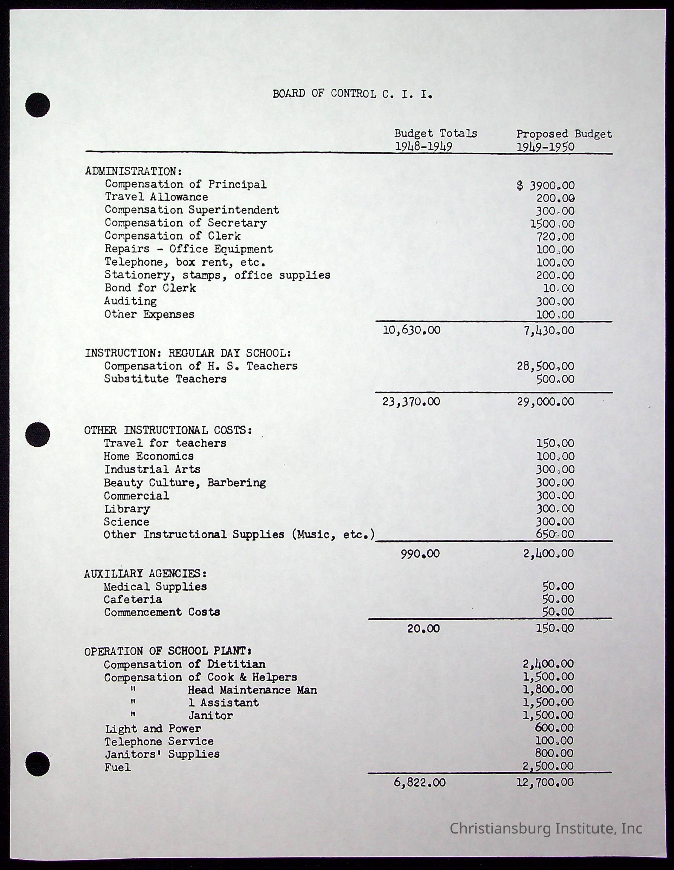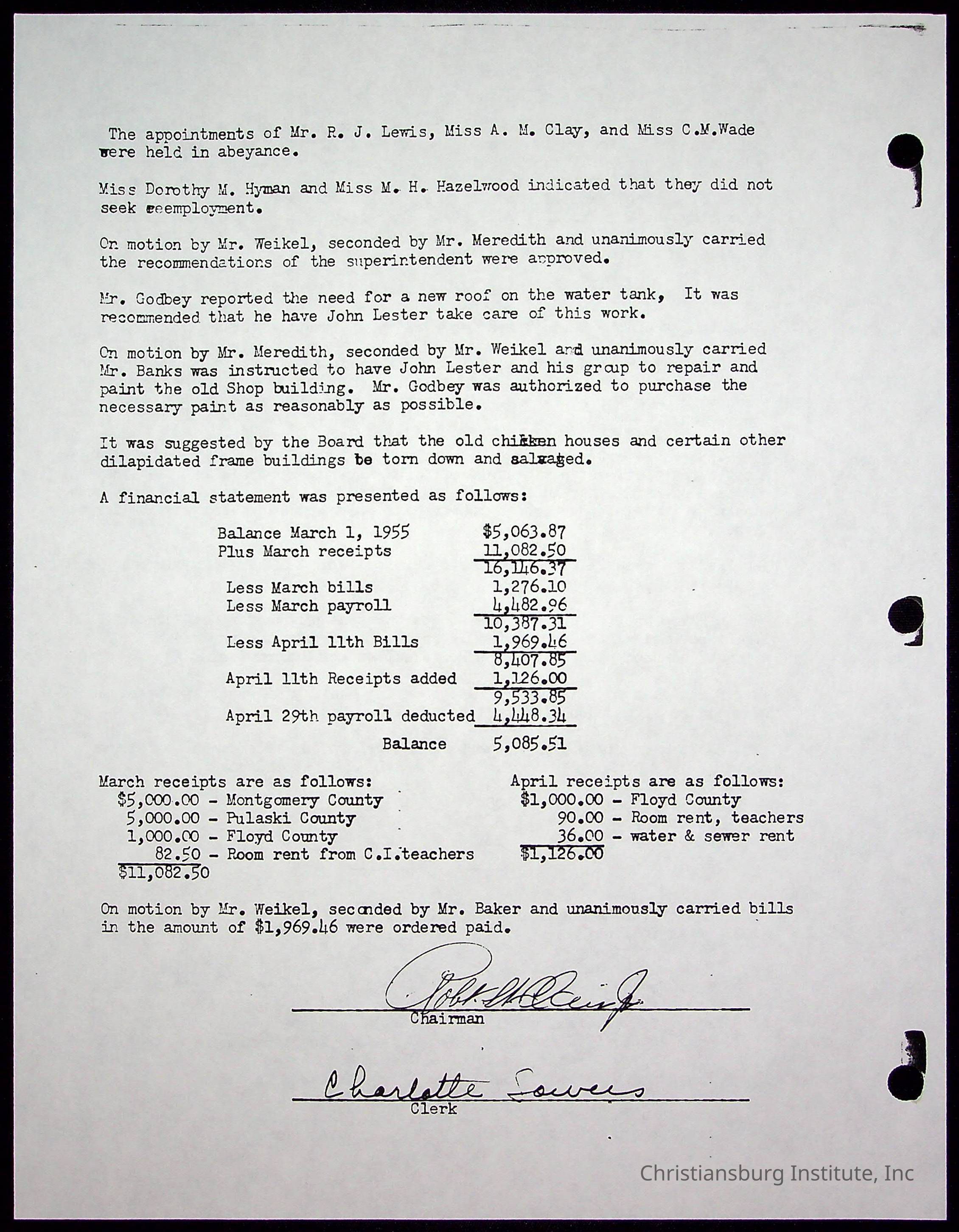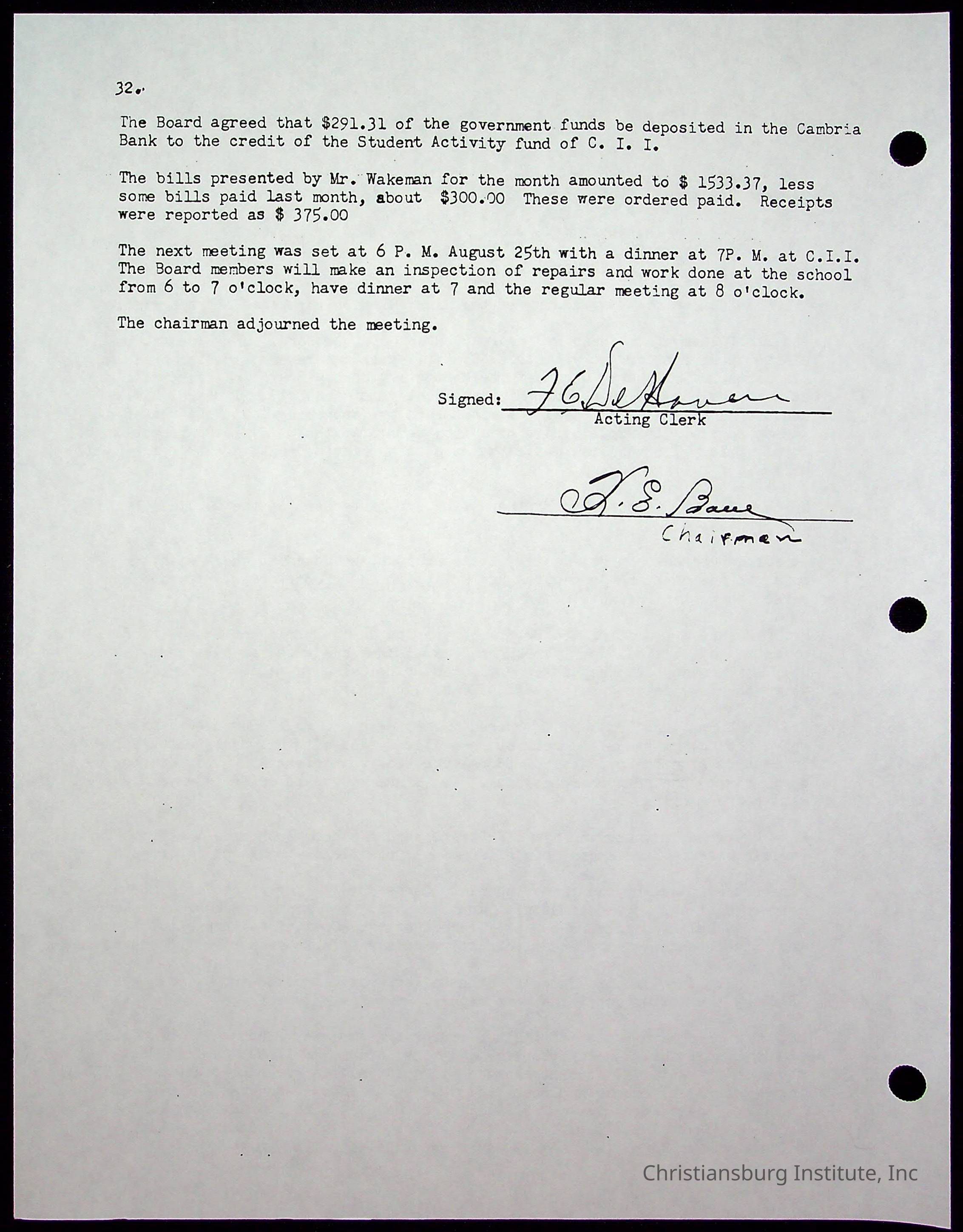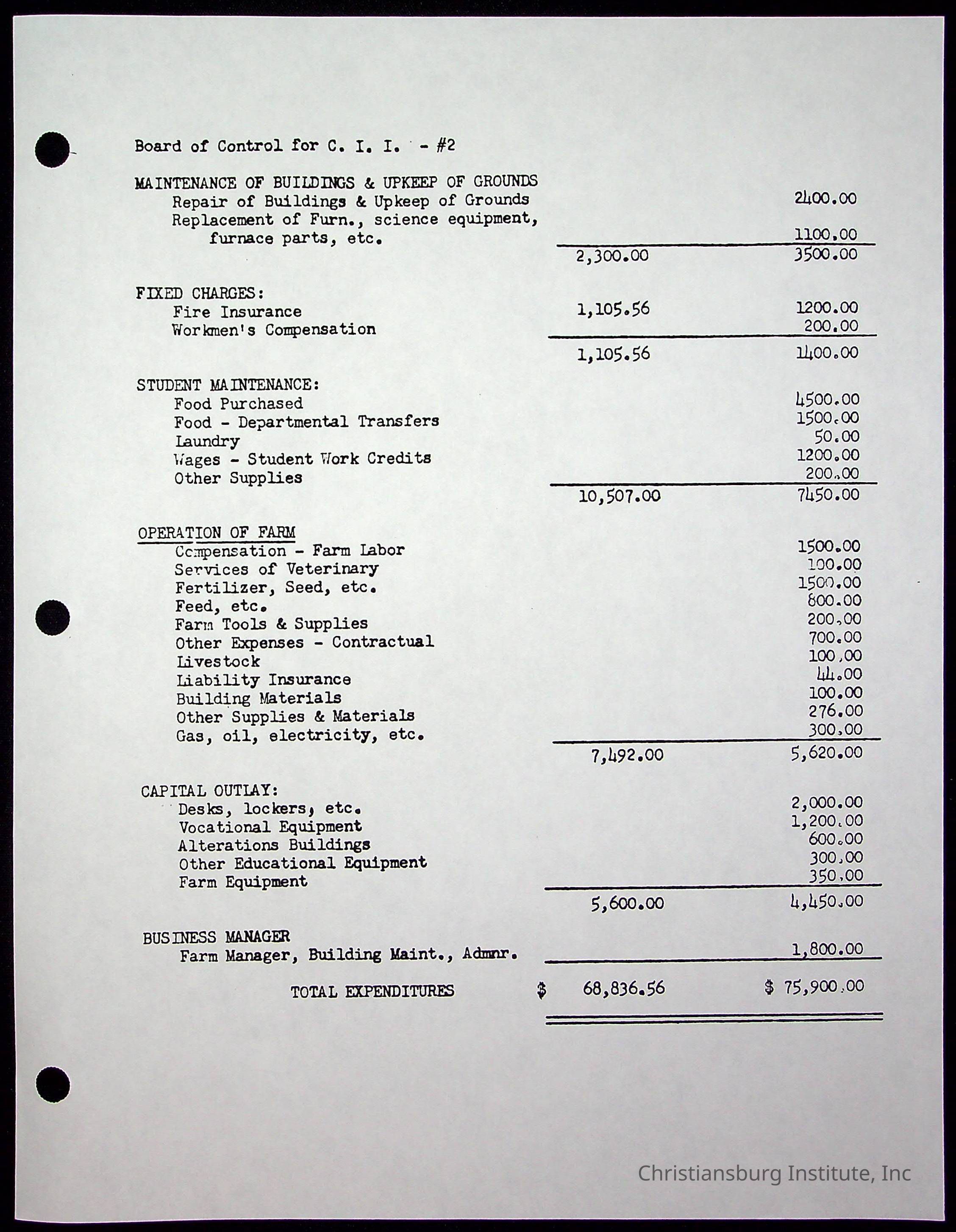 Christiansburg Industrial Institute Board Minutes, July 1947-August 1963 (photocopy)Description
