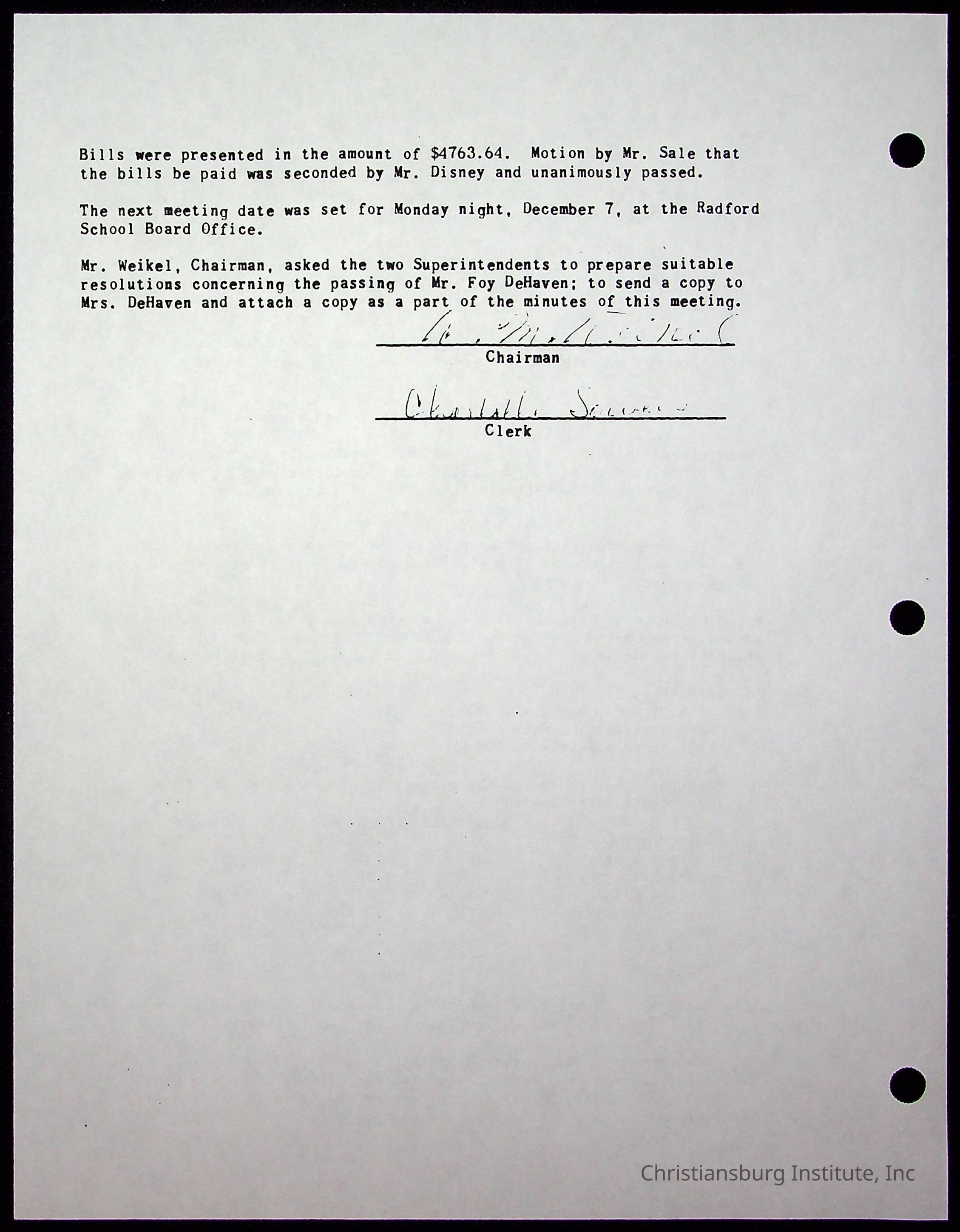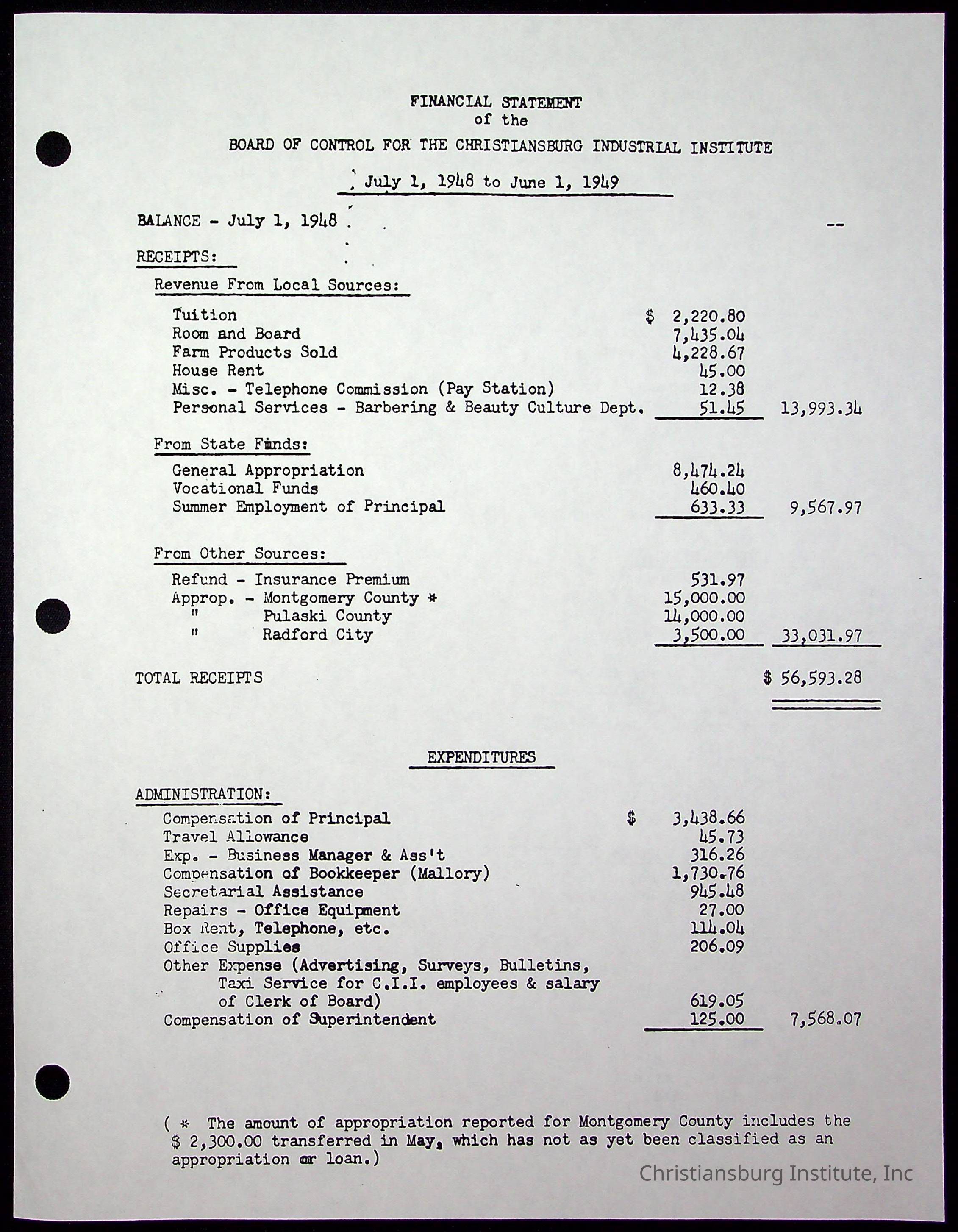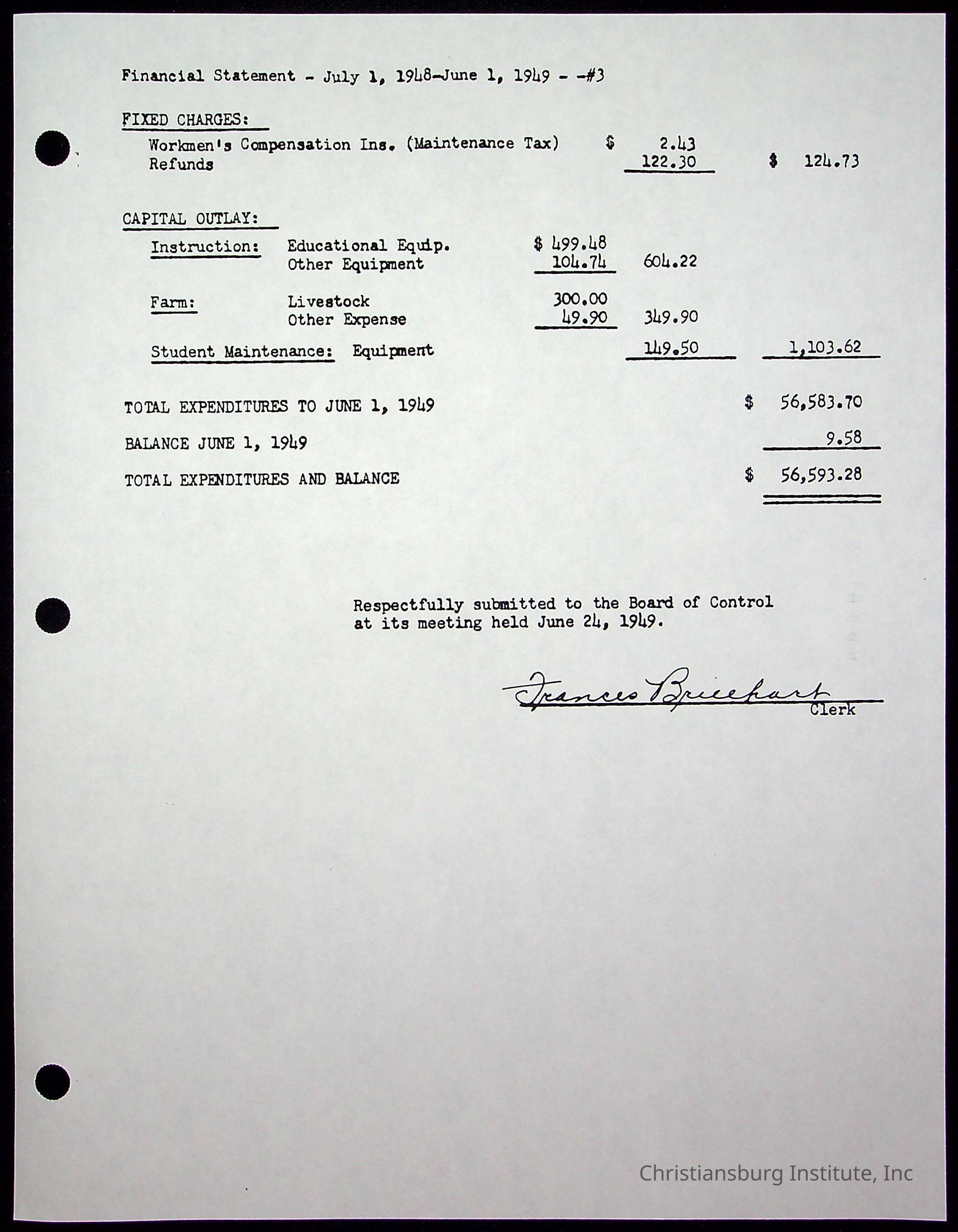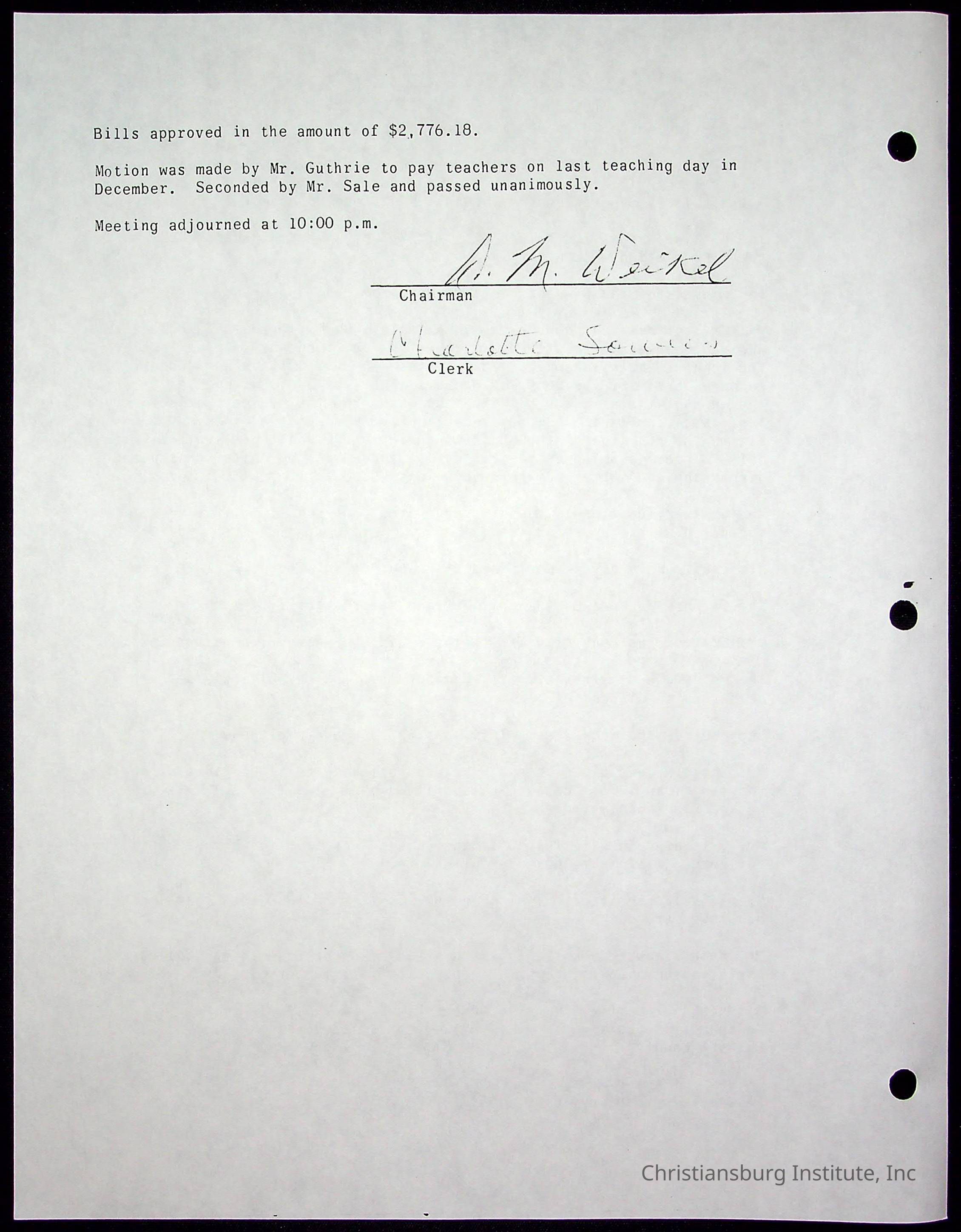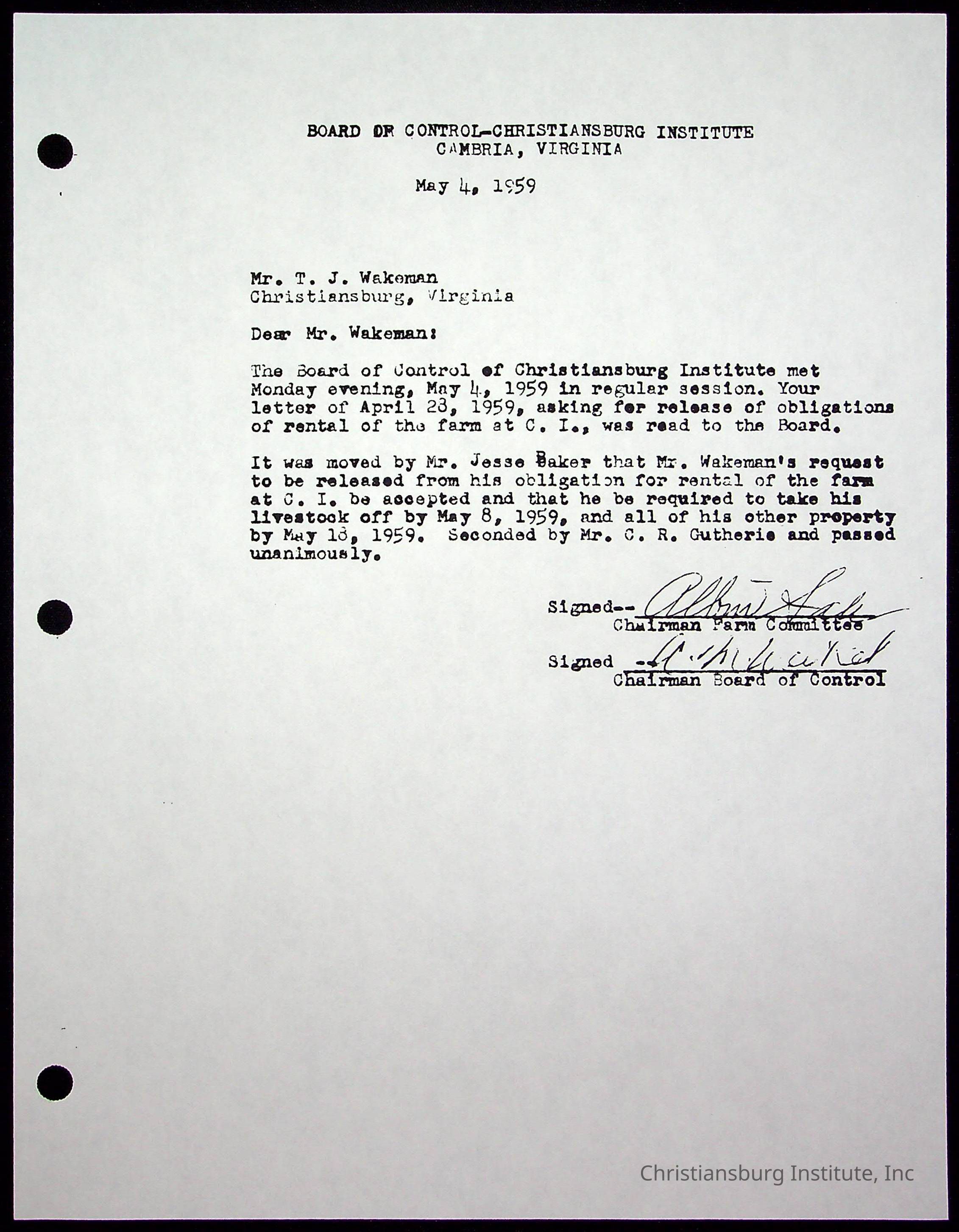 Christiansburg Industrial Institute Board Minutes, July 1947-August 1963 (photocopy)Description