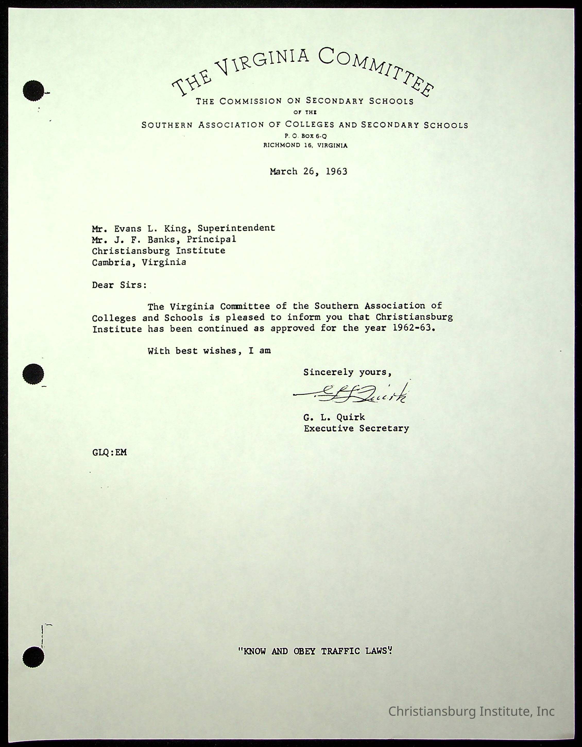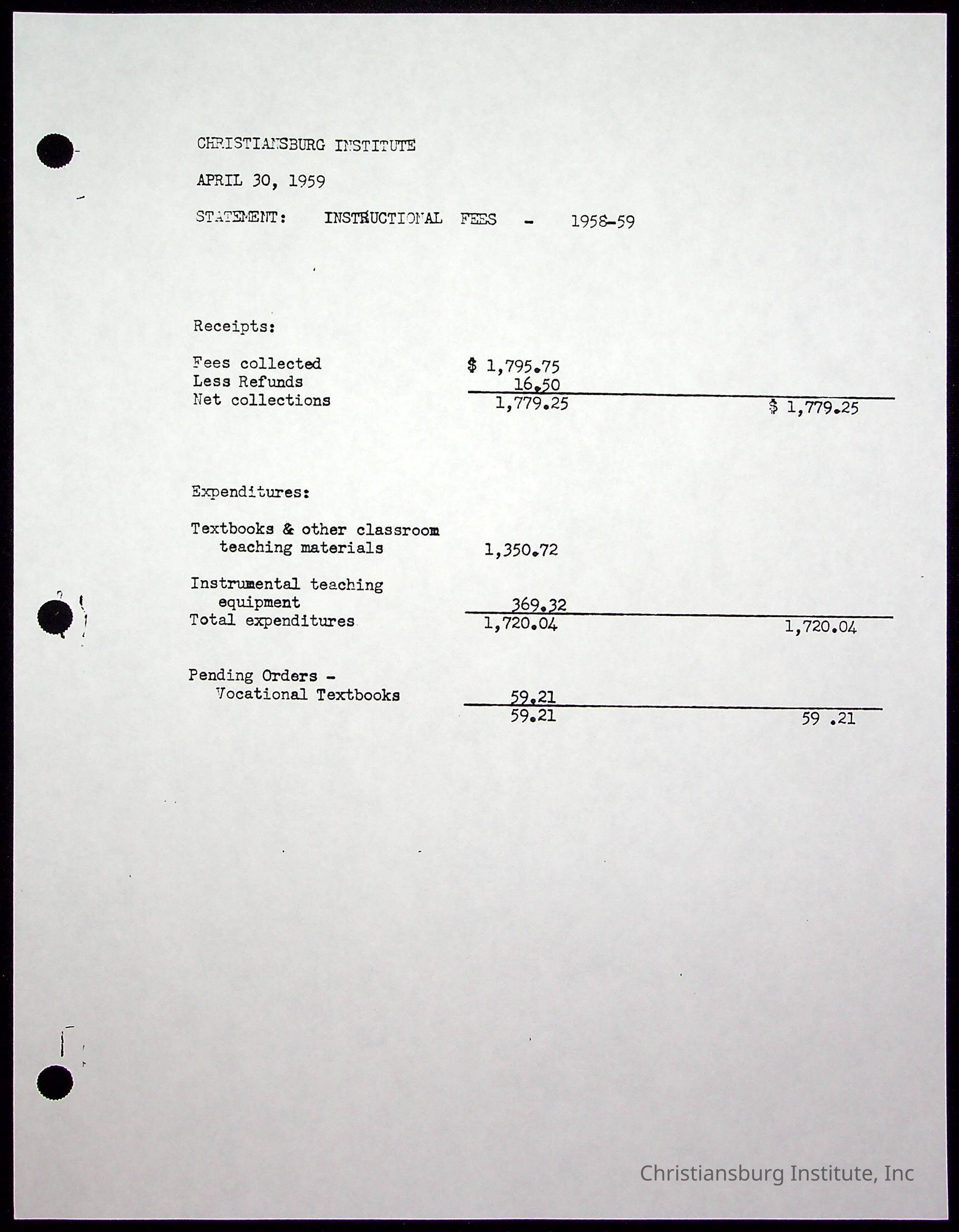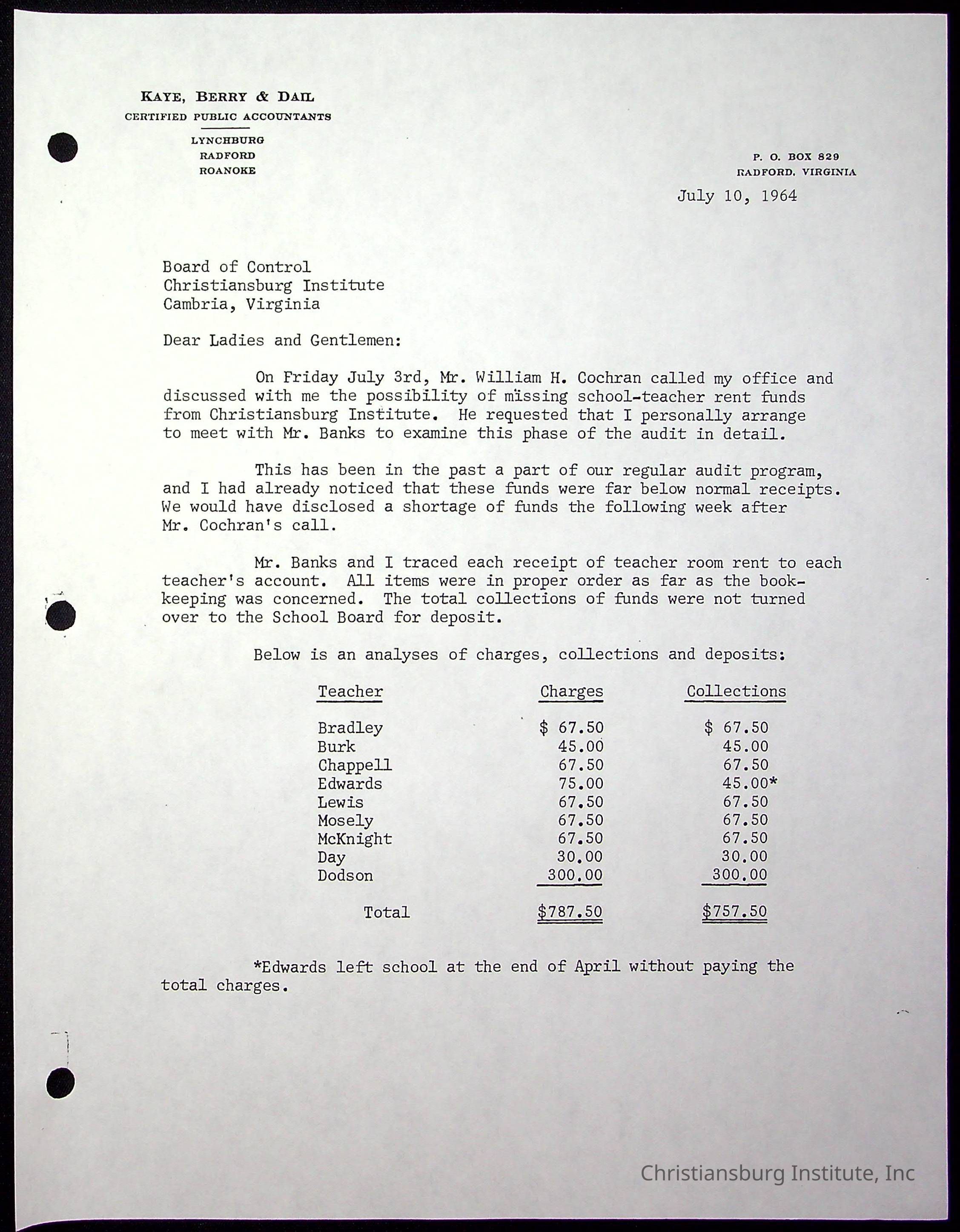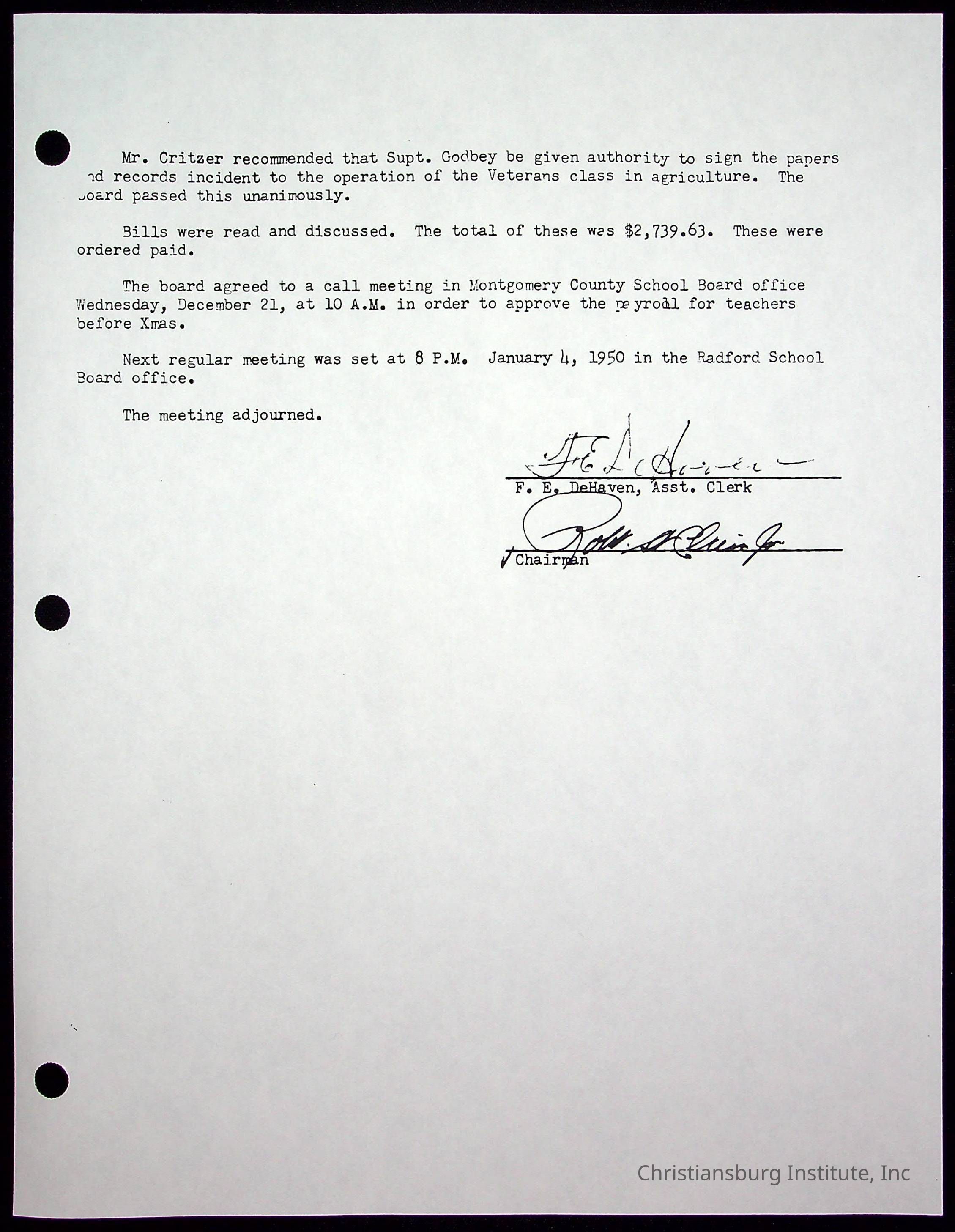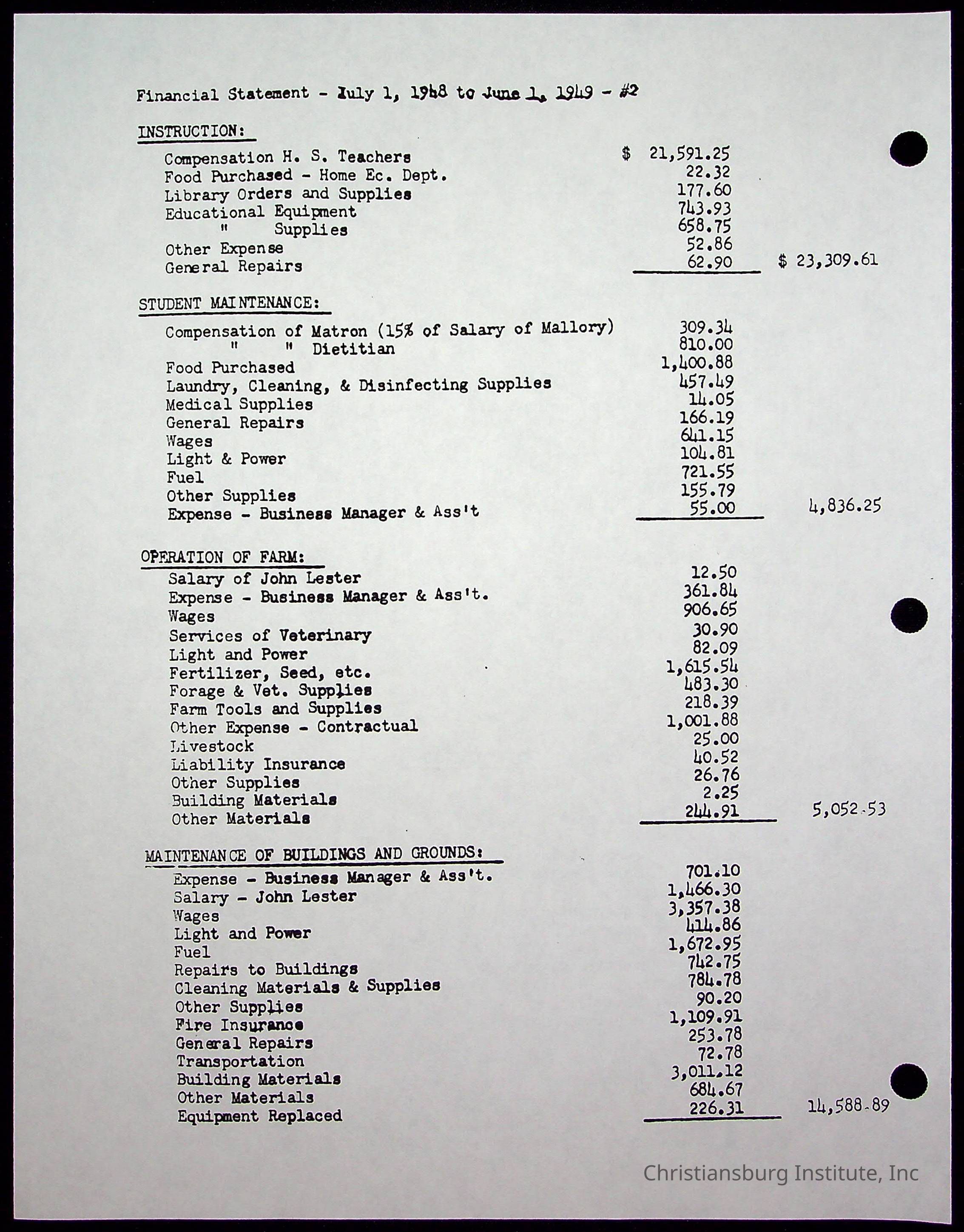 Christiansburg Industrial Institute Board Minutes, July 1947-August 1963 (photocopy)Description