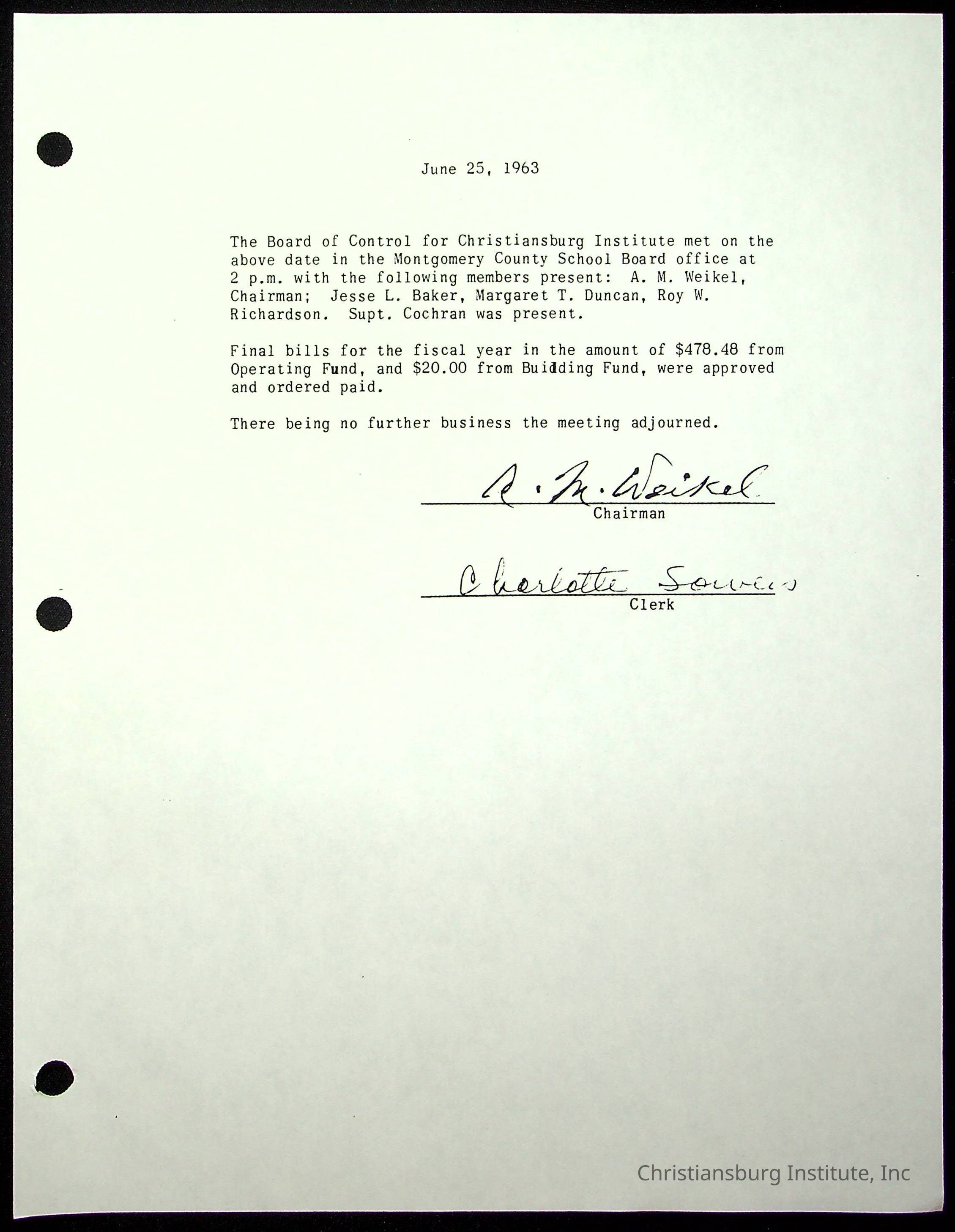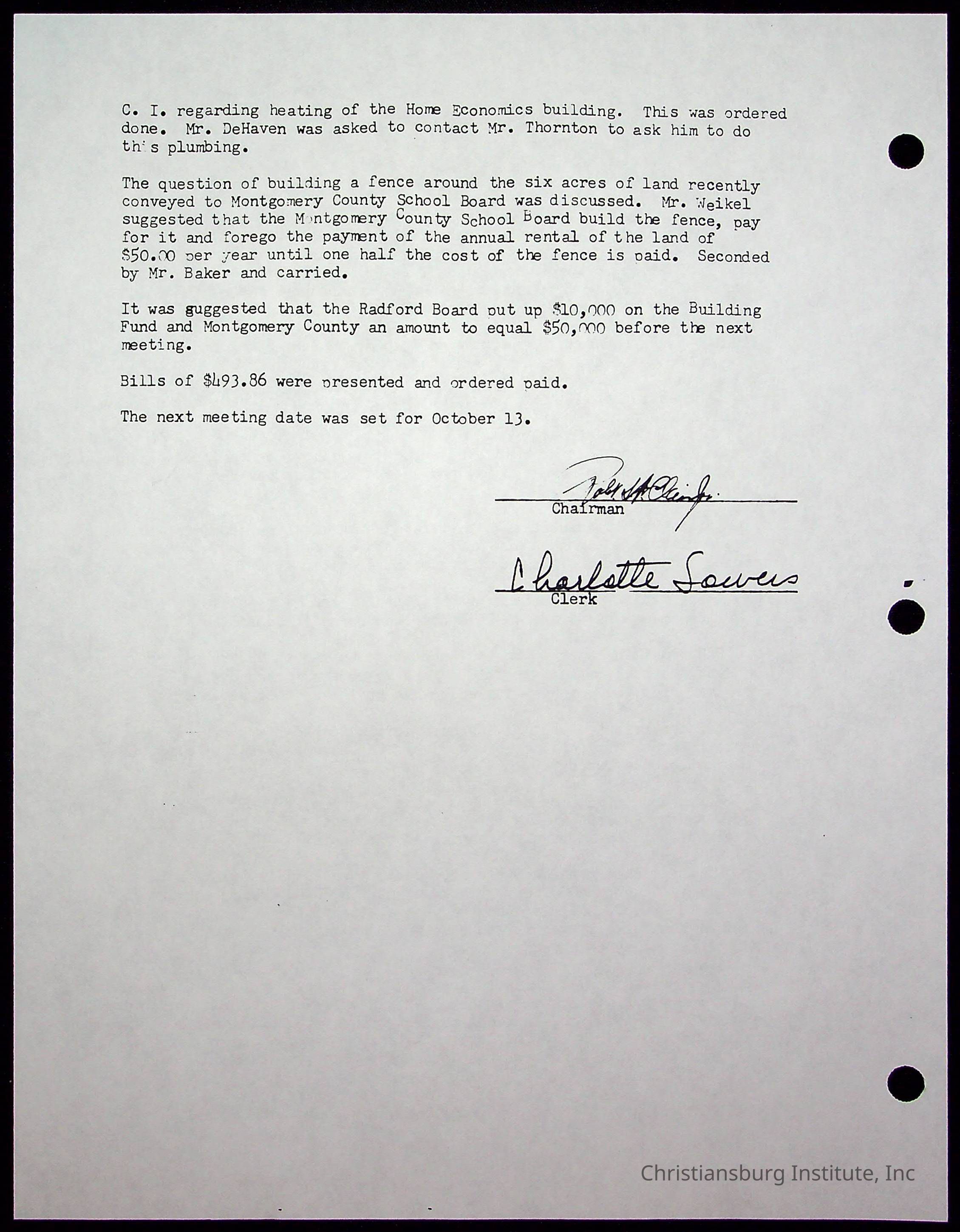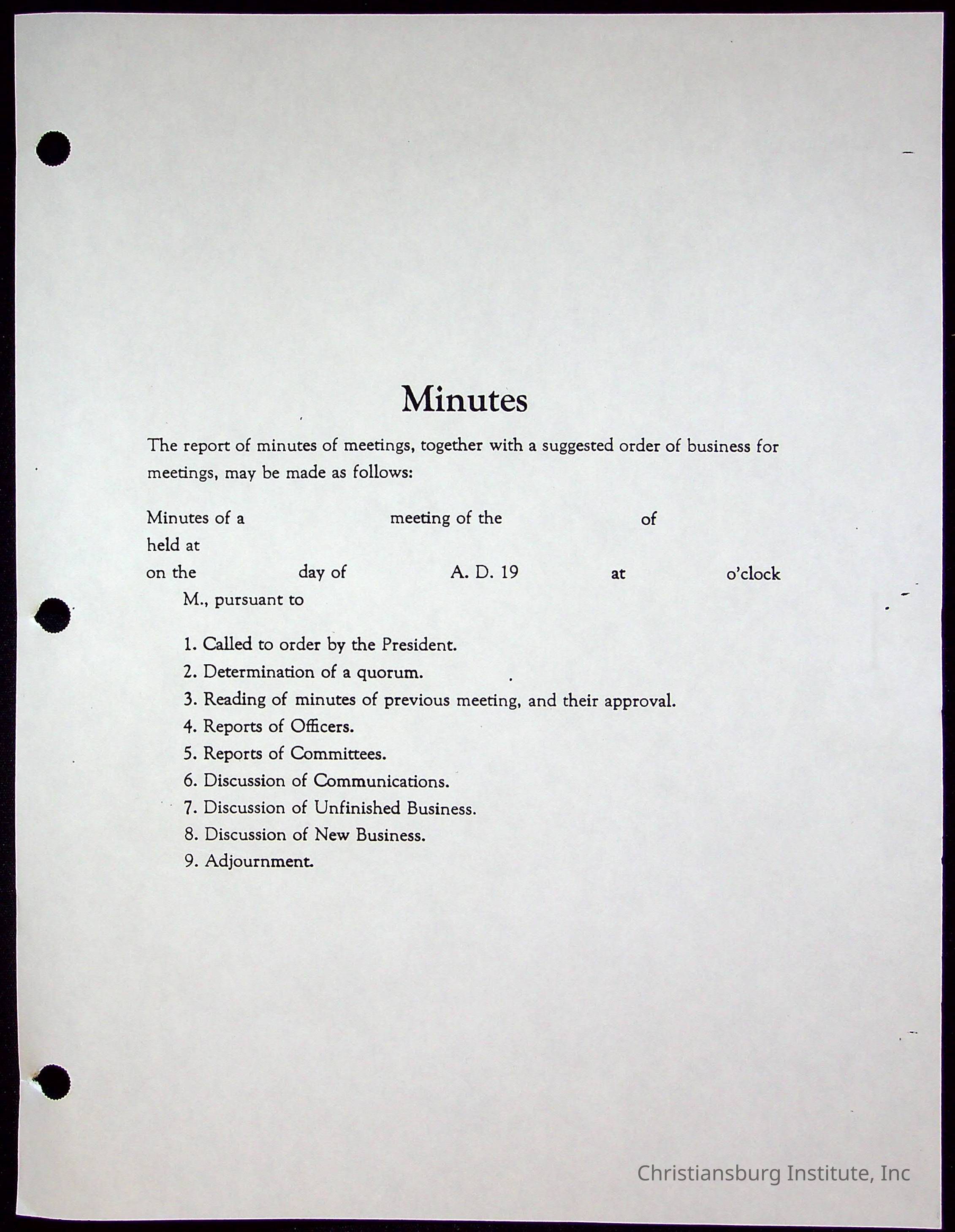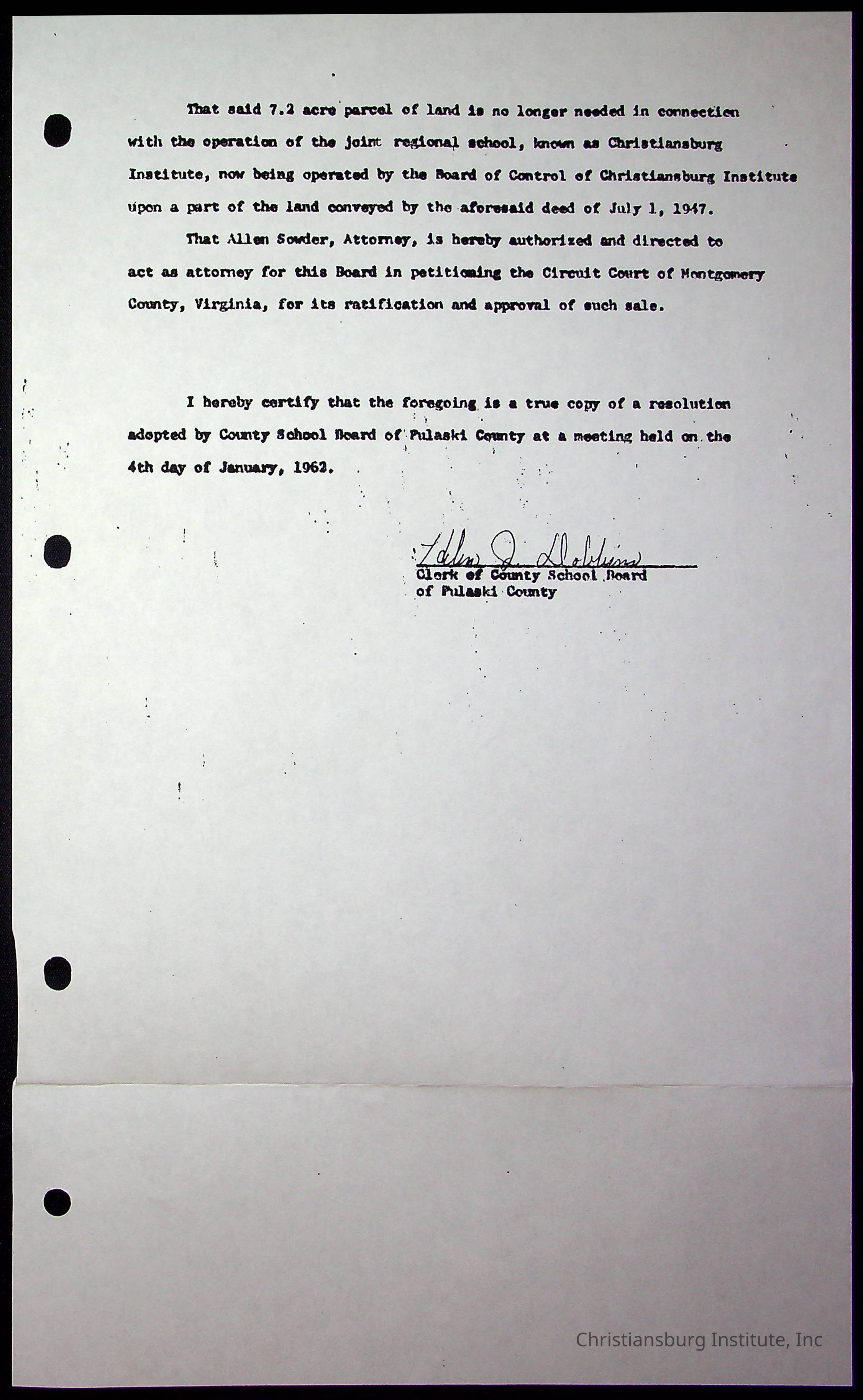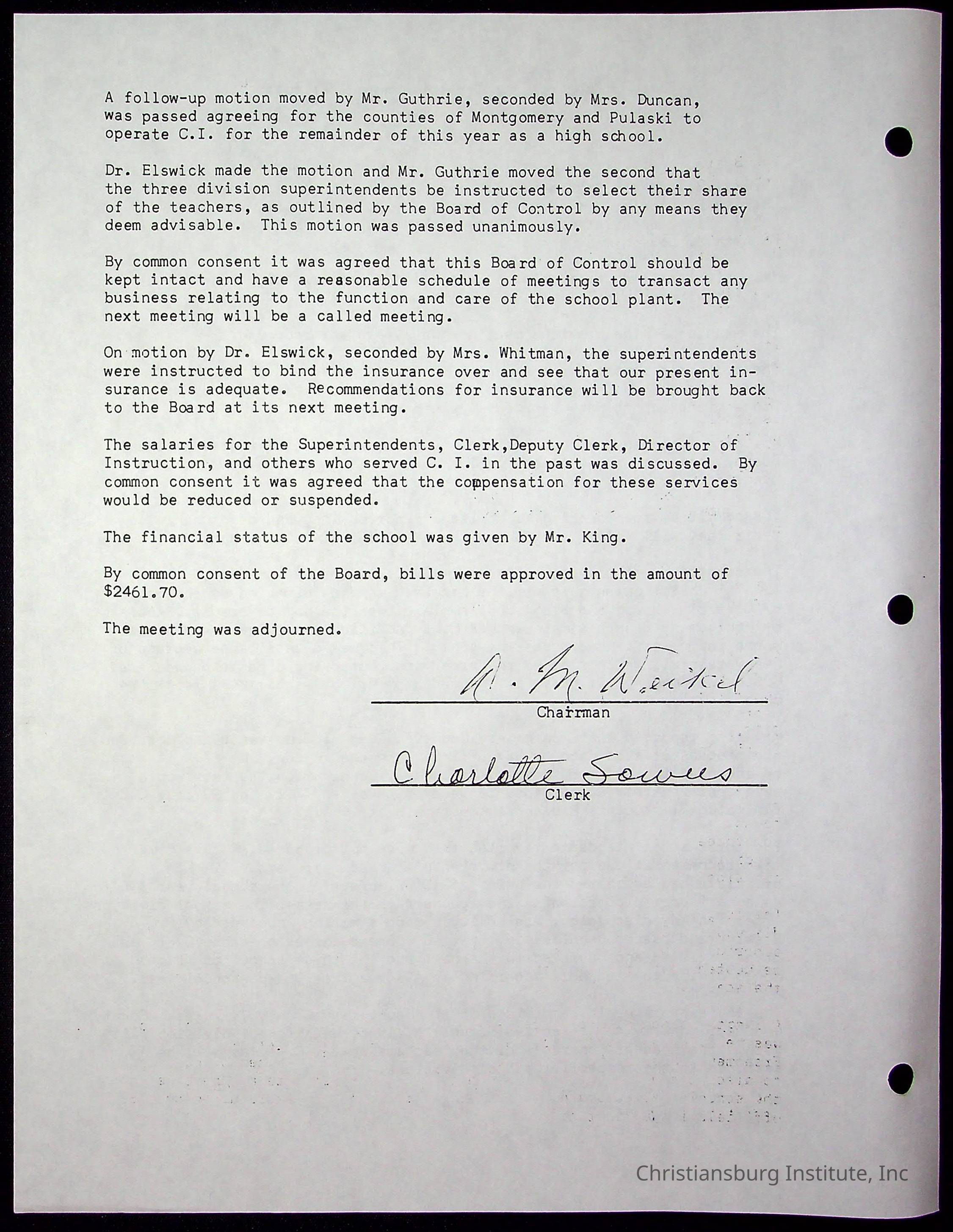 A binder of a photocopy version of the Christiansburg Industrial Institute board minutes from July 1947 through August 1963.Creator