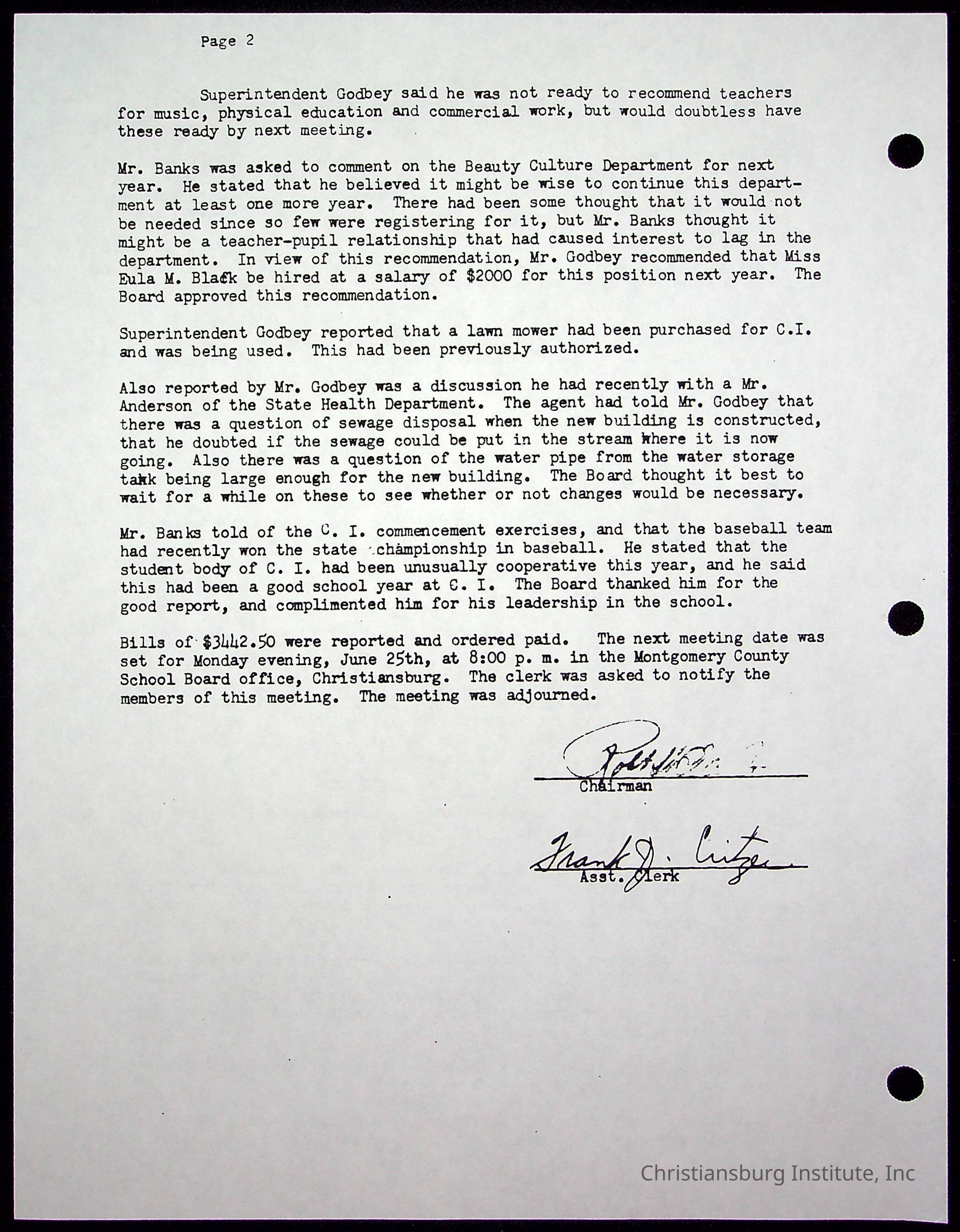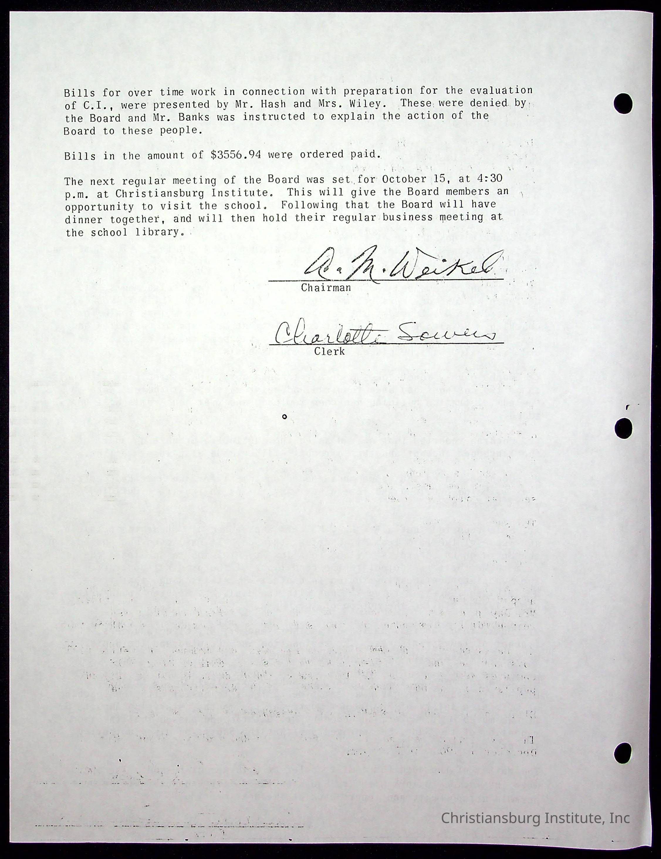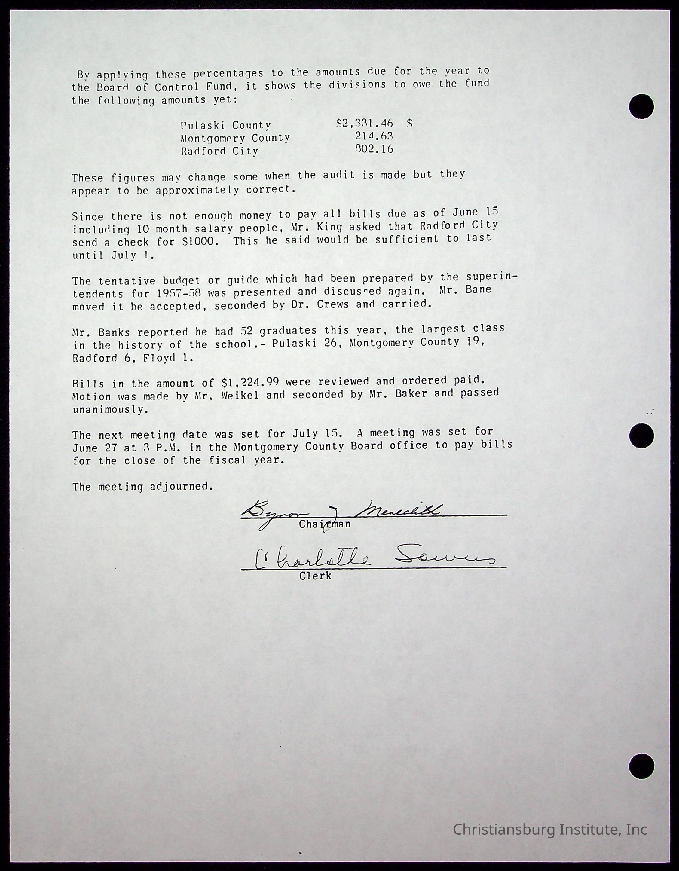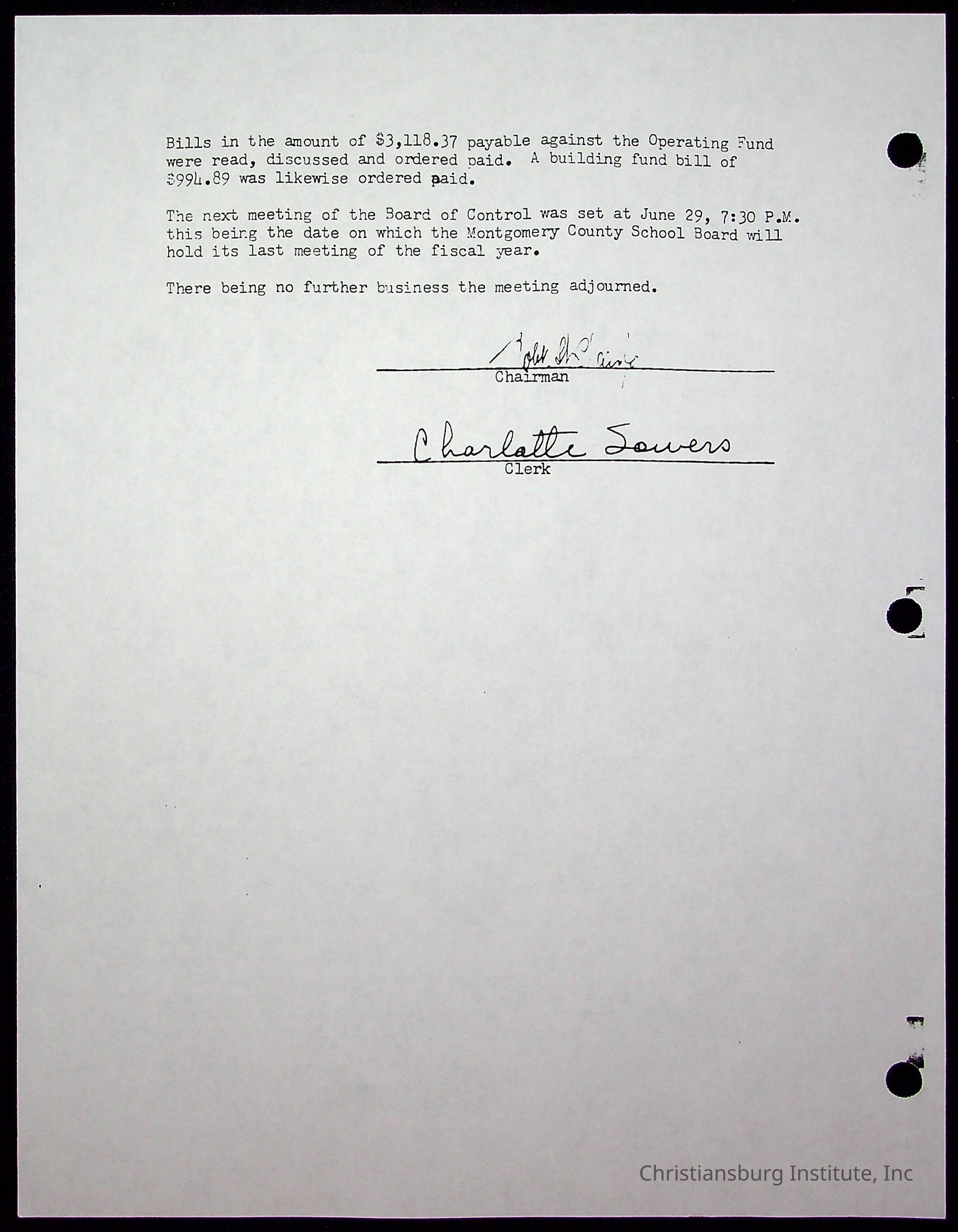 A binder of a photocopy version of the Christiansburg Industrial Institute board minutes from July 1947 through August 1963.Creator