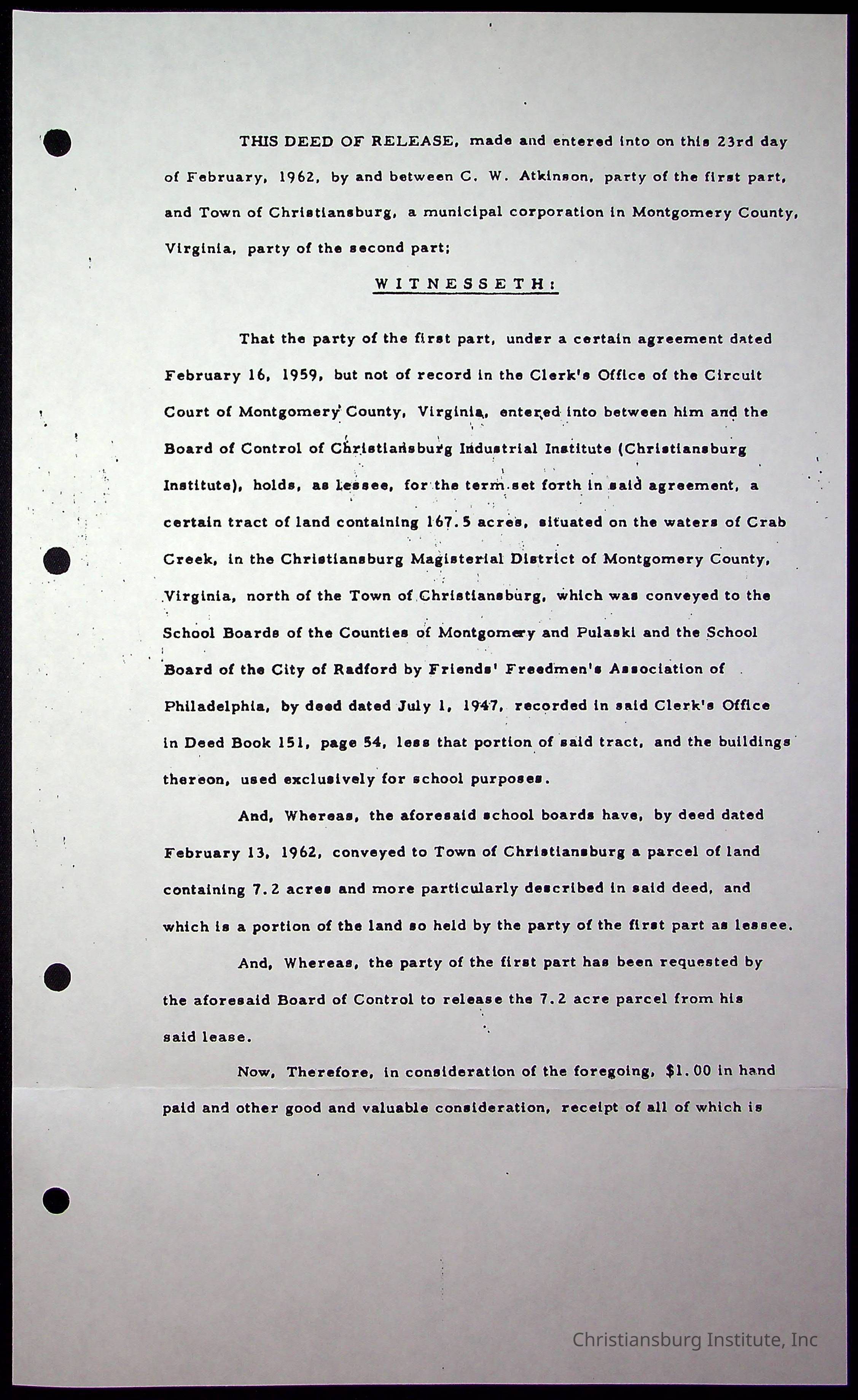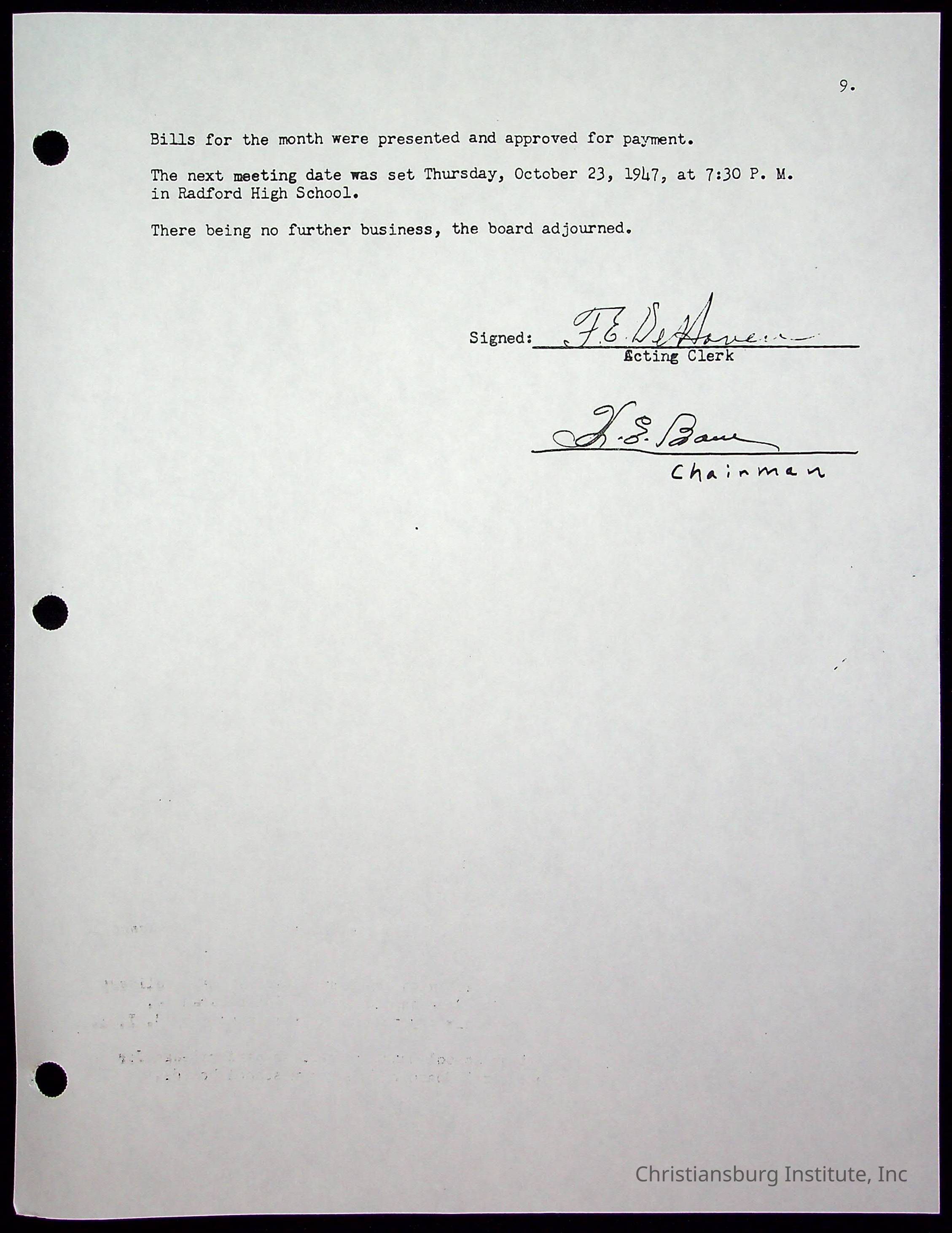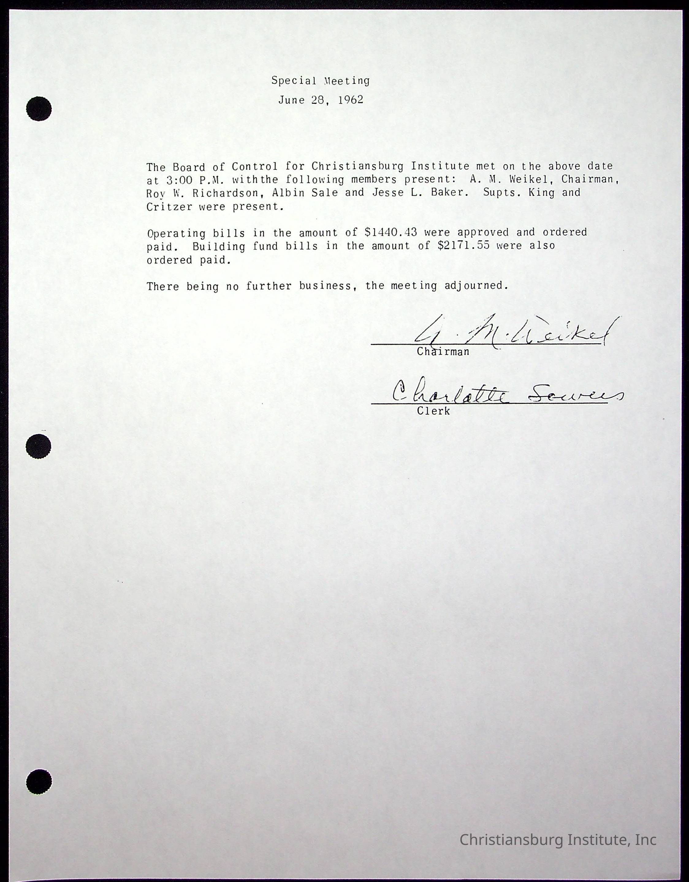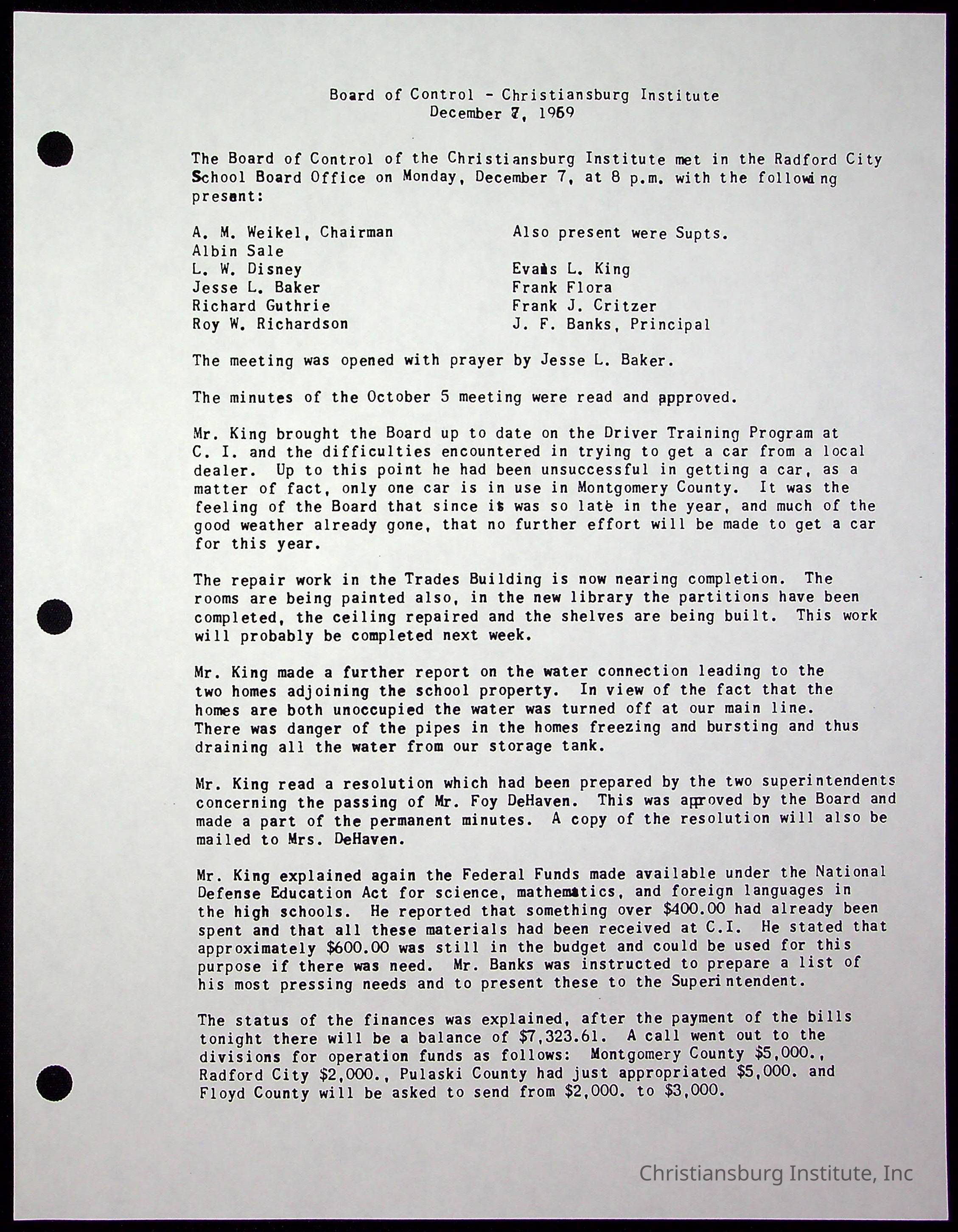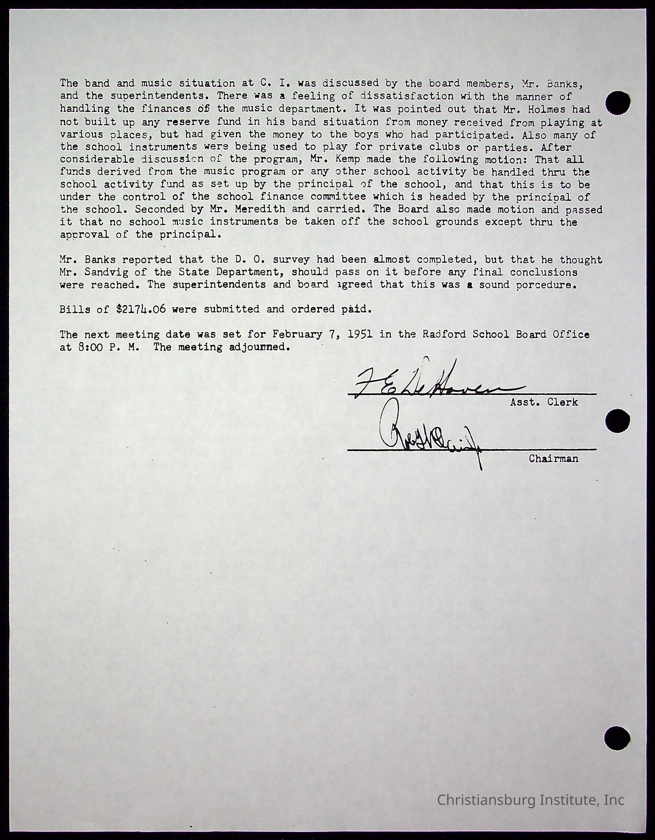 A binder of a photocopy version of the Christiansburg Industrial Institute board minutes from July 1947 through August 1963.Creator