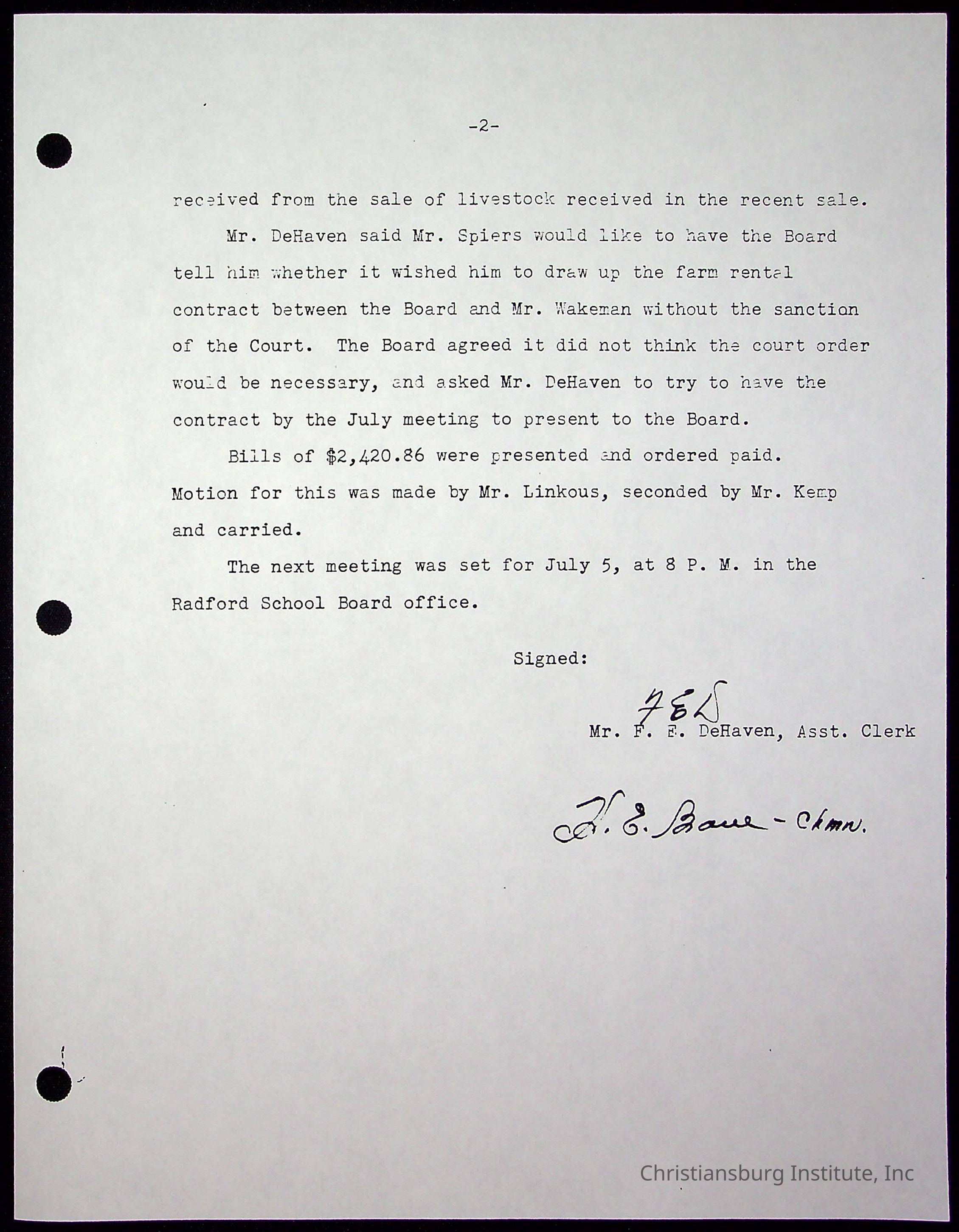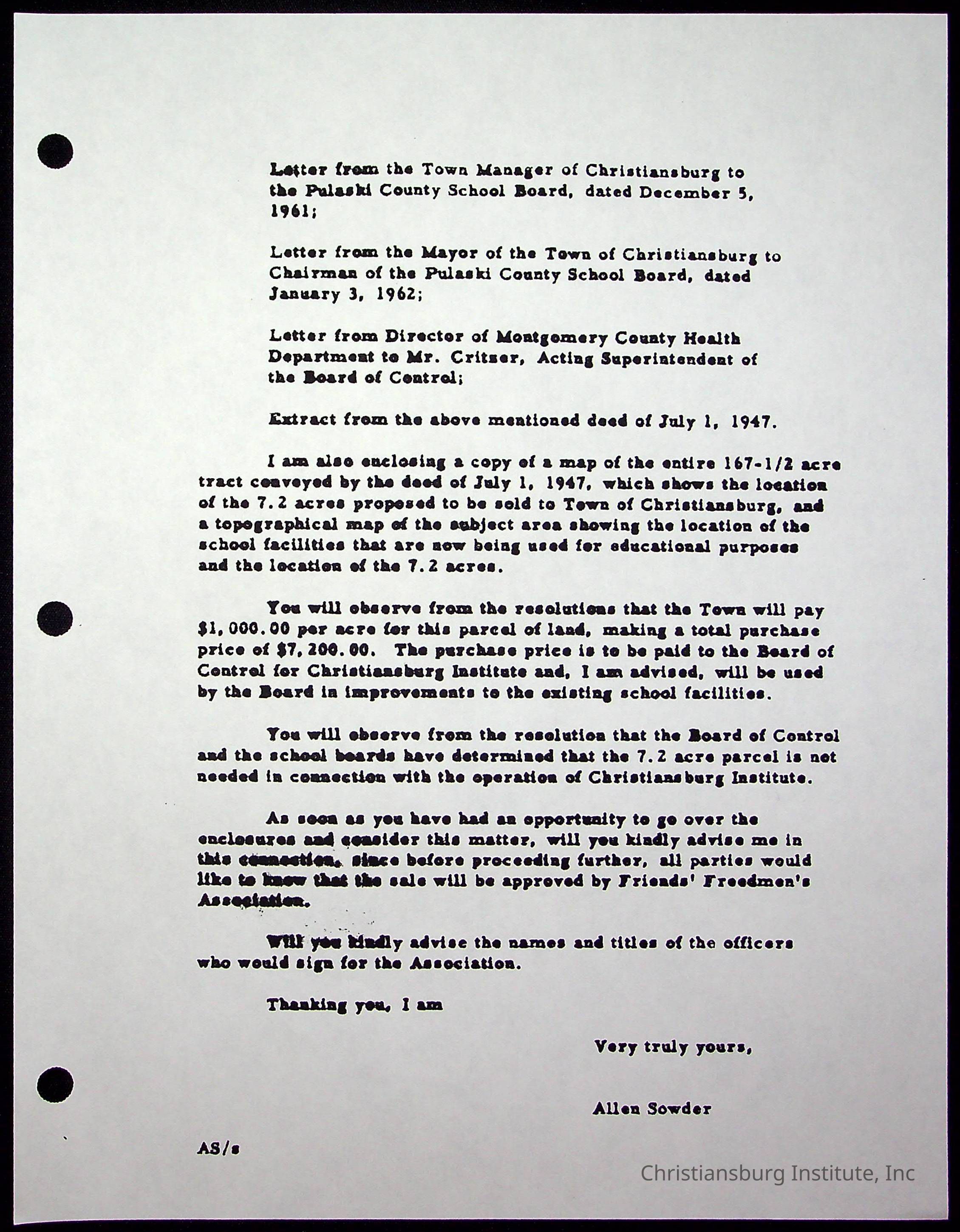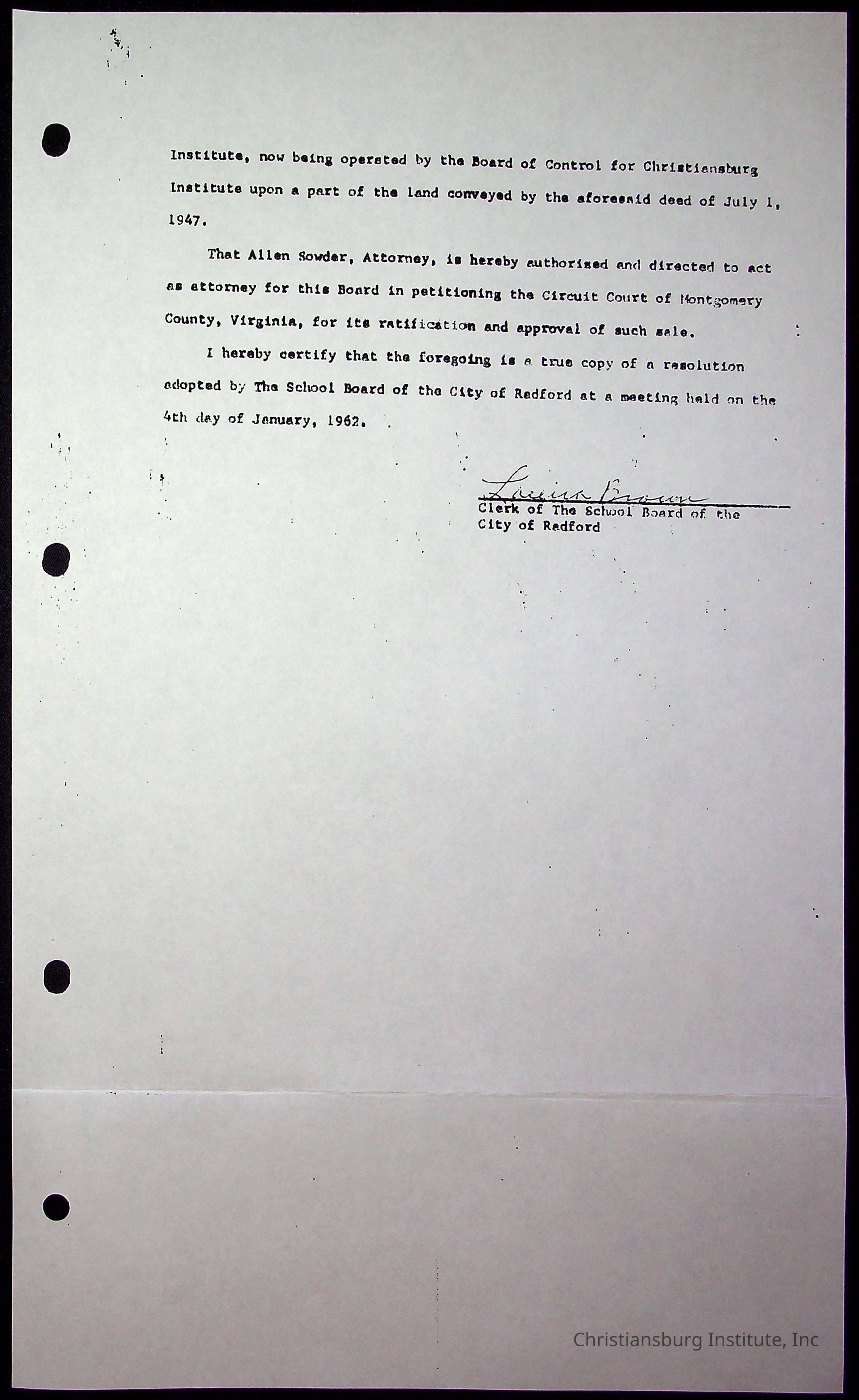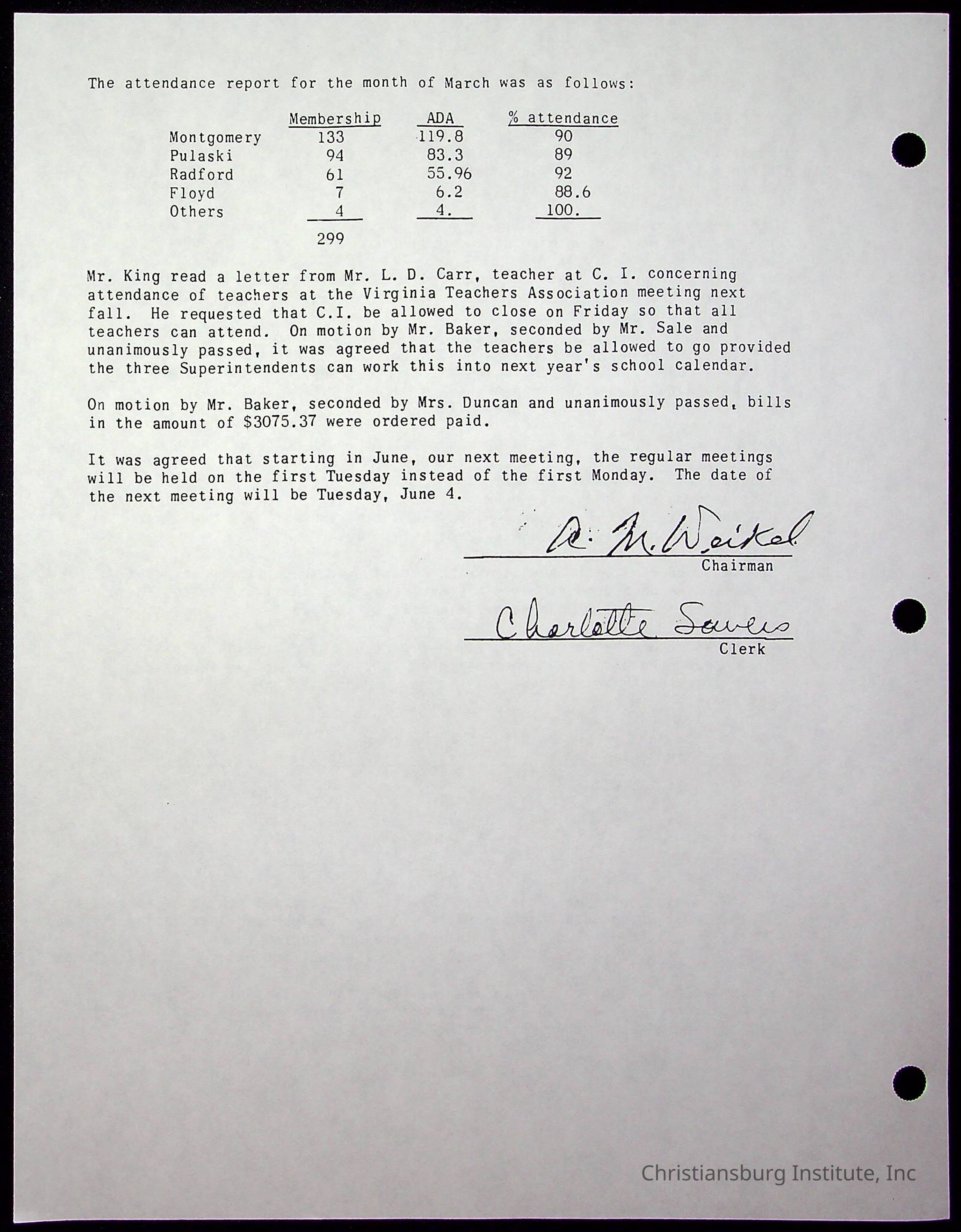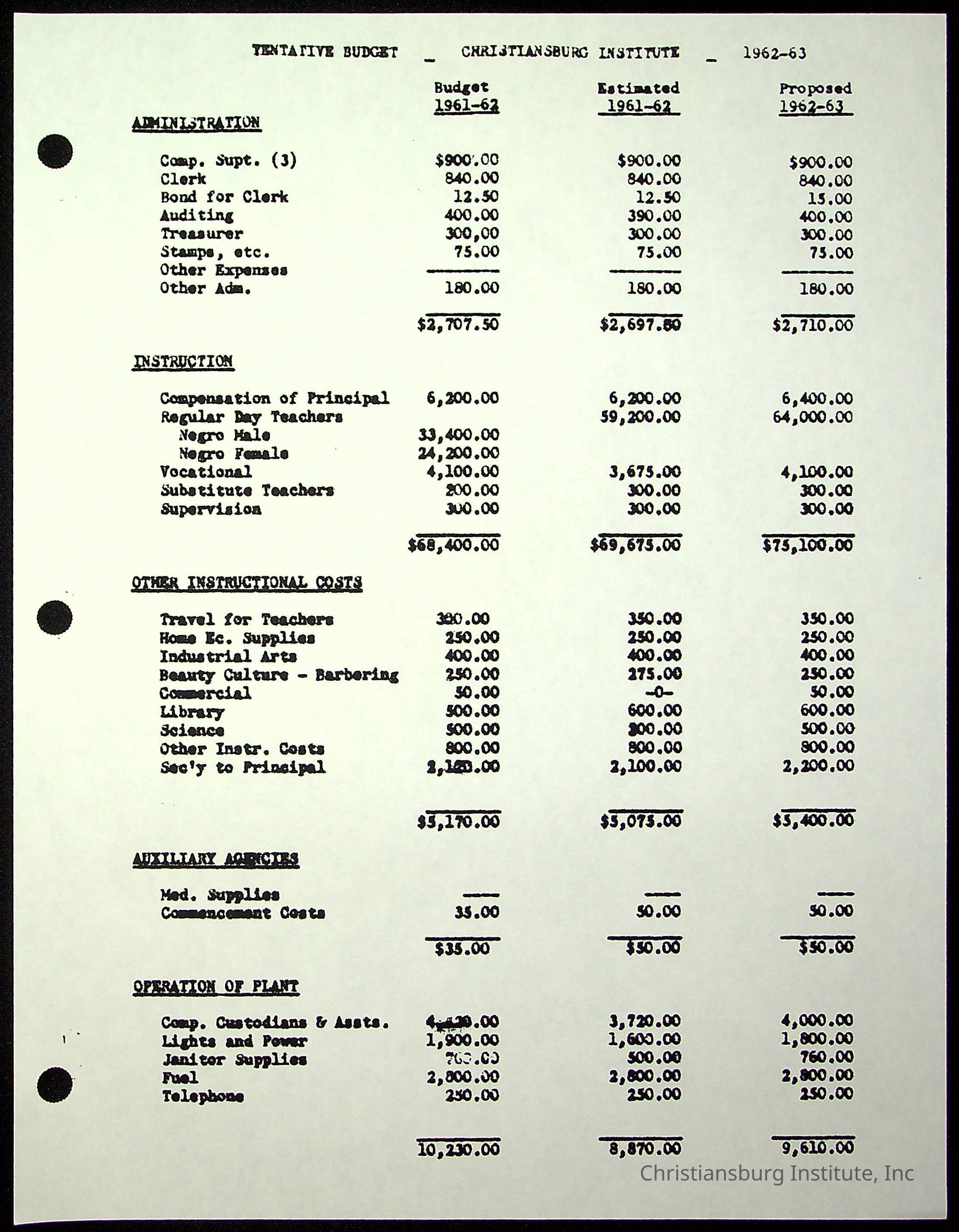 A binder of a photocopy version of the Christiansburg Industrial Institute board minutes from July 1947 through August 1963.Creator