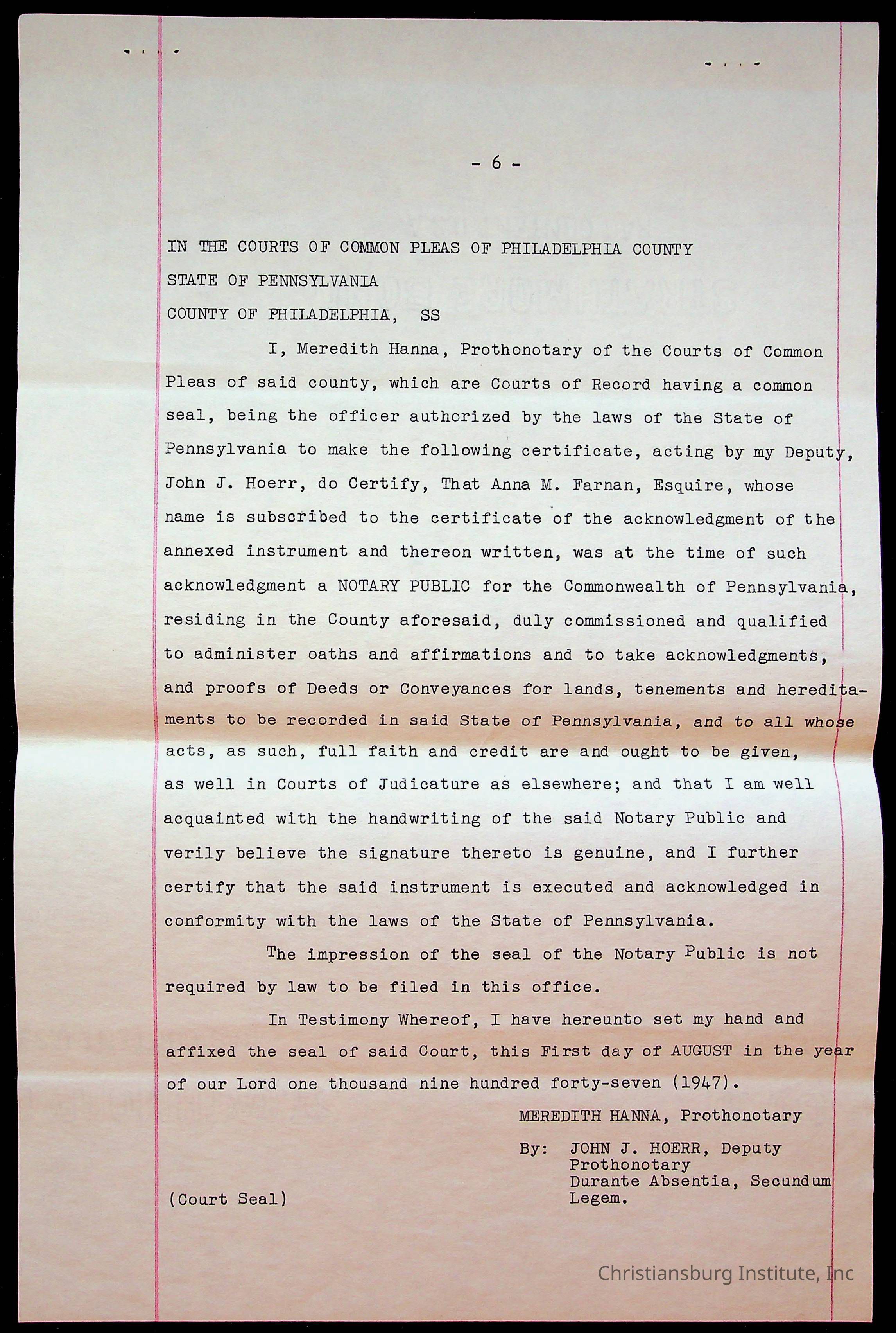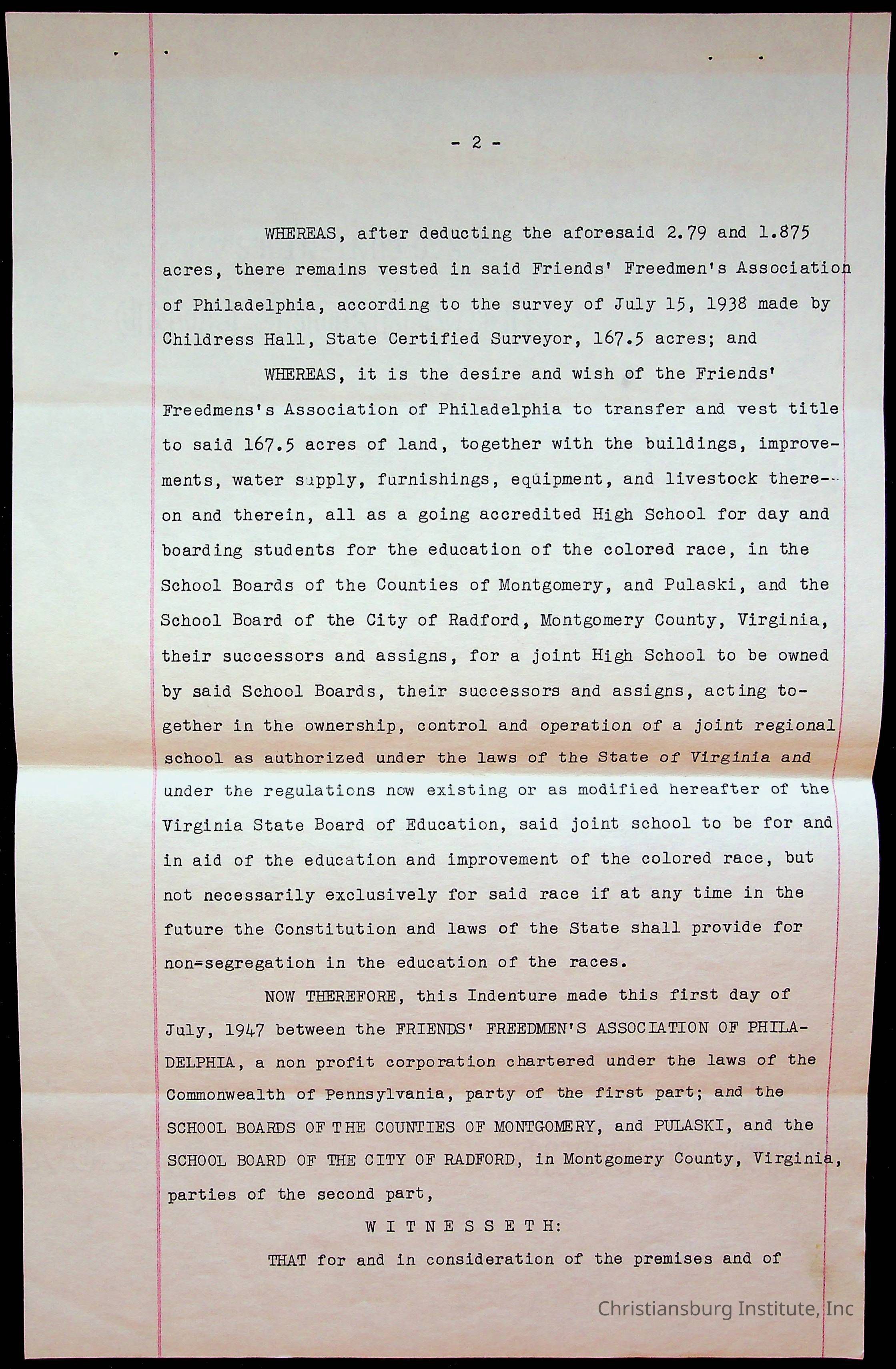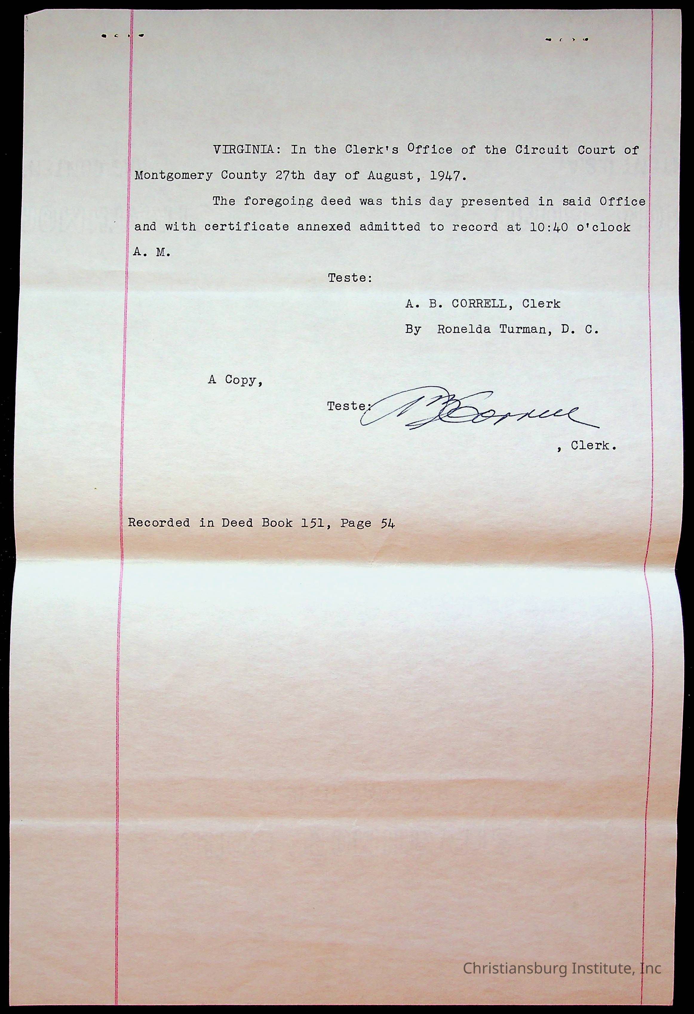 Christiansburg Industrial Institute Deed, 1947Tags