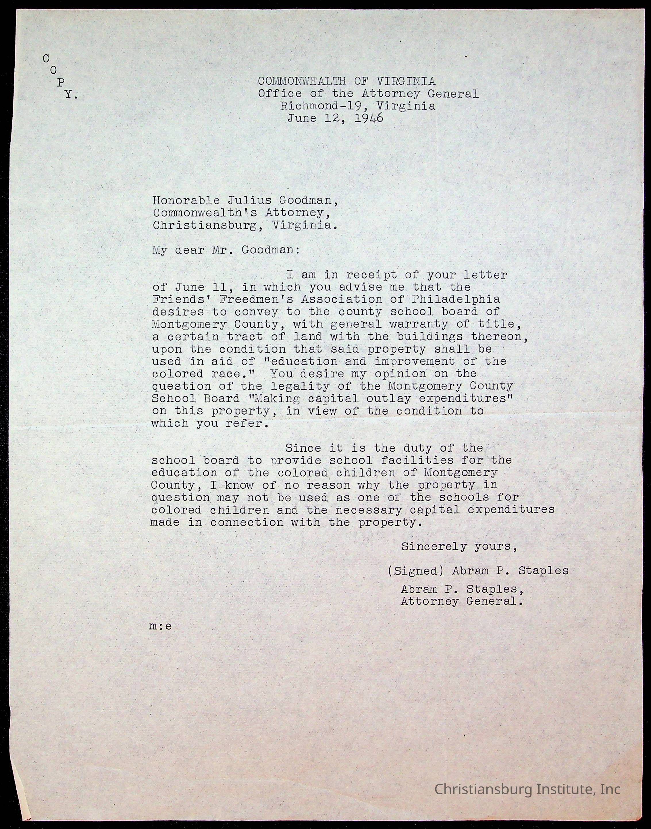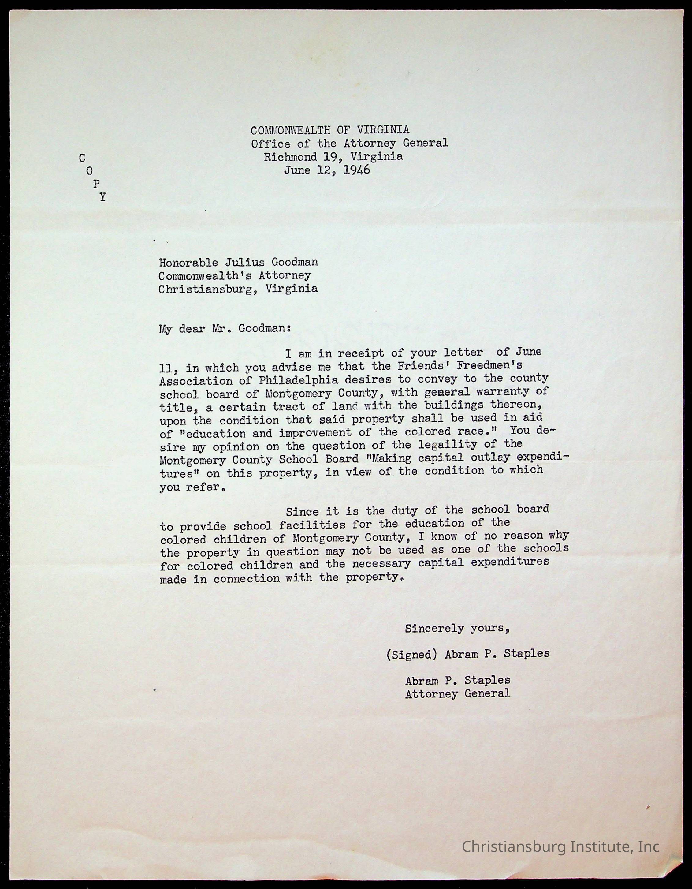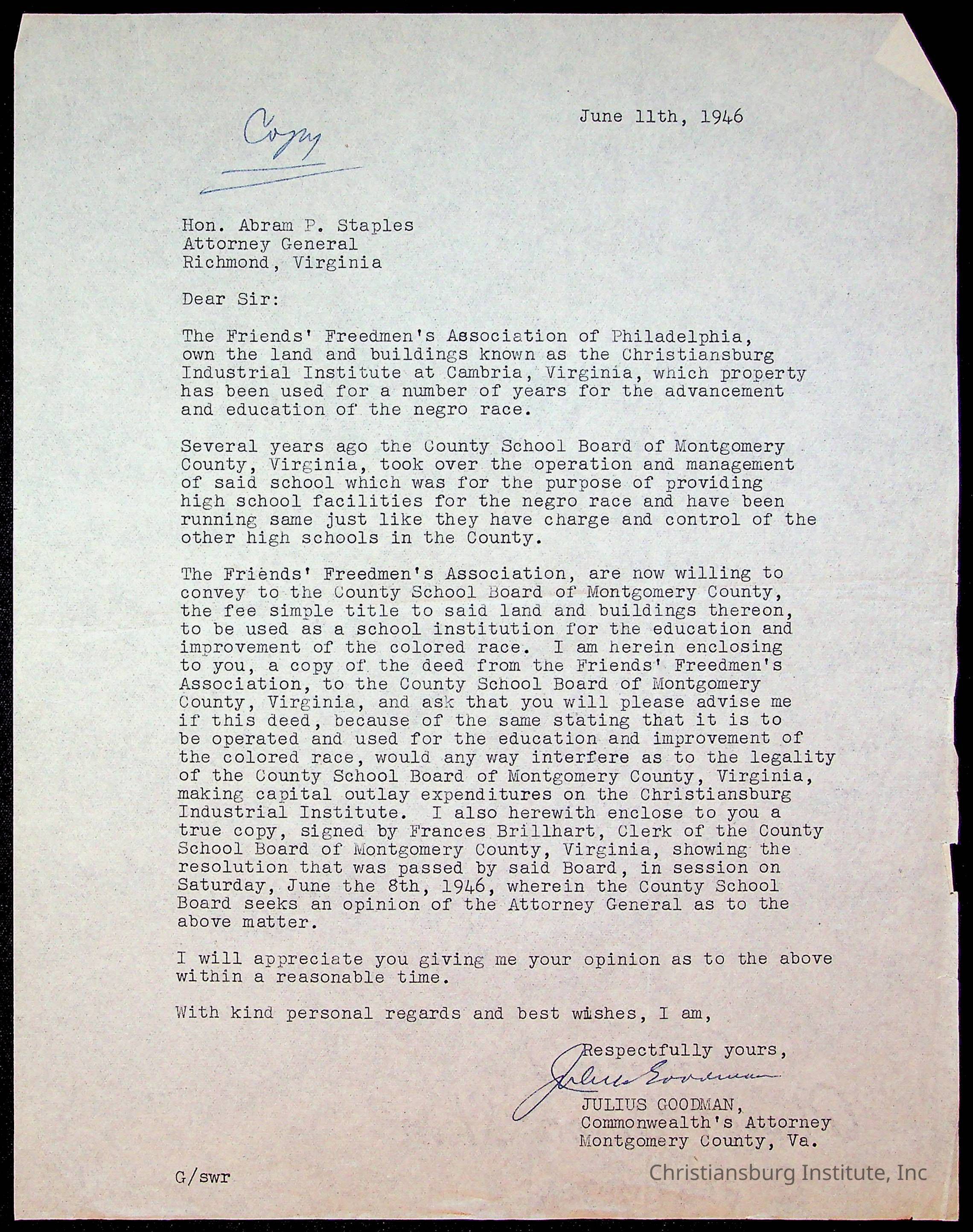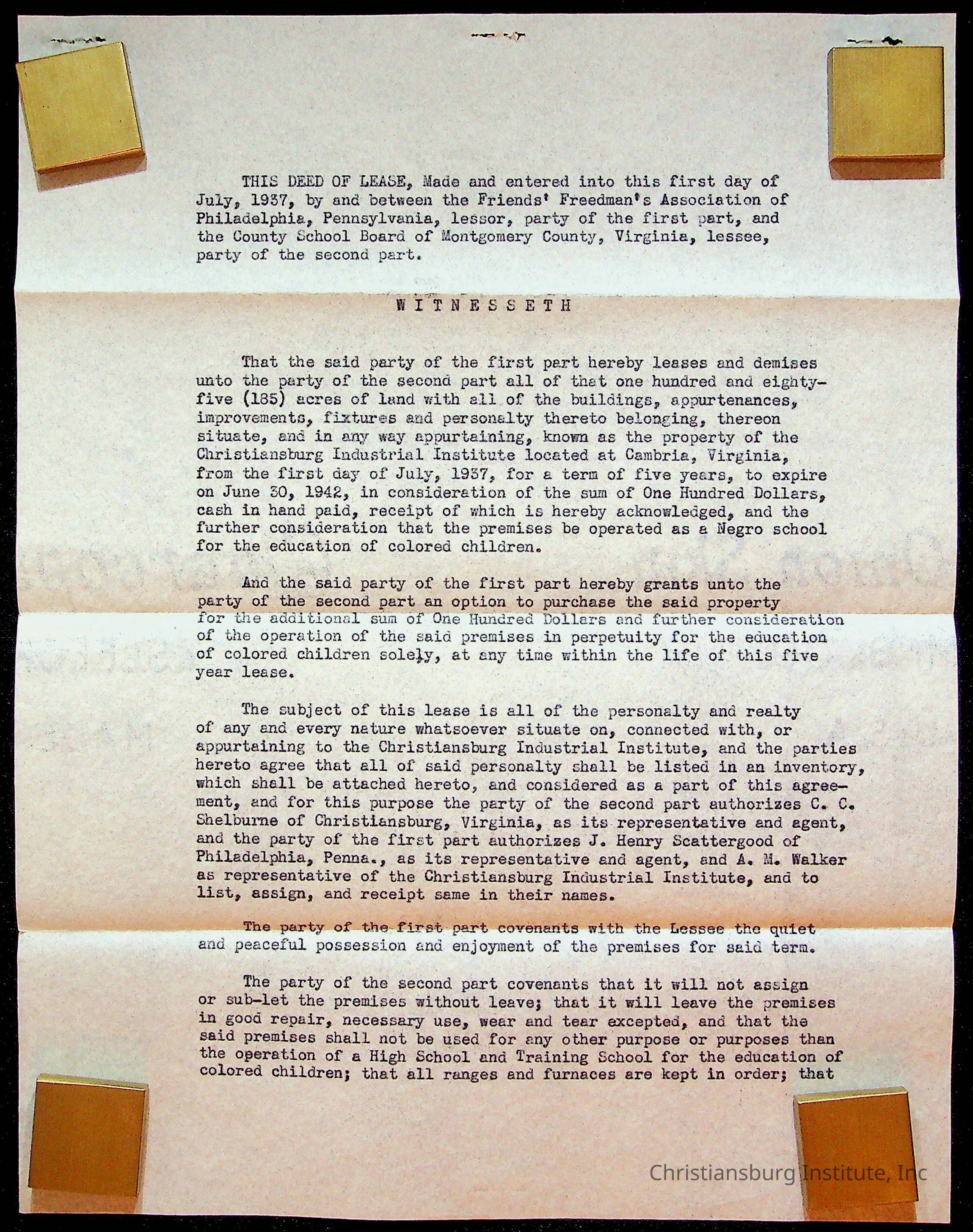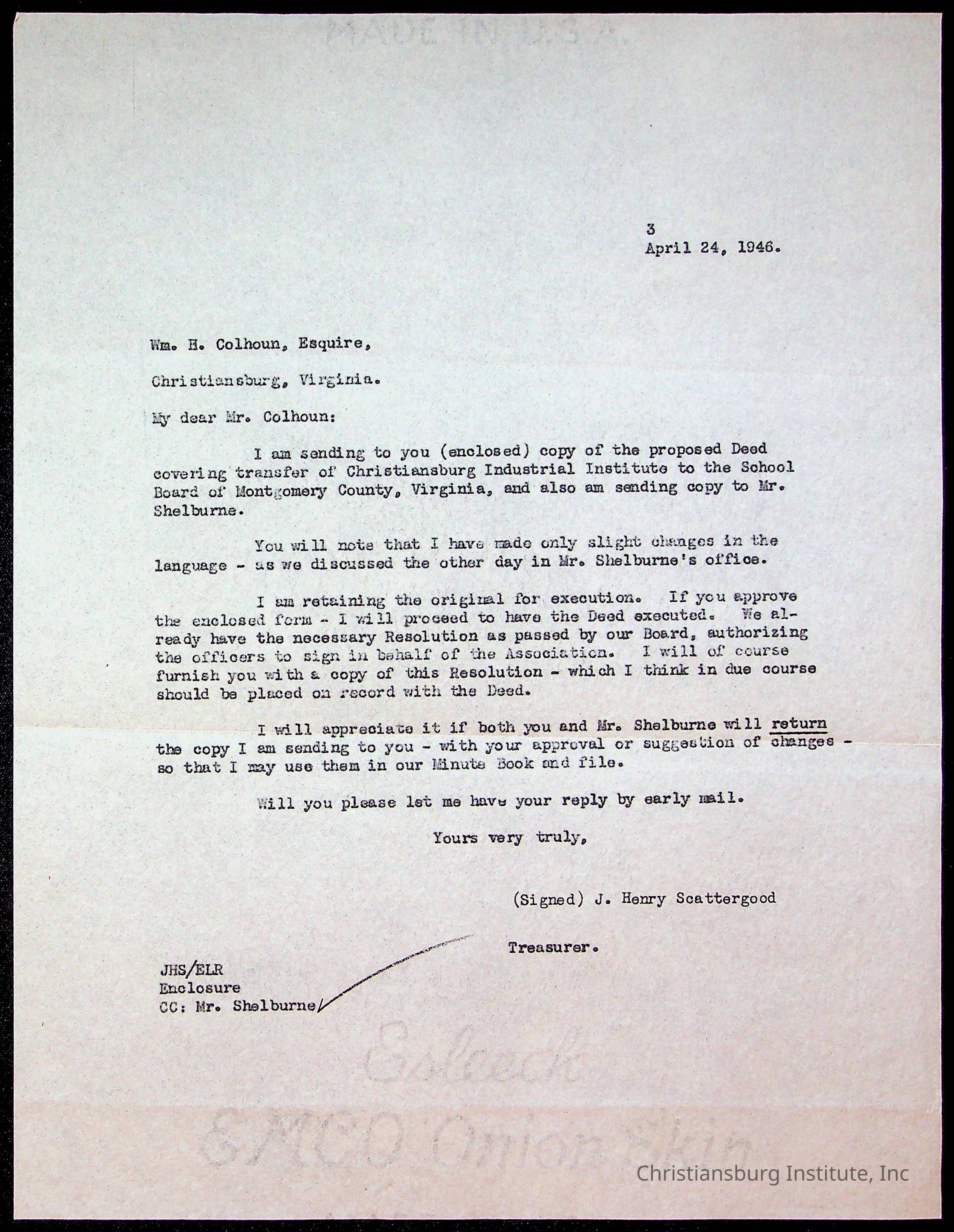 Copyright has been assigned to Christiansburg Institute Museum & Archives by Montgomery County Public Schools. For permission to publish materials created by the donor, contact CIMA@christiansburginstitute.com. Materials not created by Christiansburg Industrial Institute may still be under copyright.