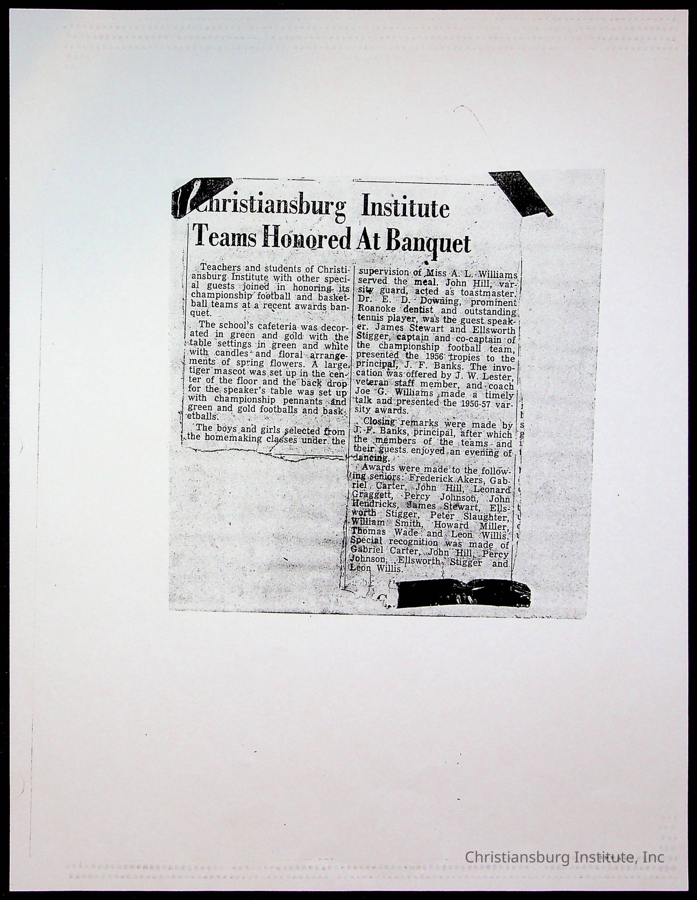 A scrapbook, titled CII Scrapbook #1, compiled by Christiansburg Institute alumni, William Smith circa 2010s. This scrapbook has newspaper articles and reproduction photographs of students and life at Christiansburg Institute.Collection