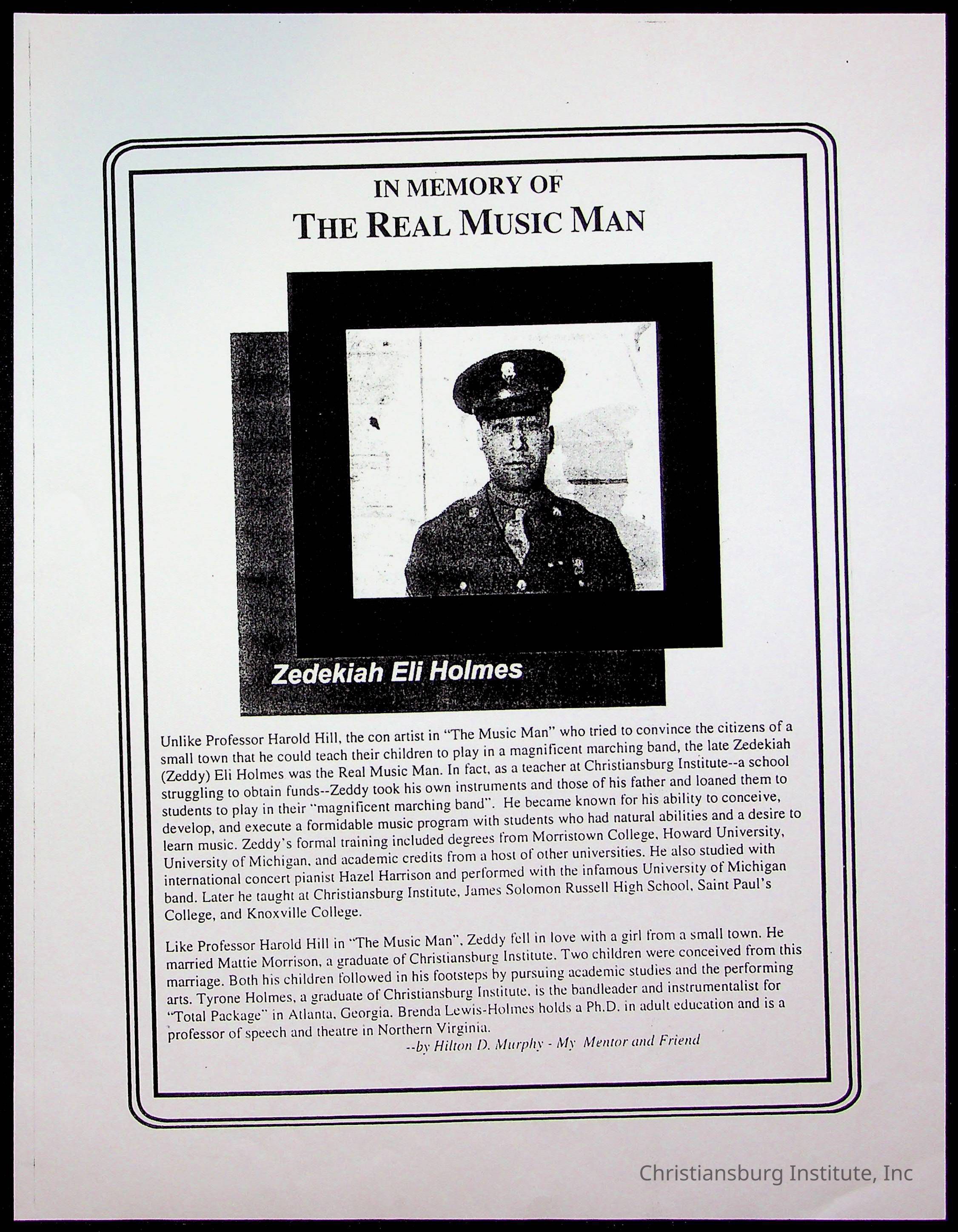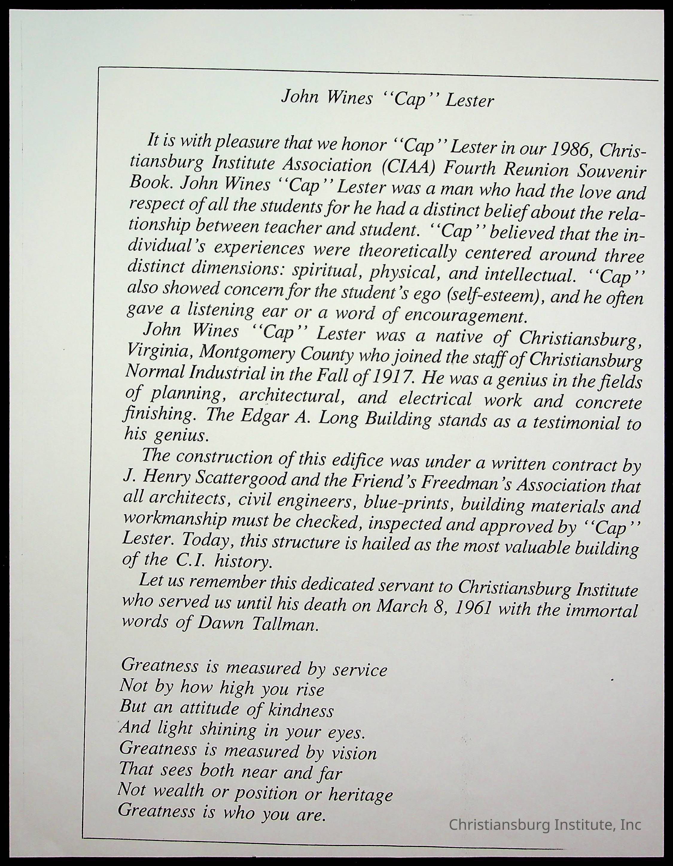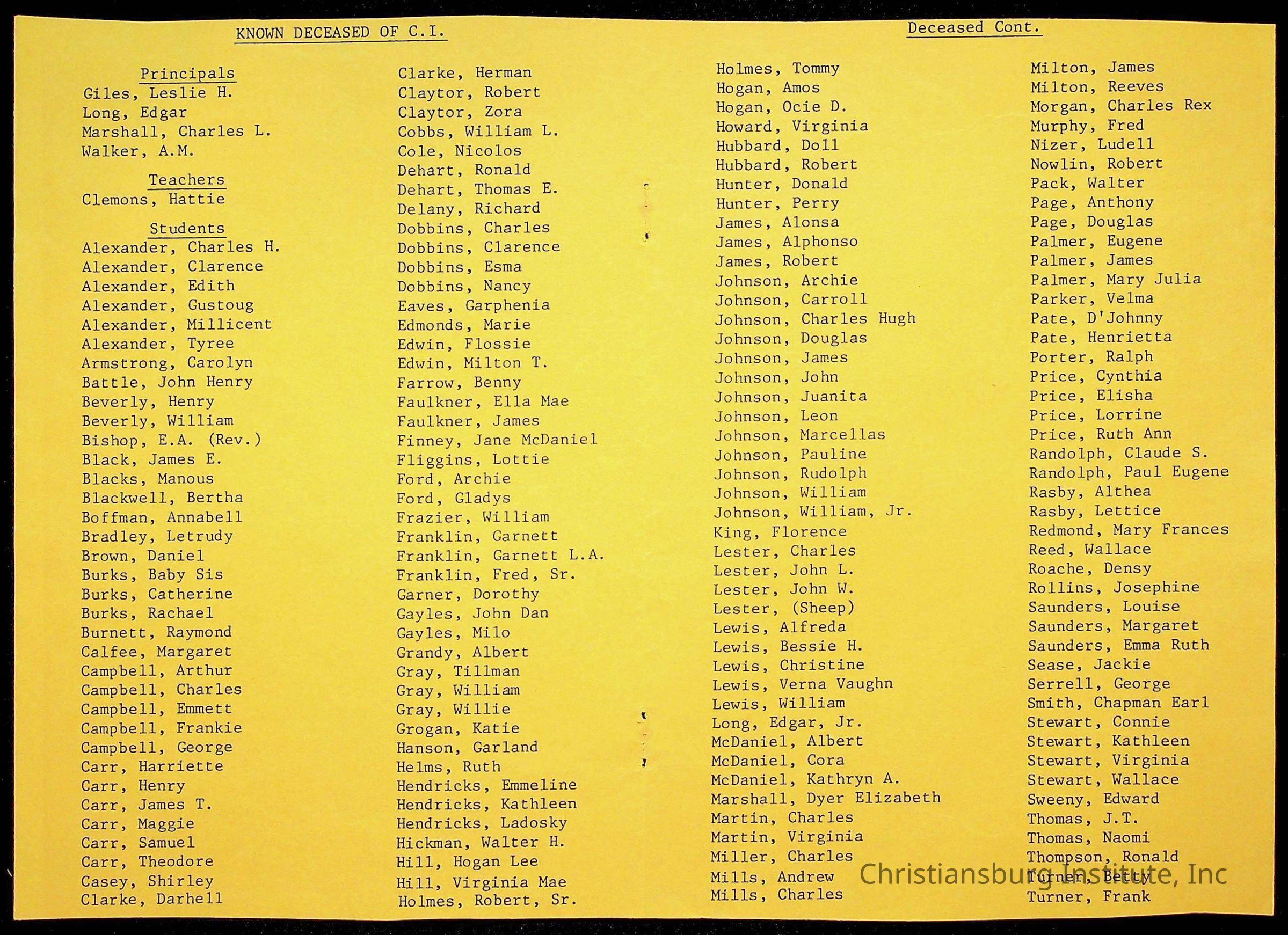 Copyright has been assigned to Christiansburg Institute Museum & Archives by William. For permission to publish materials created by the donor, contact CIMA@christiansburginstitute.com. Materials not created by William Smith may still be under copyright.