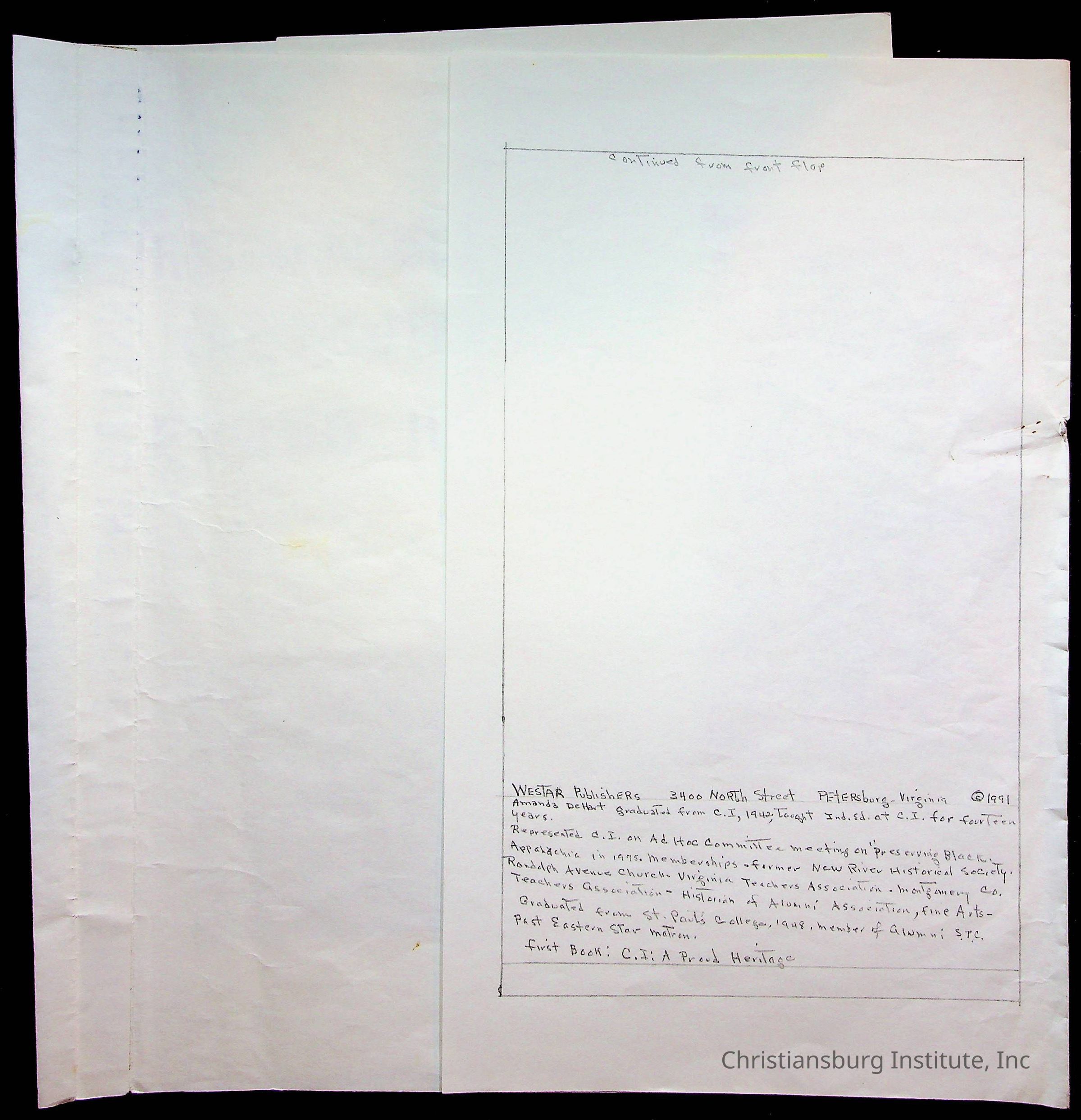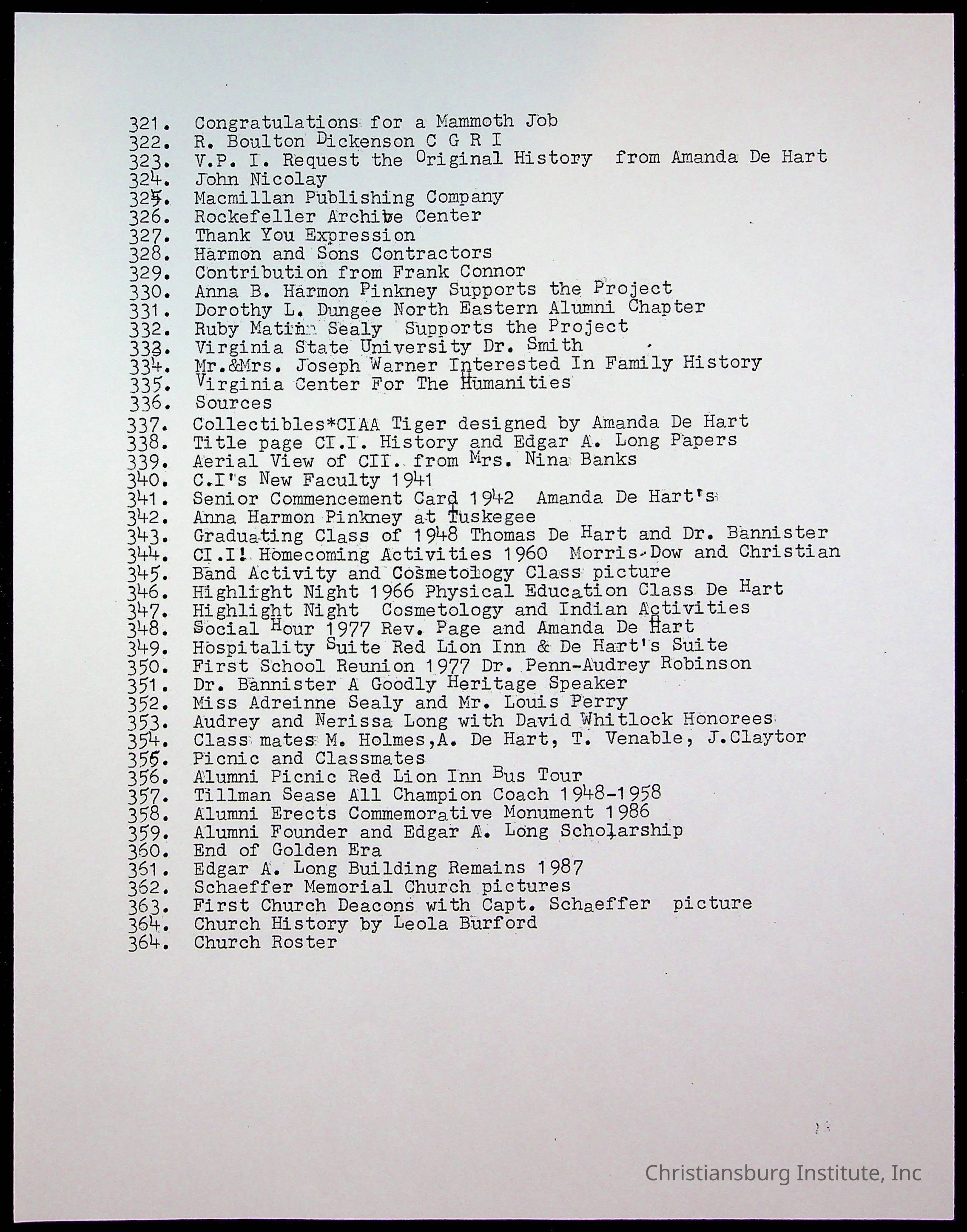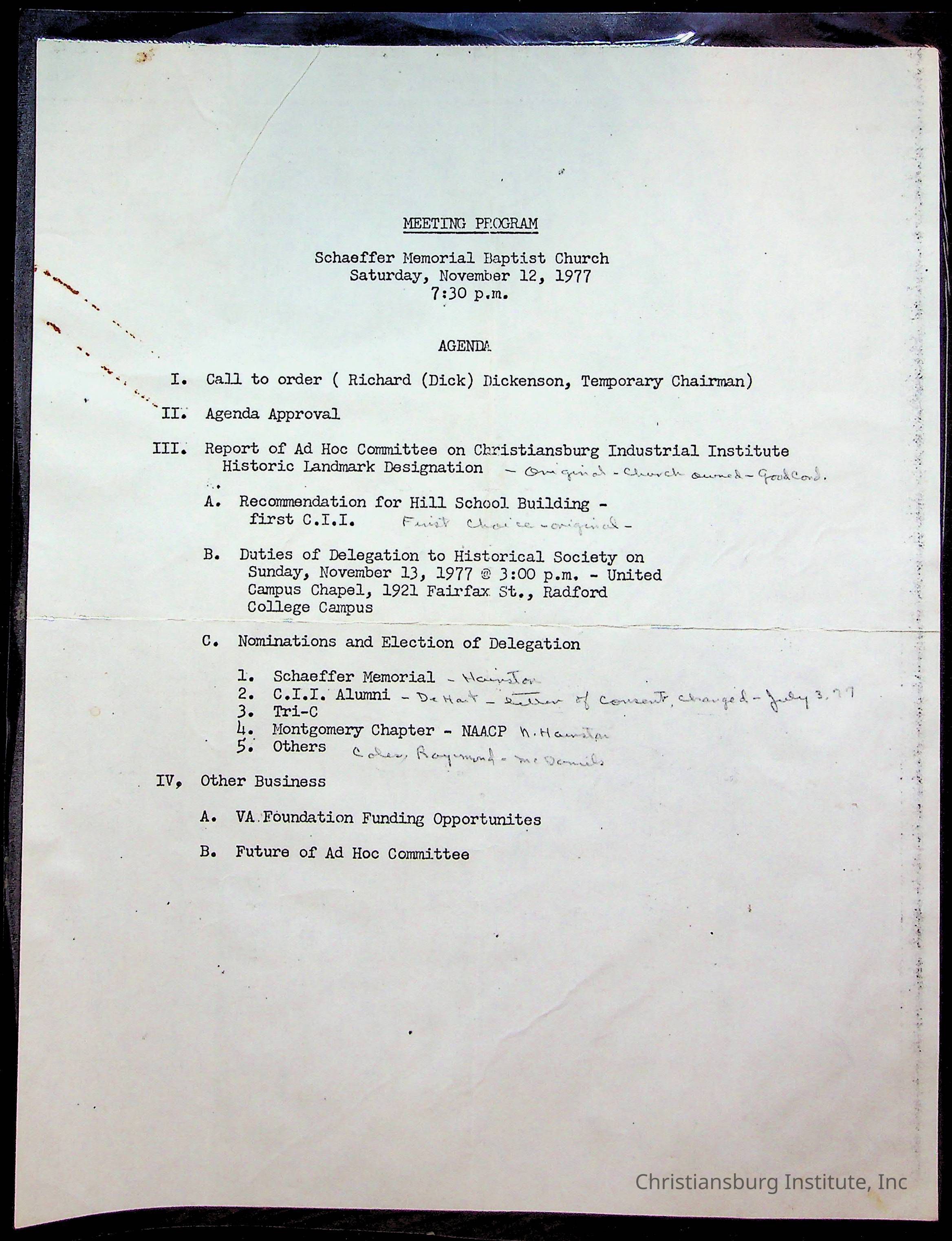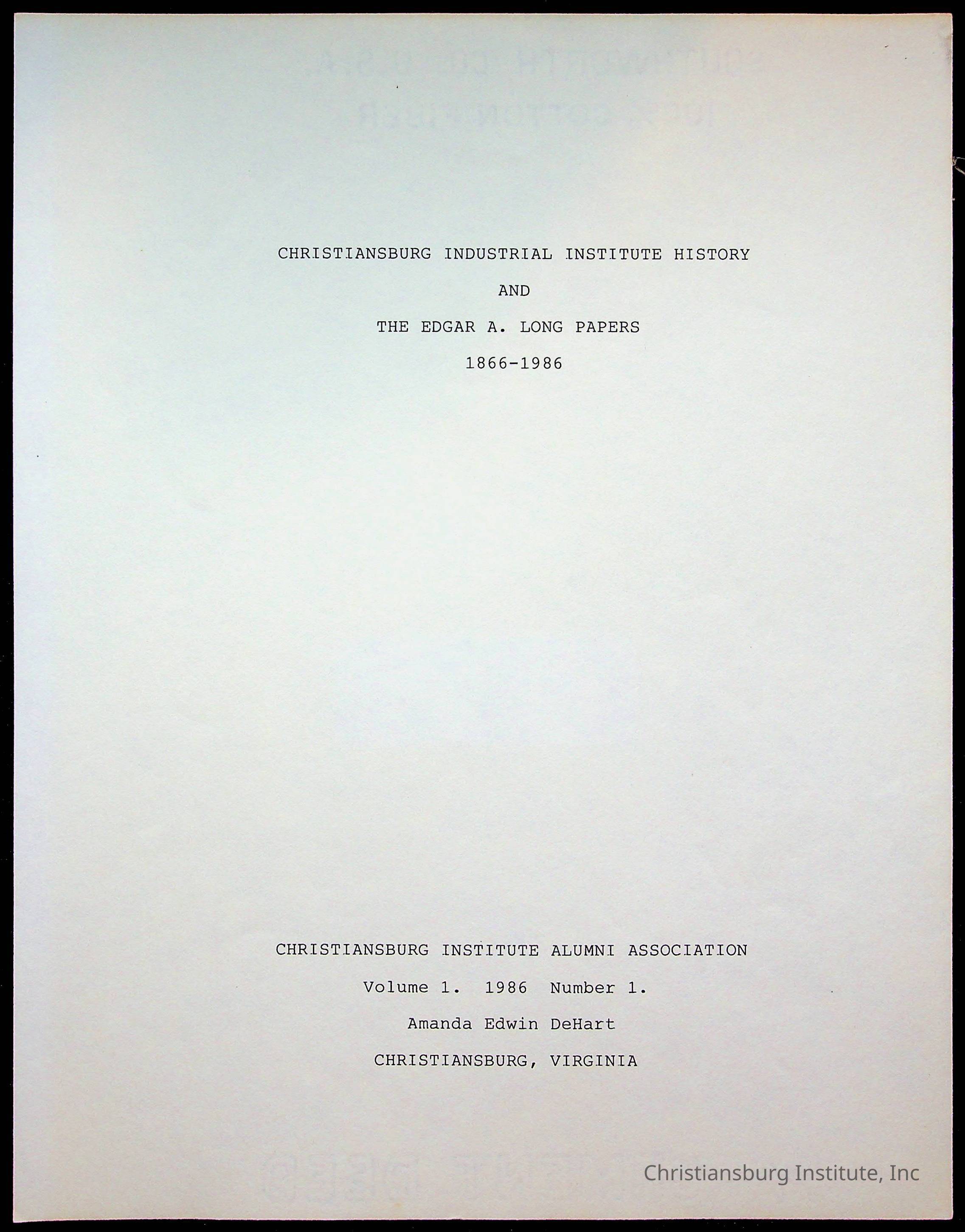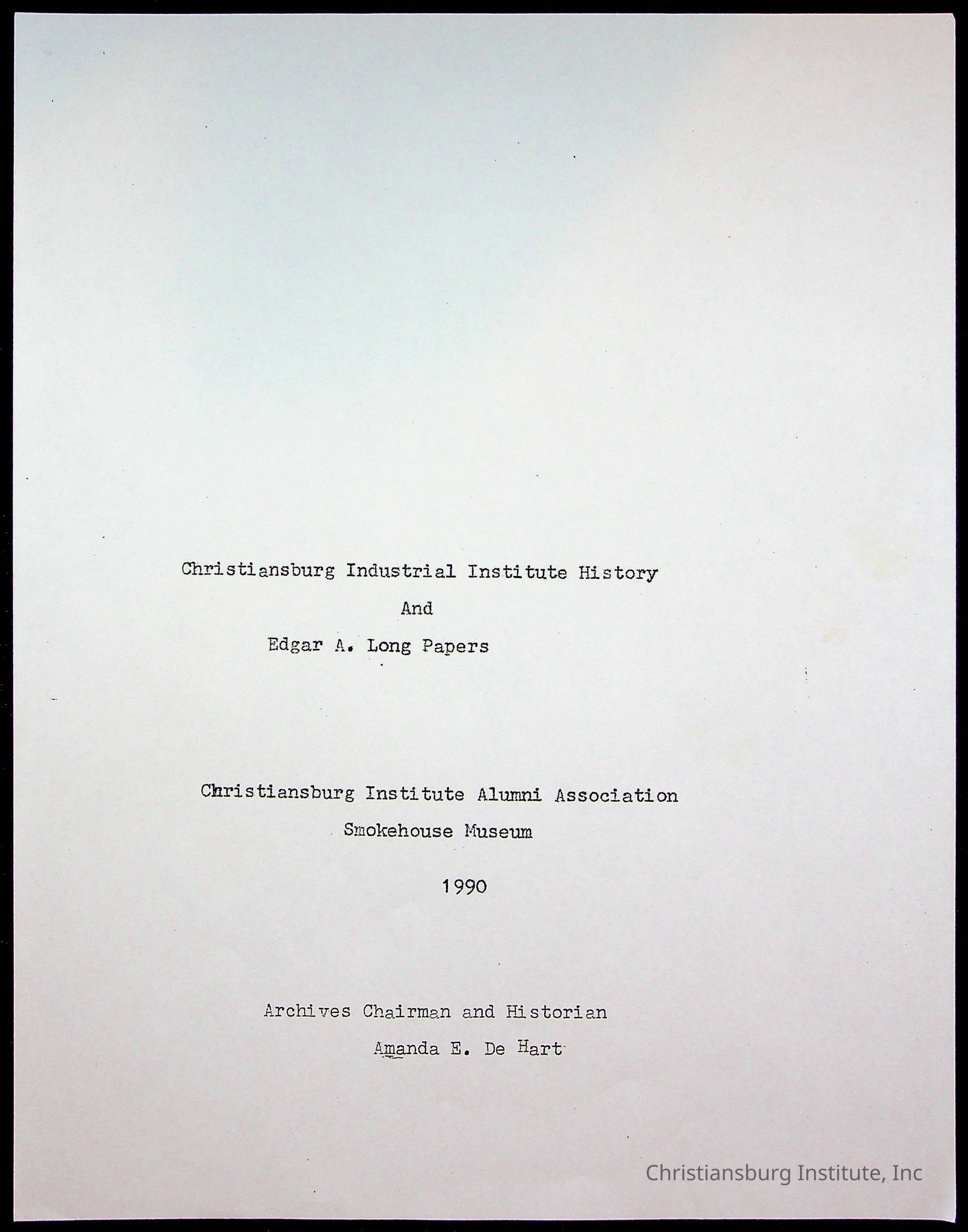 Copyright has been assigned to Christiansburg Institute Museum & Archives by Amanda DeHart. For permission to publish materials created by the donor, contact CIMA@christiansburginstitute.com. Materials not created by Amanda DeHart may still be under copyright.