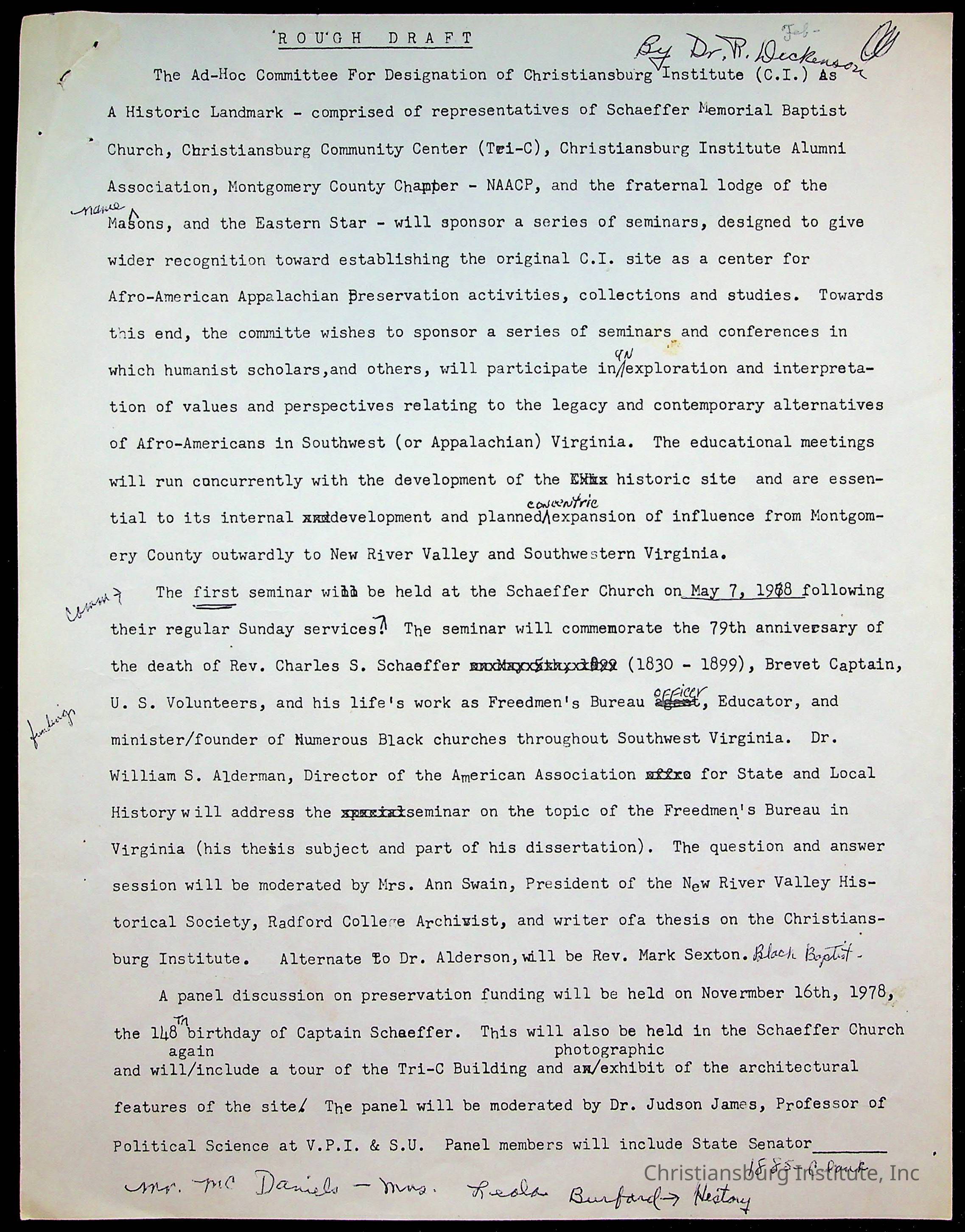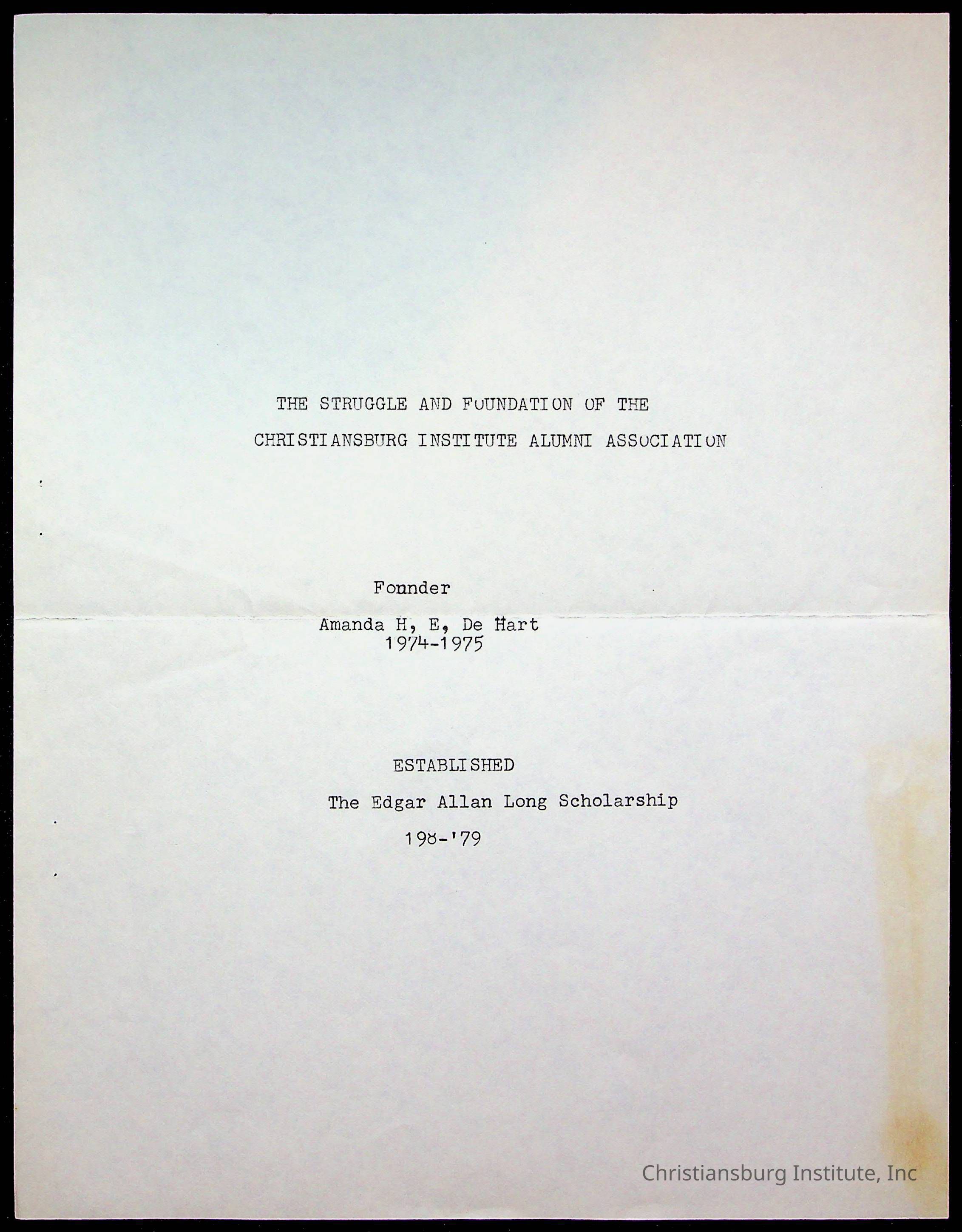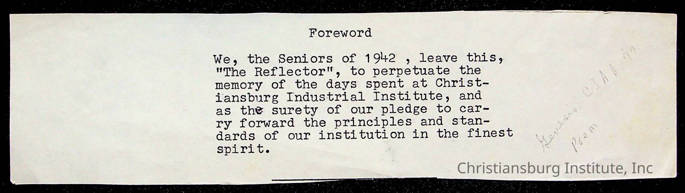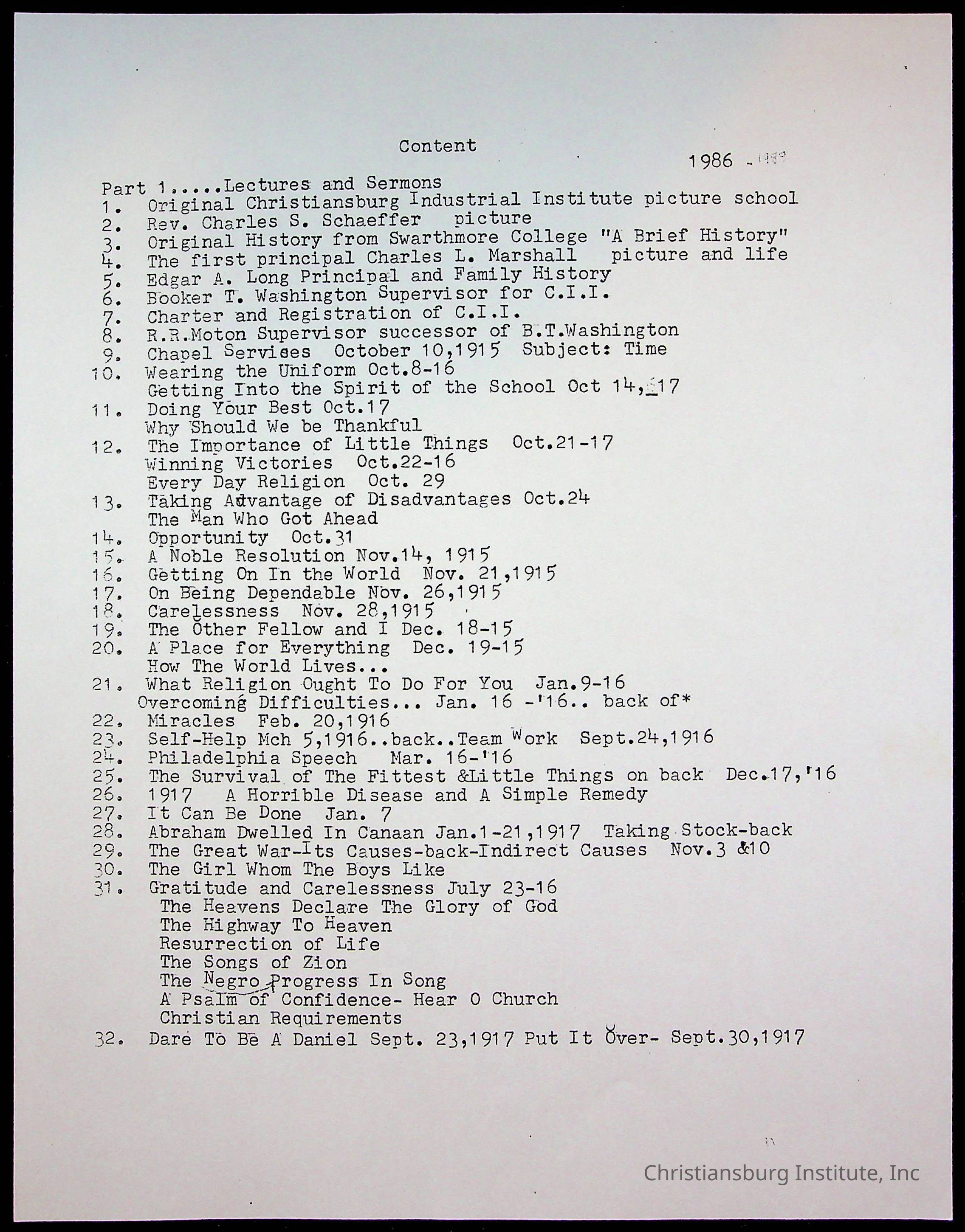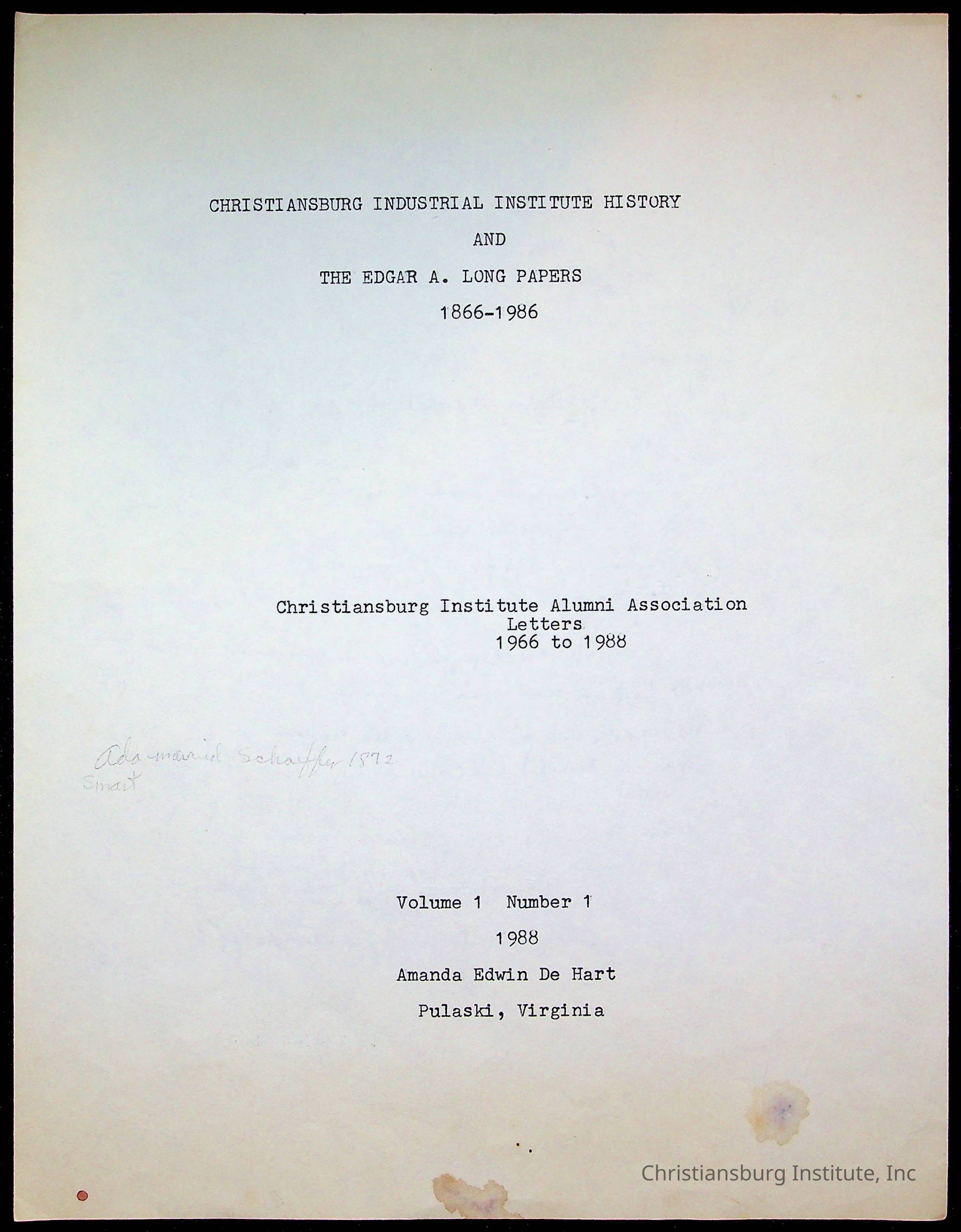 Copyright has been assigned to Christiansburg Institute Museum & Archives by Amanda DeHart. For permission to publish materials created by the donor, contact CIMA@christiansburginstitute.com. Materials not created by Amanda DeHart may still be under copyright.