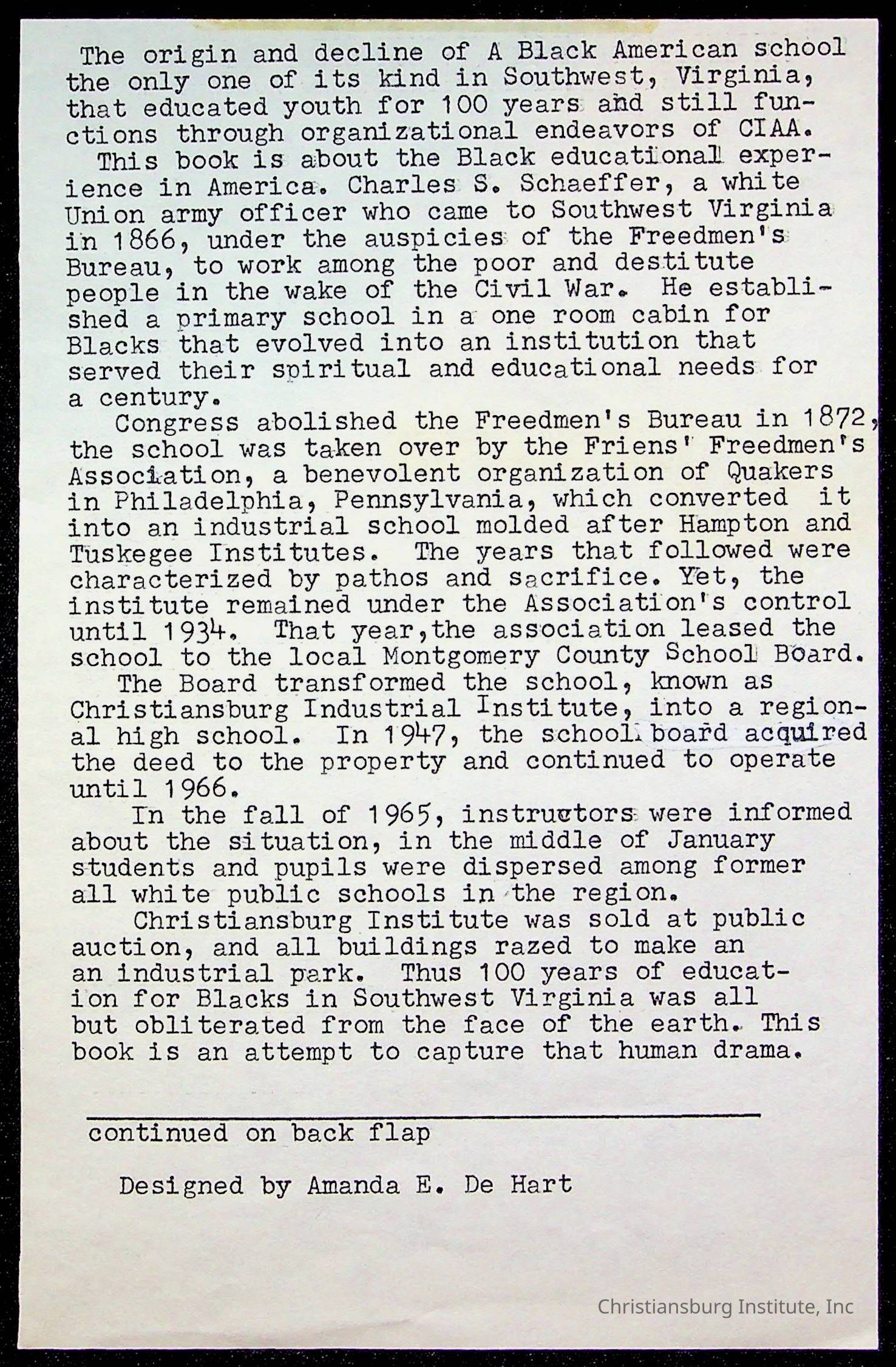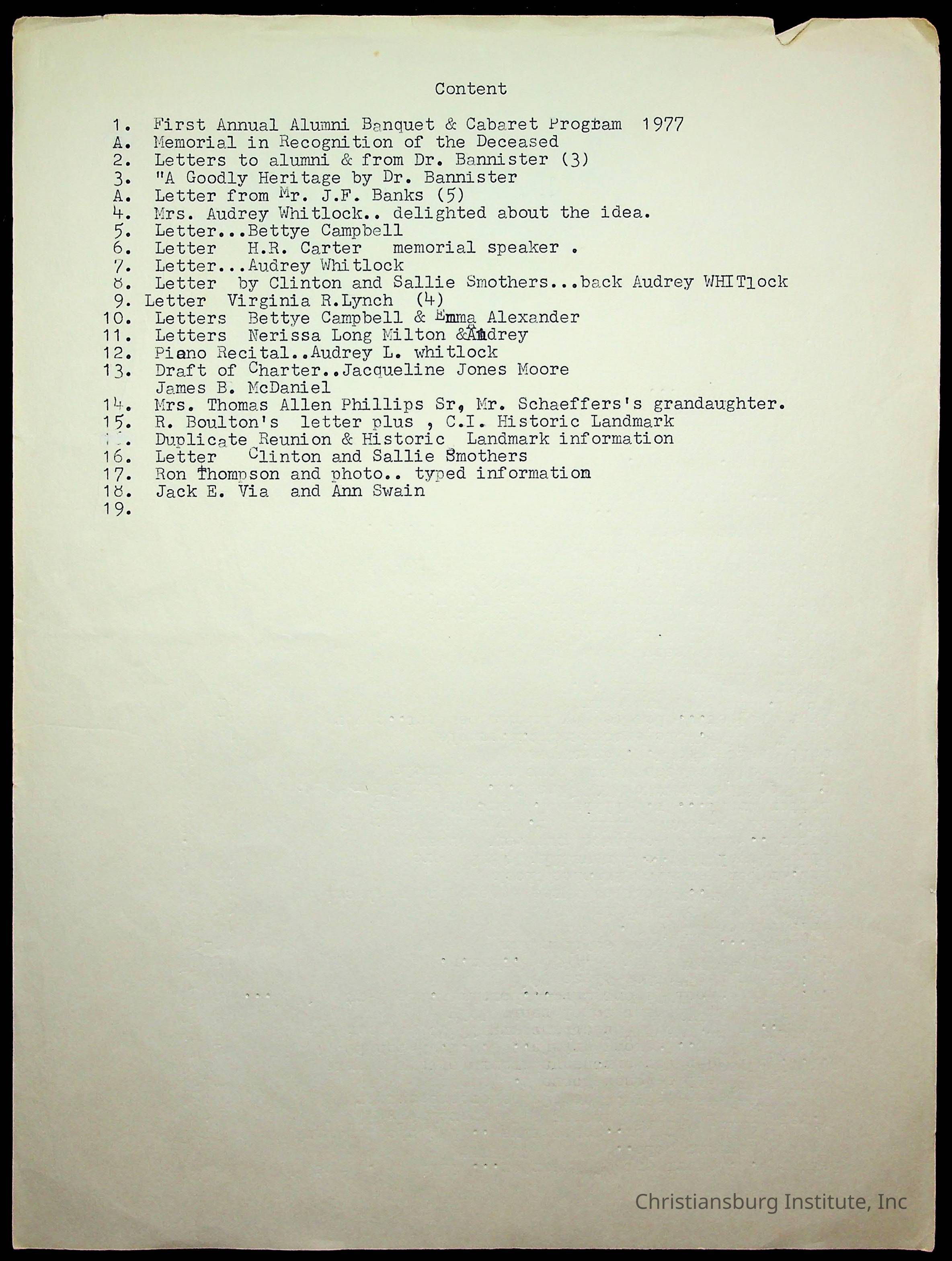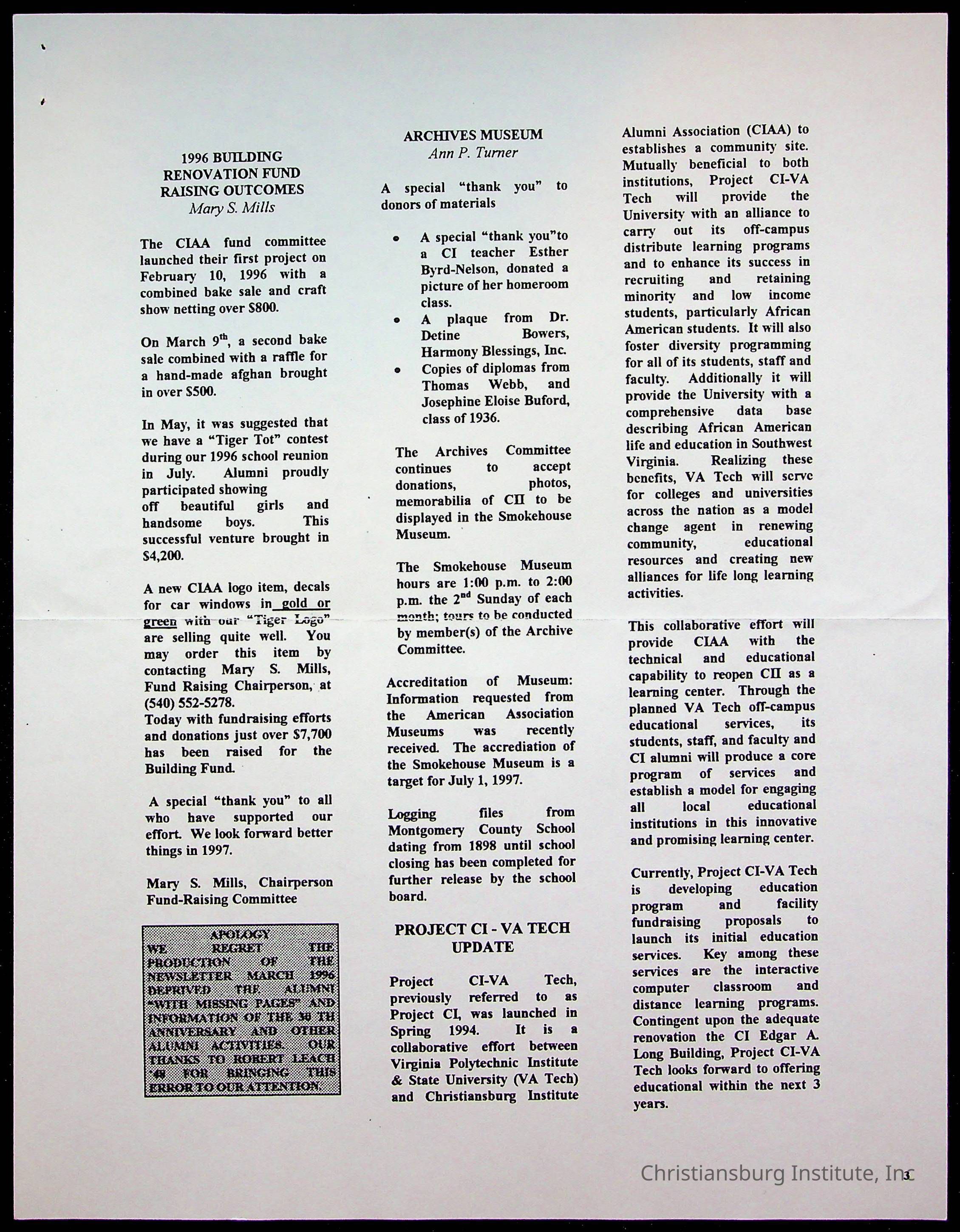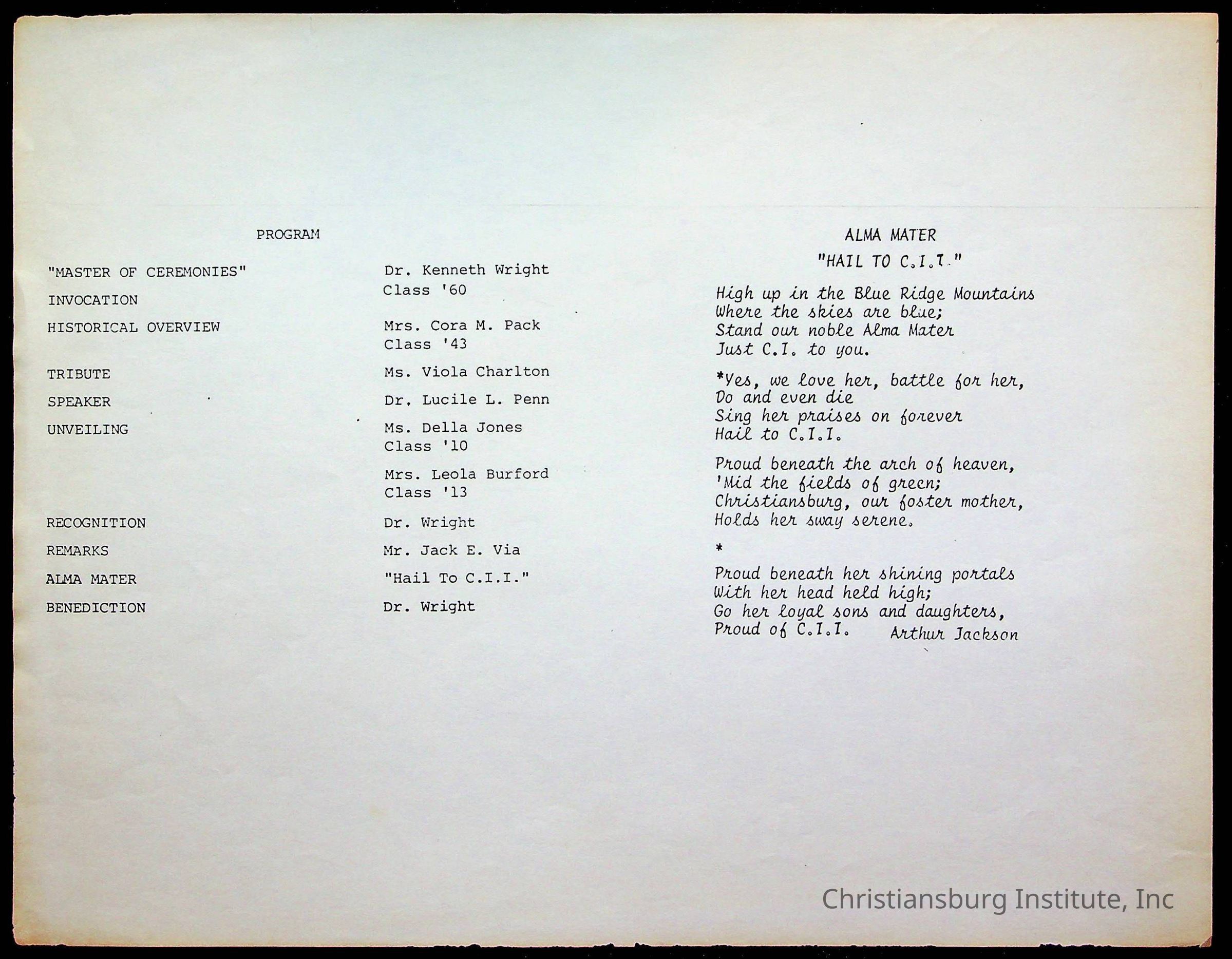 Copyright has been assigned to Christiansburg Institute Museum & Archives by Amanda DeHart. For permission to publish materials created by the donor, contact CIMA@christiansburginstitute.com. Materials not created by Amanda DeHart may still be under copyright.